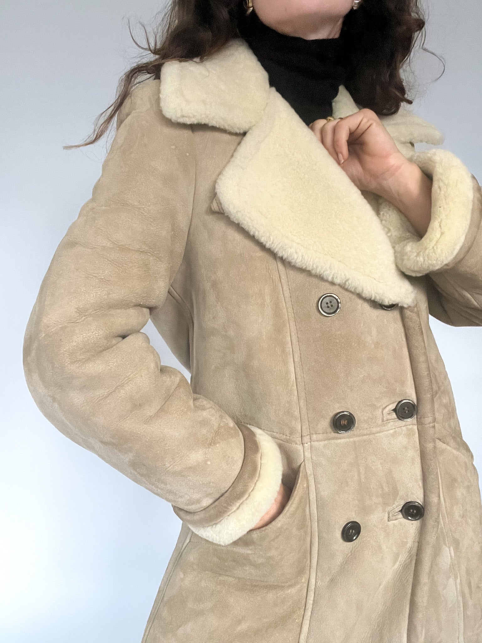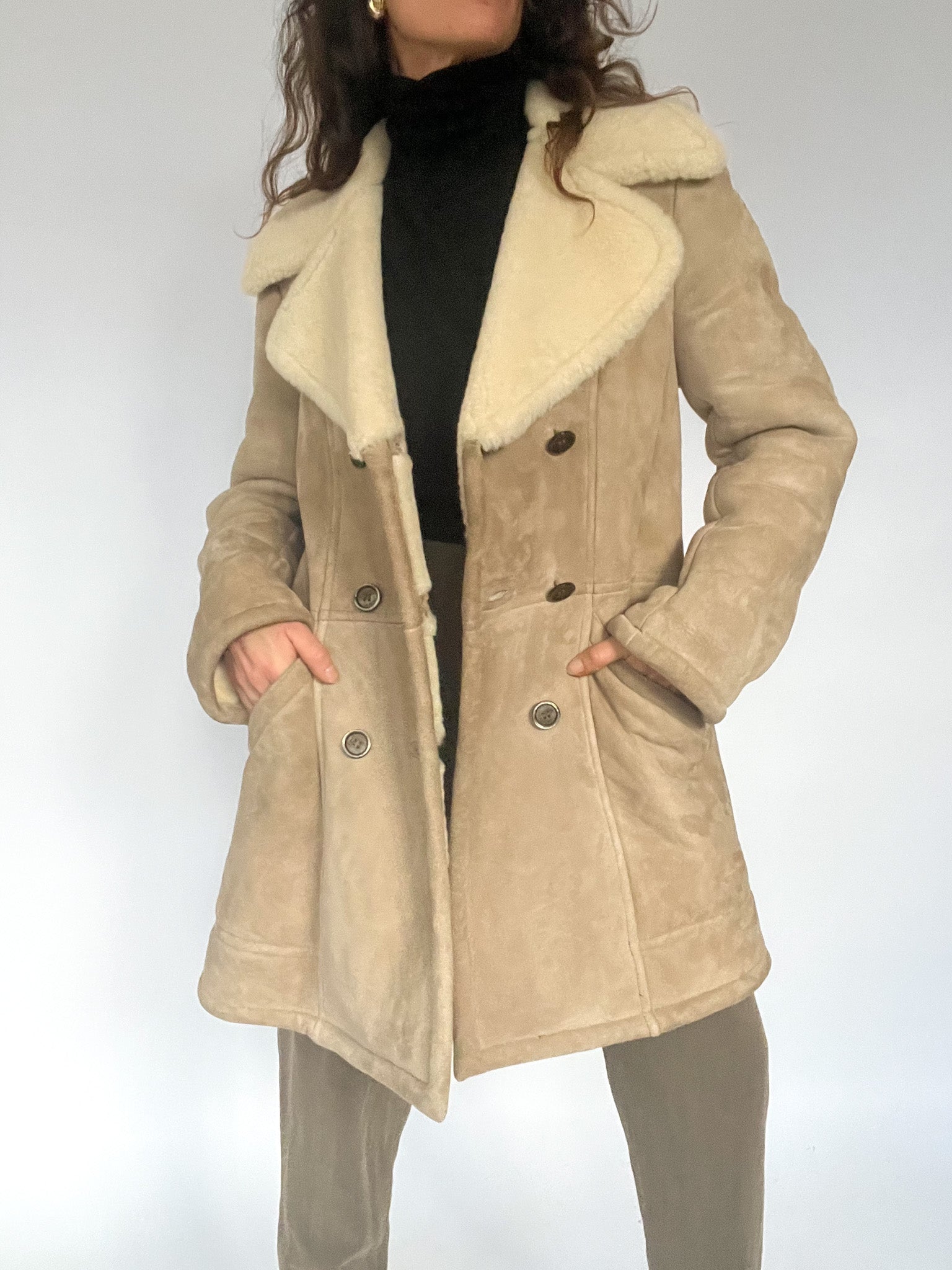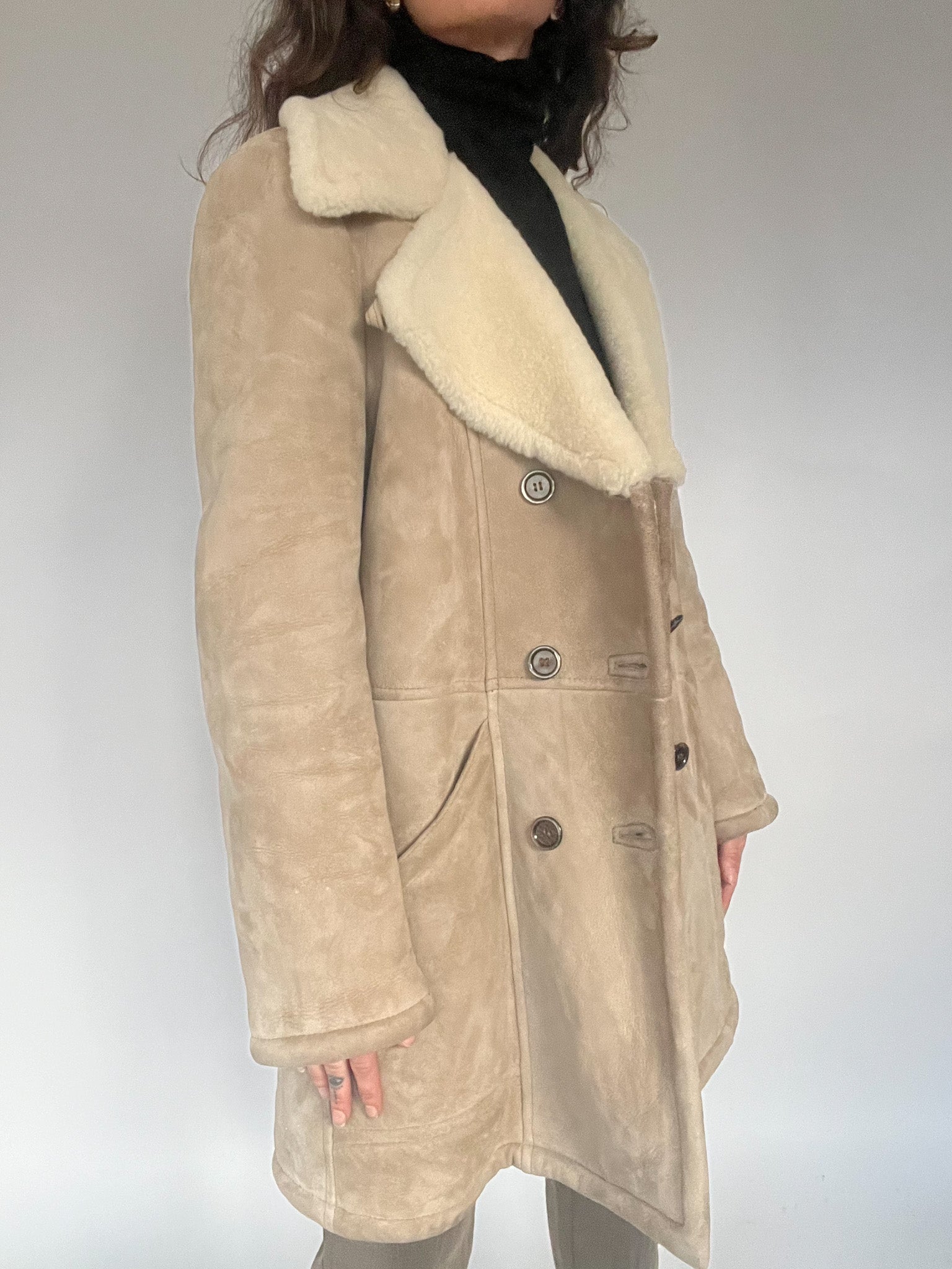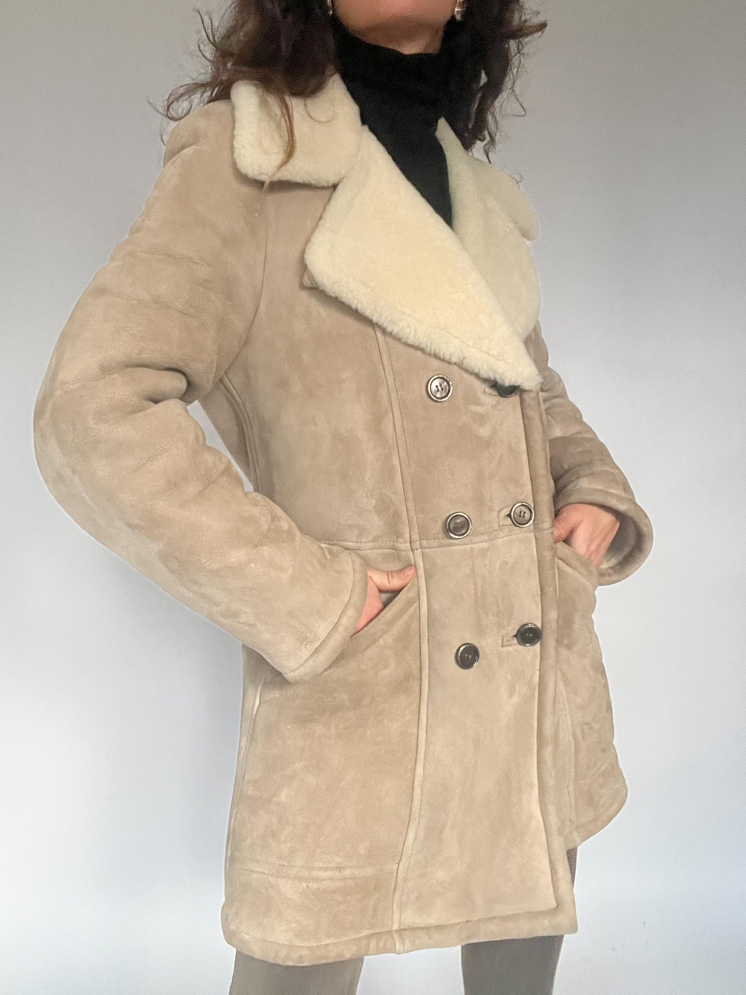 Vintage 90’s Beige Faux Fur Coat with Gold Statement Buttons