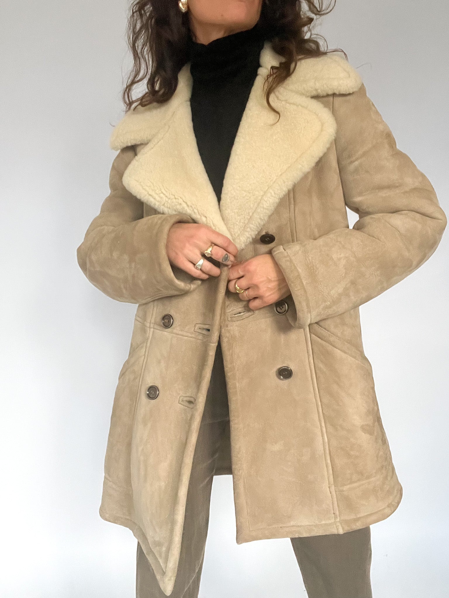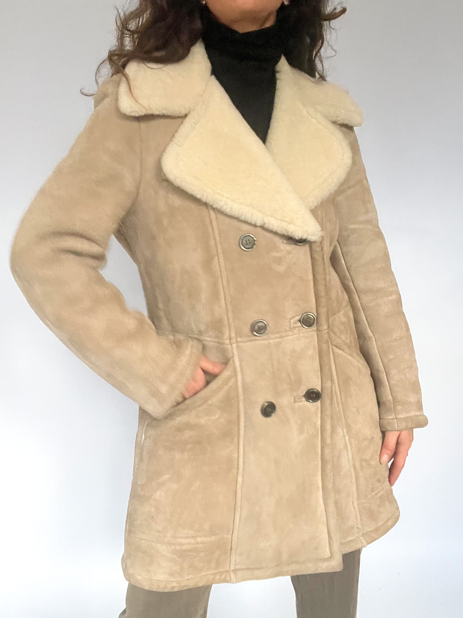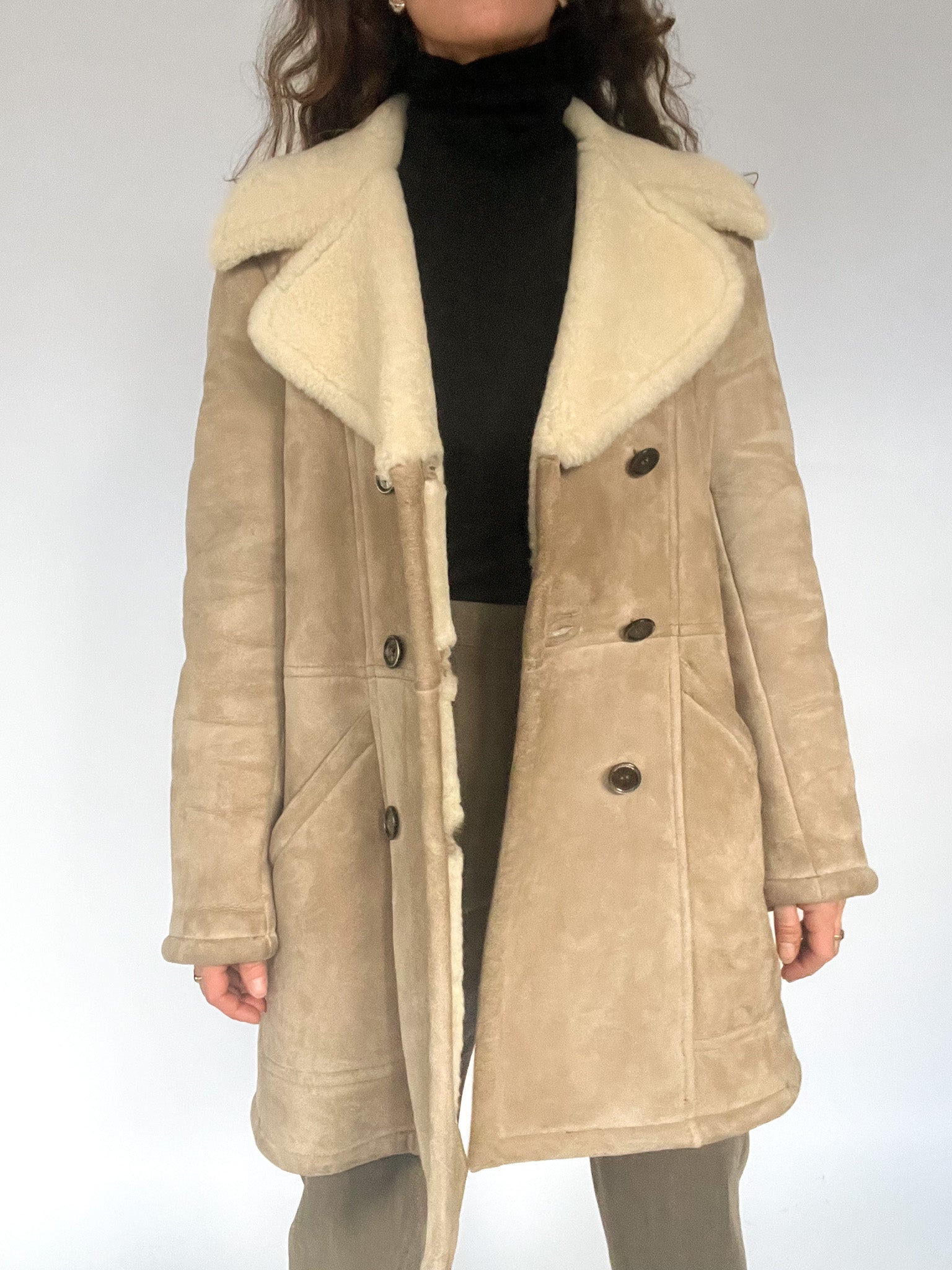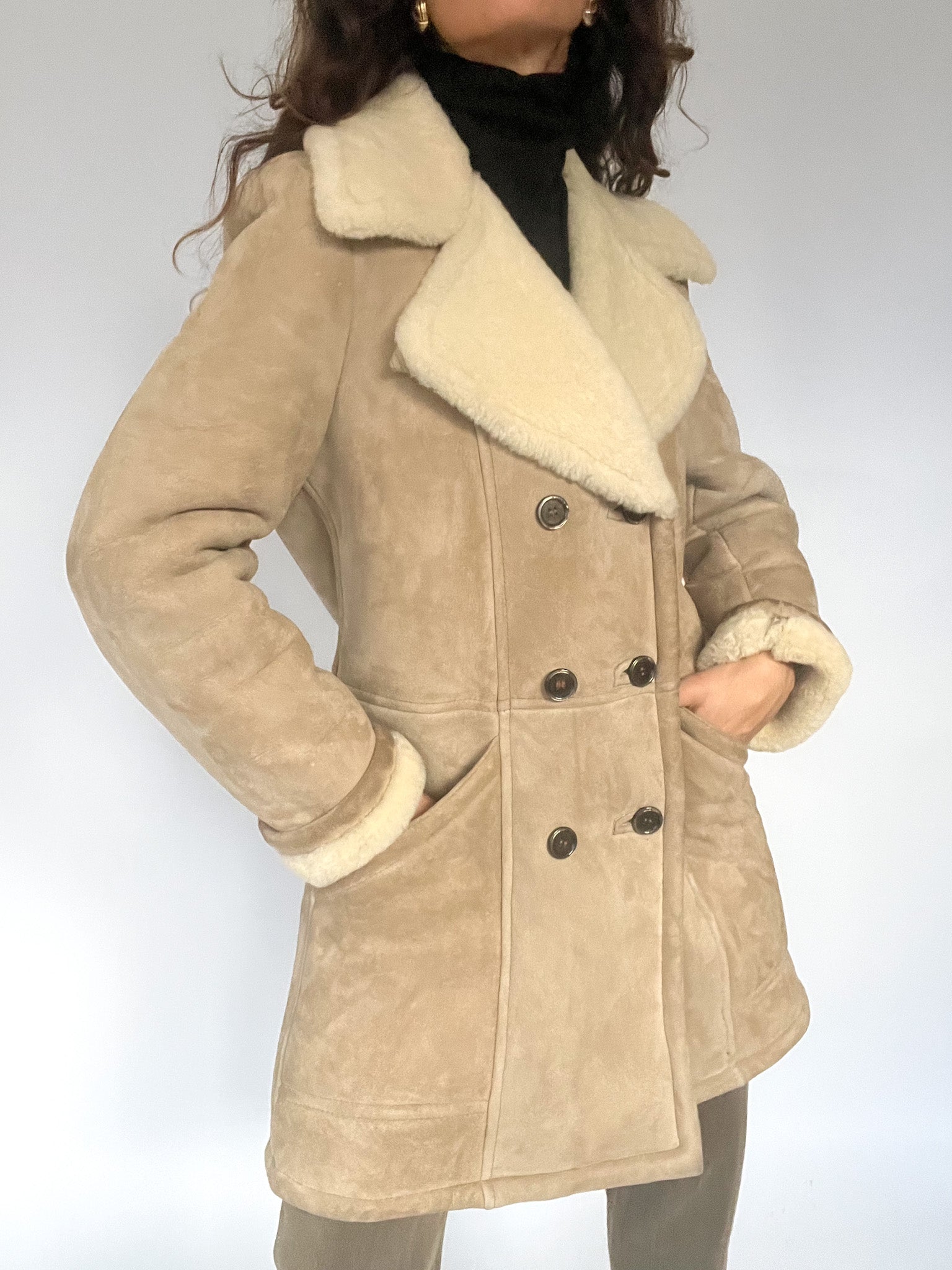 Vintage 90’s Beige Faux Fur Coat with Gold Statement Buttons