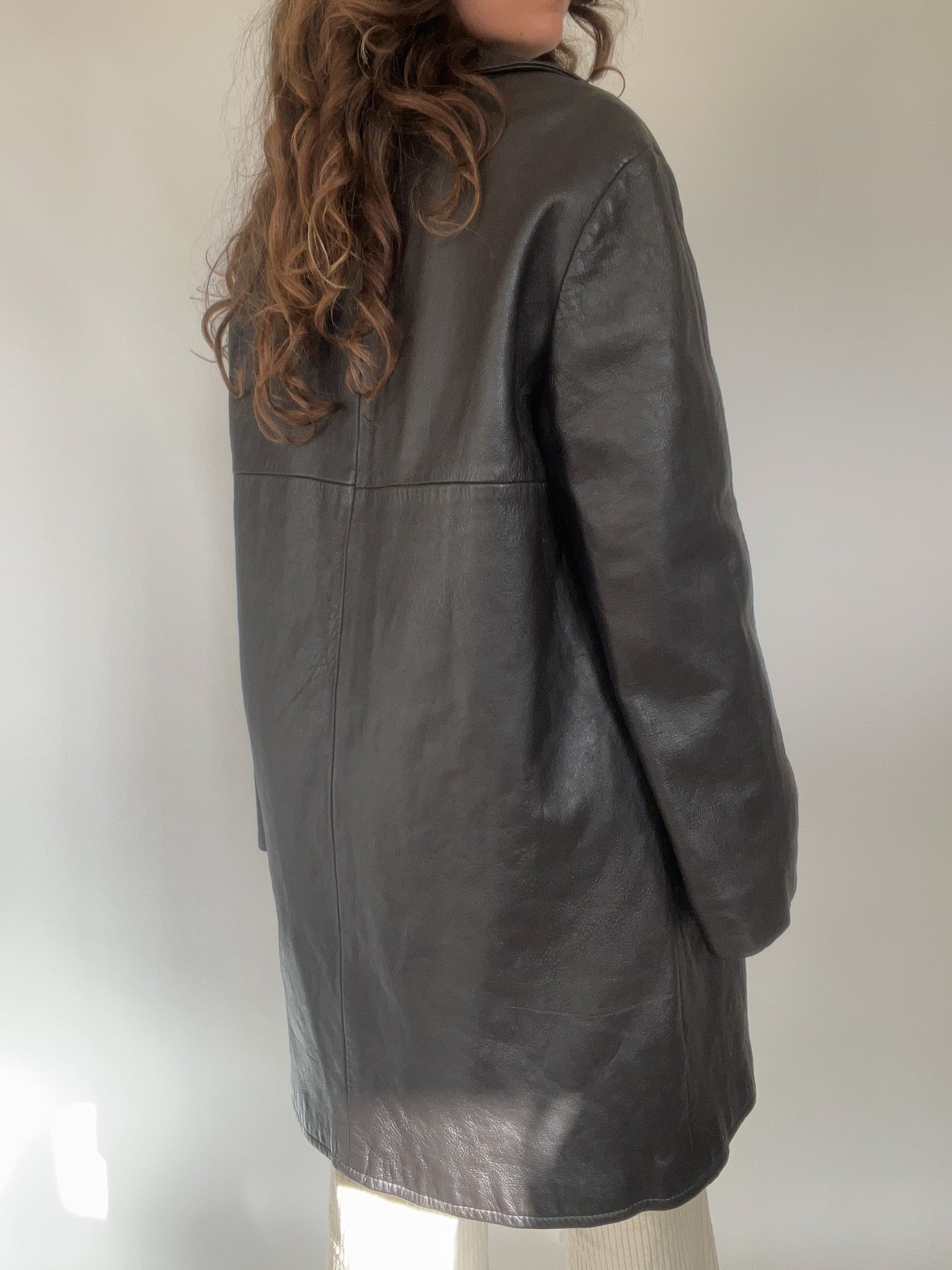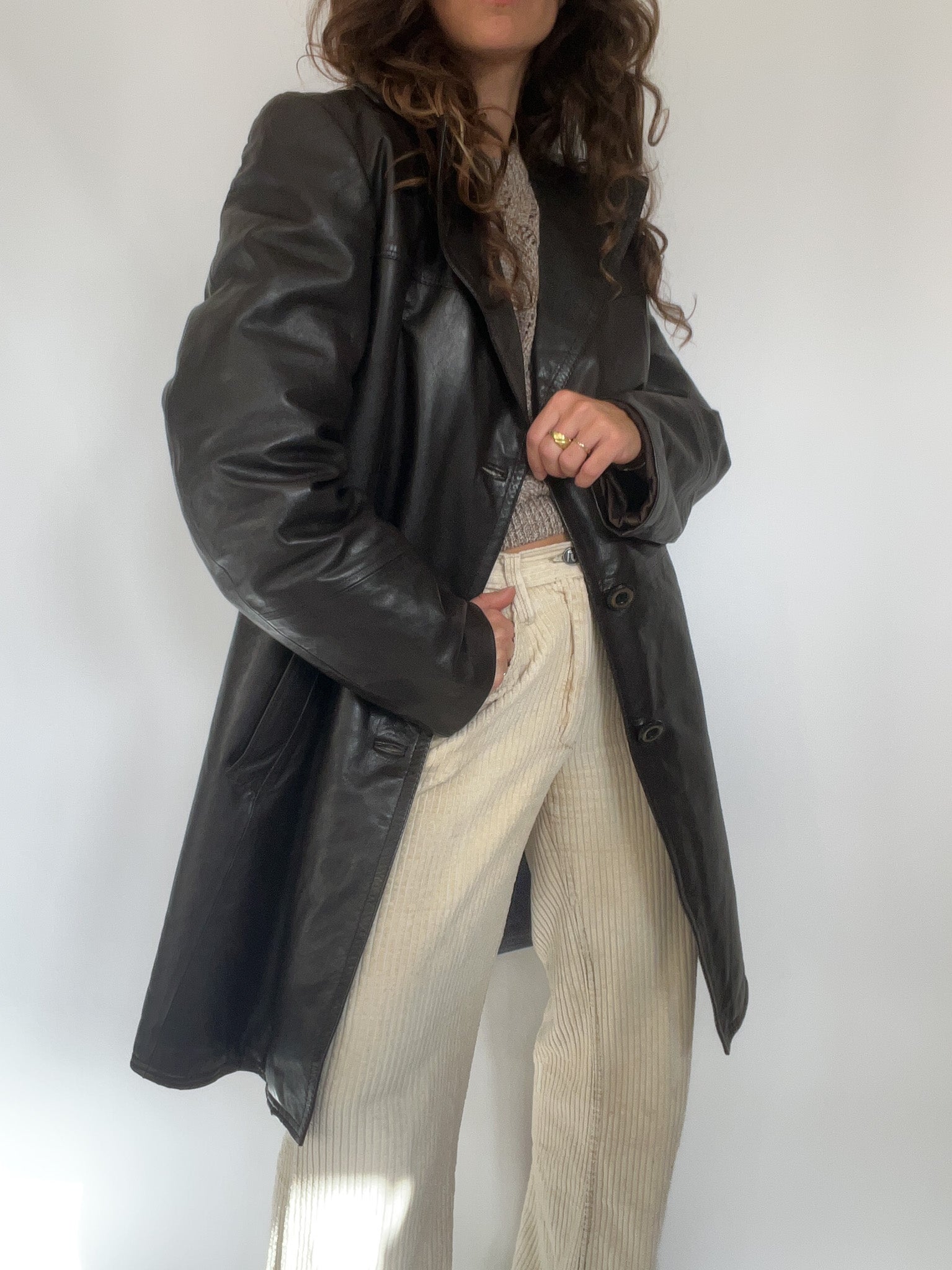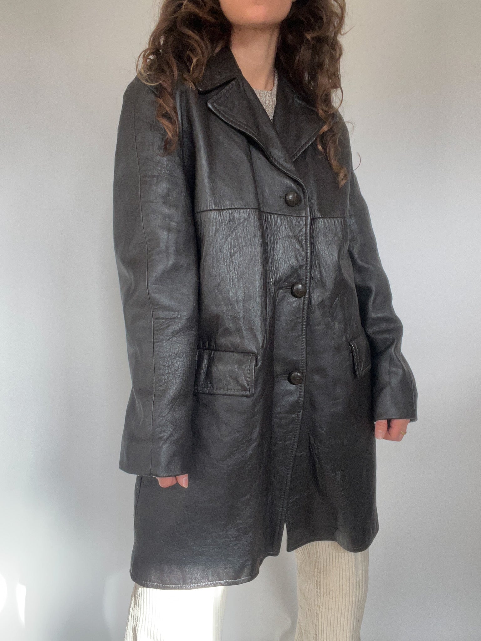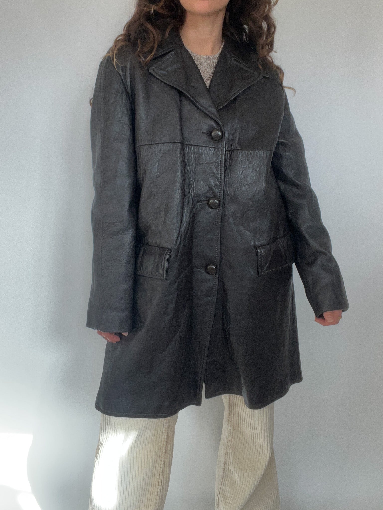 Vintage 80’s Dark Brown Long Leather Coat with Interior Lining