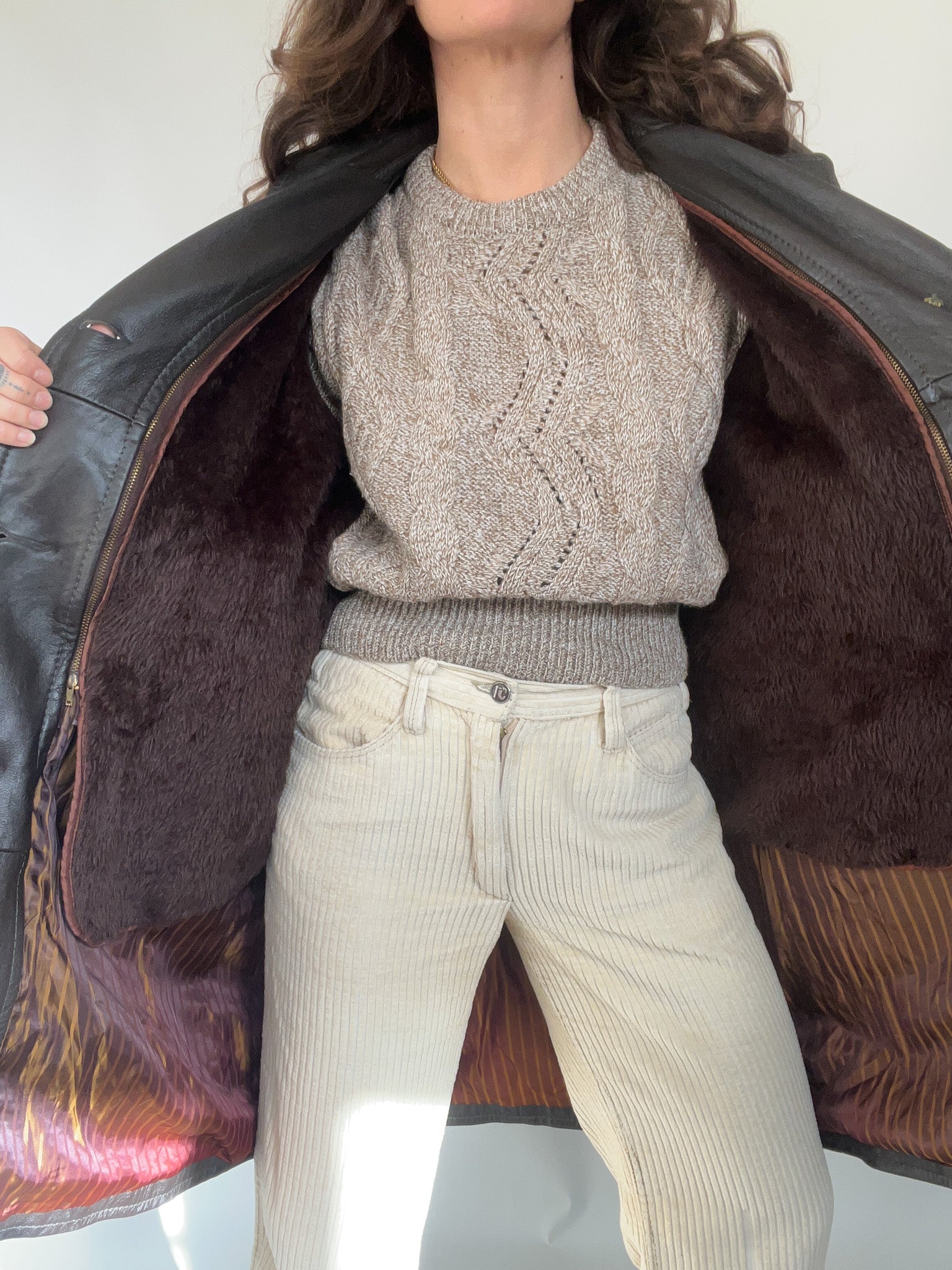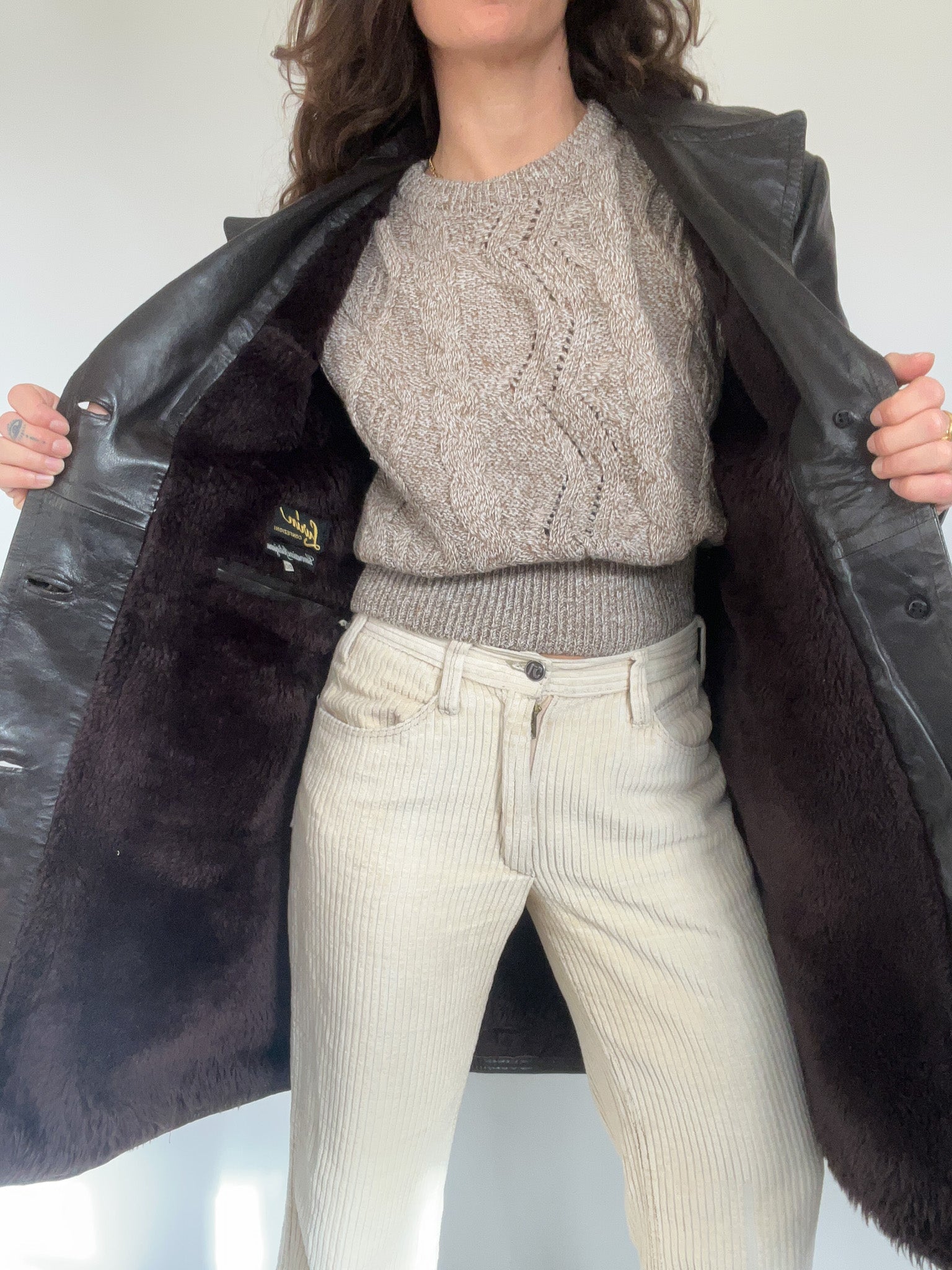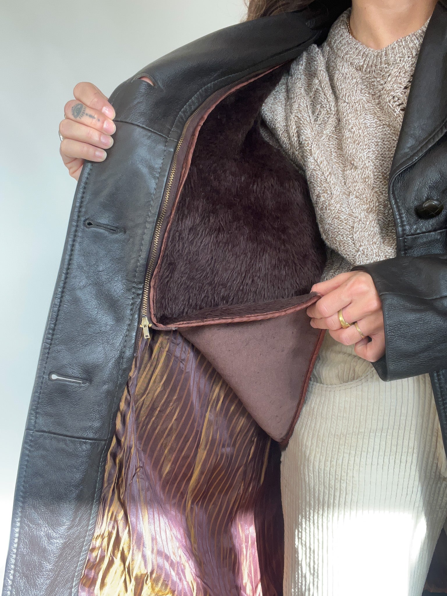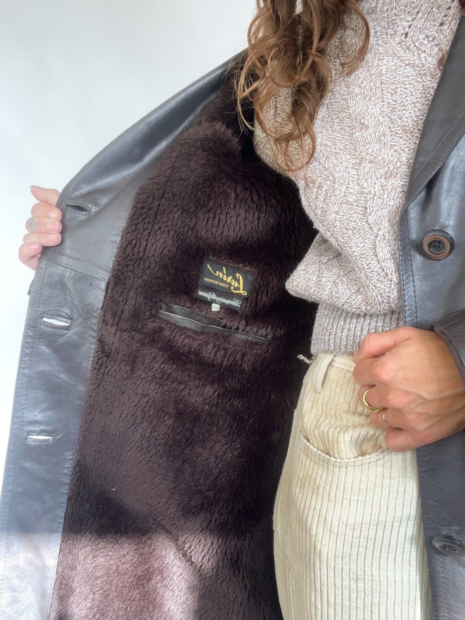 Vintage 80’s Dark Brown Long Leather Coat with Removable Lining
