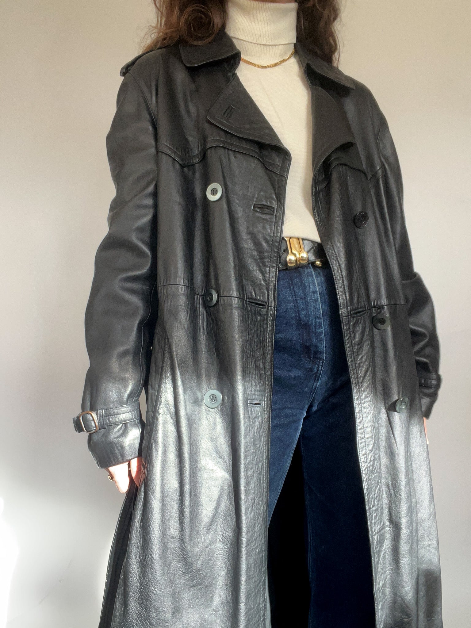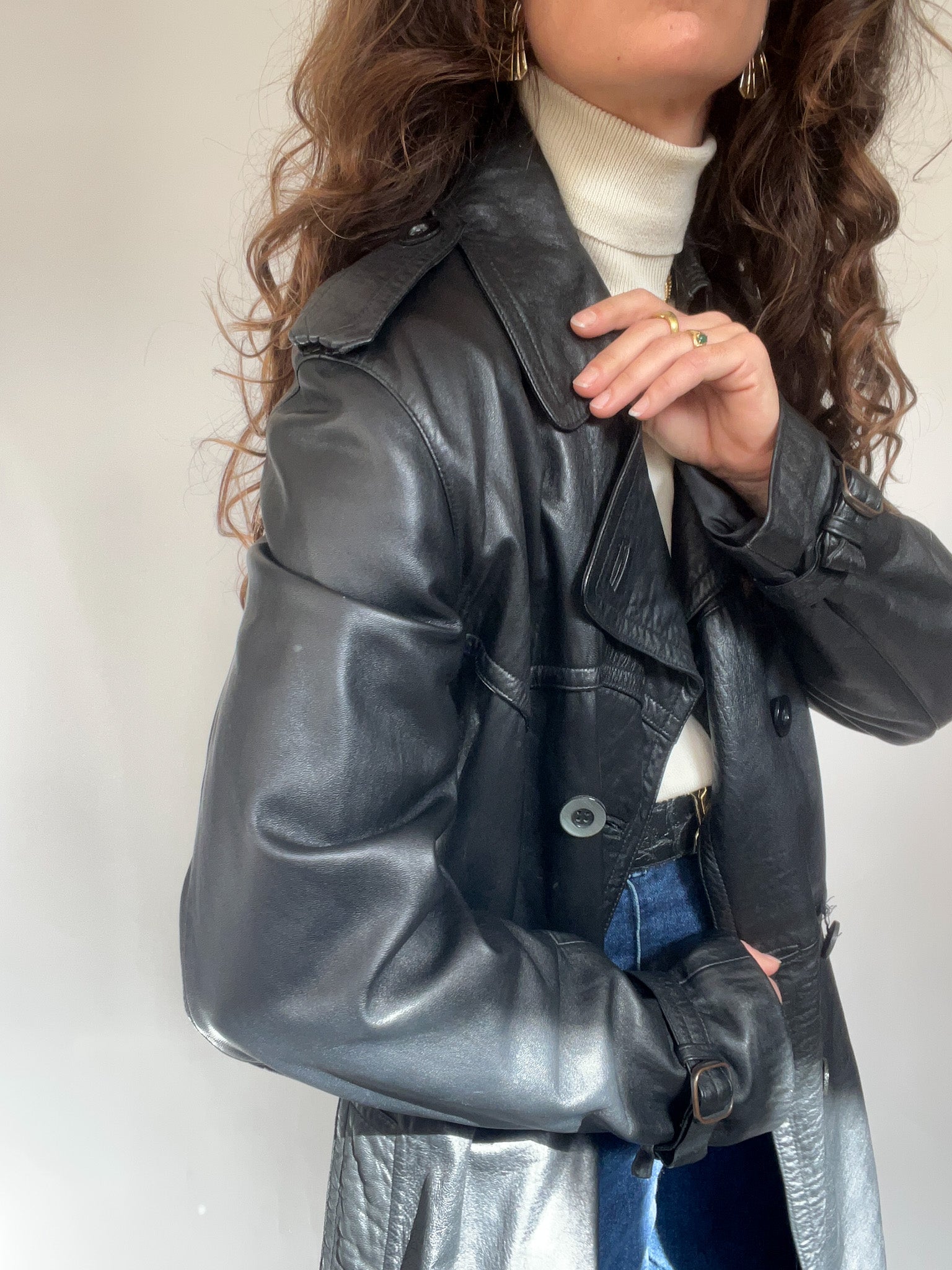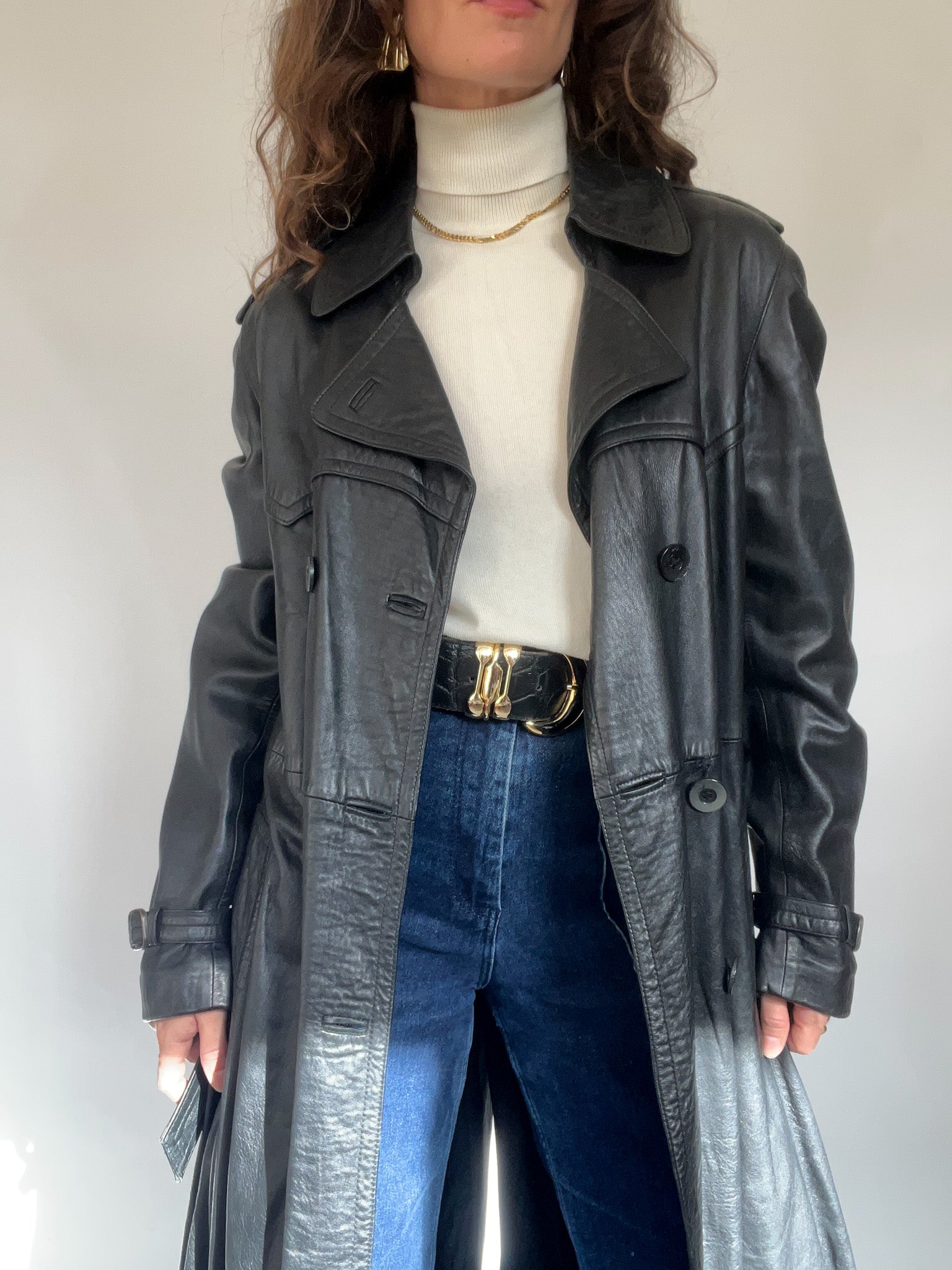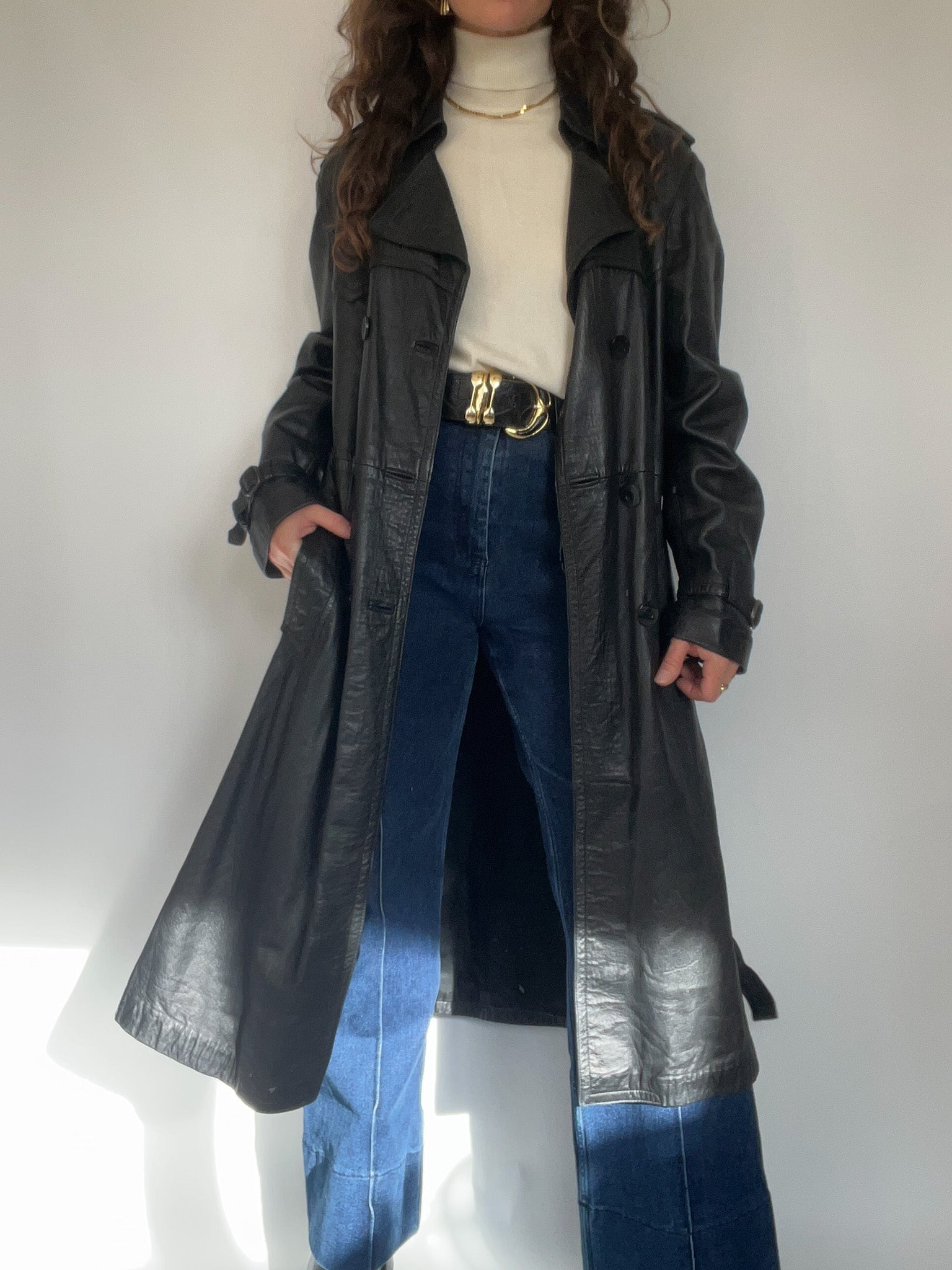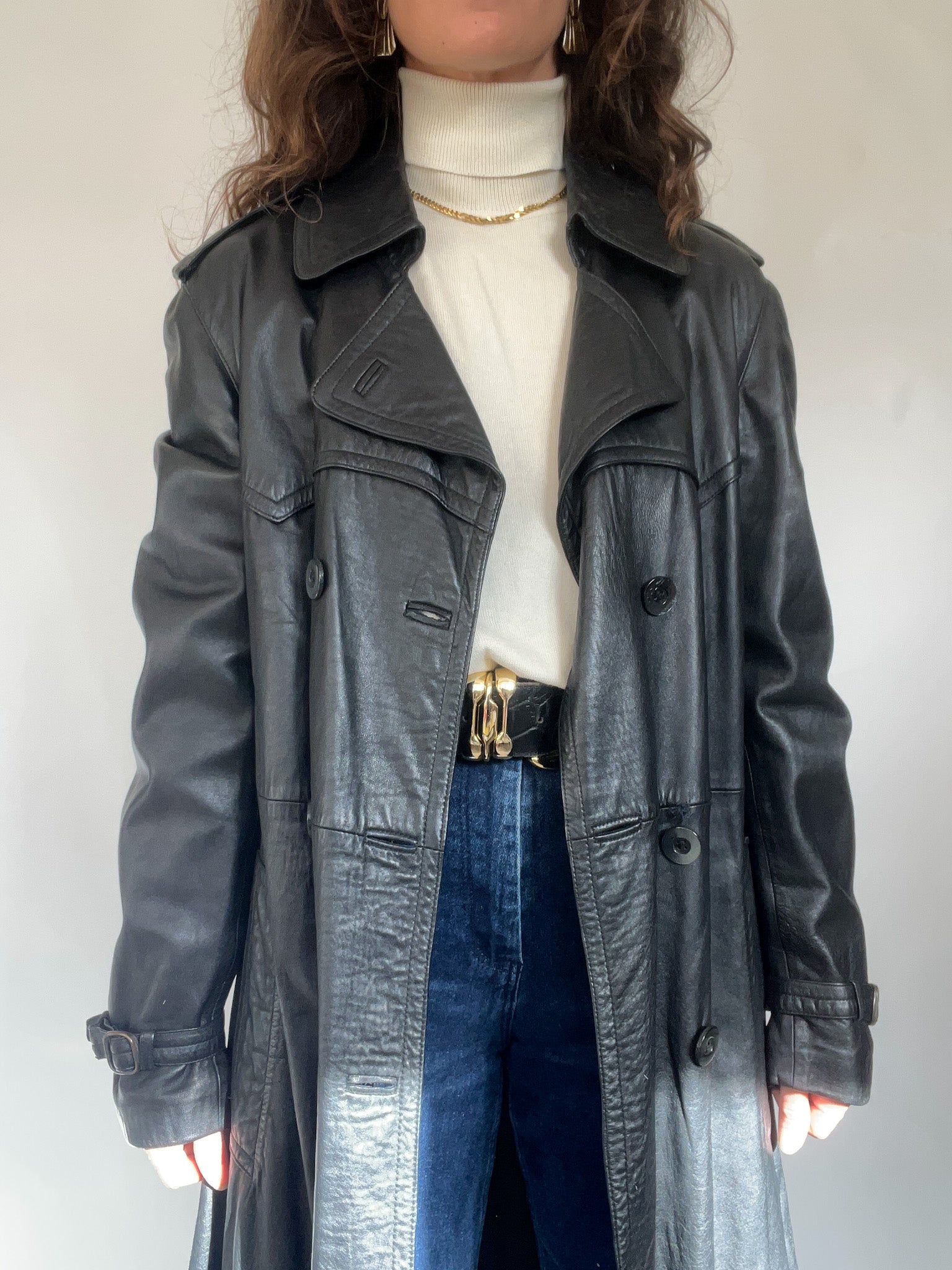 Vintage 80’s Black Double-Breasted Leather Trench Coat
