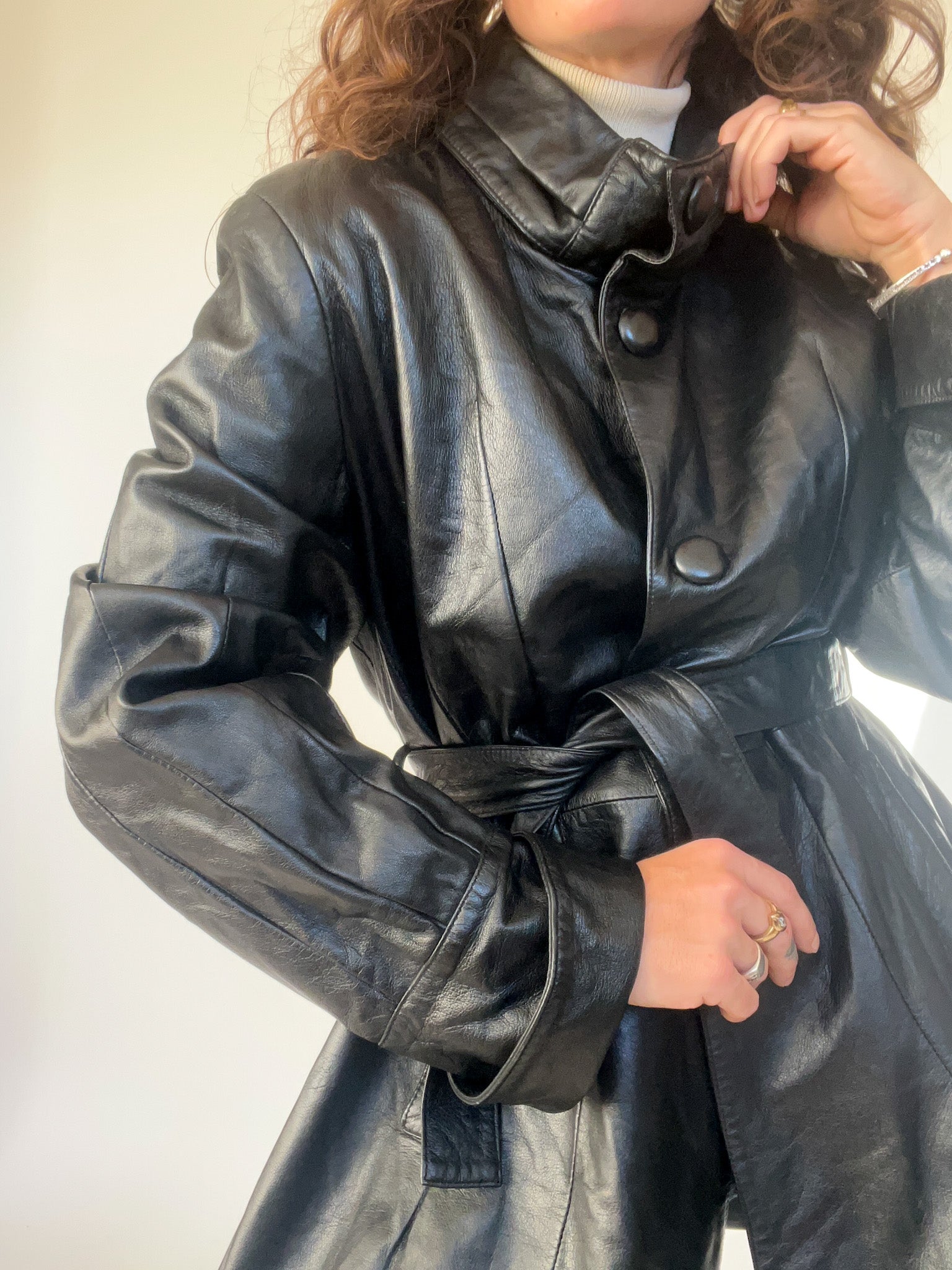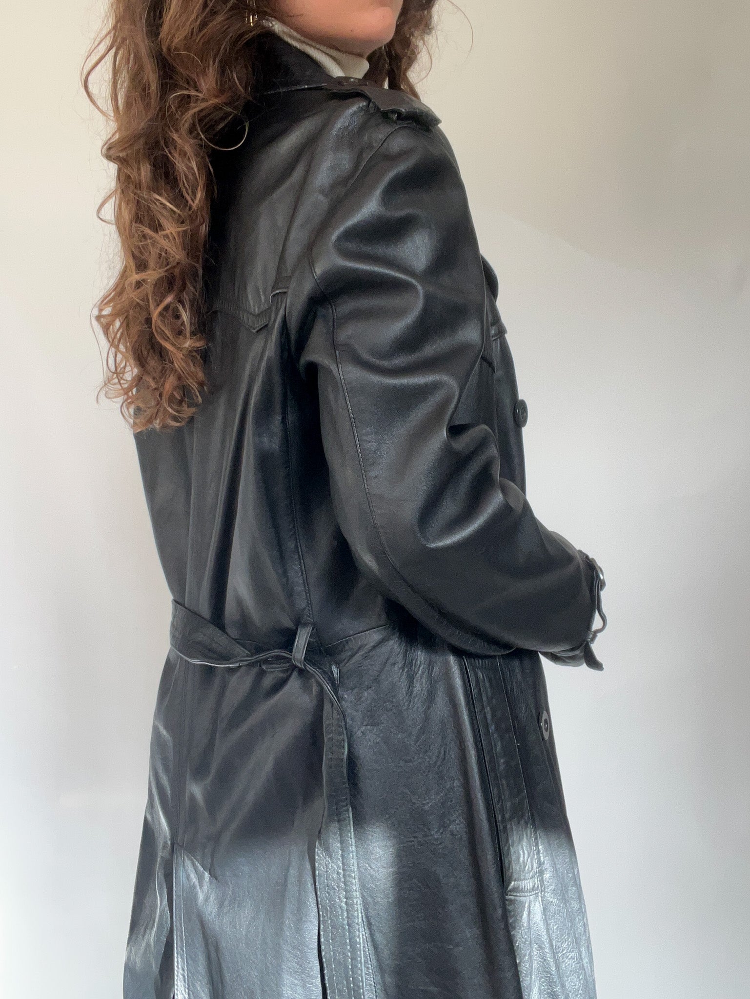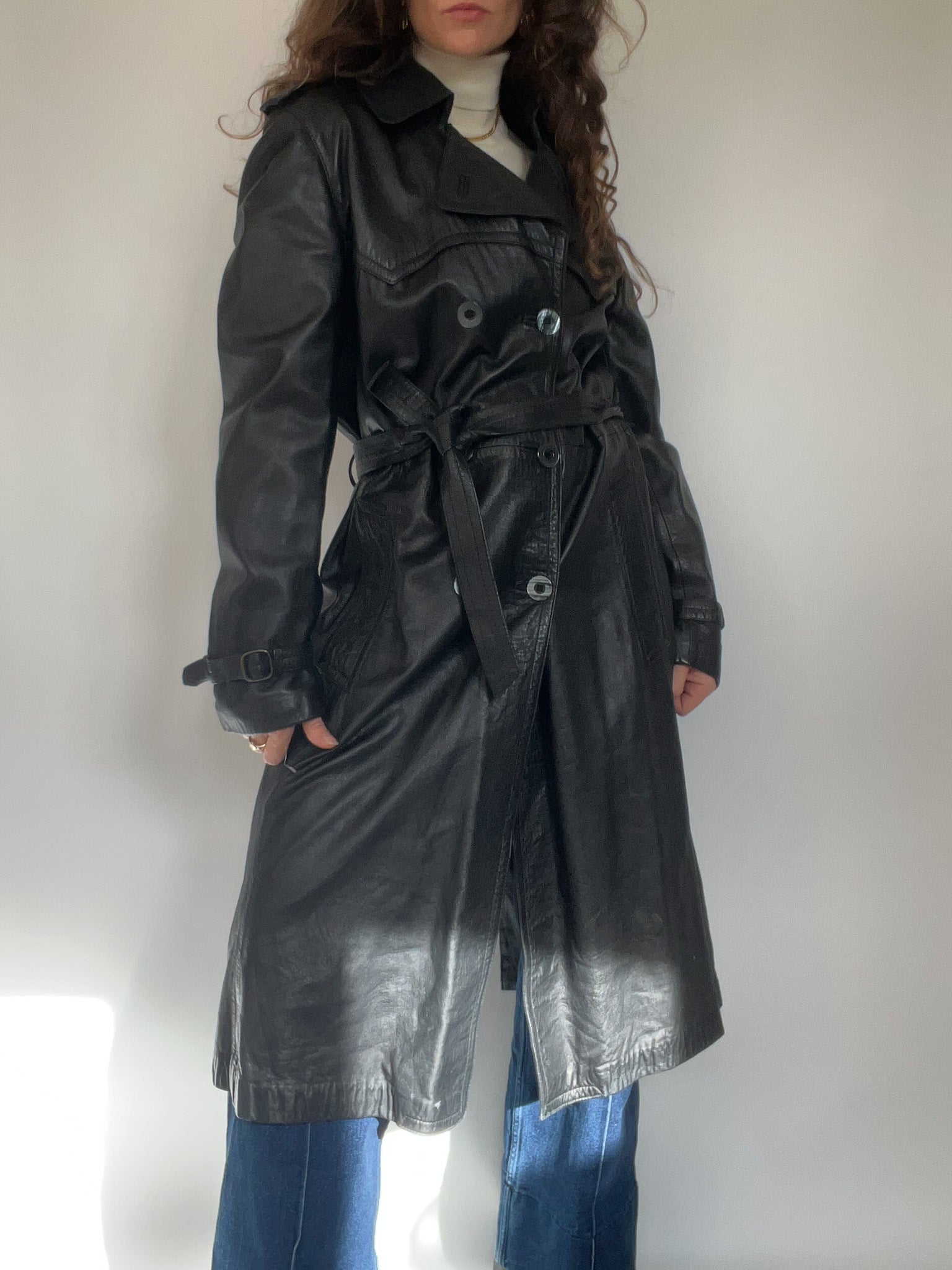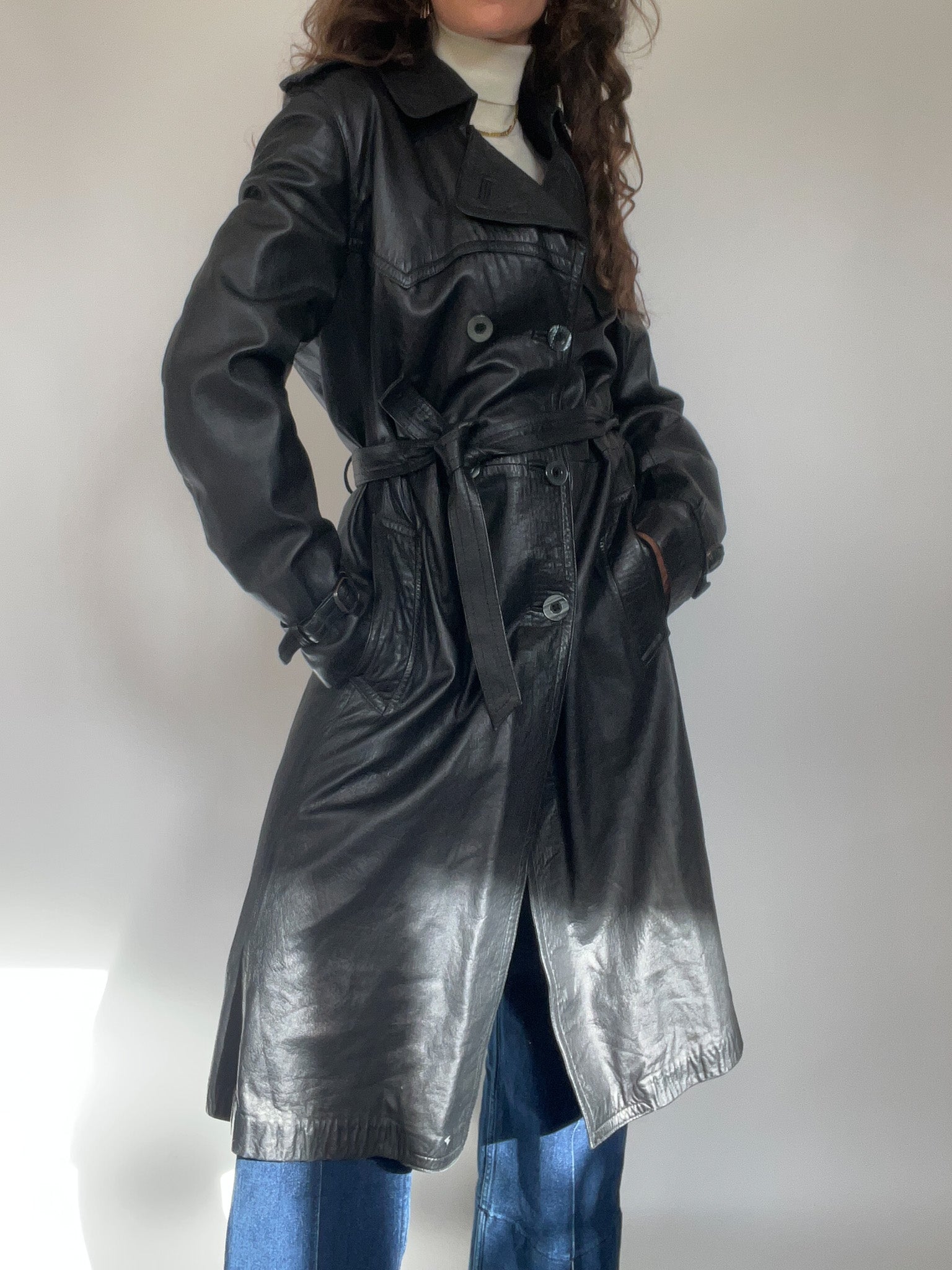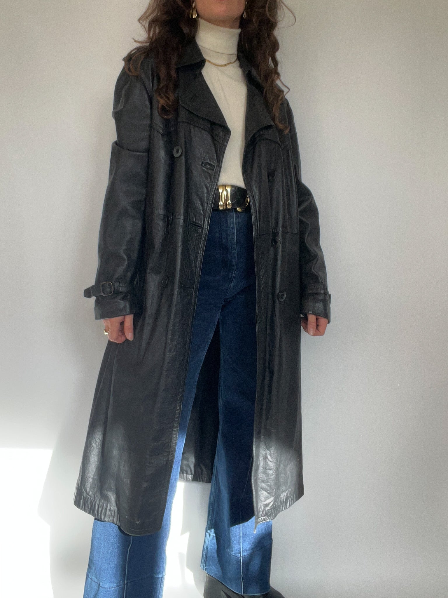 Vintage 80’s Black Double-Breasted Leather Trench Coat
