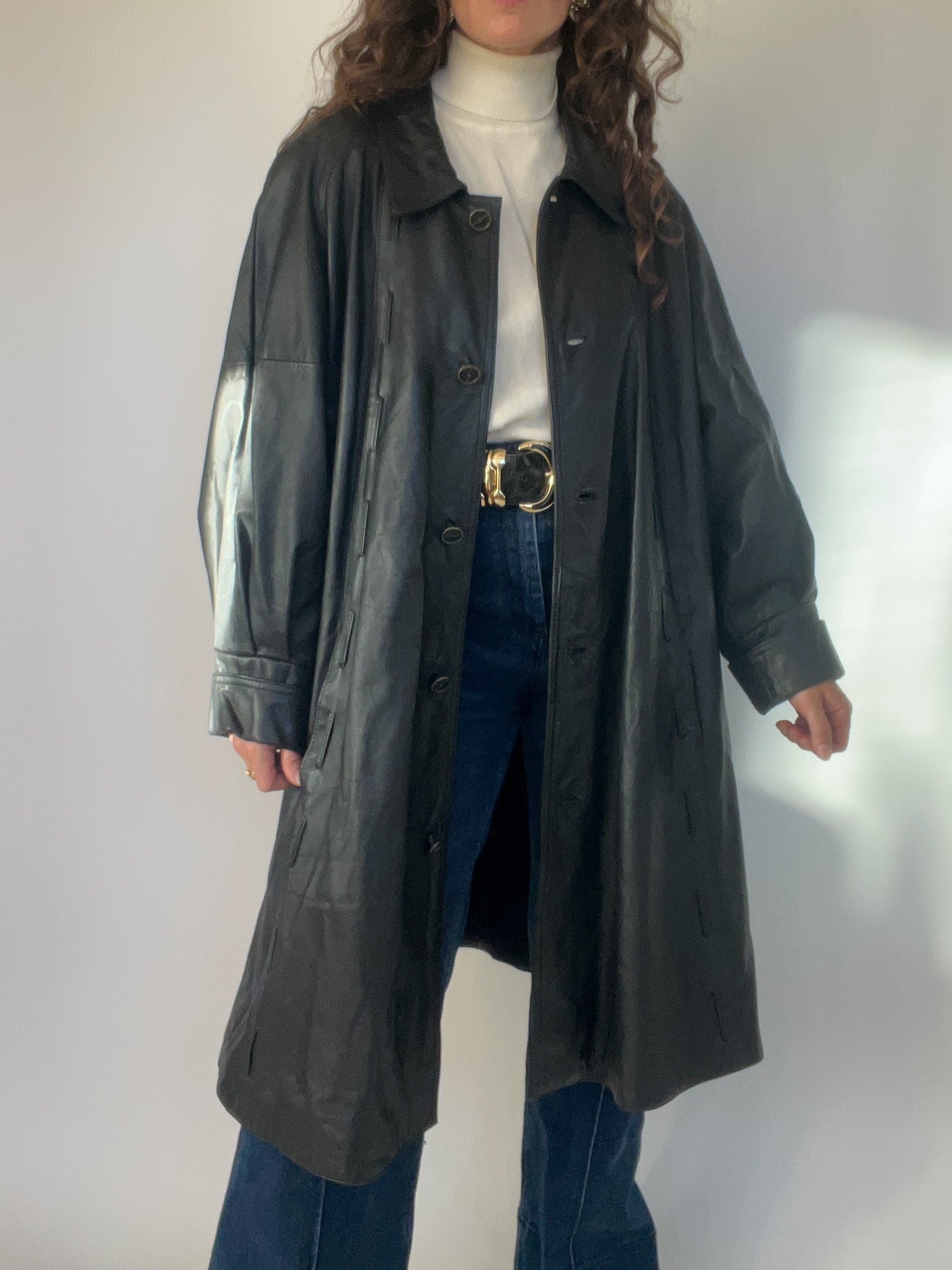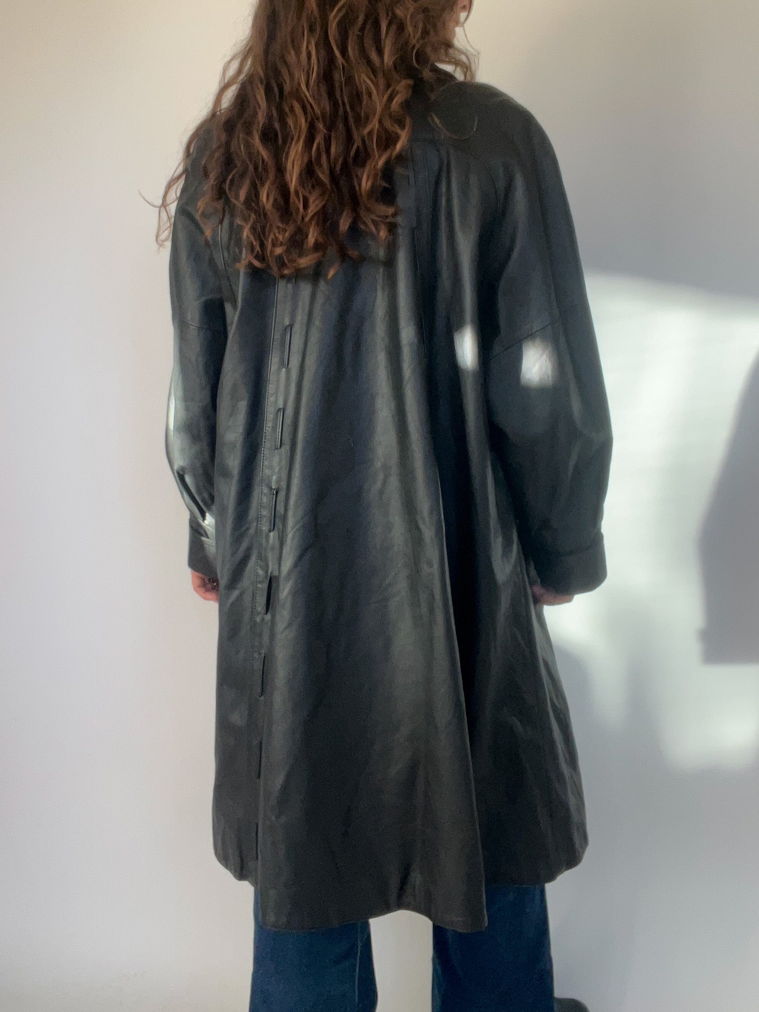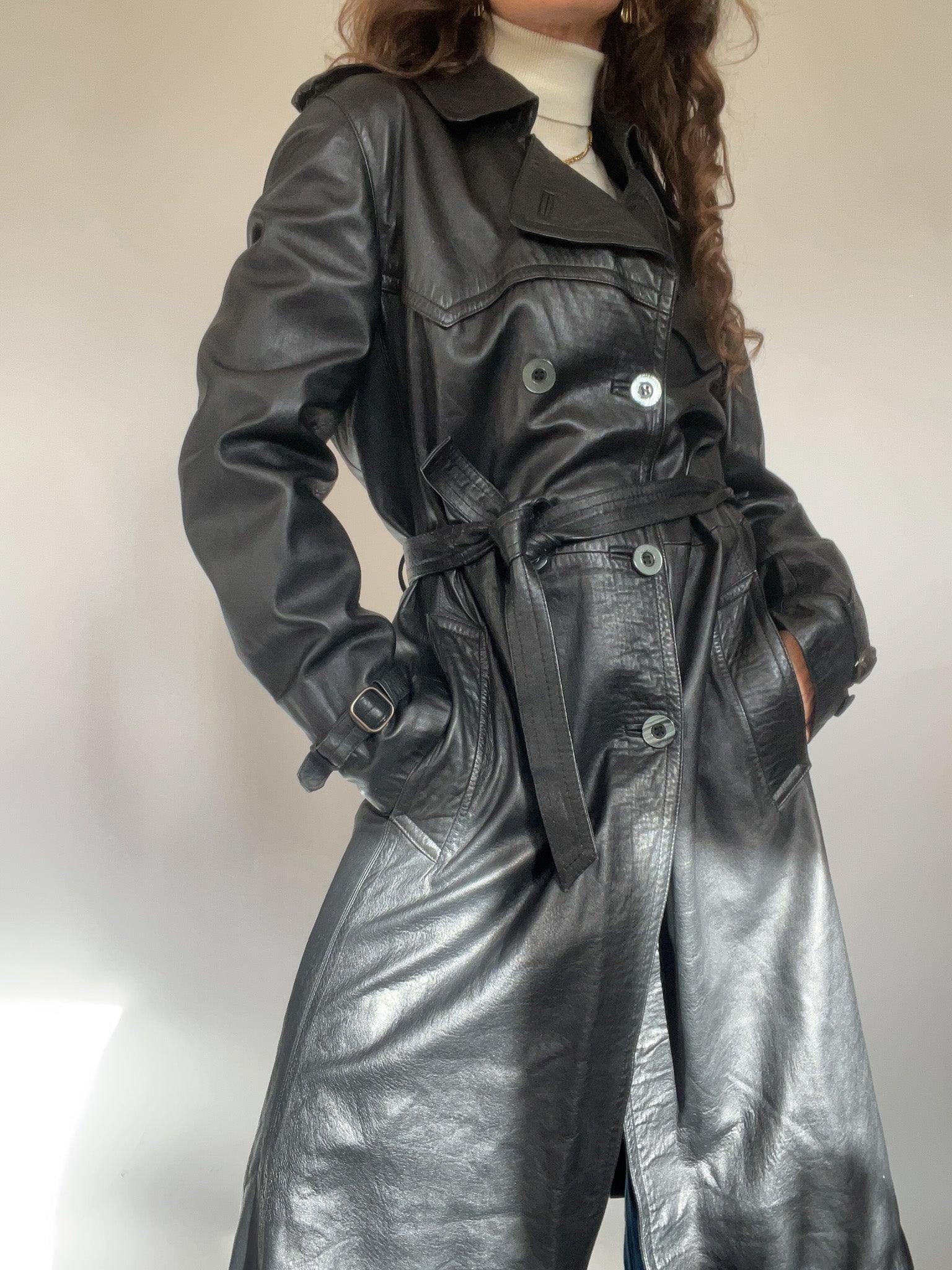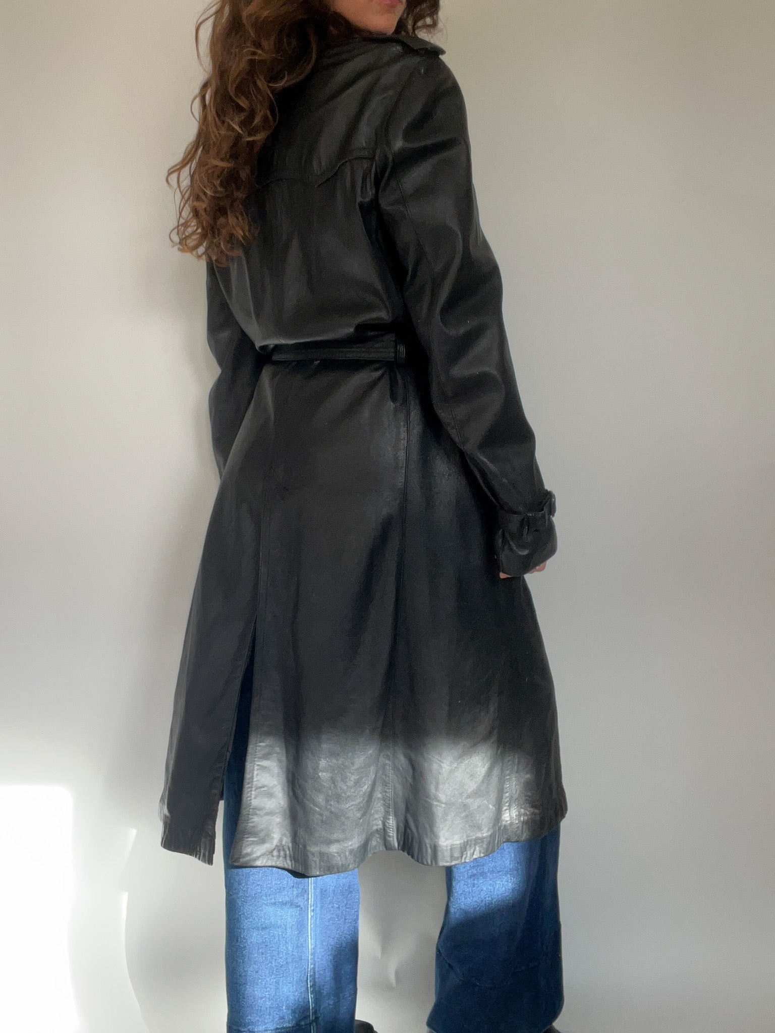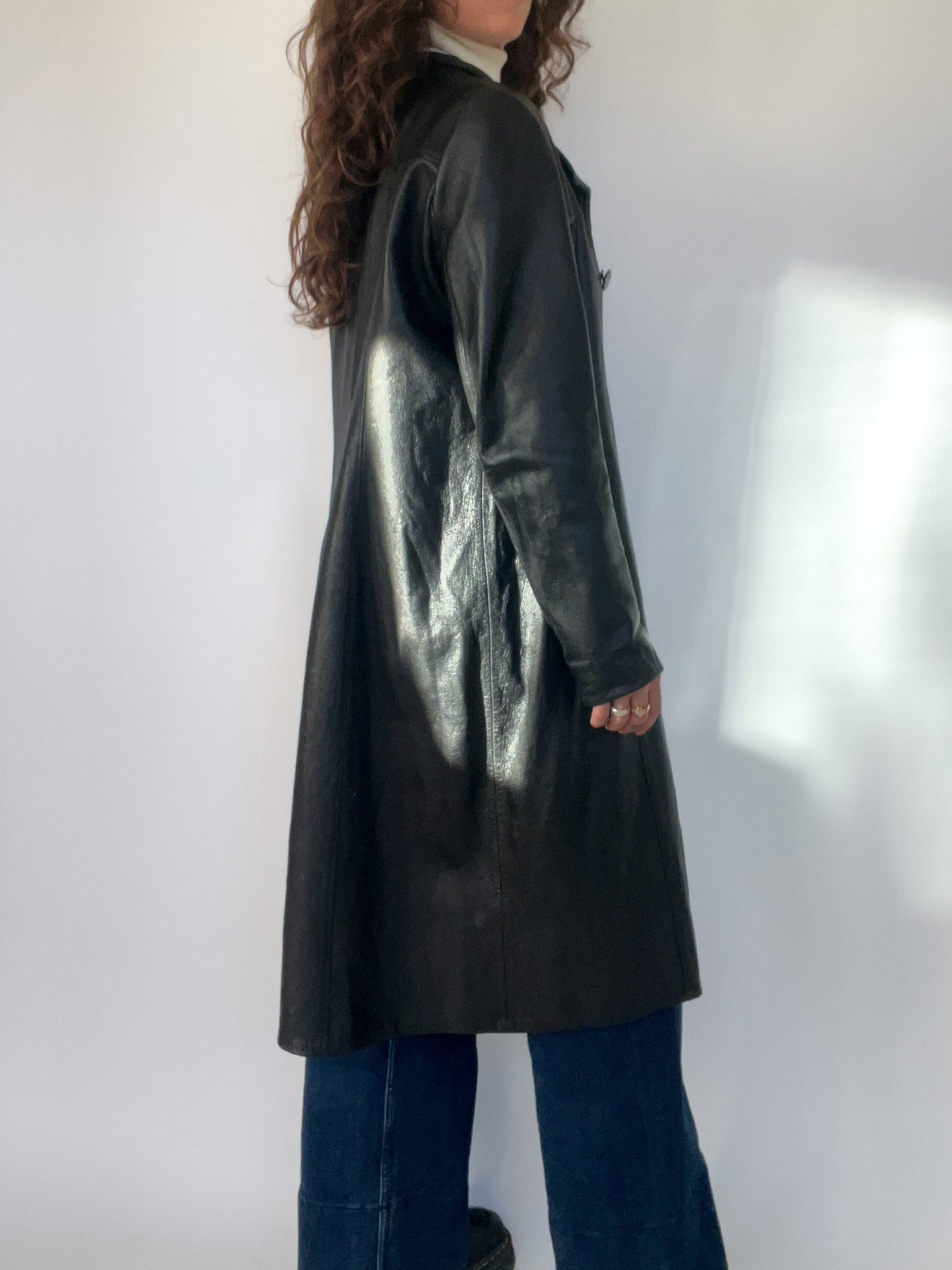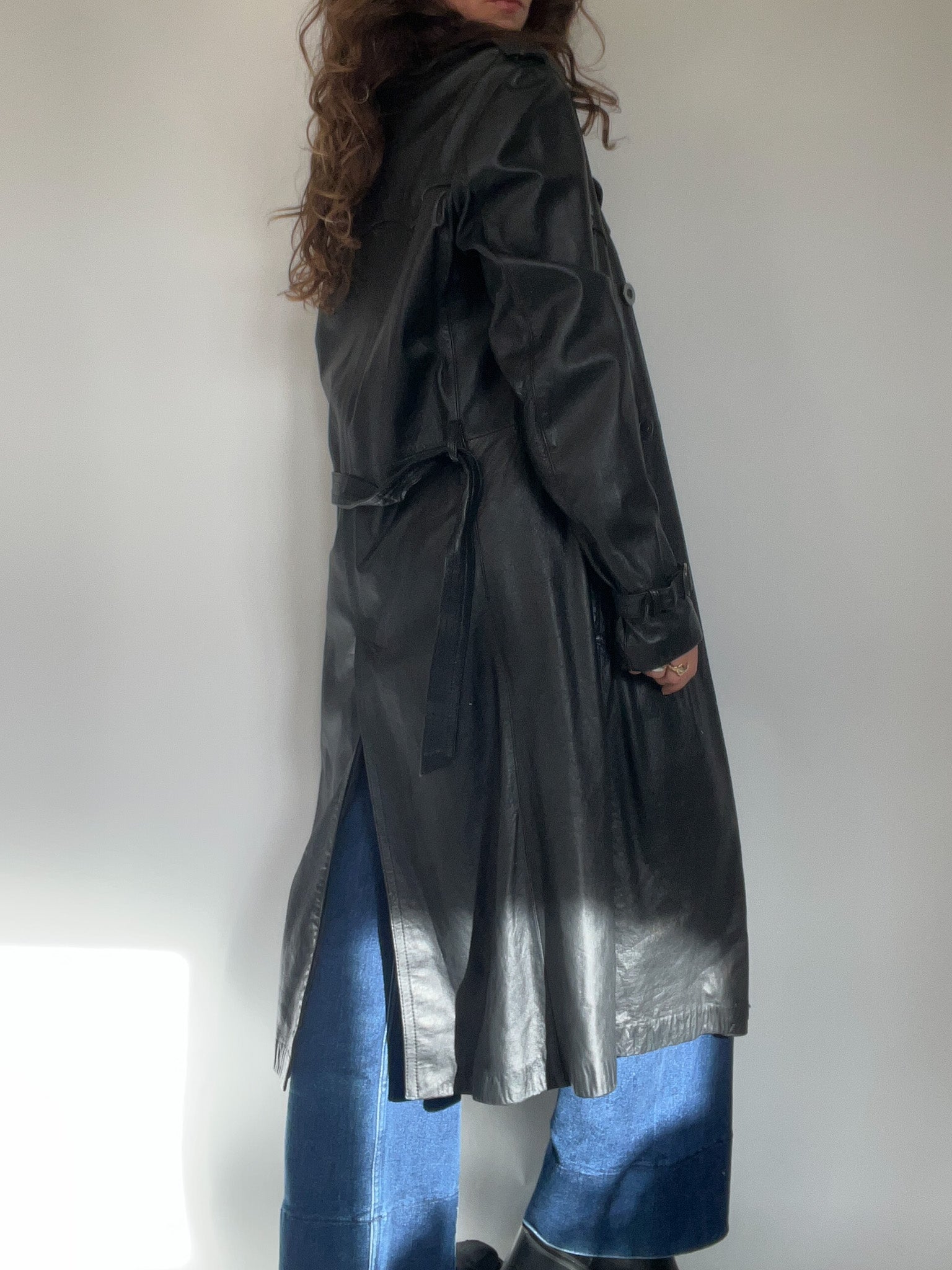 Vintage 80’s Black Double-Breasted Leather Trench Coat