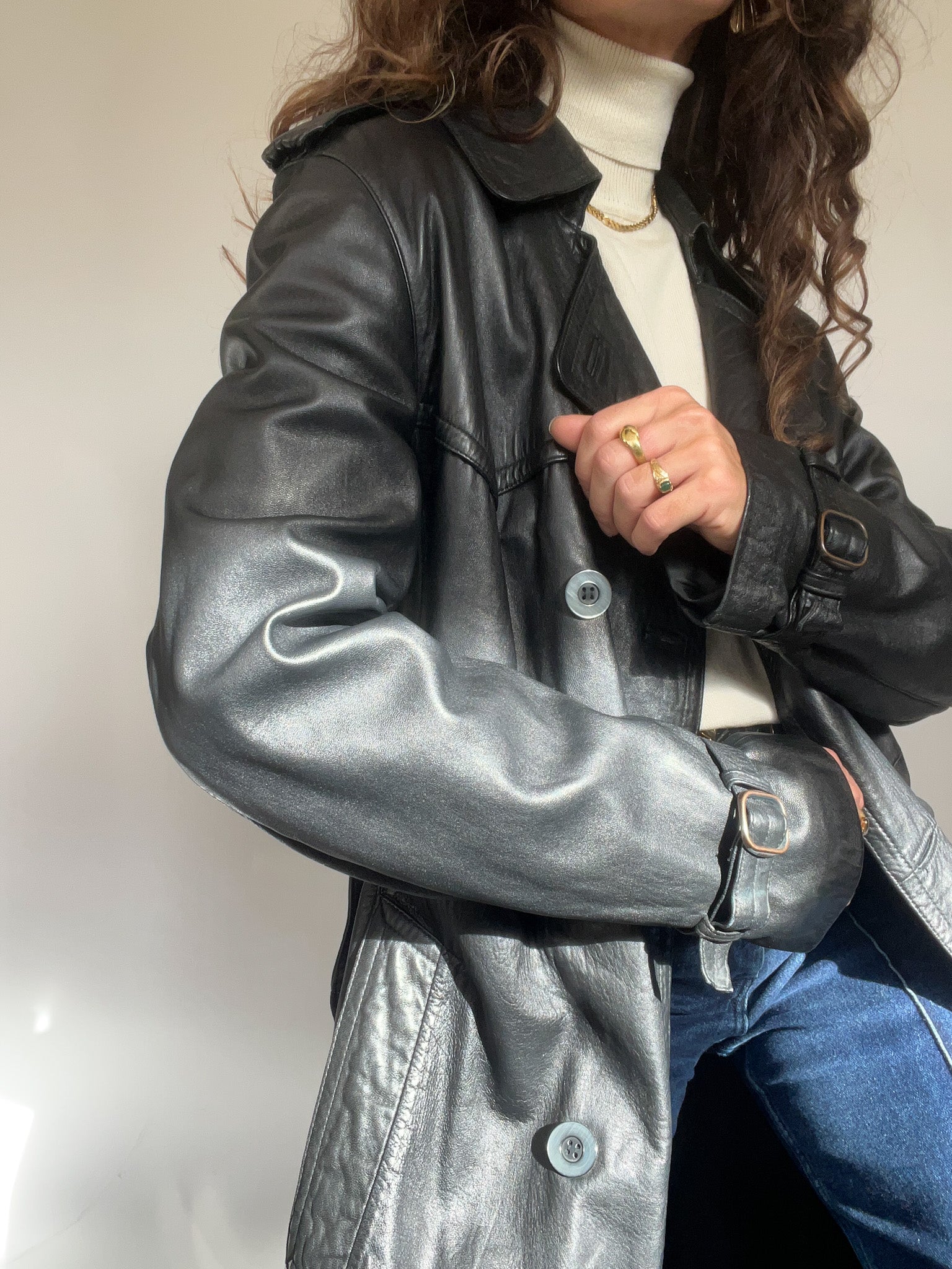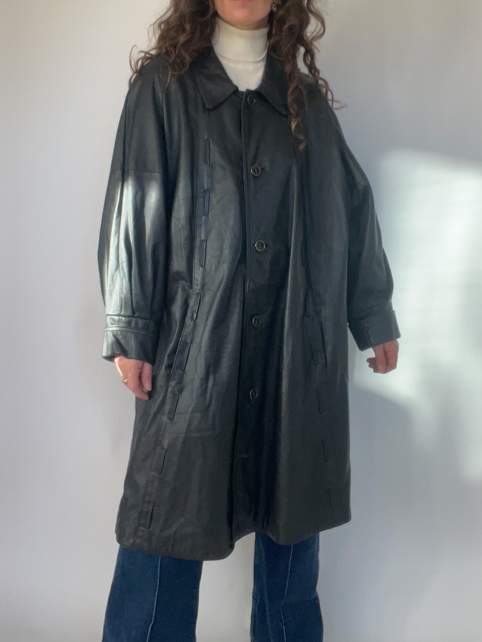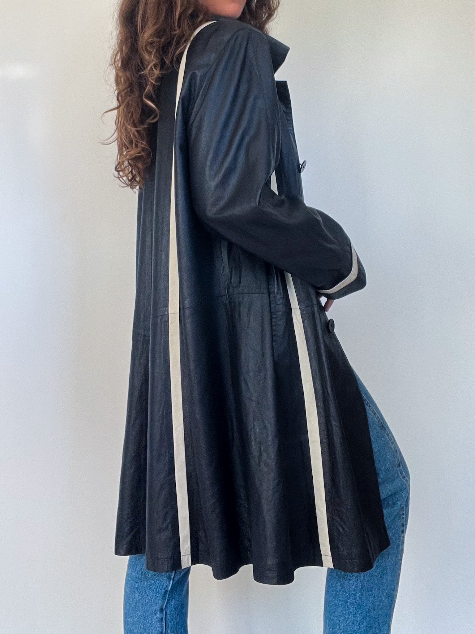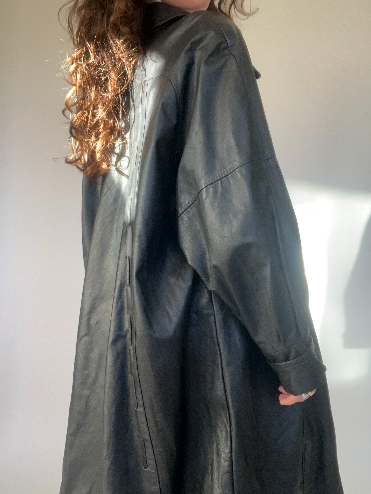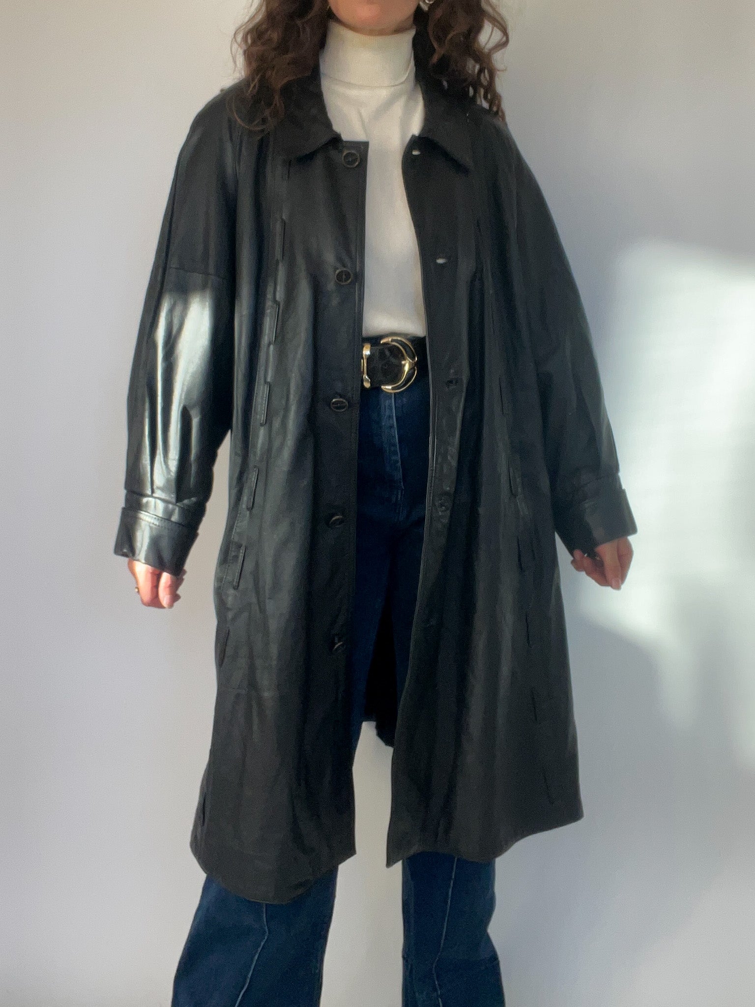 Vintage 80’s Black Double-Breasted Leather Trench Coat