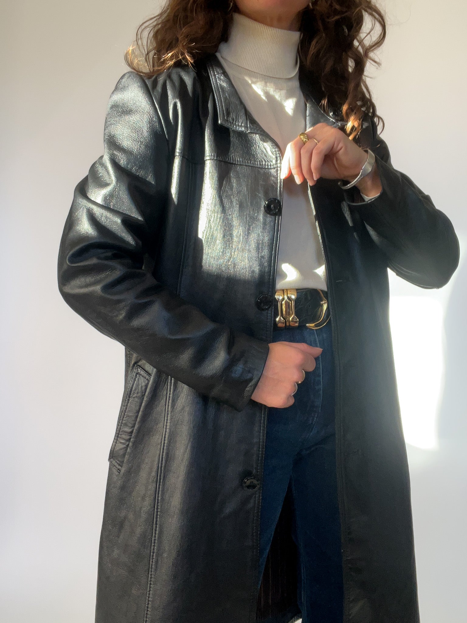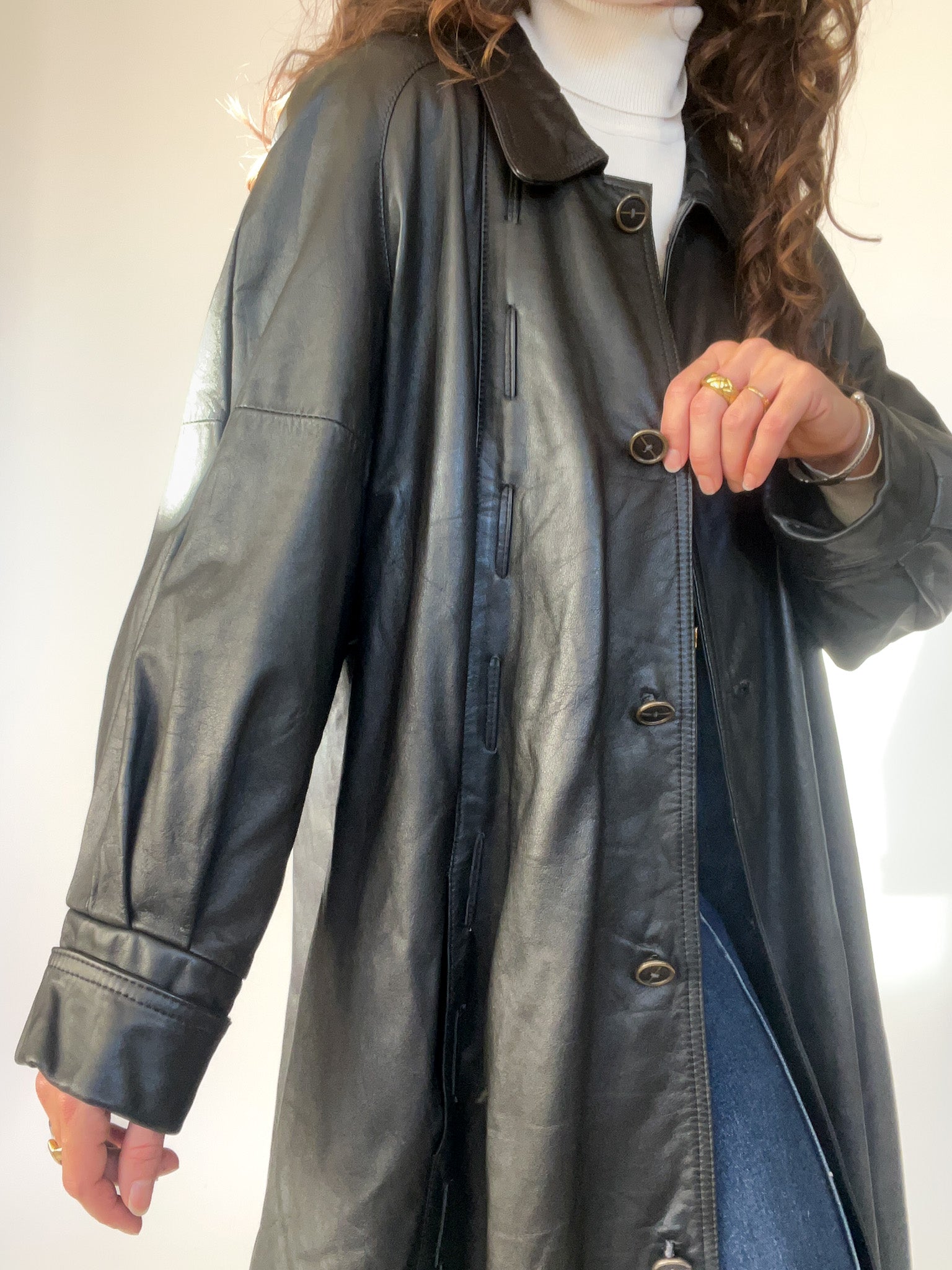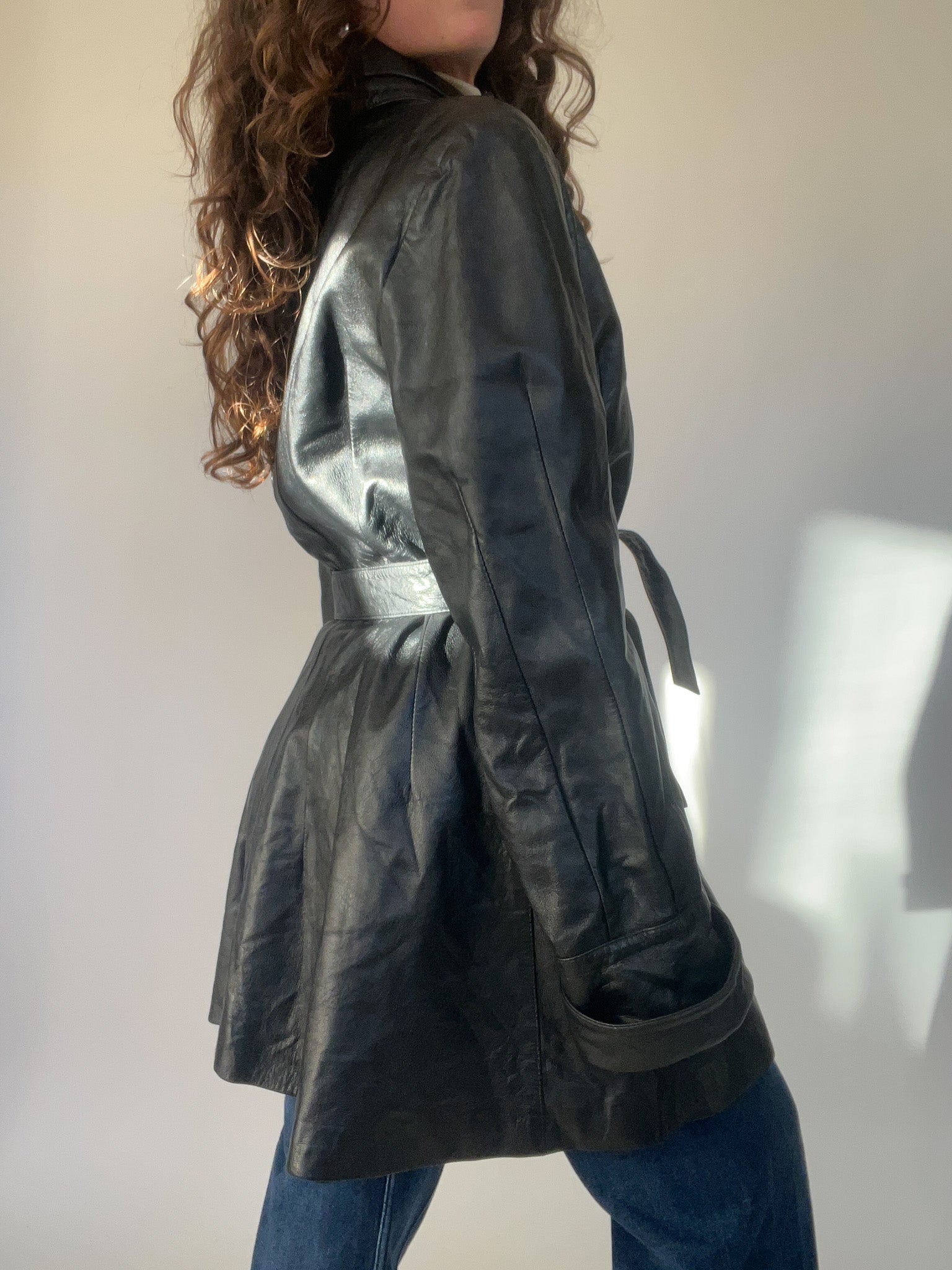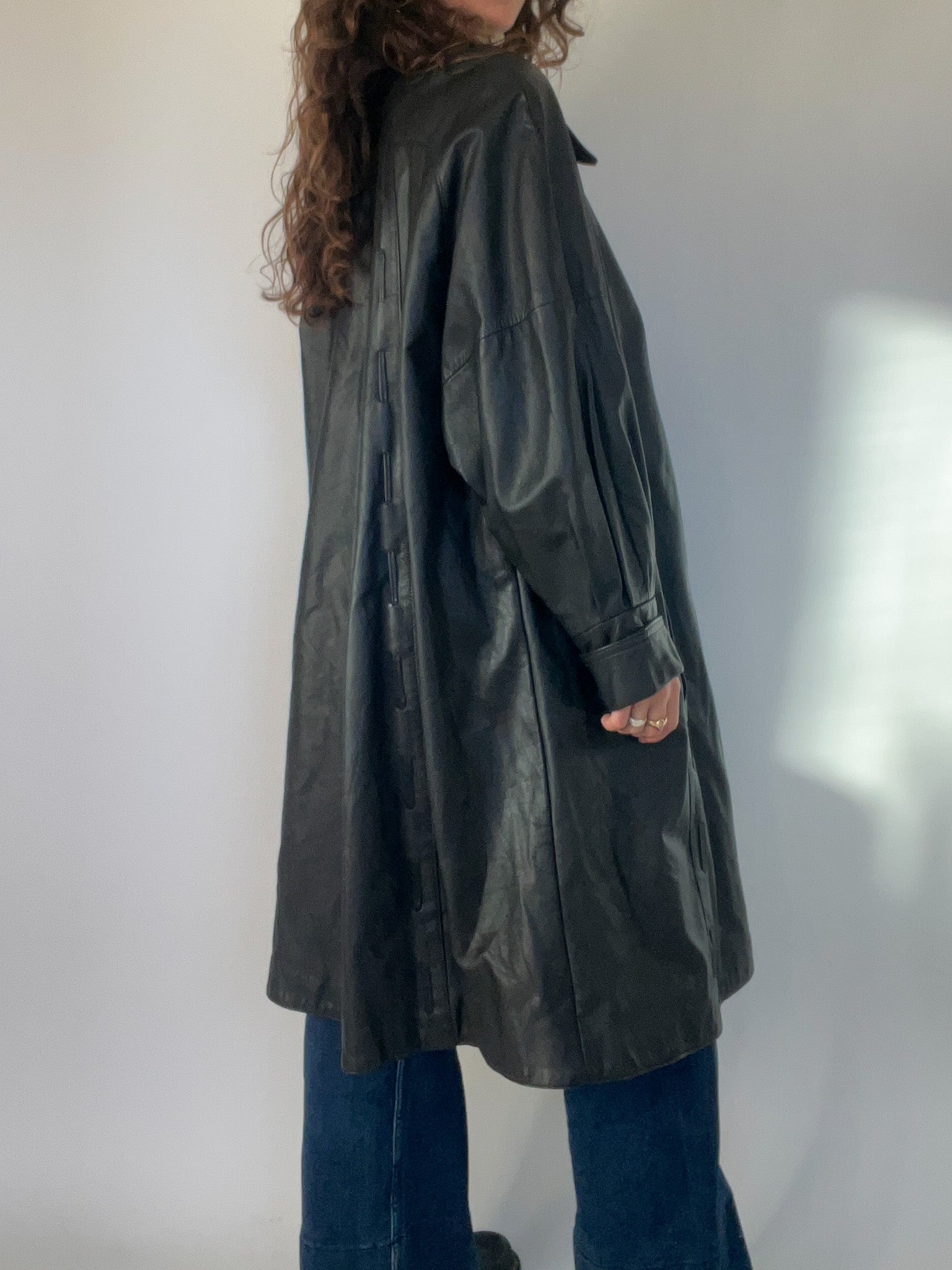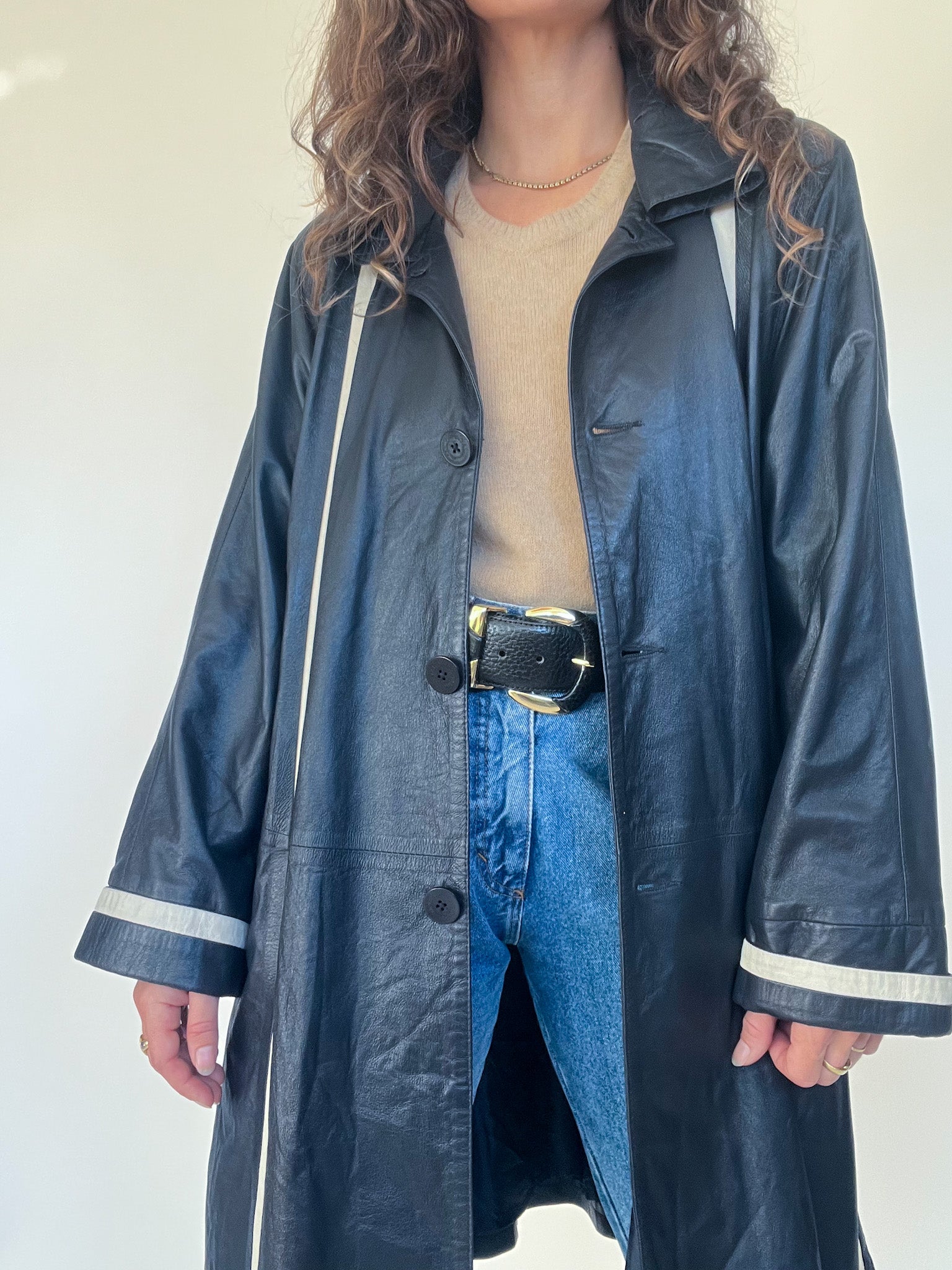 Vintage 80’s Black Double-Breasted Leather Trench Coat
