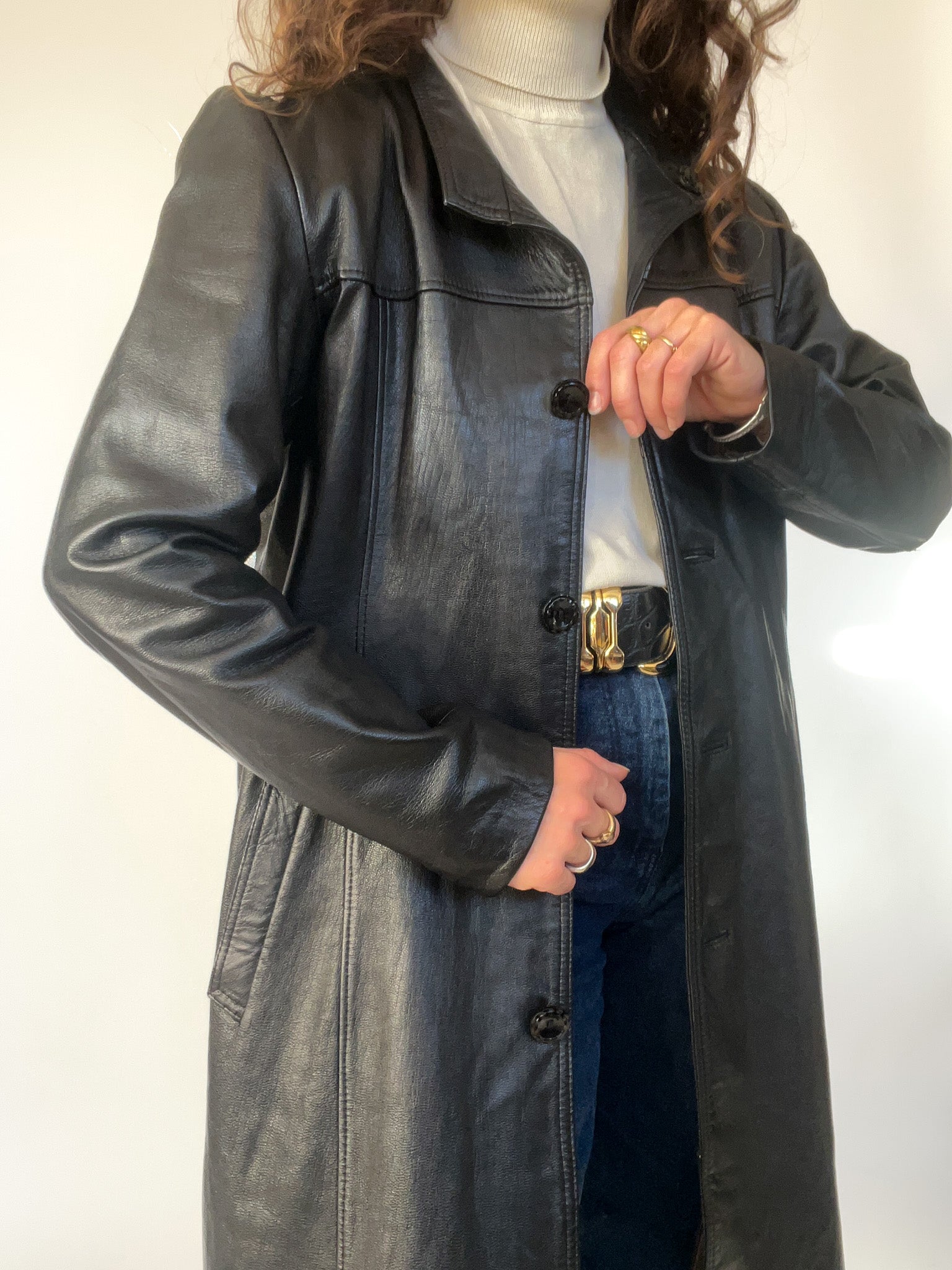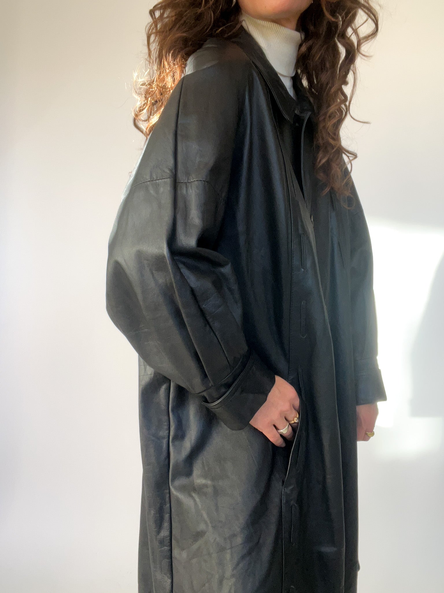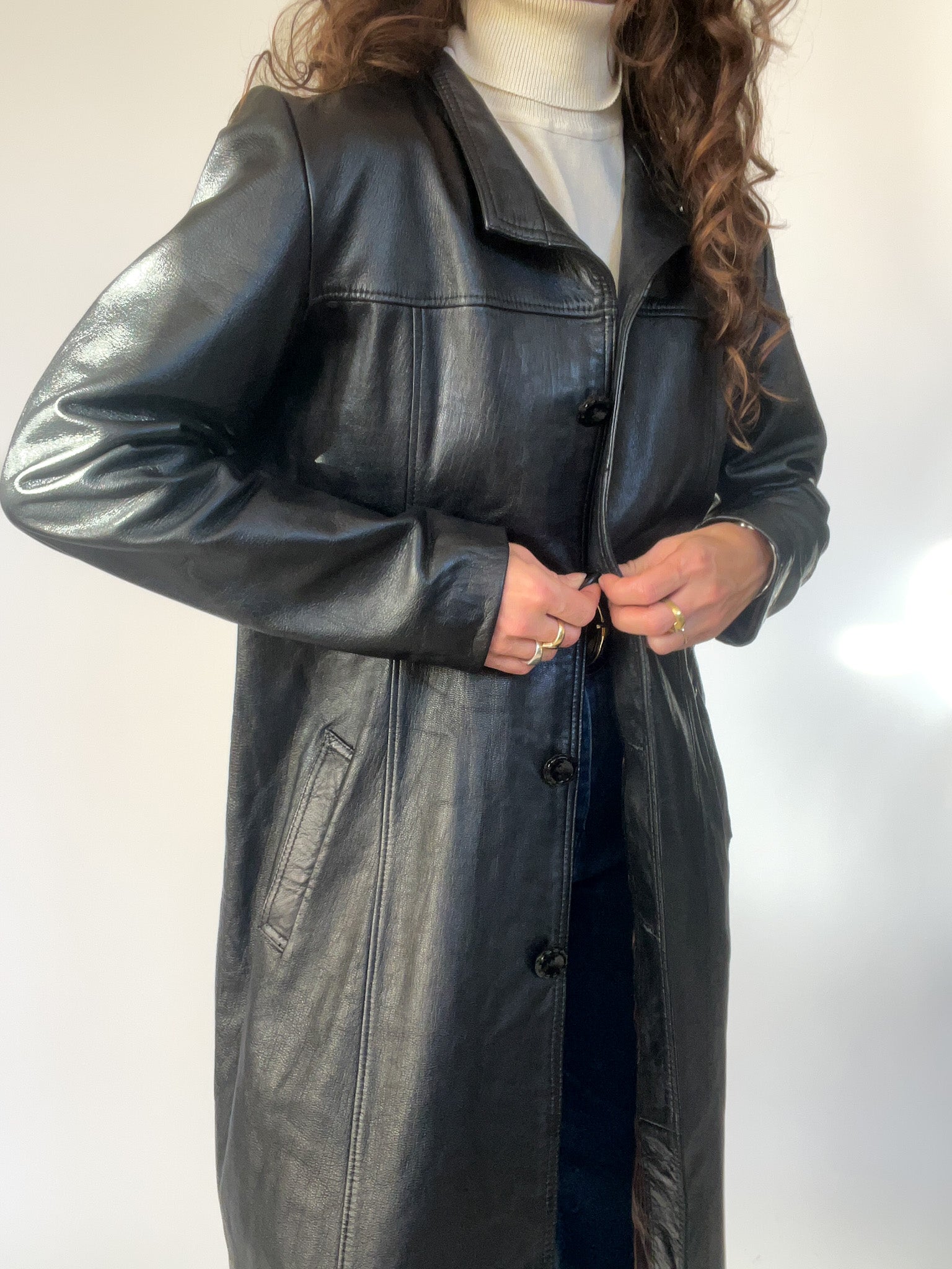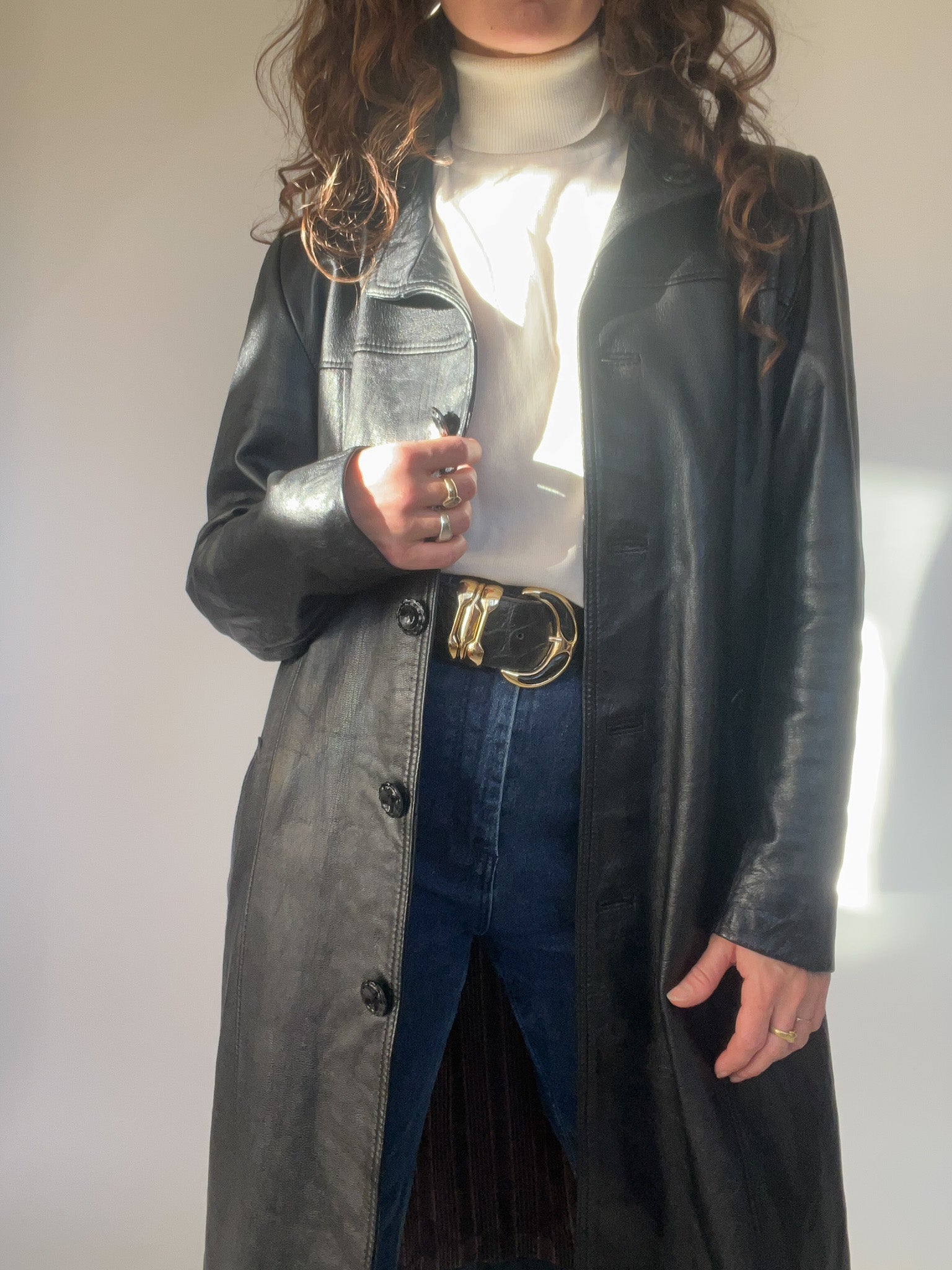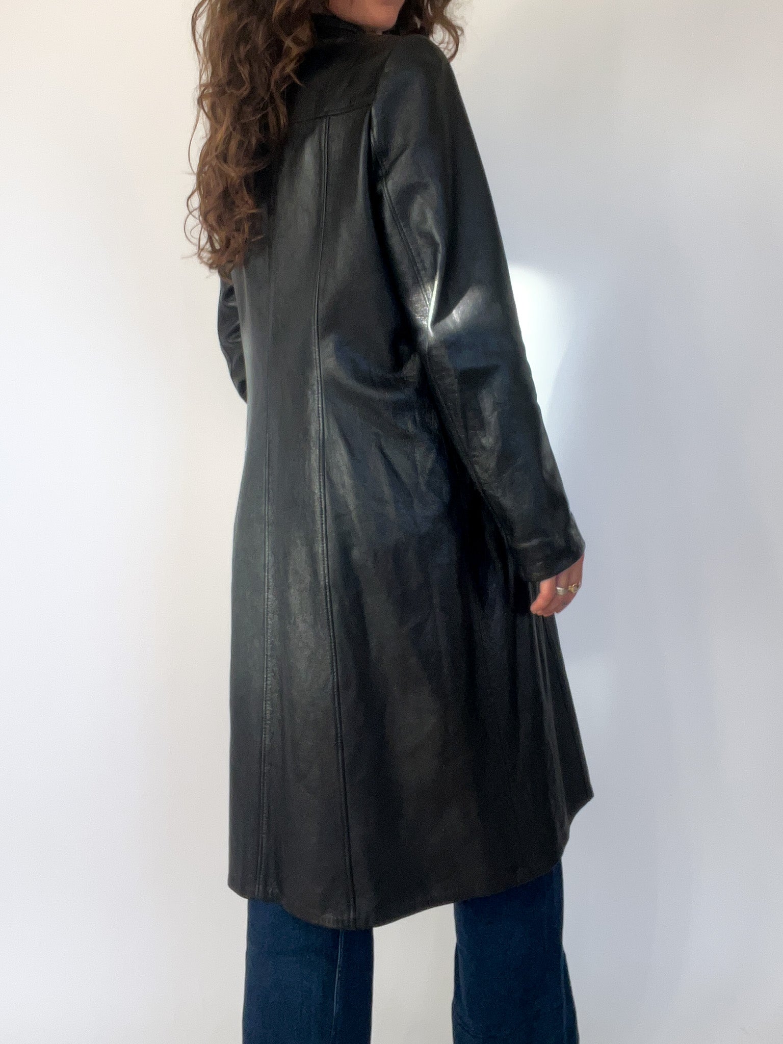 Vintage 80’s Black Double-Breasted Leather Trench Coat