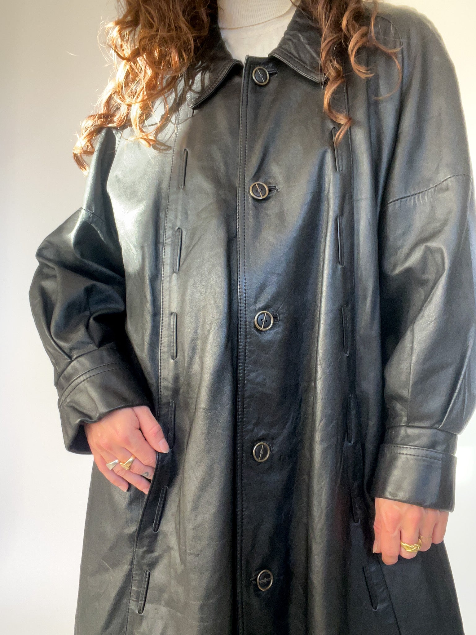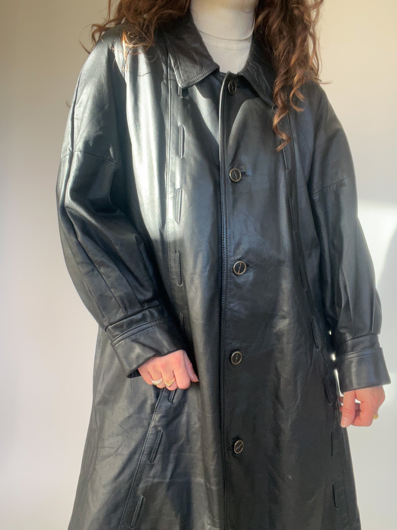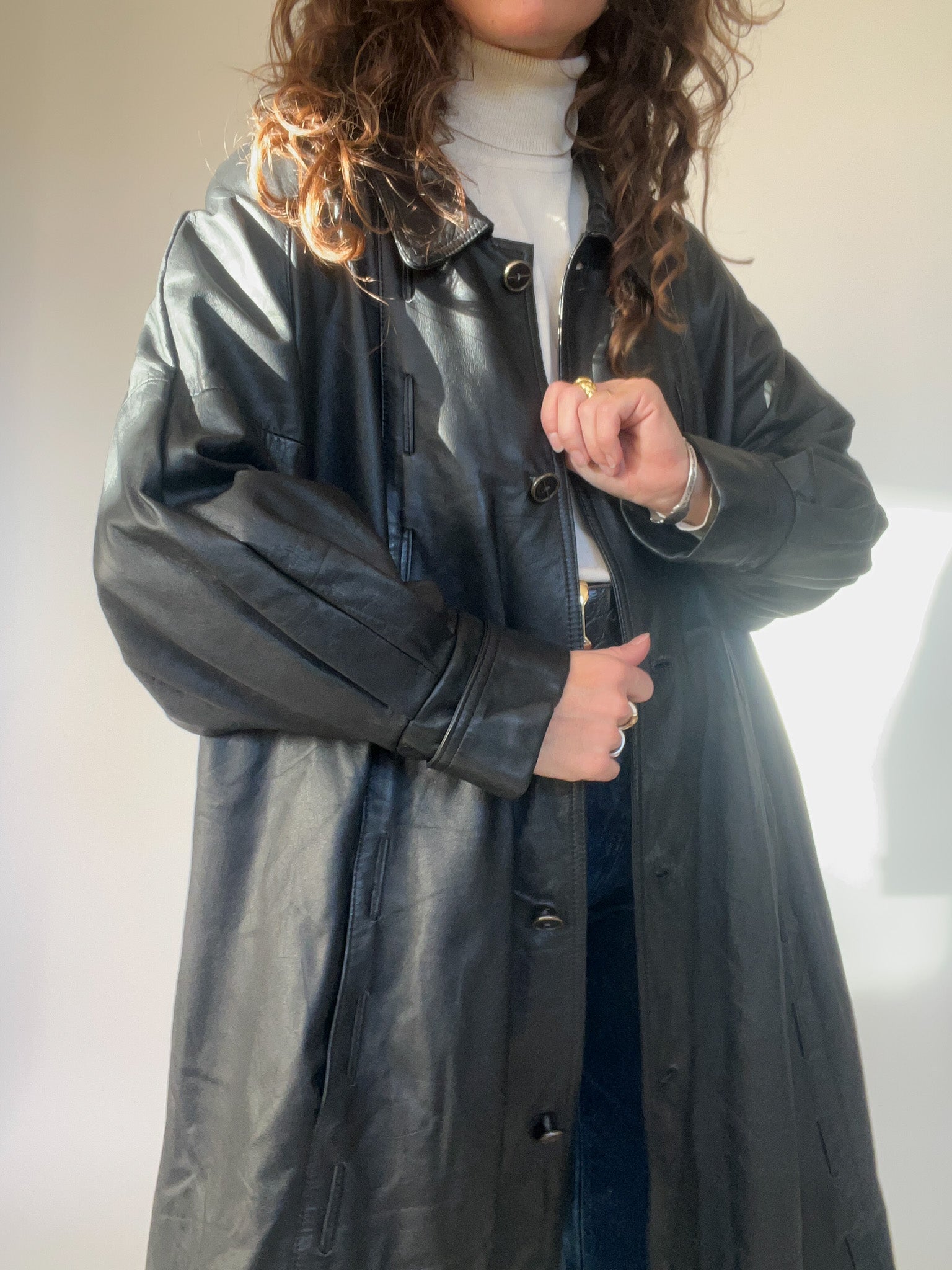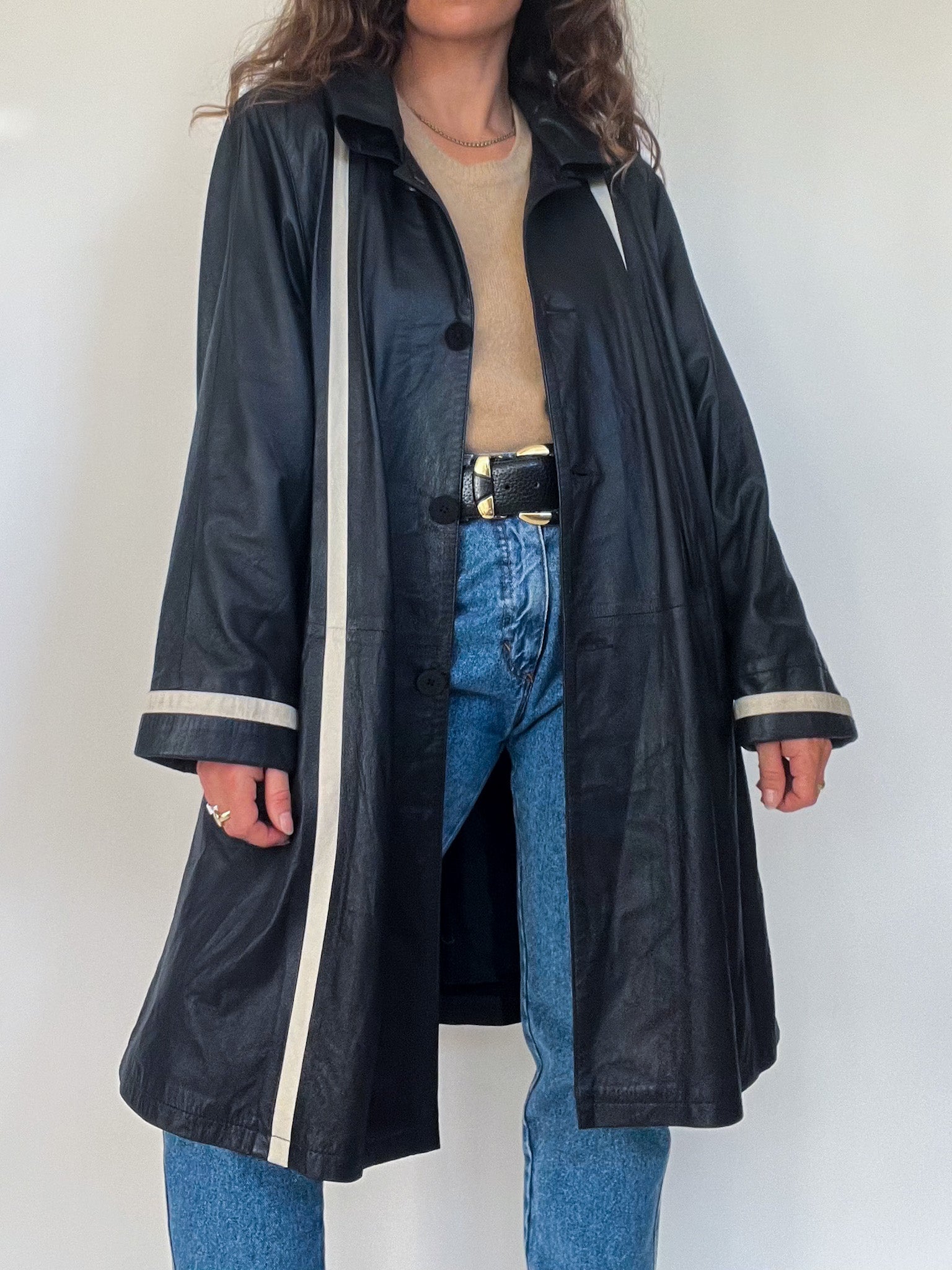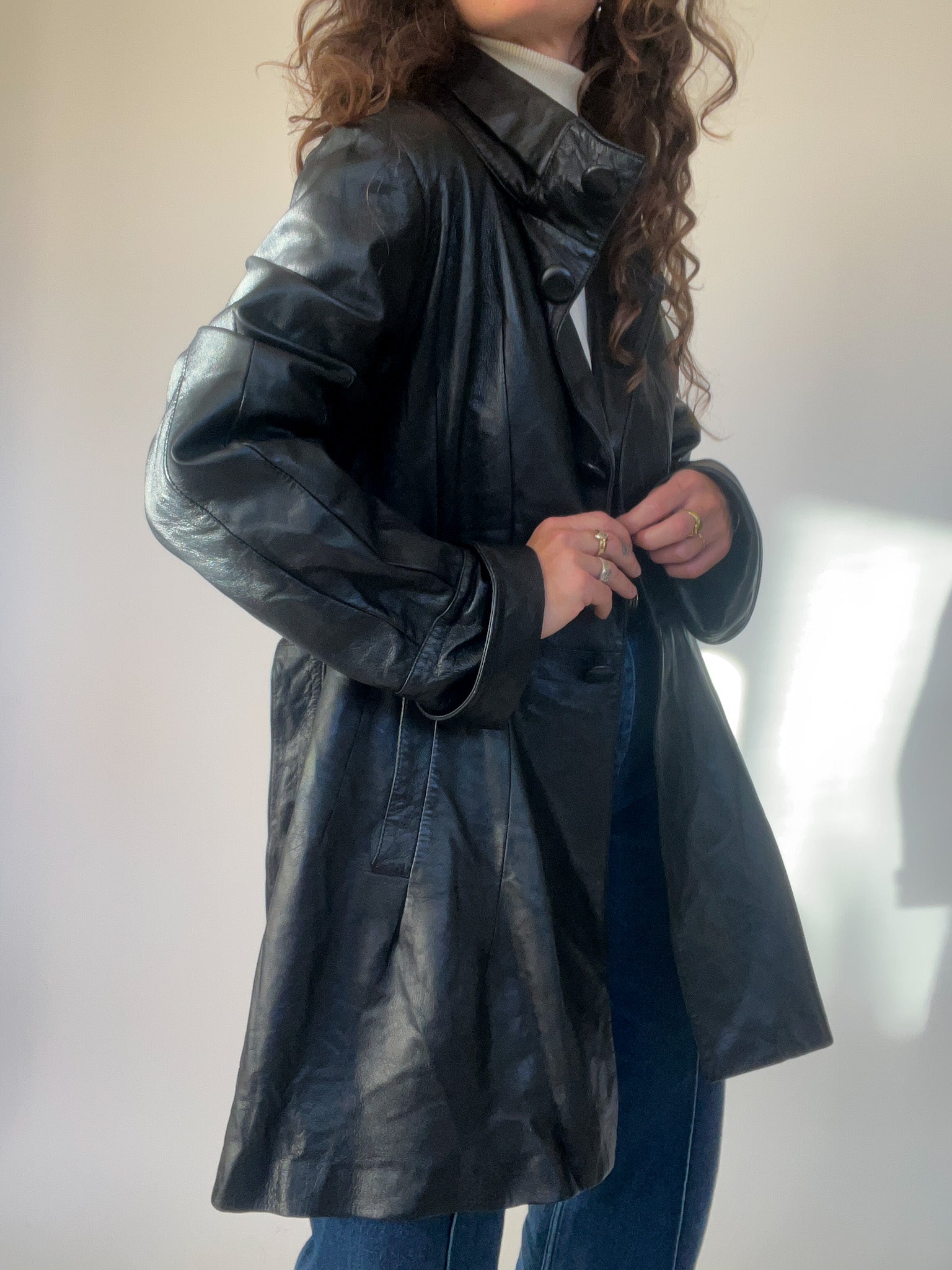 Vintage 80’s Black Double-Breasted Leather Trench Coat