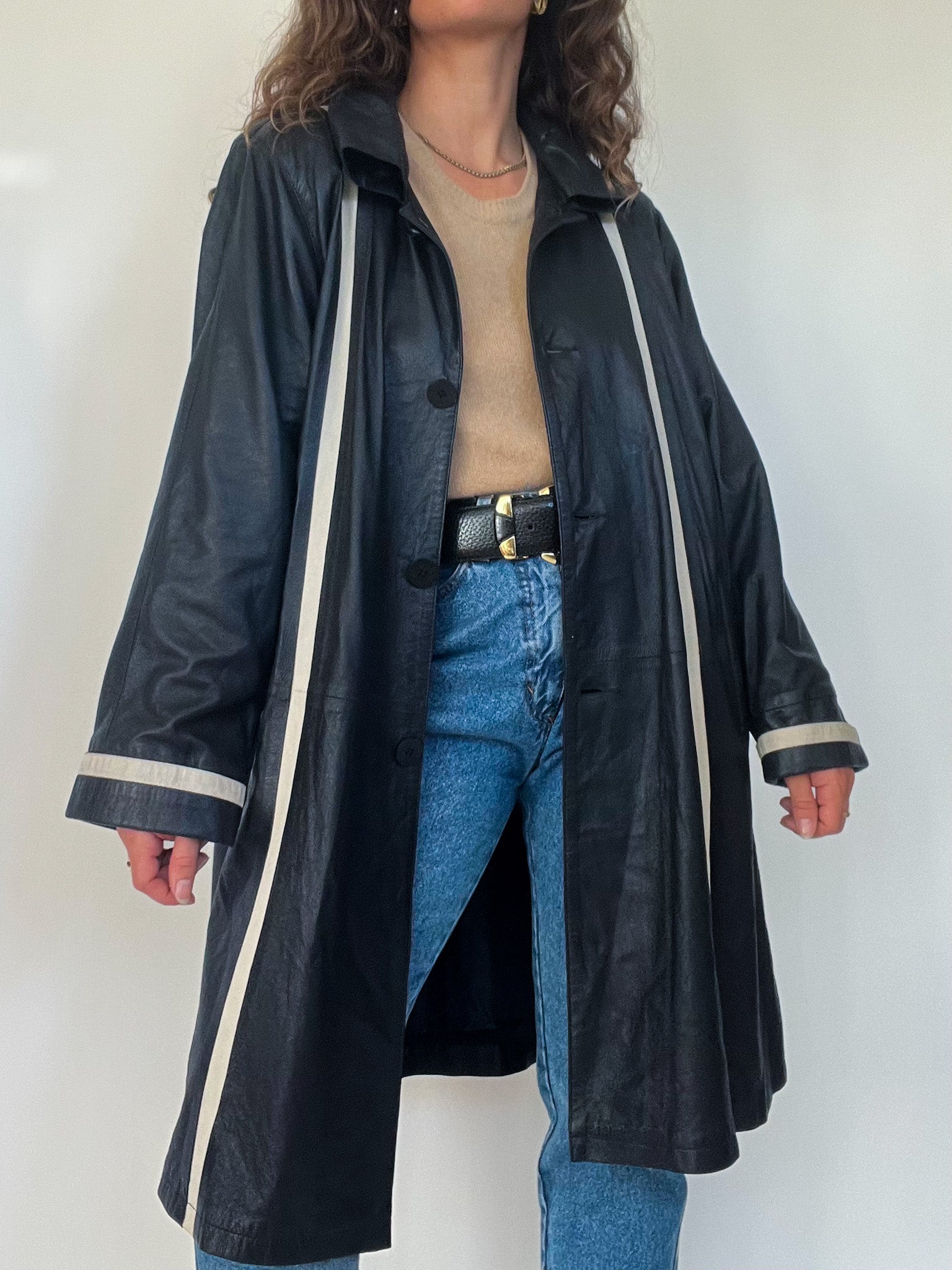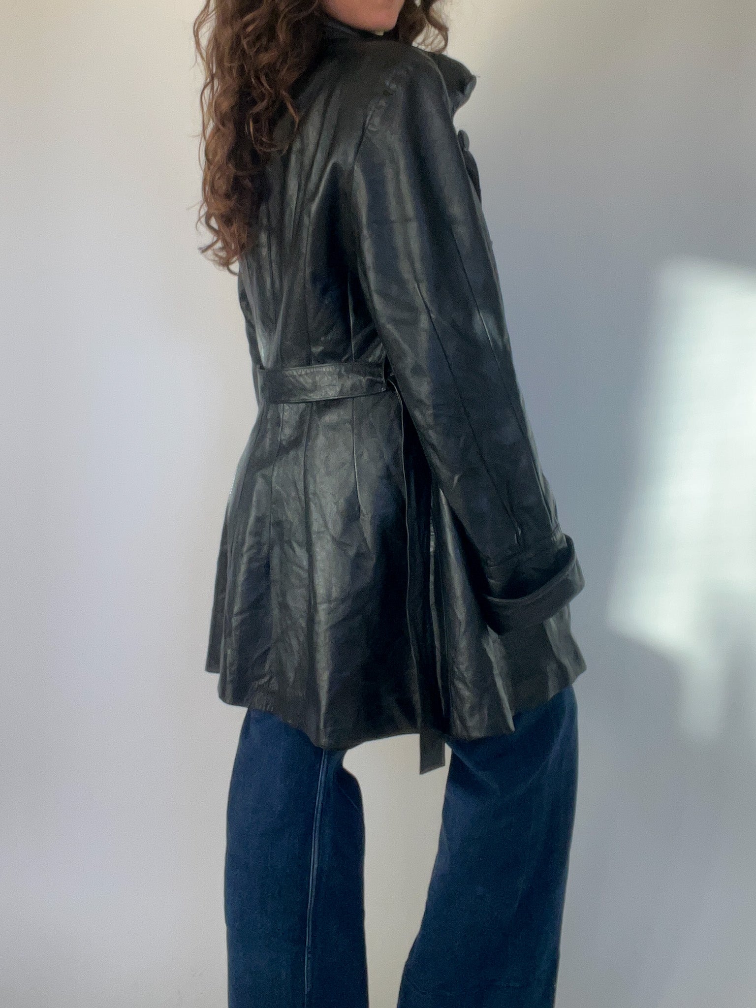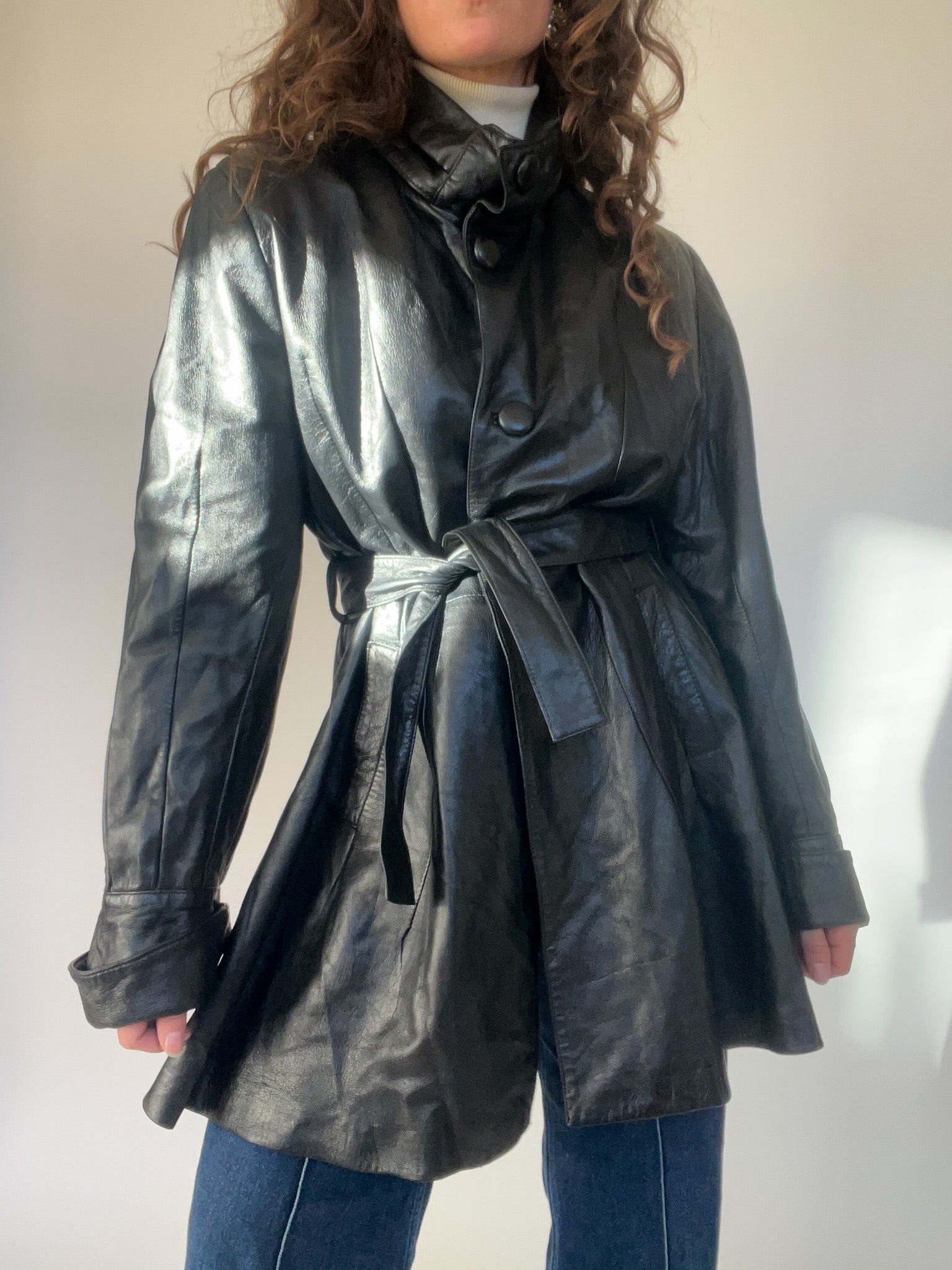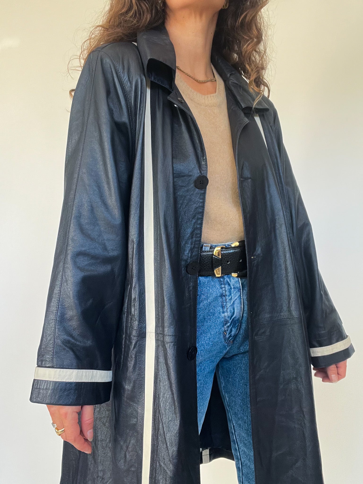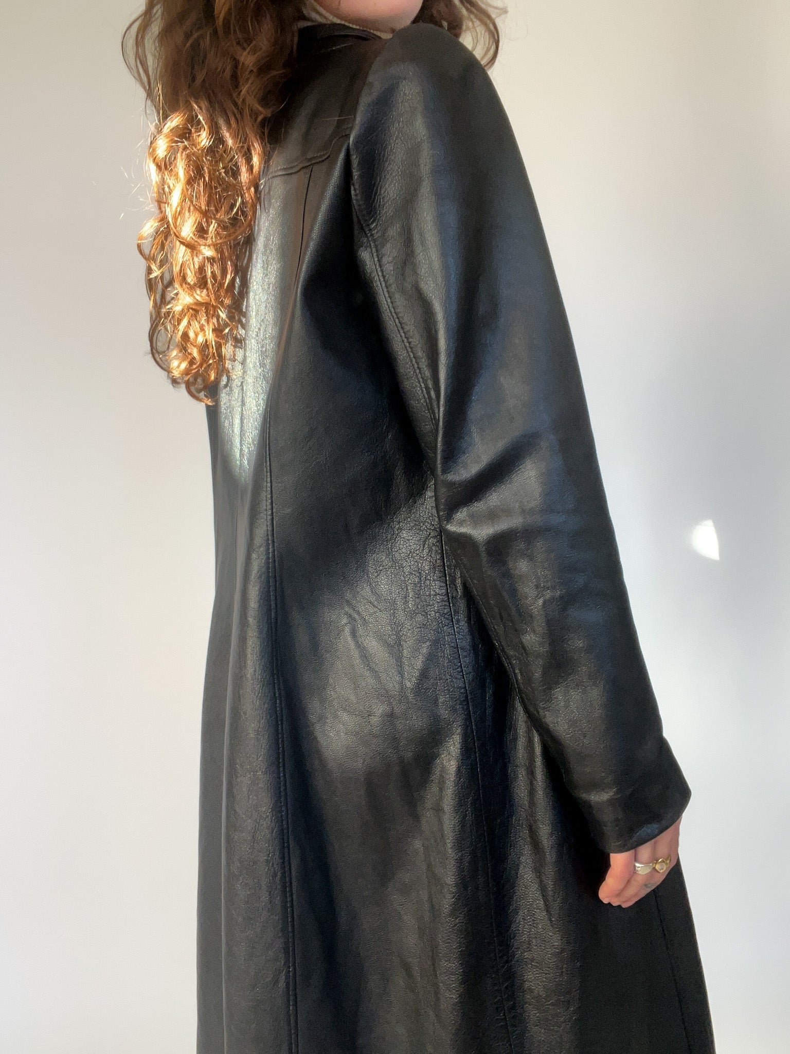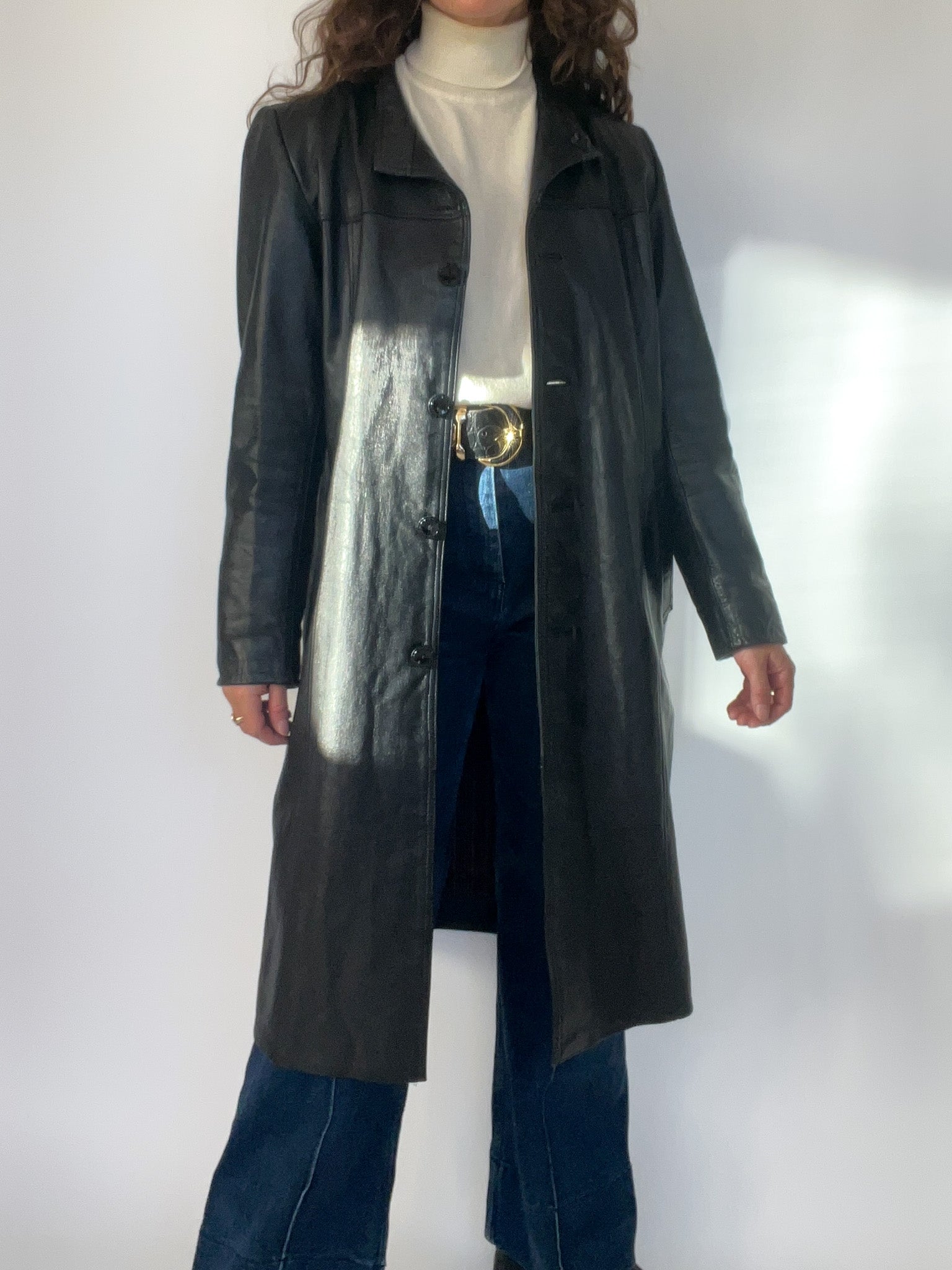 Vintage 80’s Black Double-Breasted Leather Trench Coat