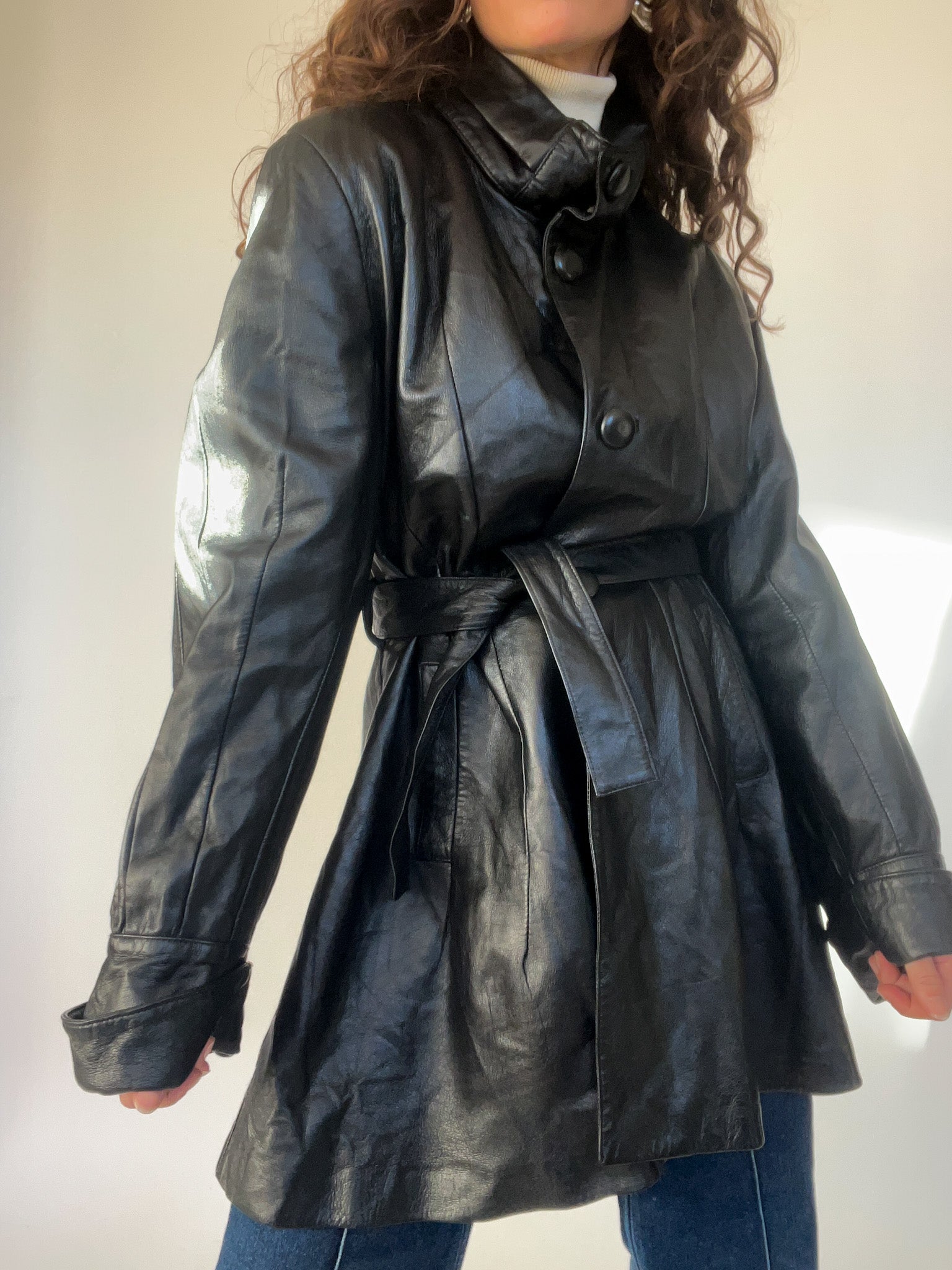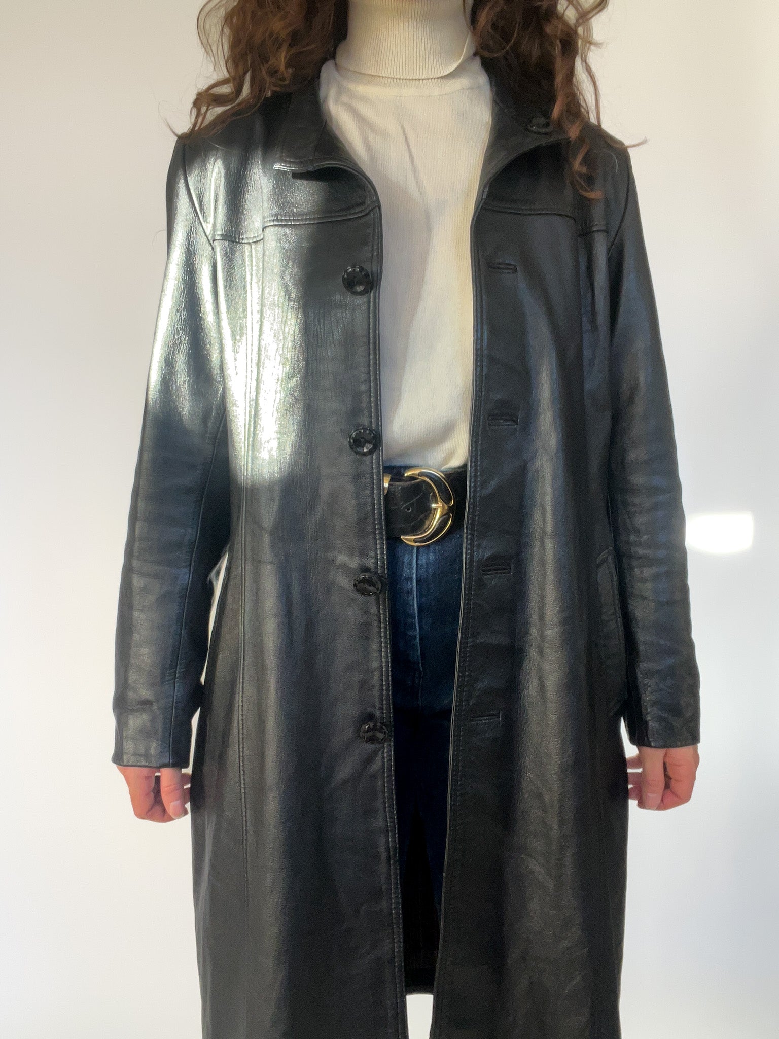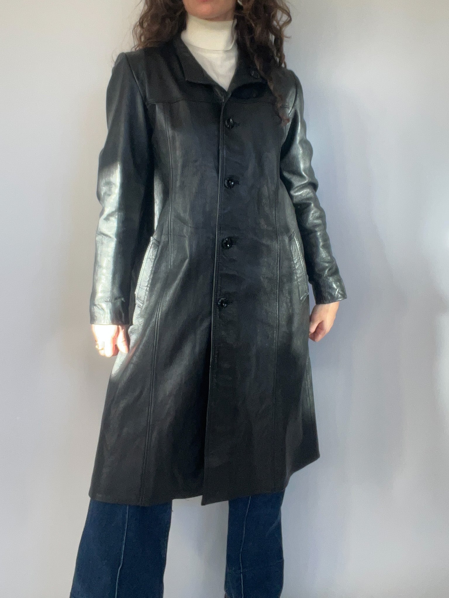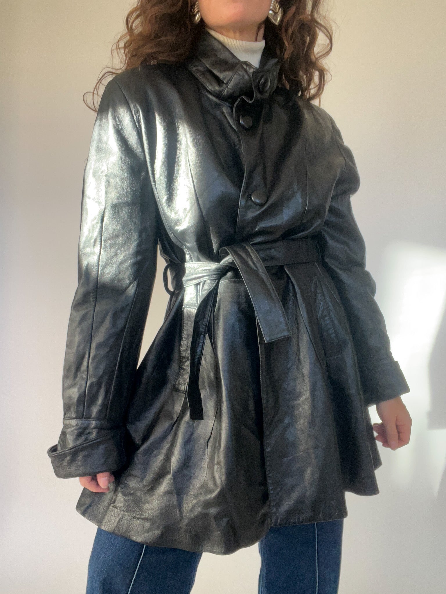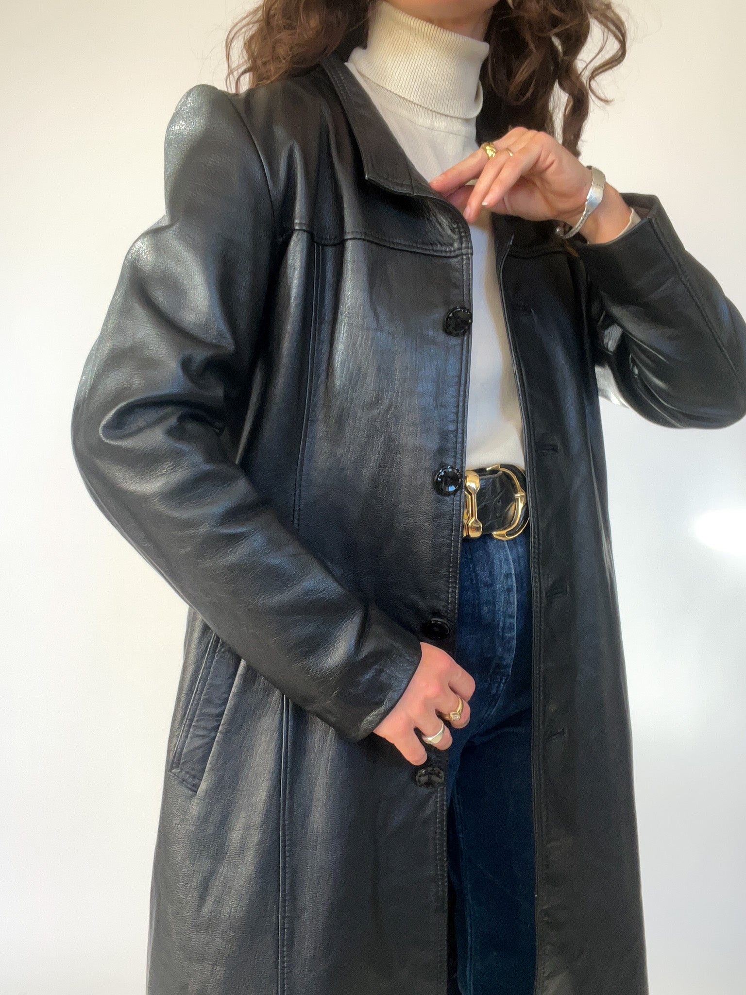 Vintage 80’s Black Double-Breasted Leather Trench Coat