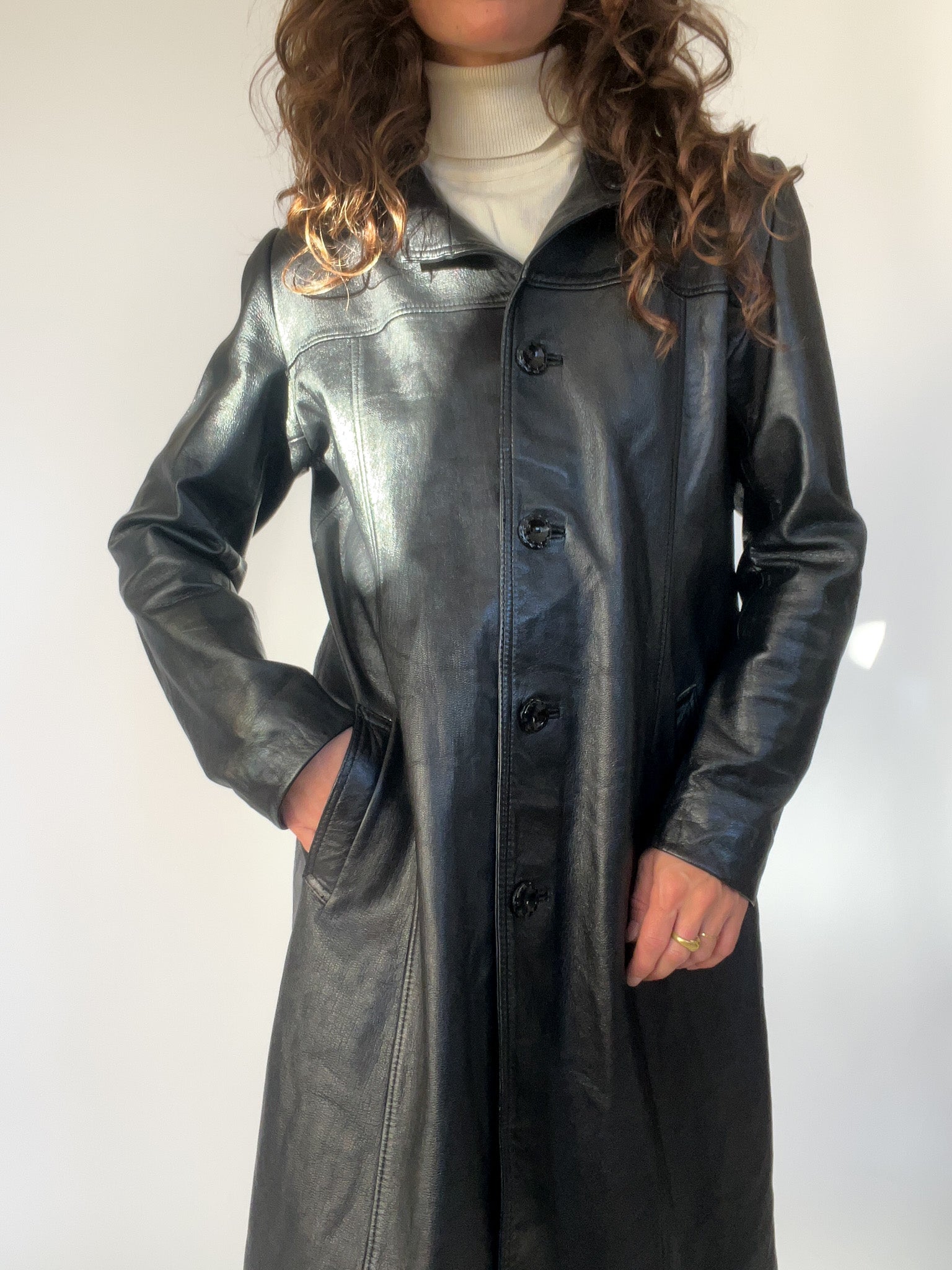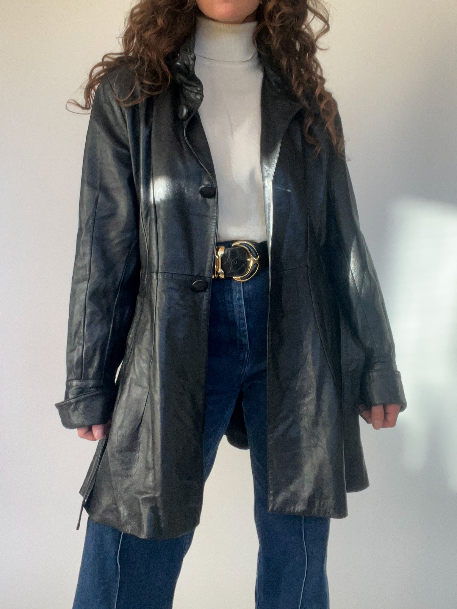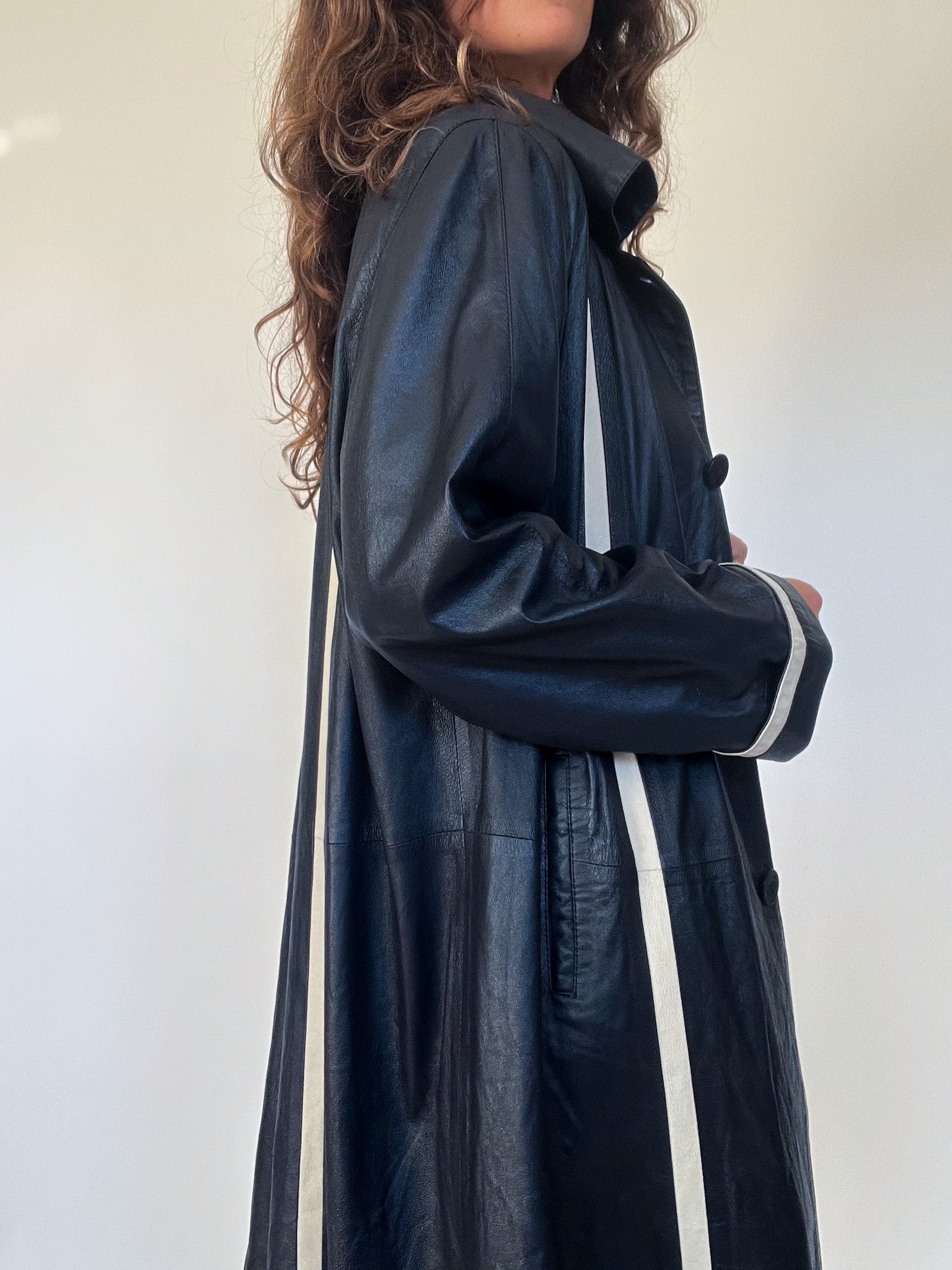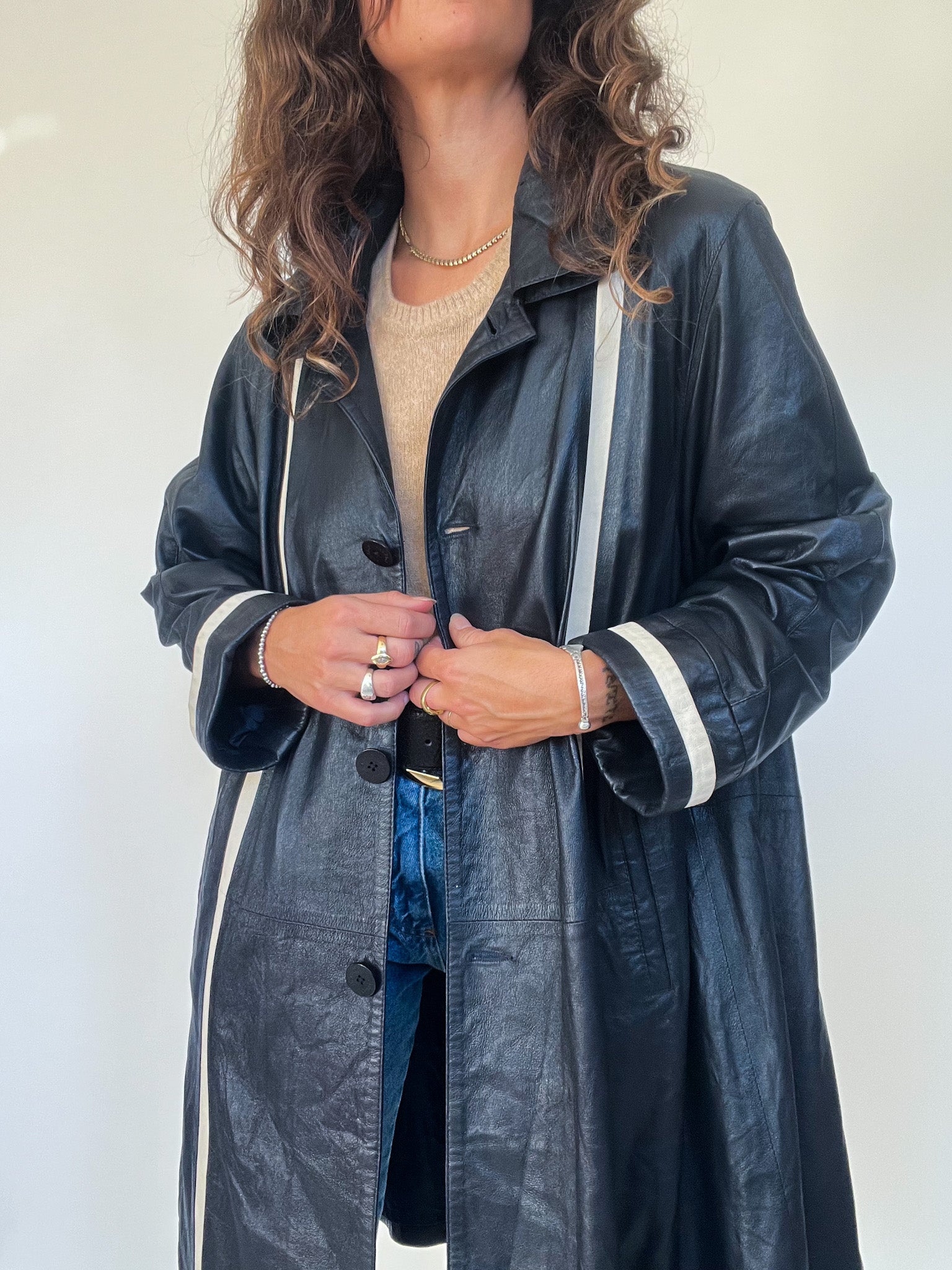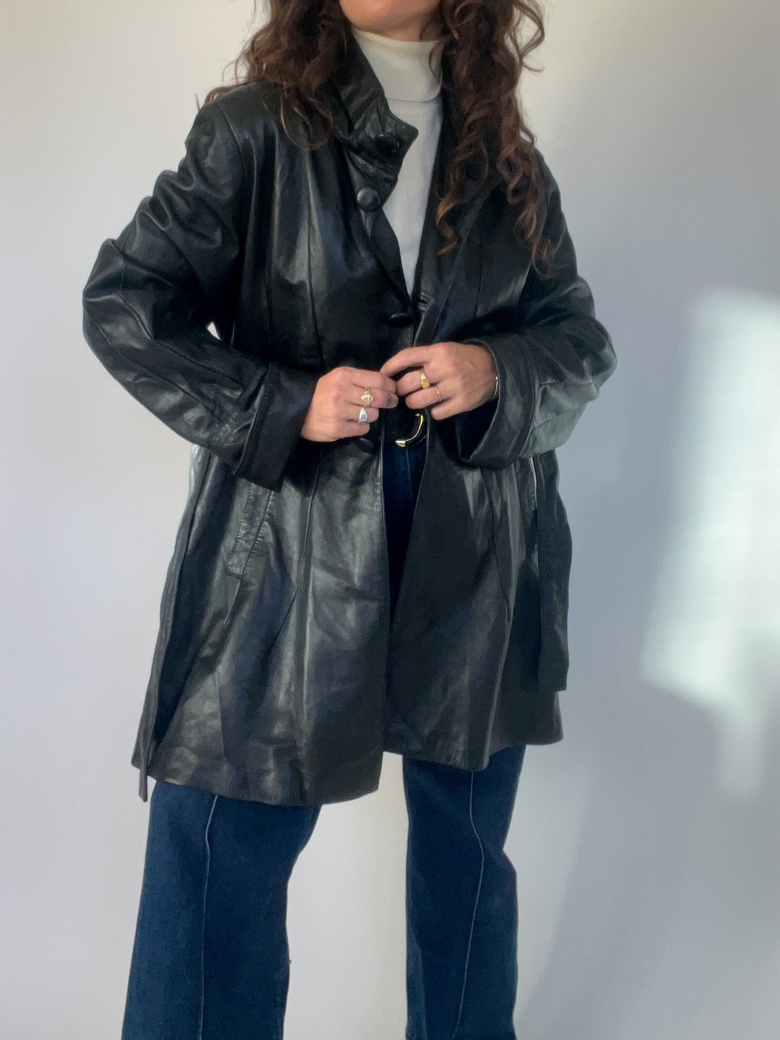 Vintage 80’s Black Double-Breasted Leather Trench Coat