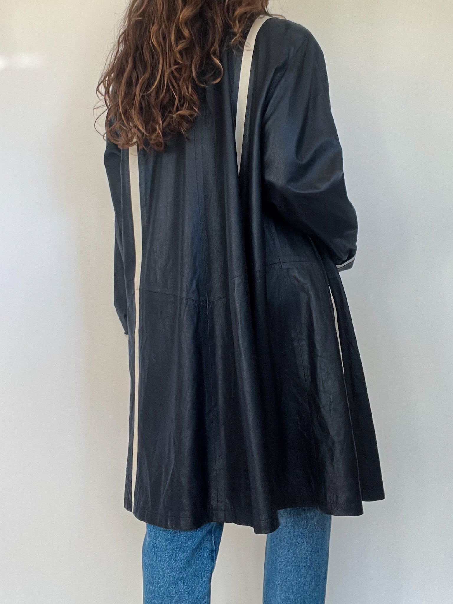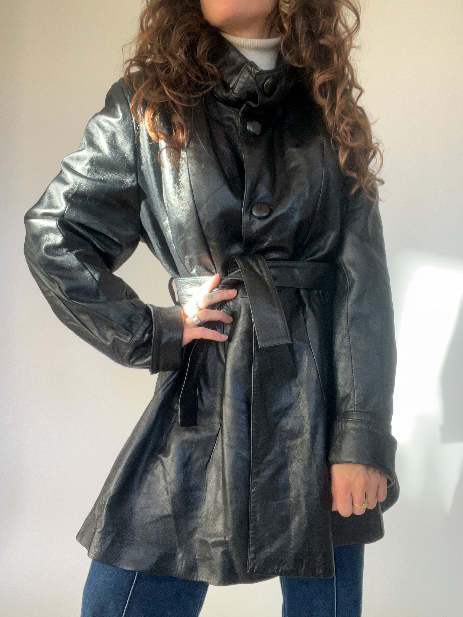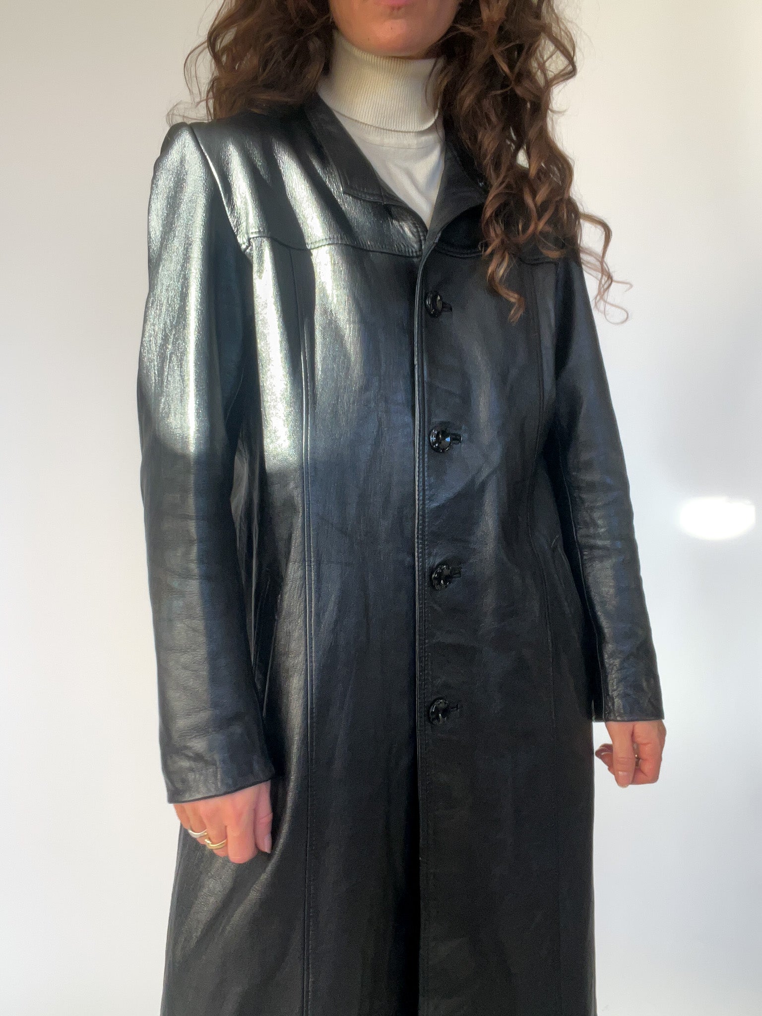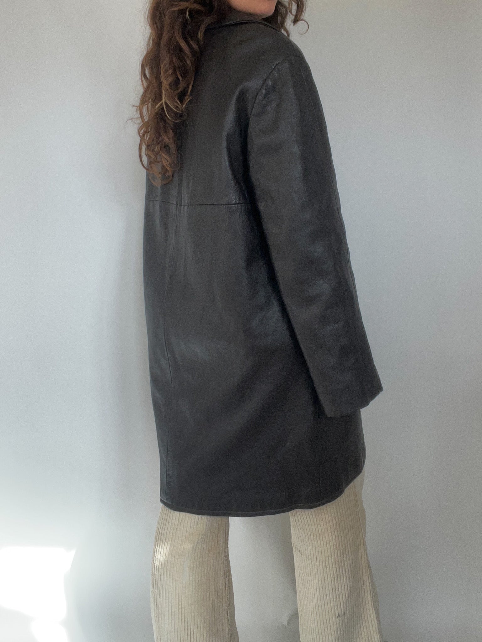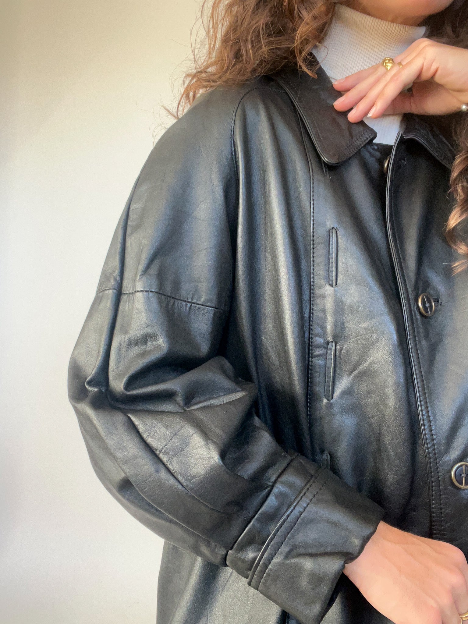 Vintage 80’s Black Double-Breasted Leather Trench Coat