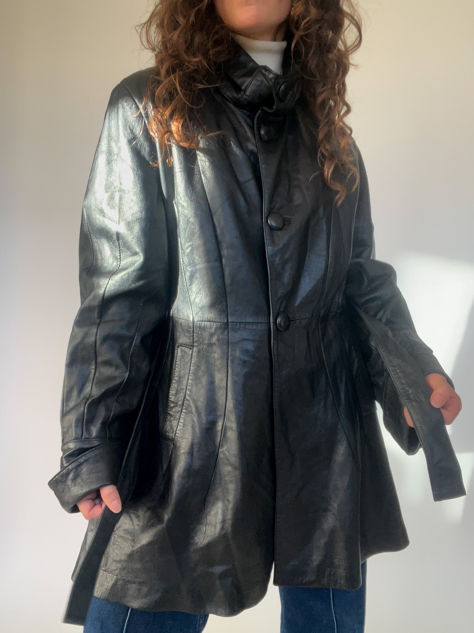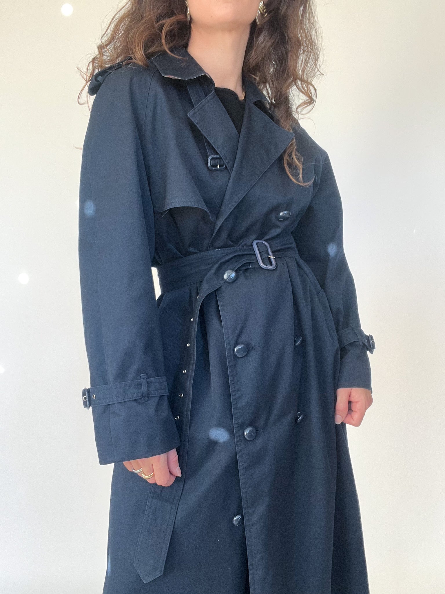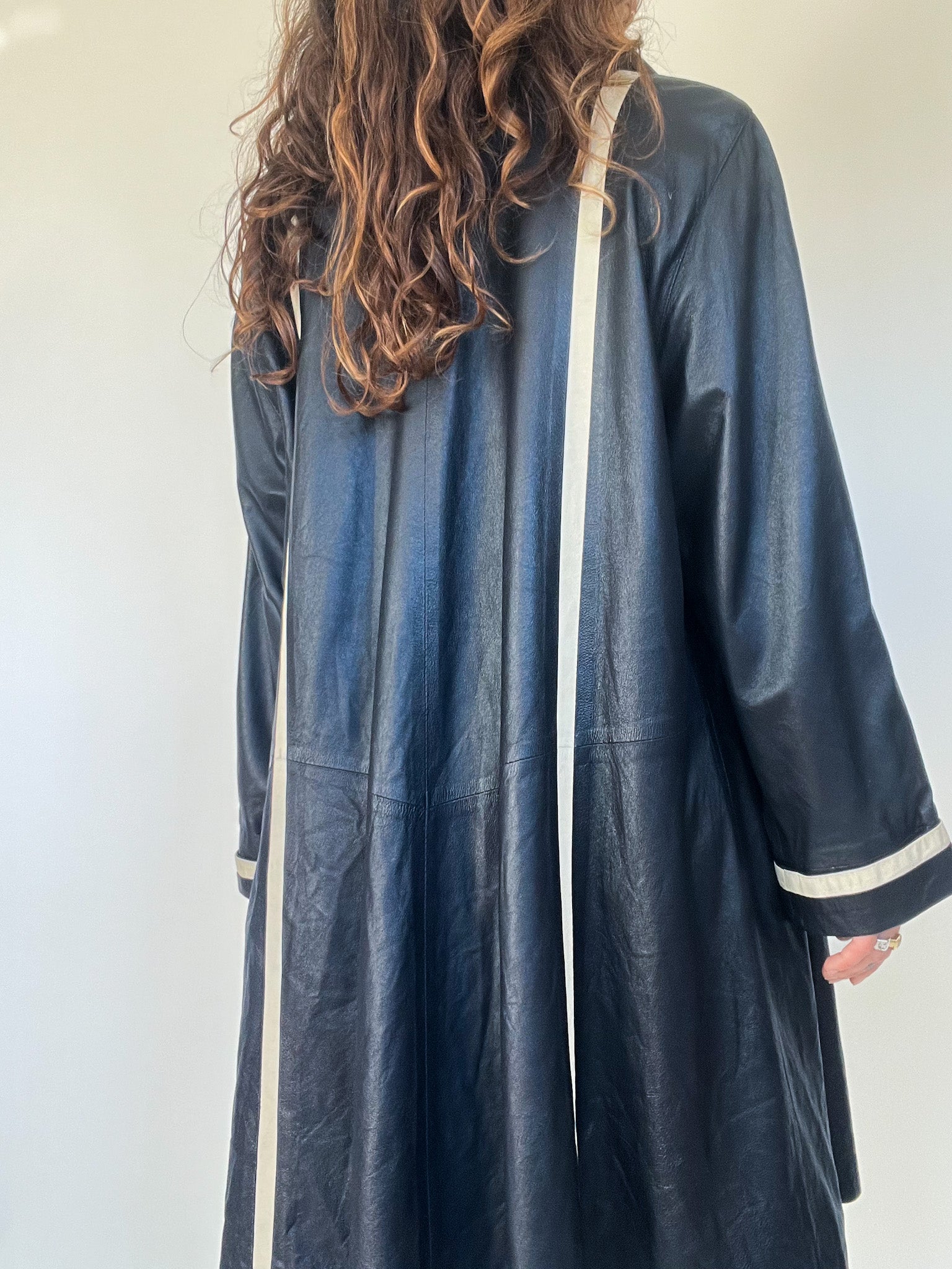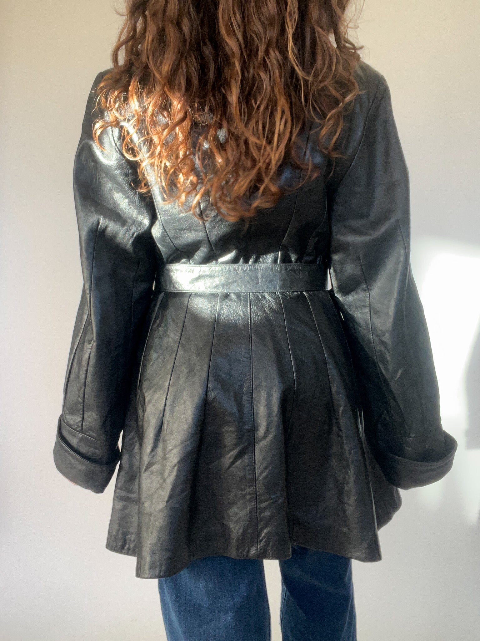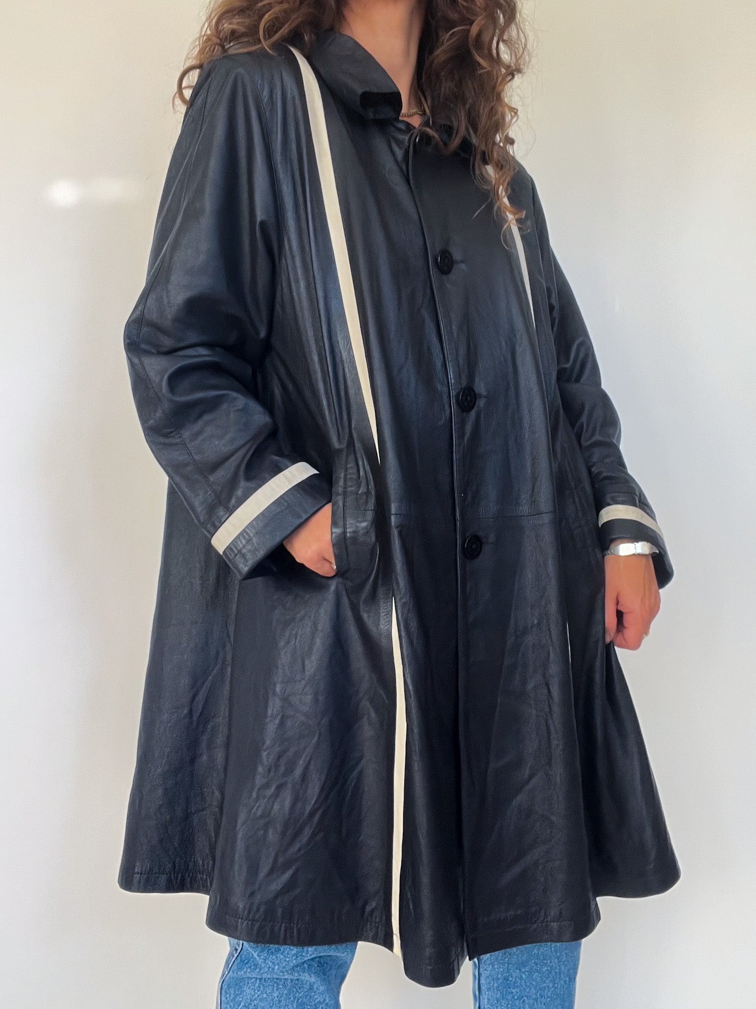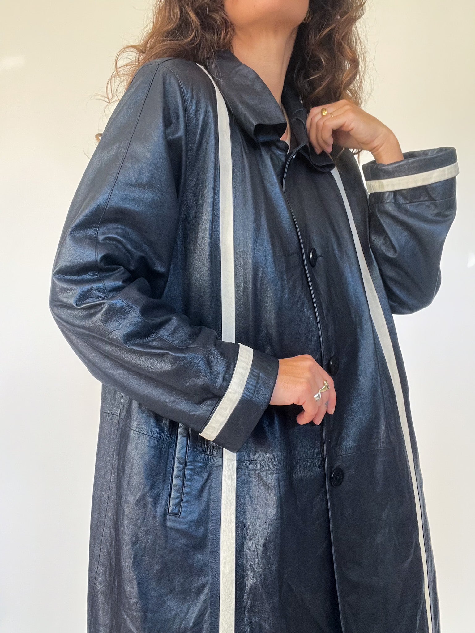 Vintage 80’s Black Double-Breasted Leather Trench Coat