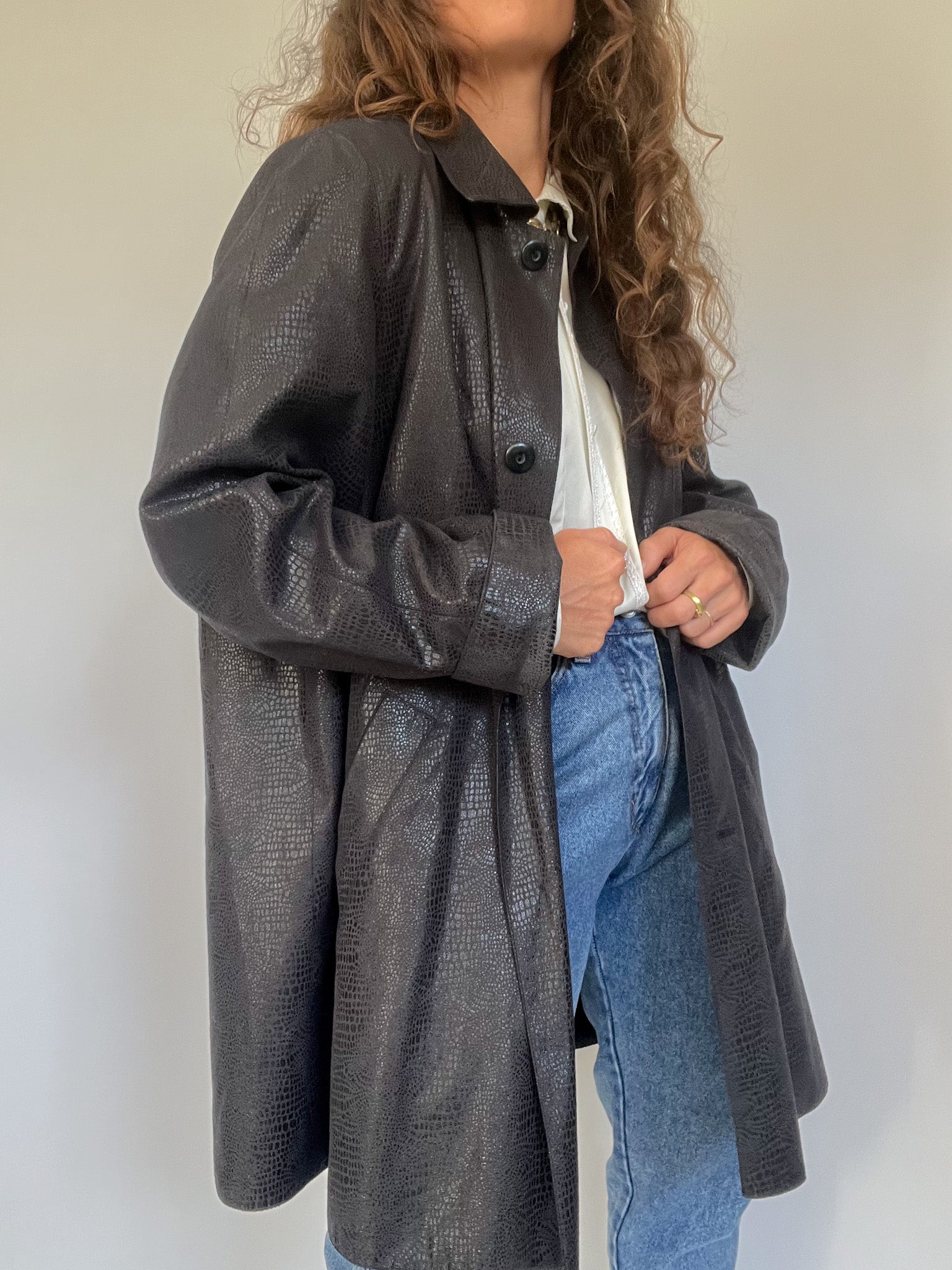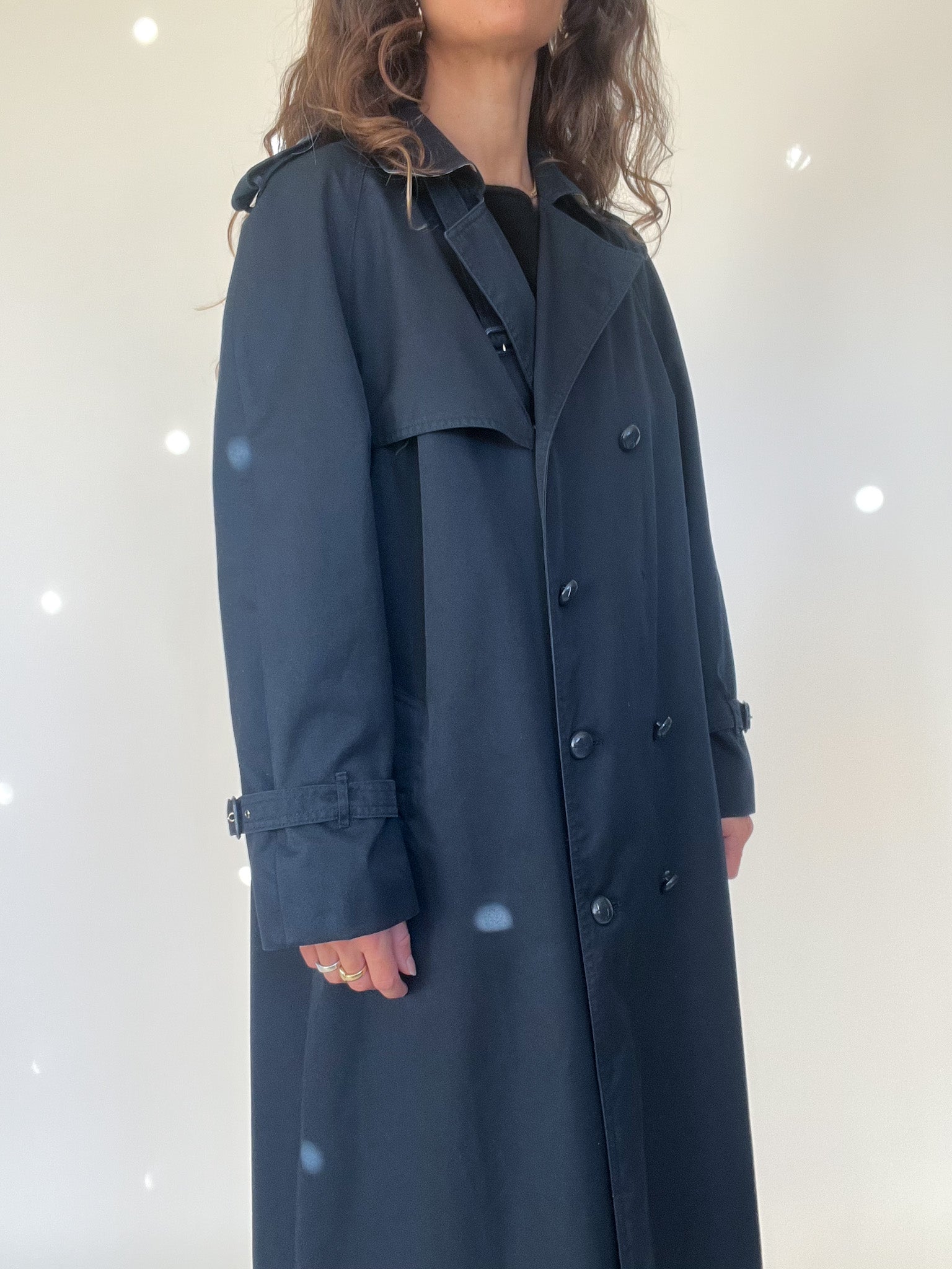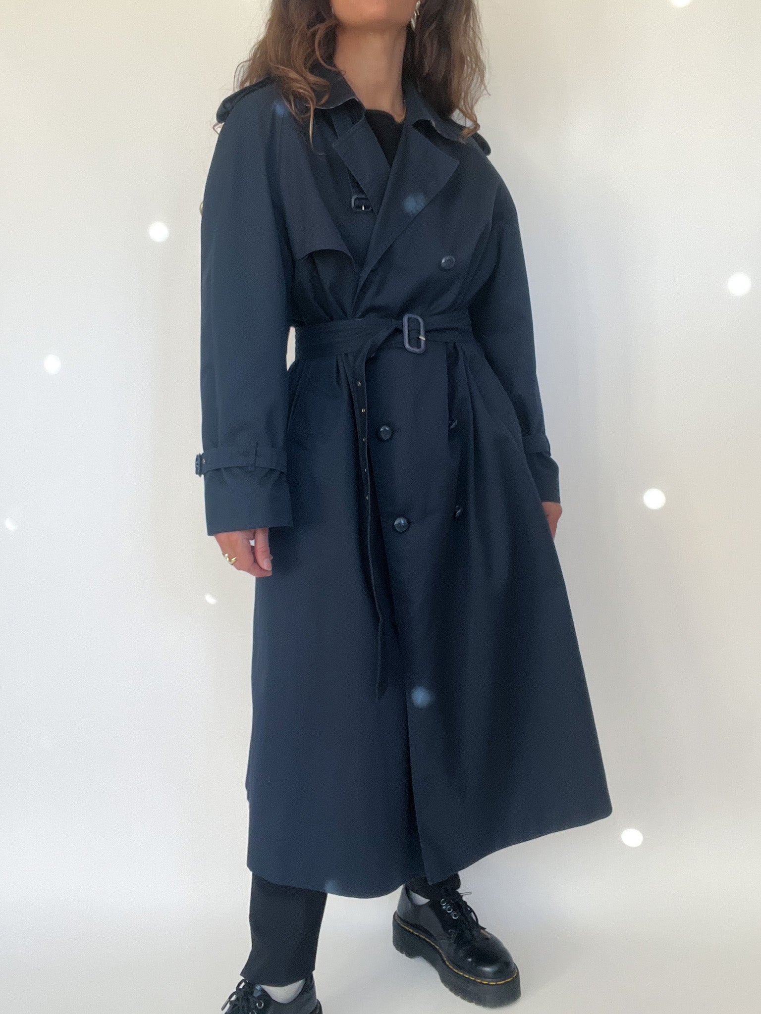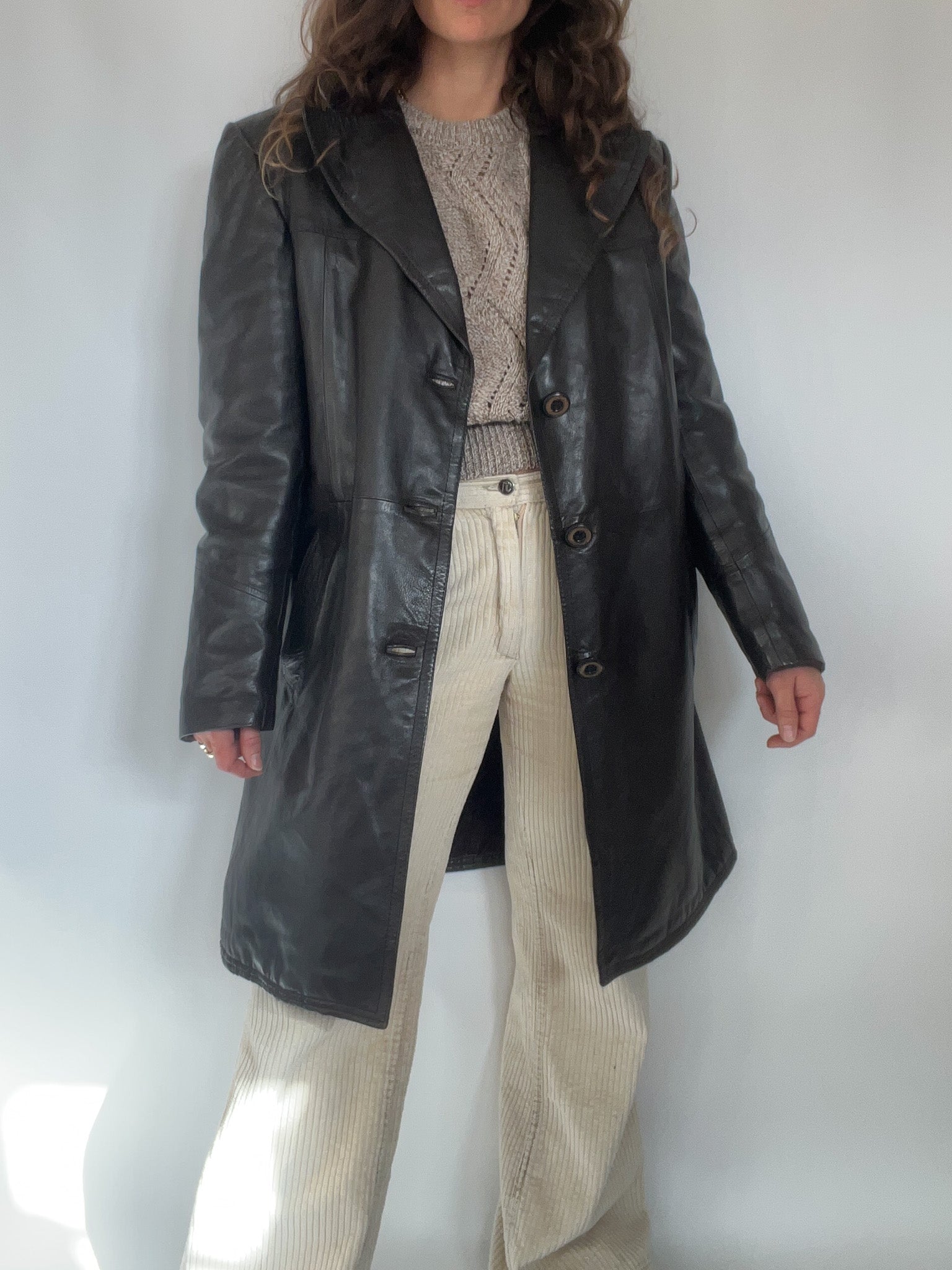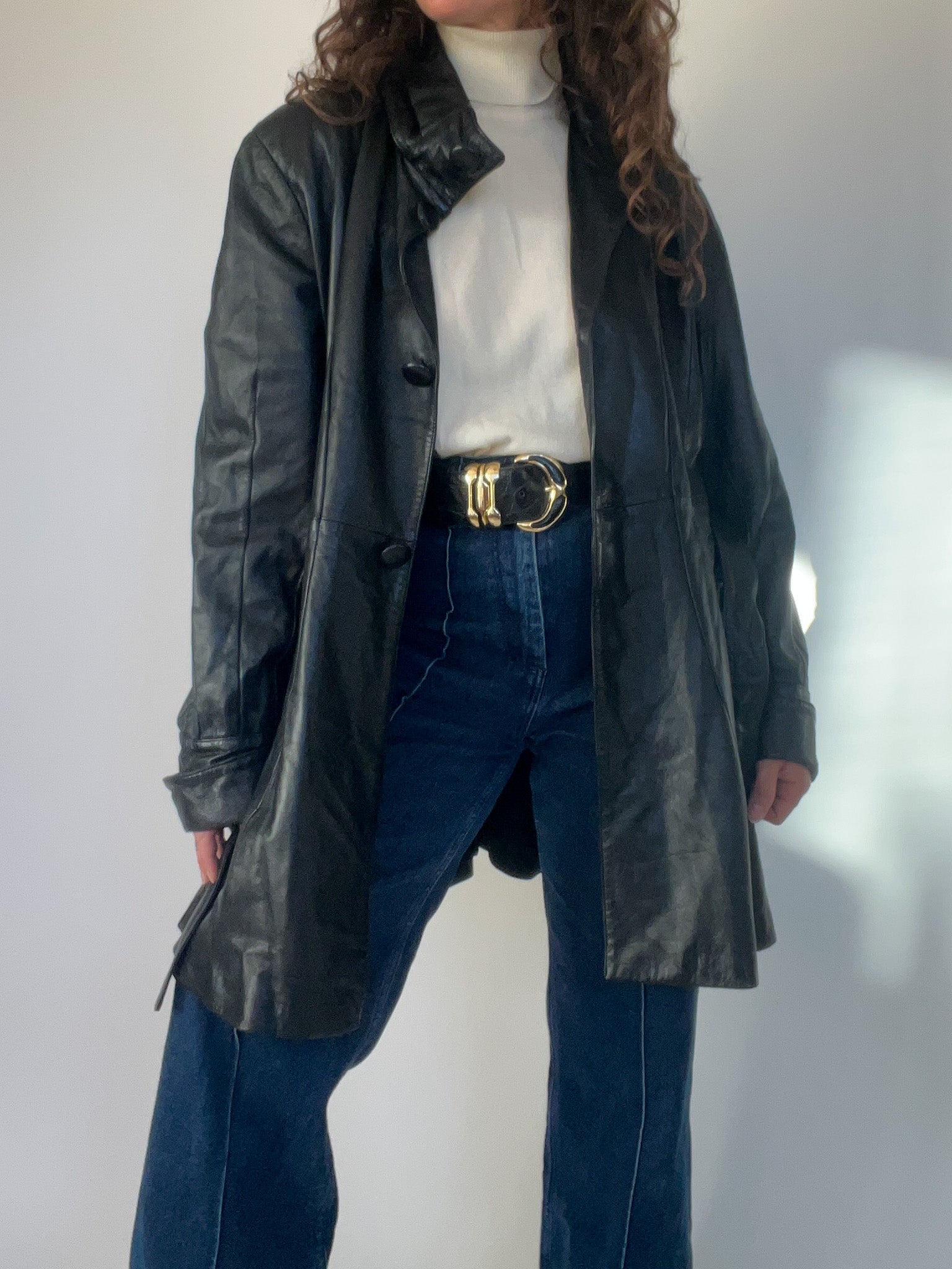 Vintage 80’s Black Double-Breasted Leather Trench Coat