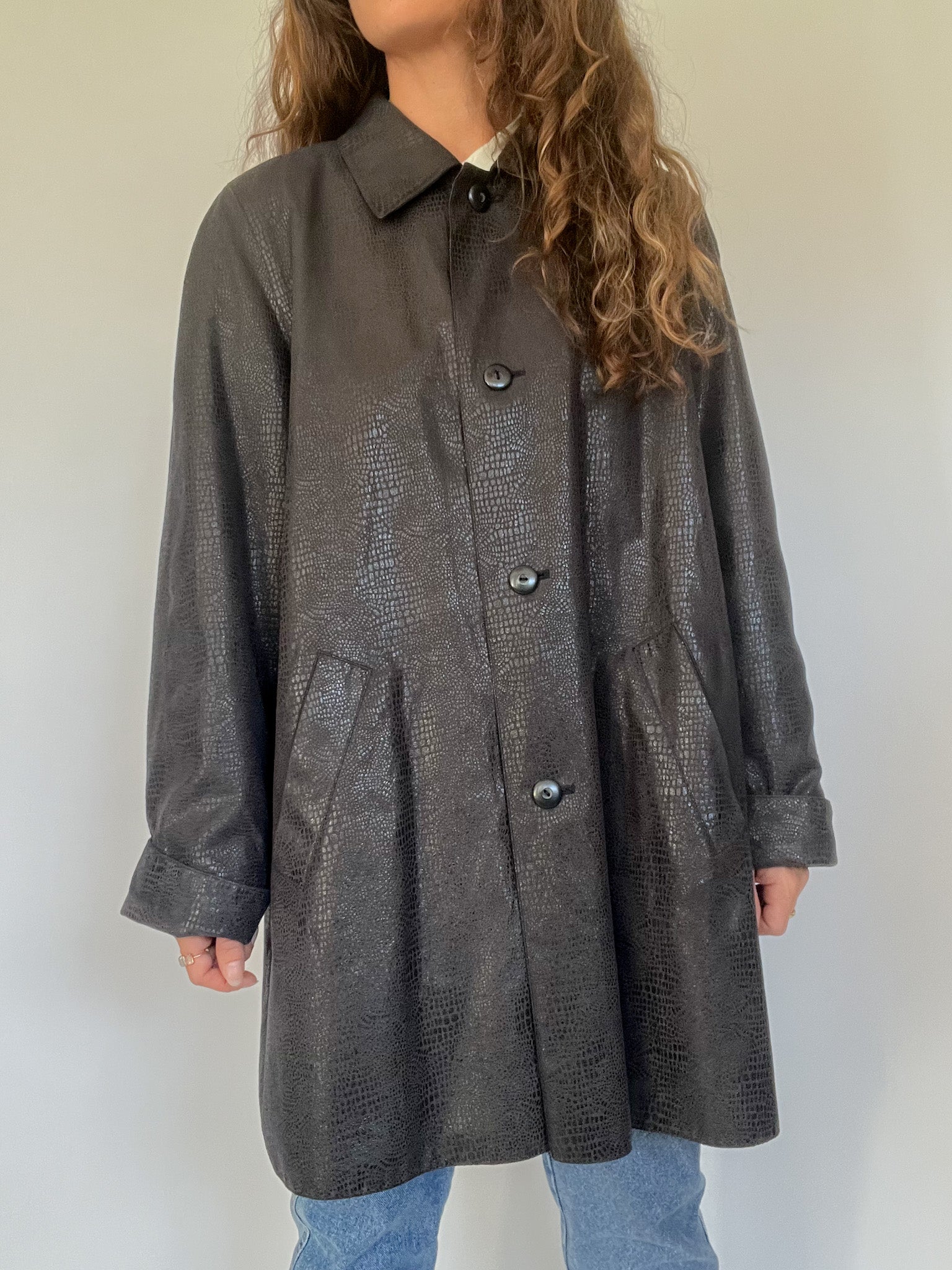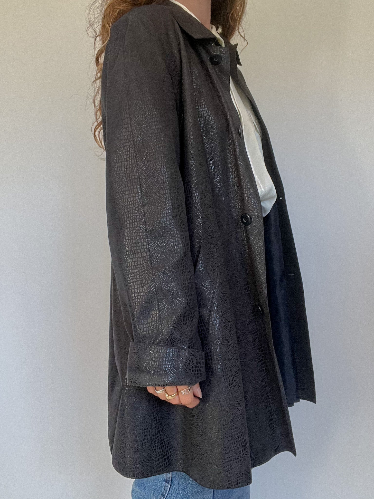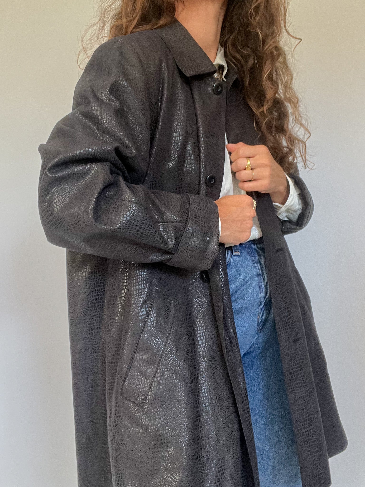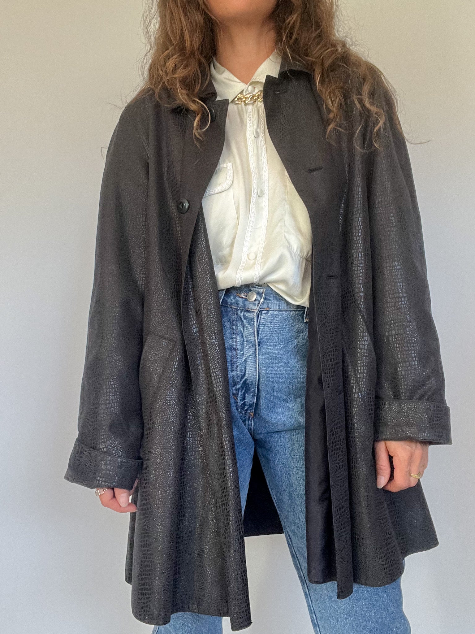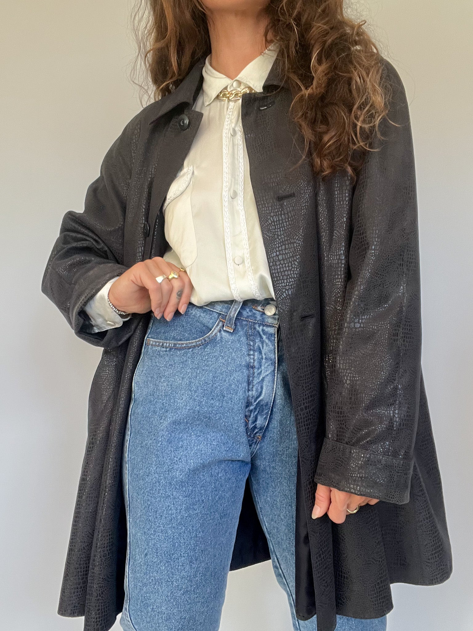 Vintage 80’s Black Double-Breasted Leather Trench Coat