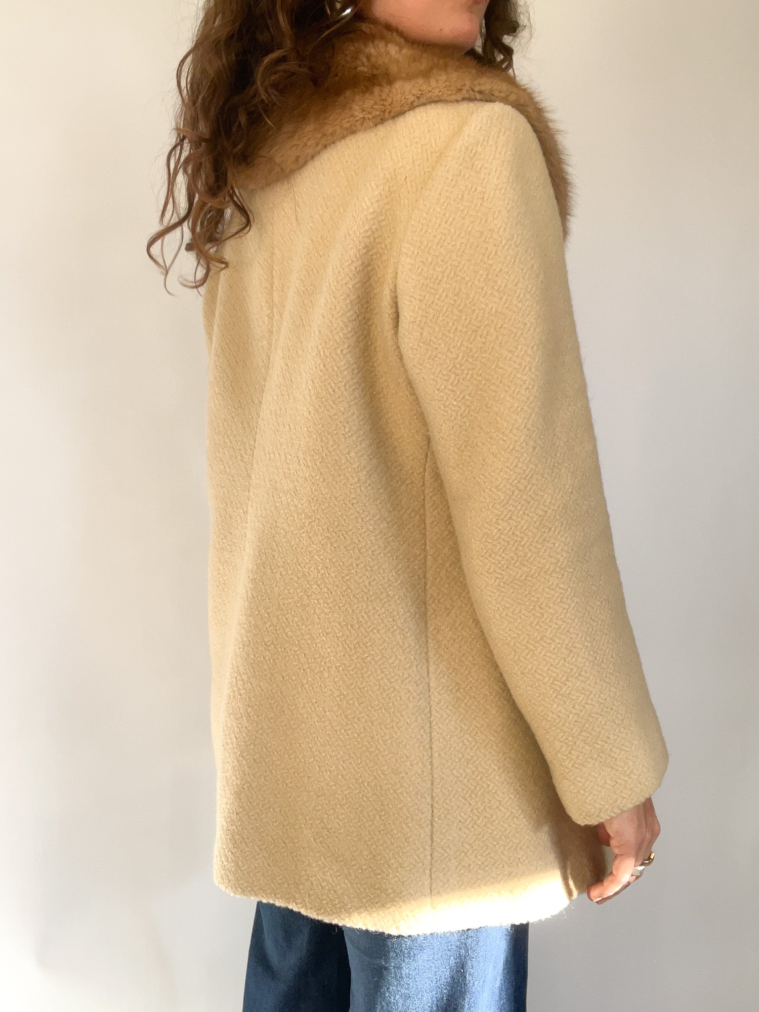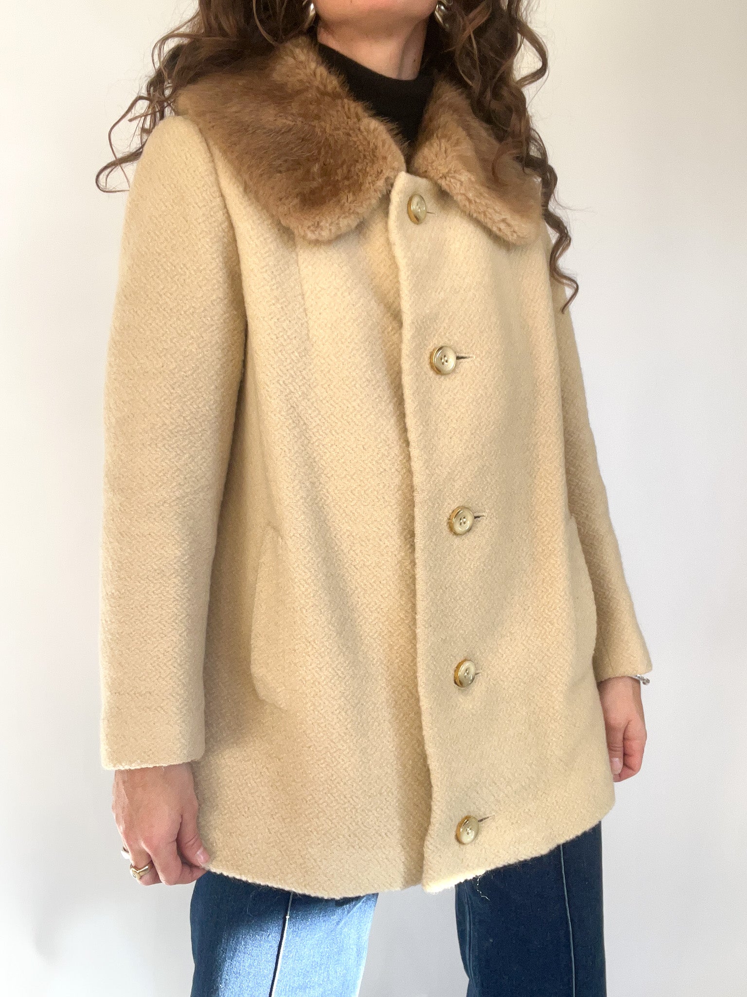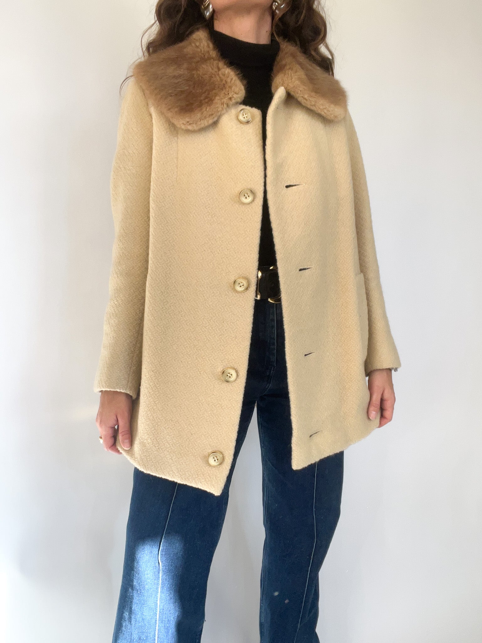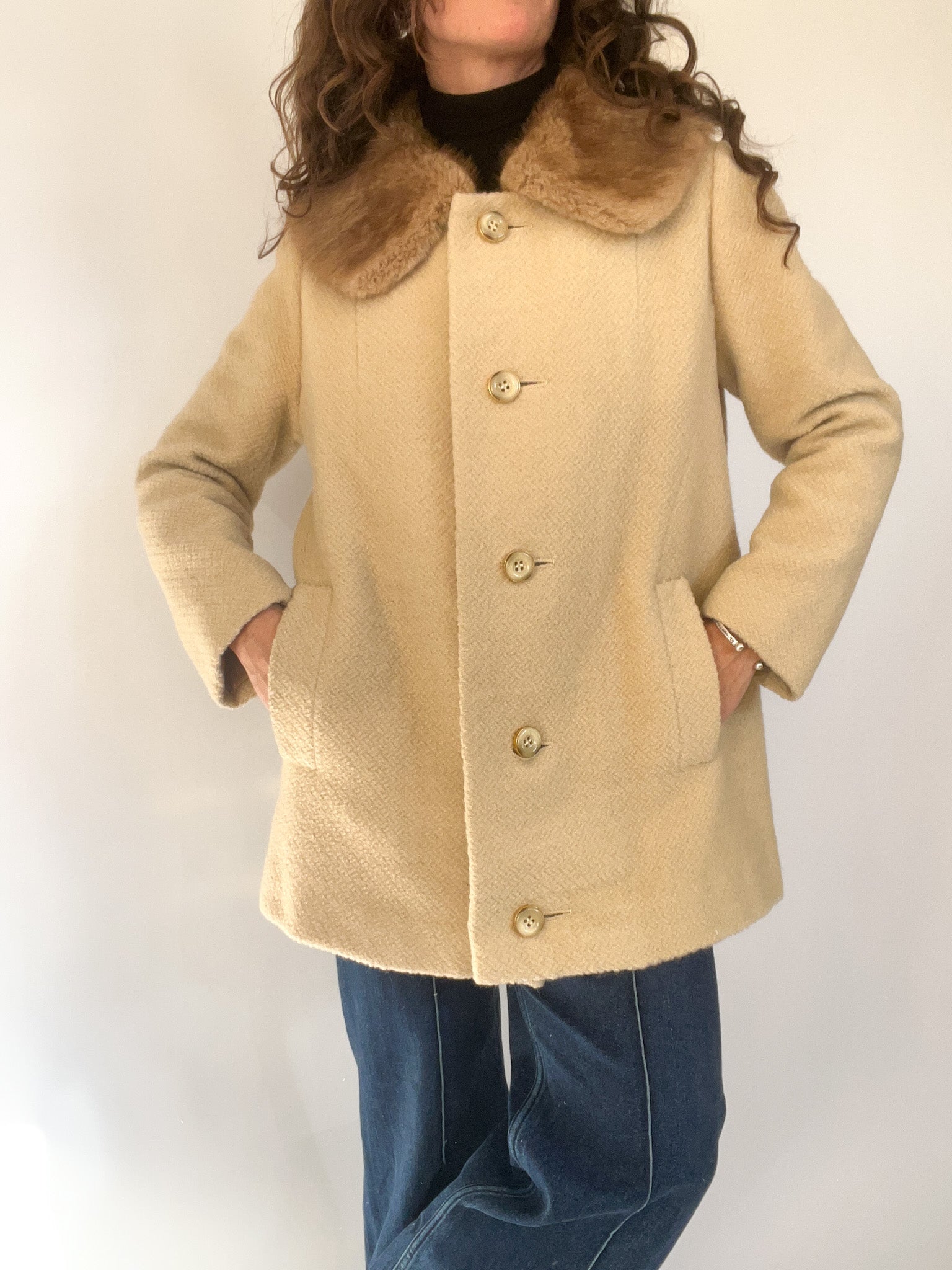 Vintage 60’s Cream Wool Coat with Faux Fur Collar