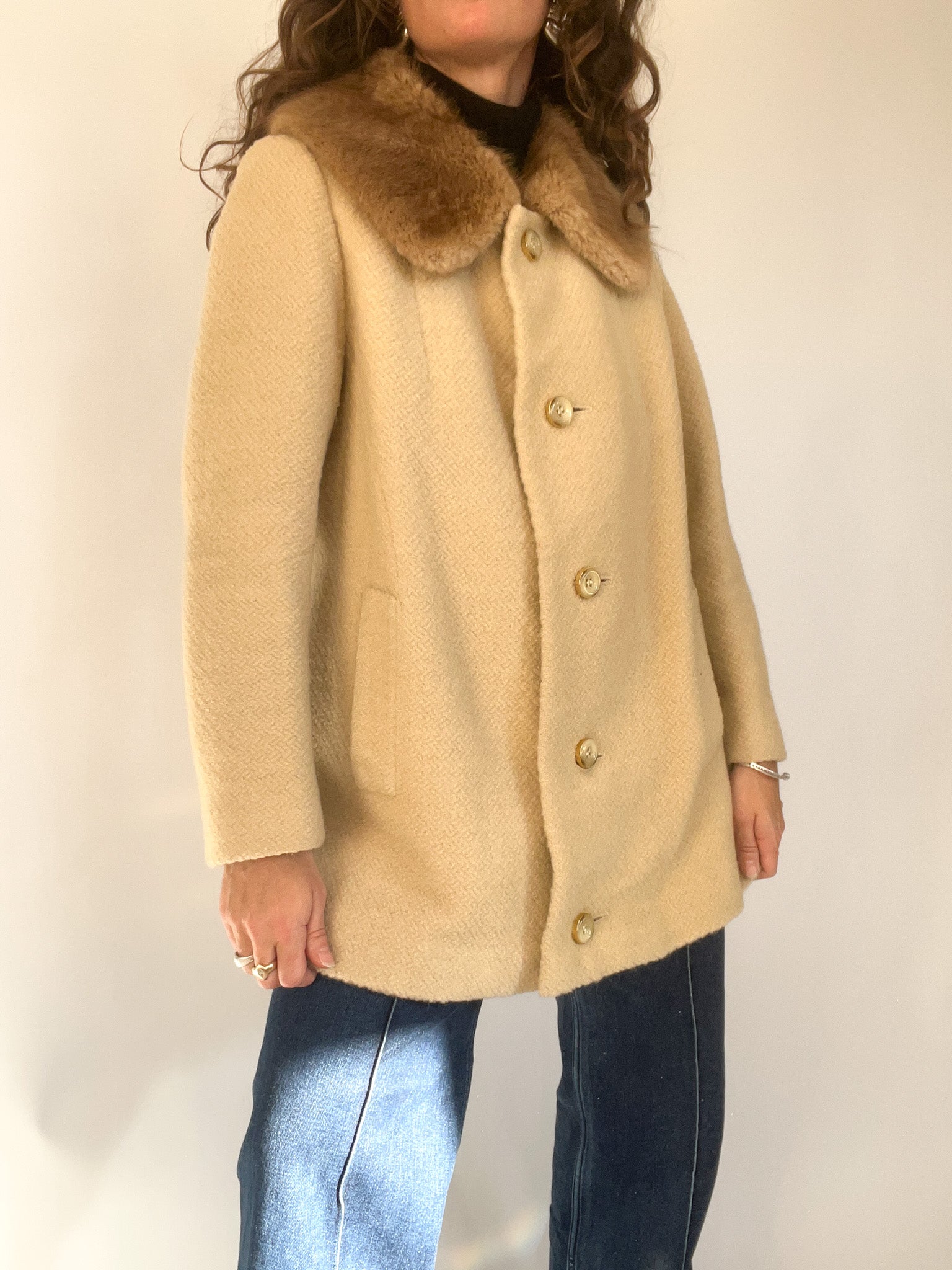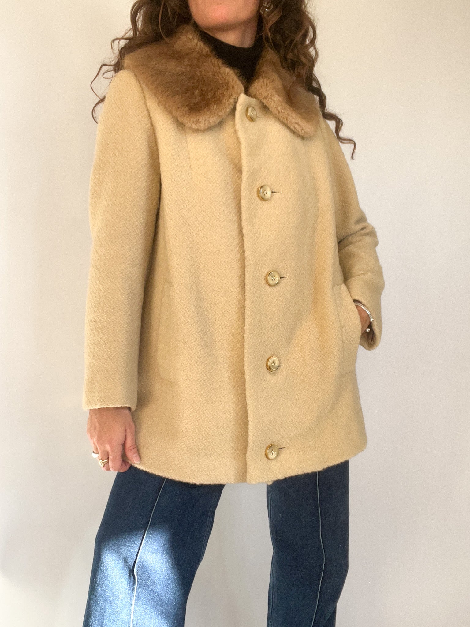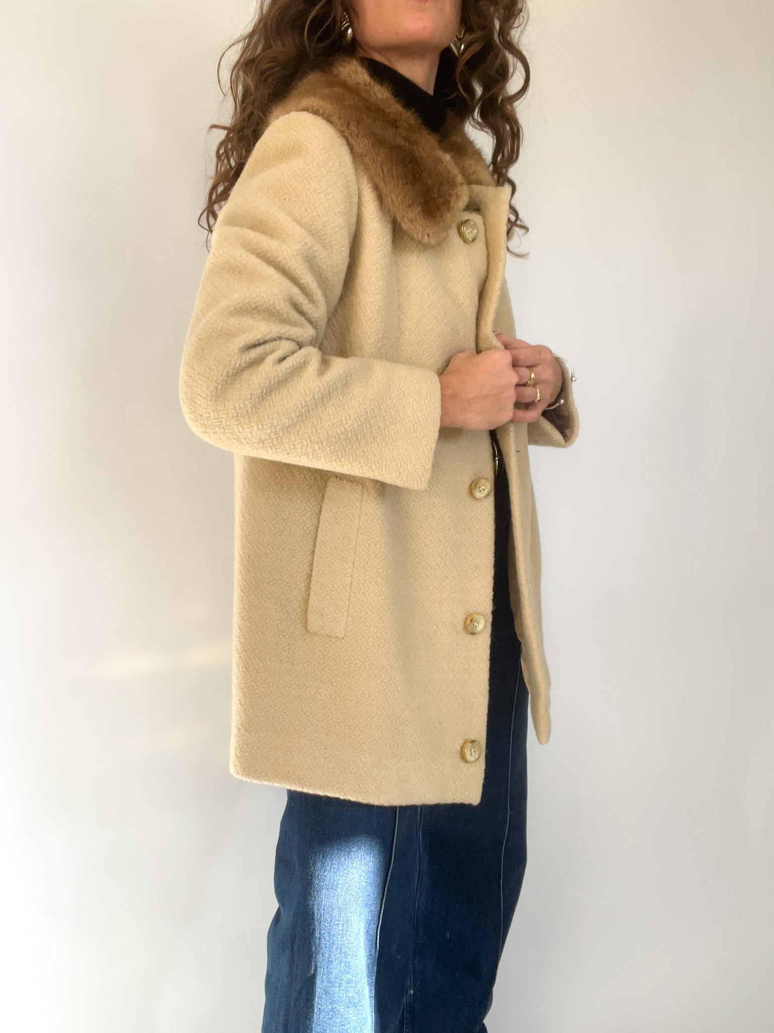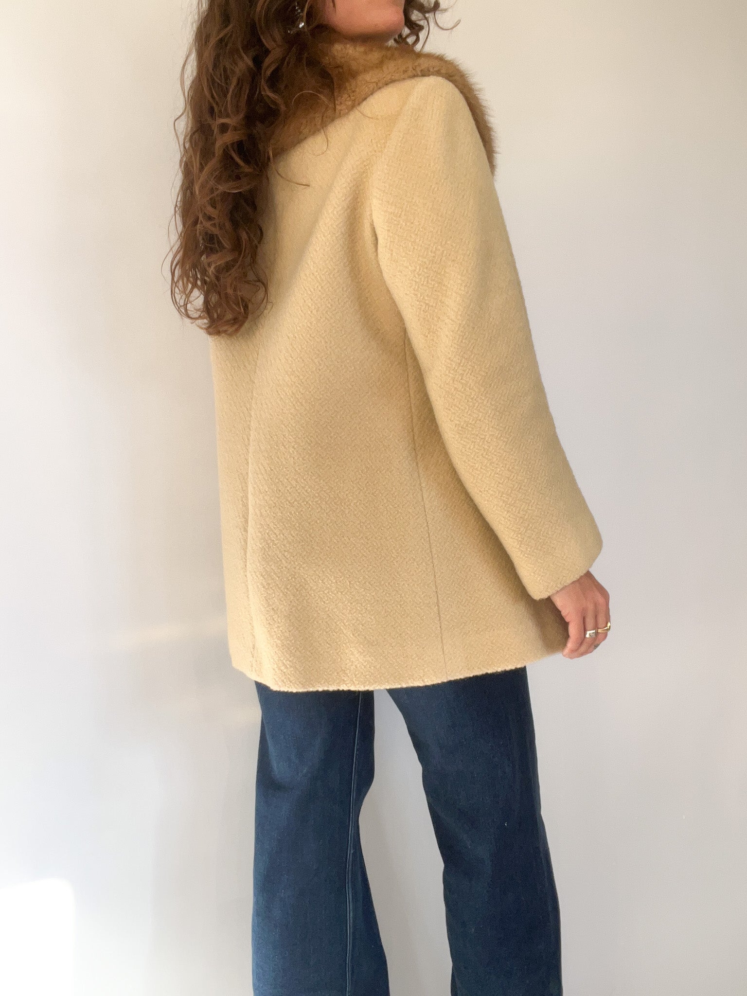 Vintage 60’s Cream Wool Coat with Faux Fur Collar