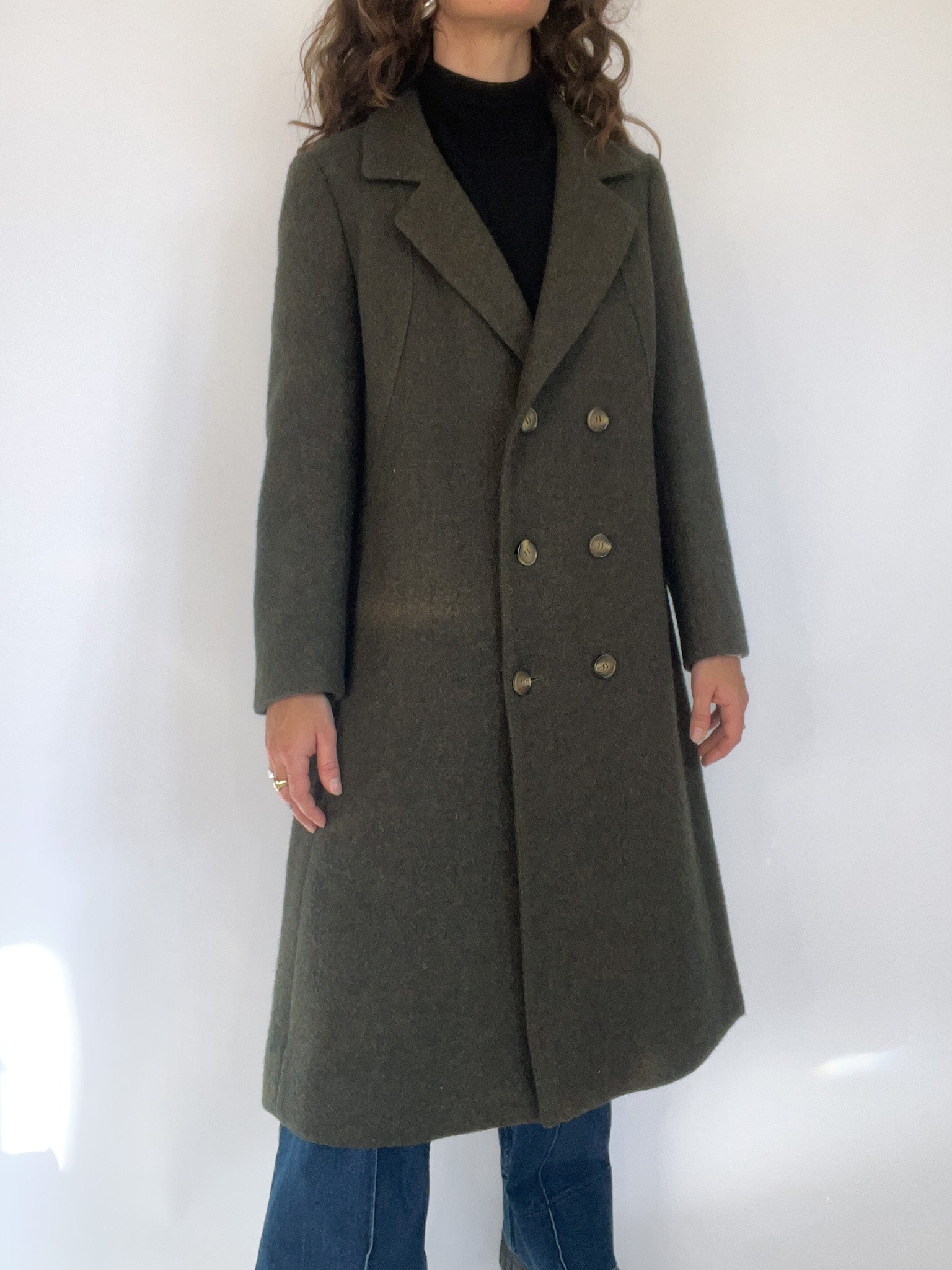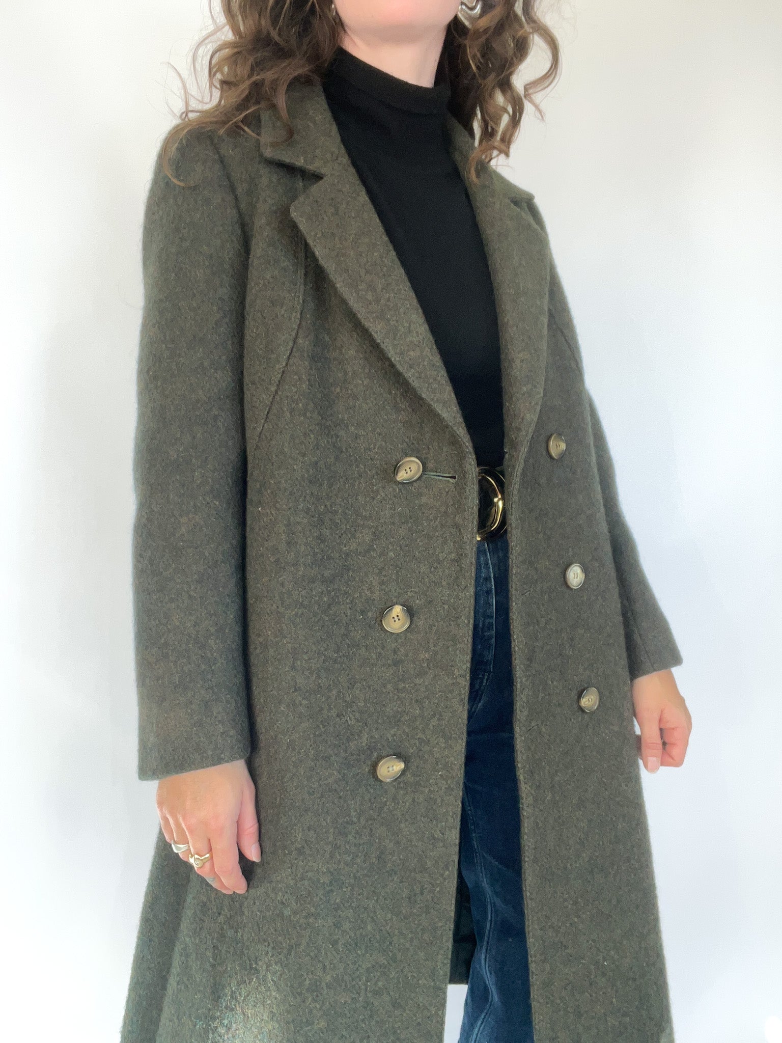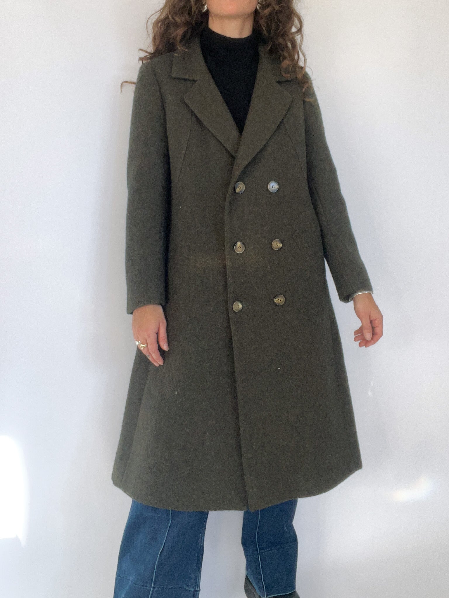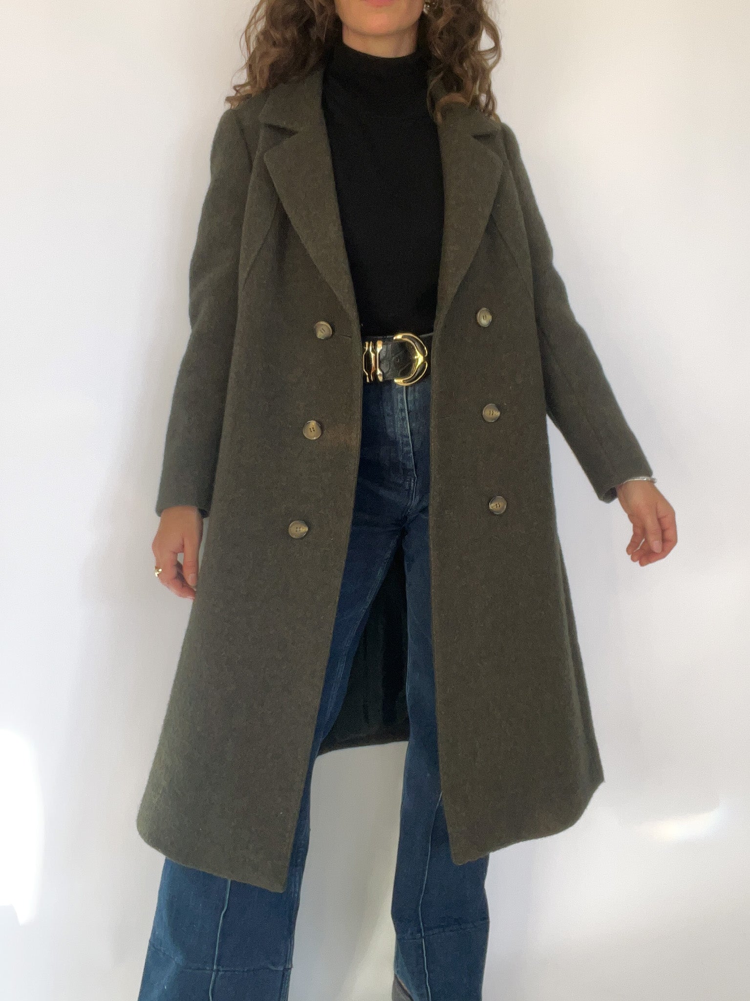 Vintage 80’s Dark Kaki Double-Breasted Wool Coat