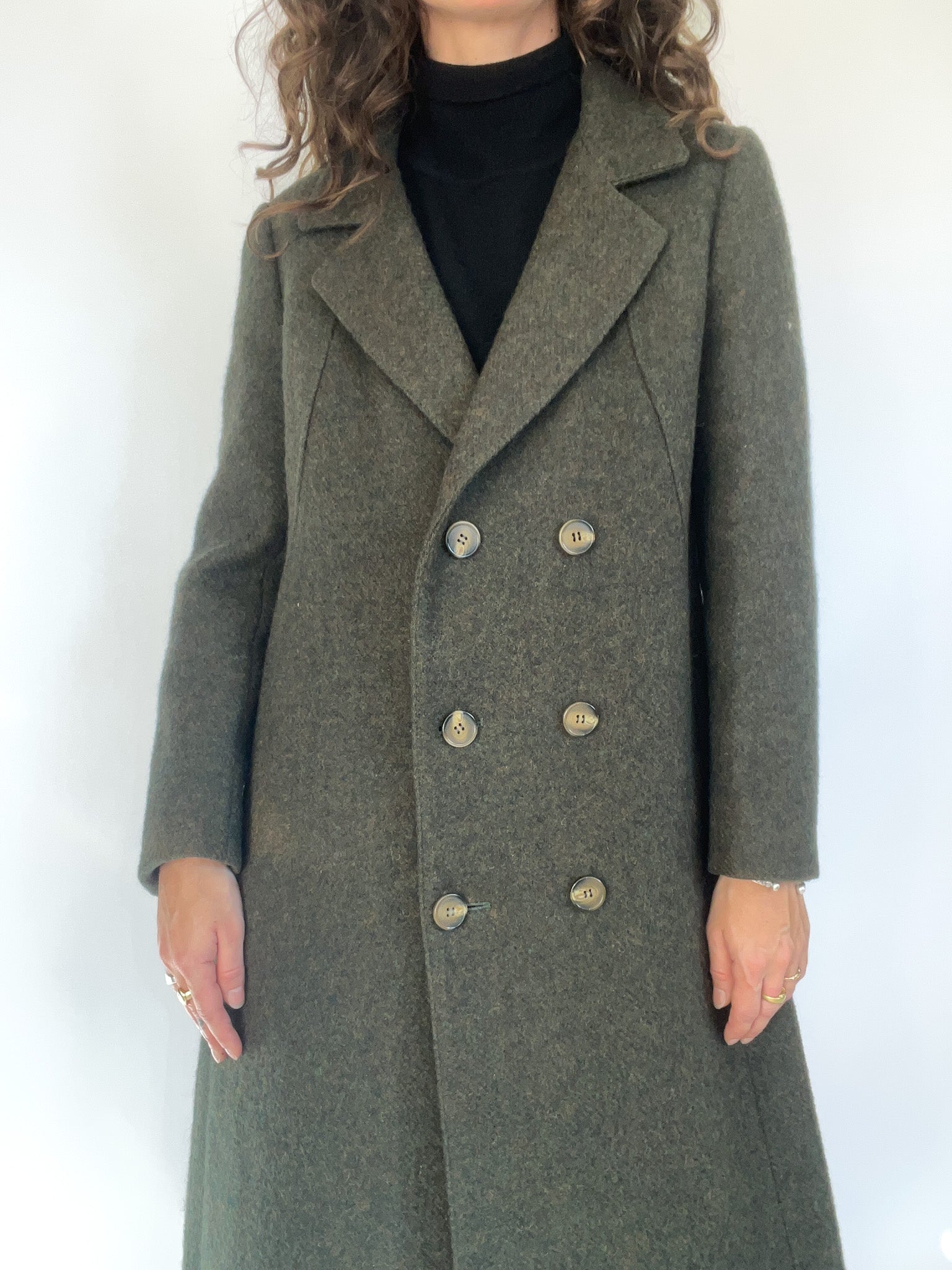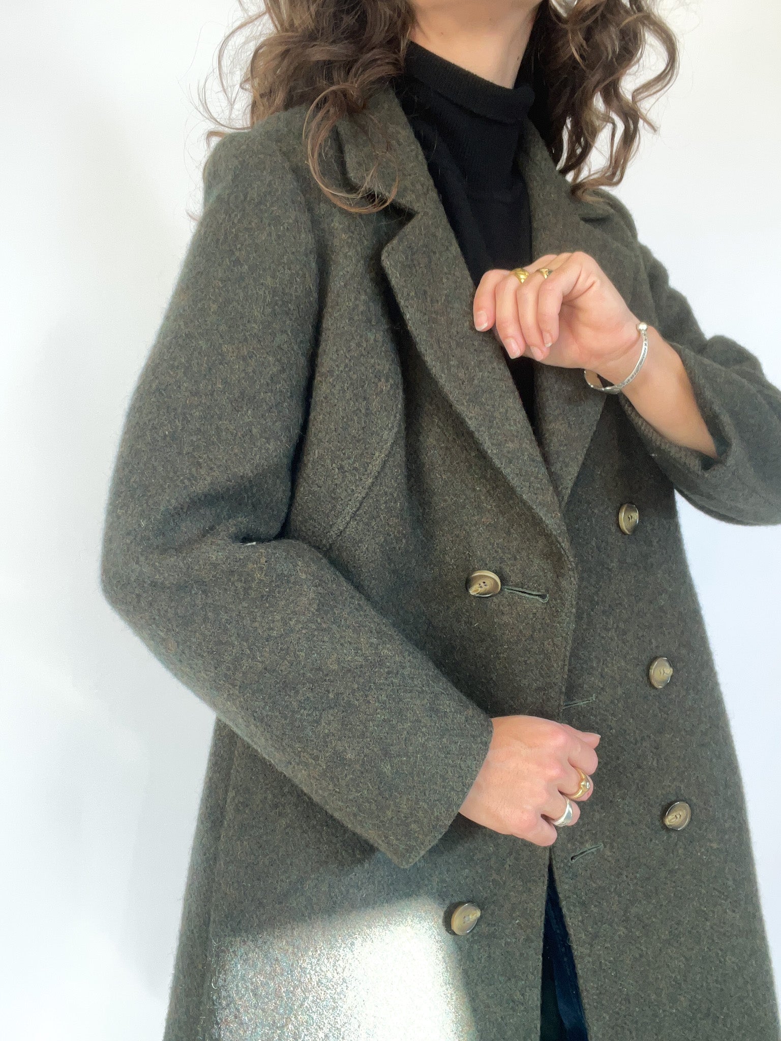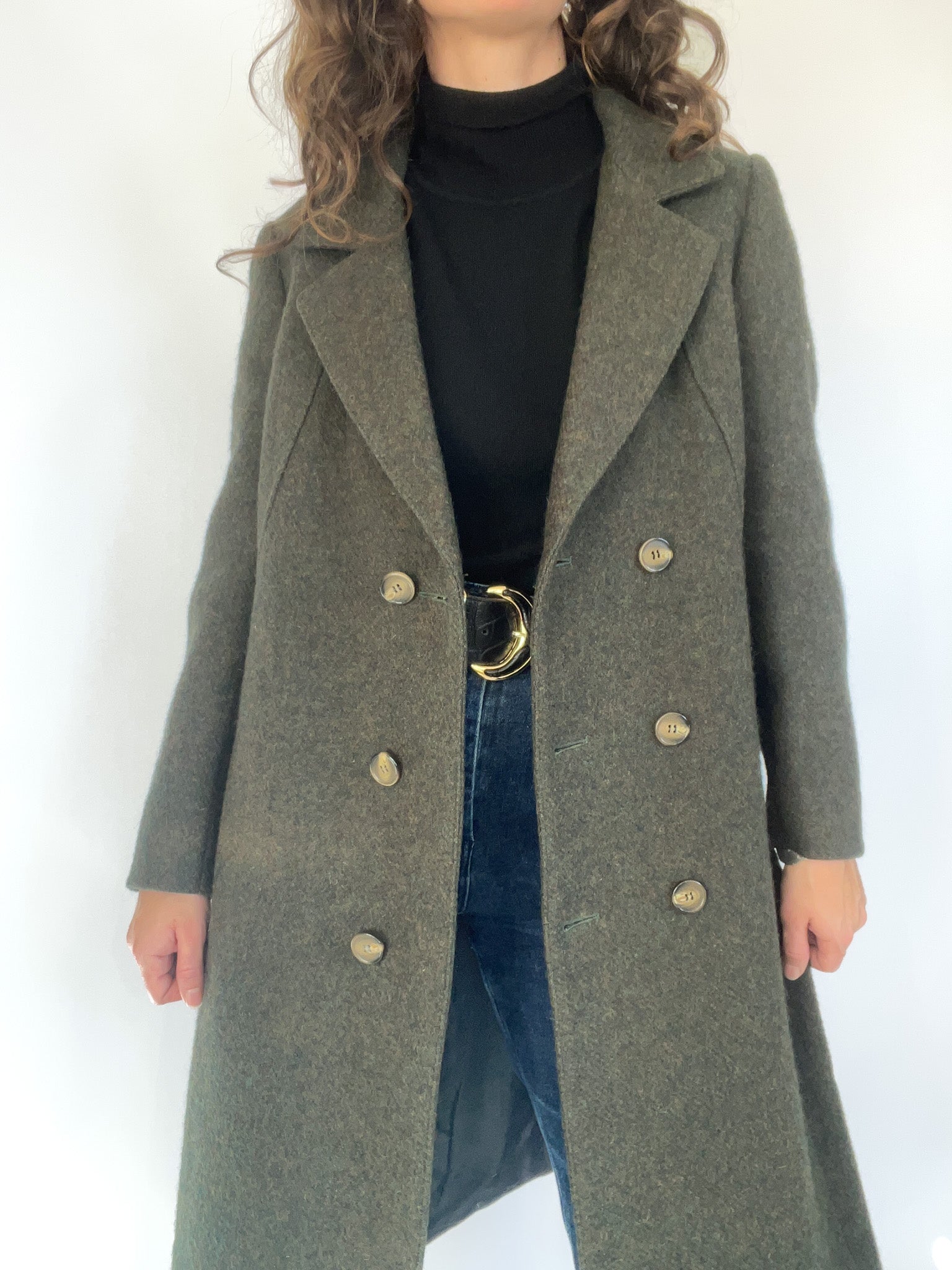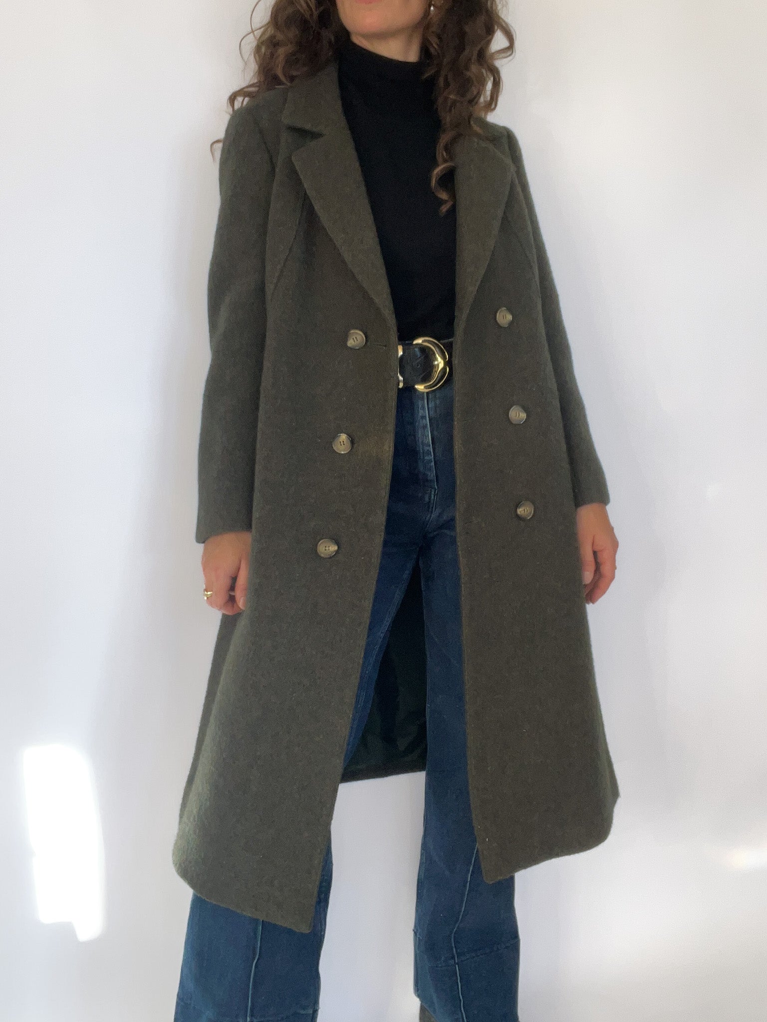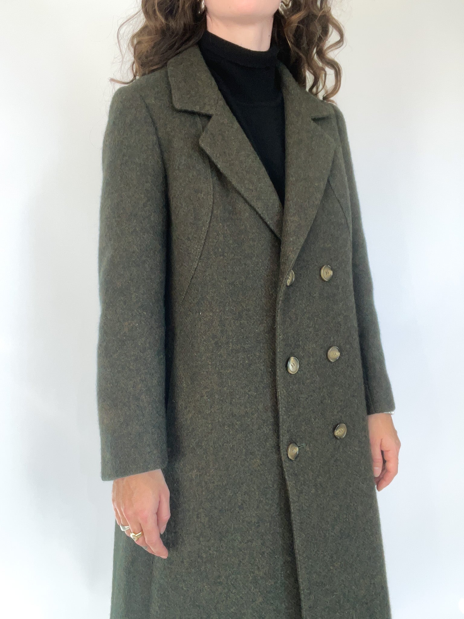 Vintage 80’s Dark Kaki Double-Breasted Wool Coat