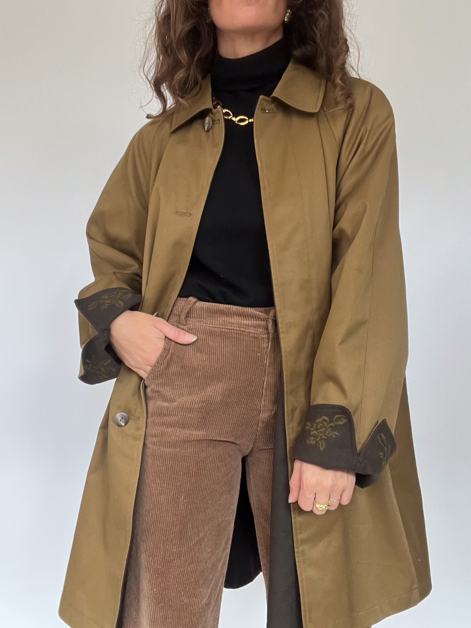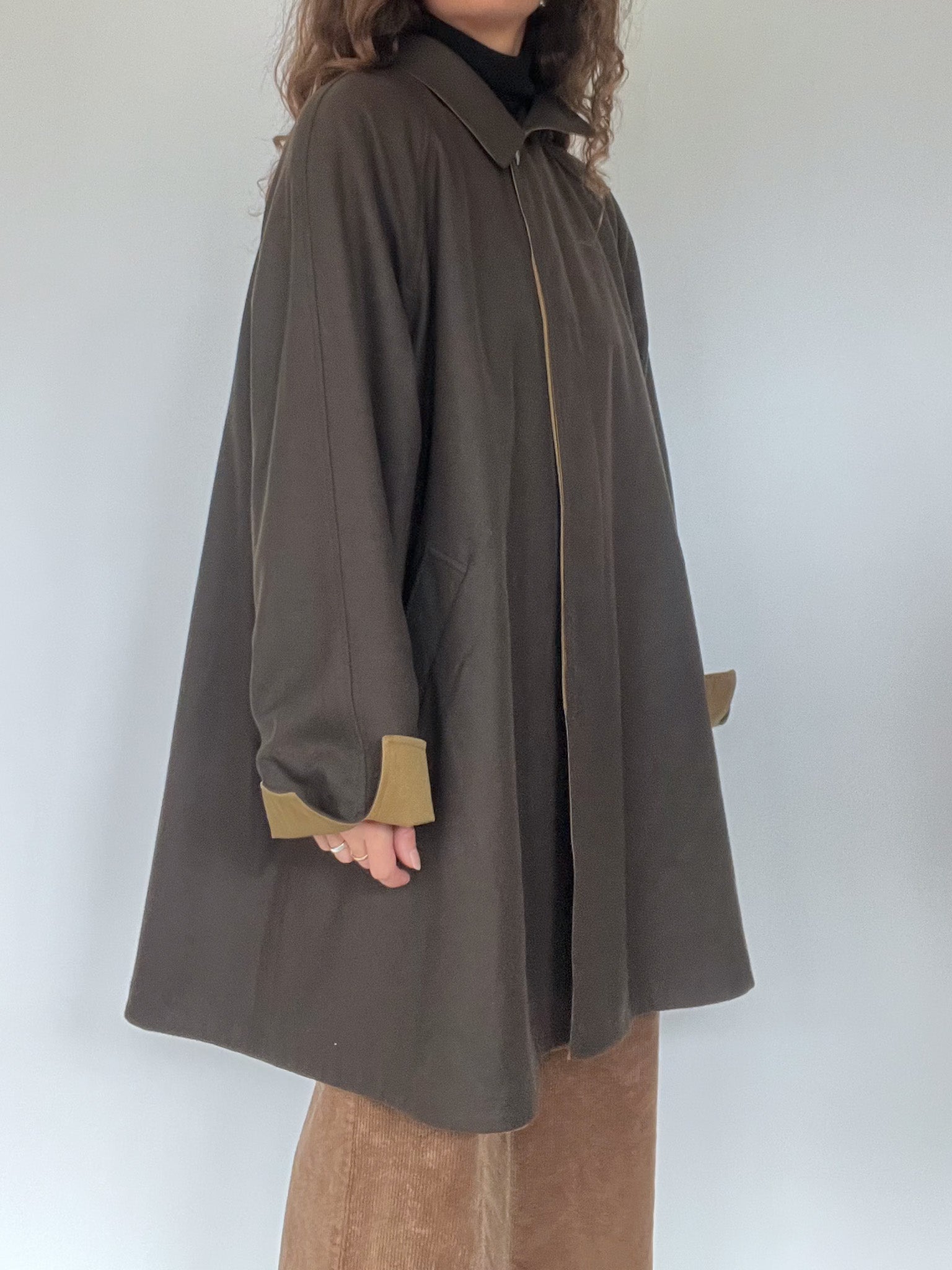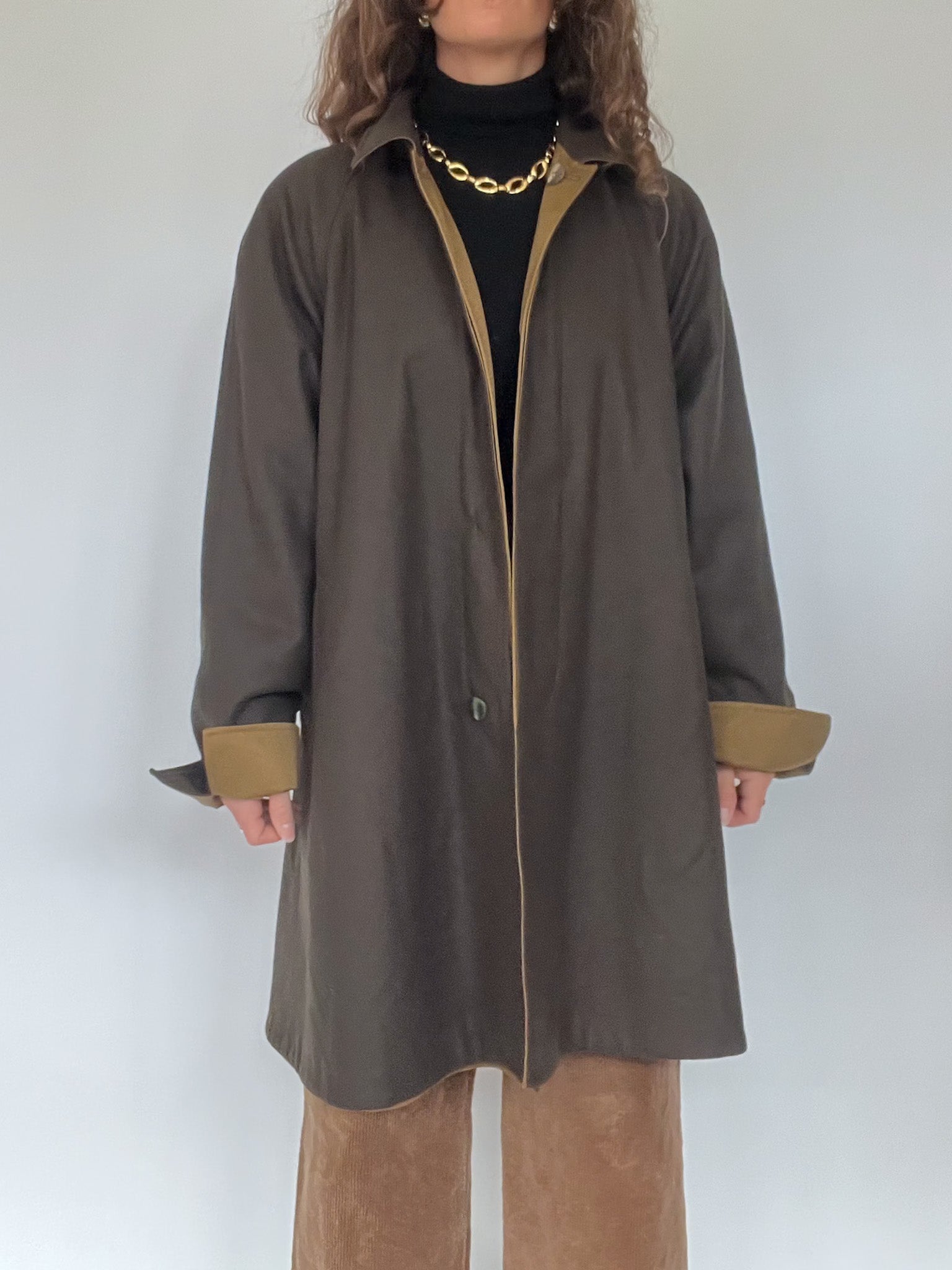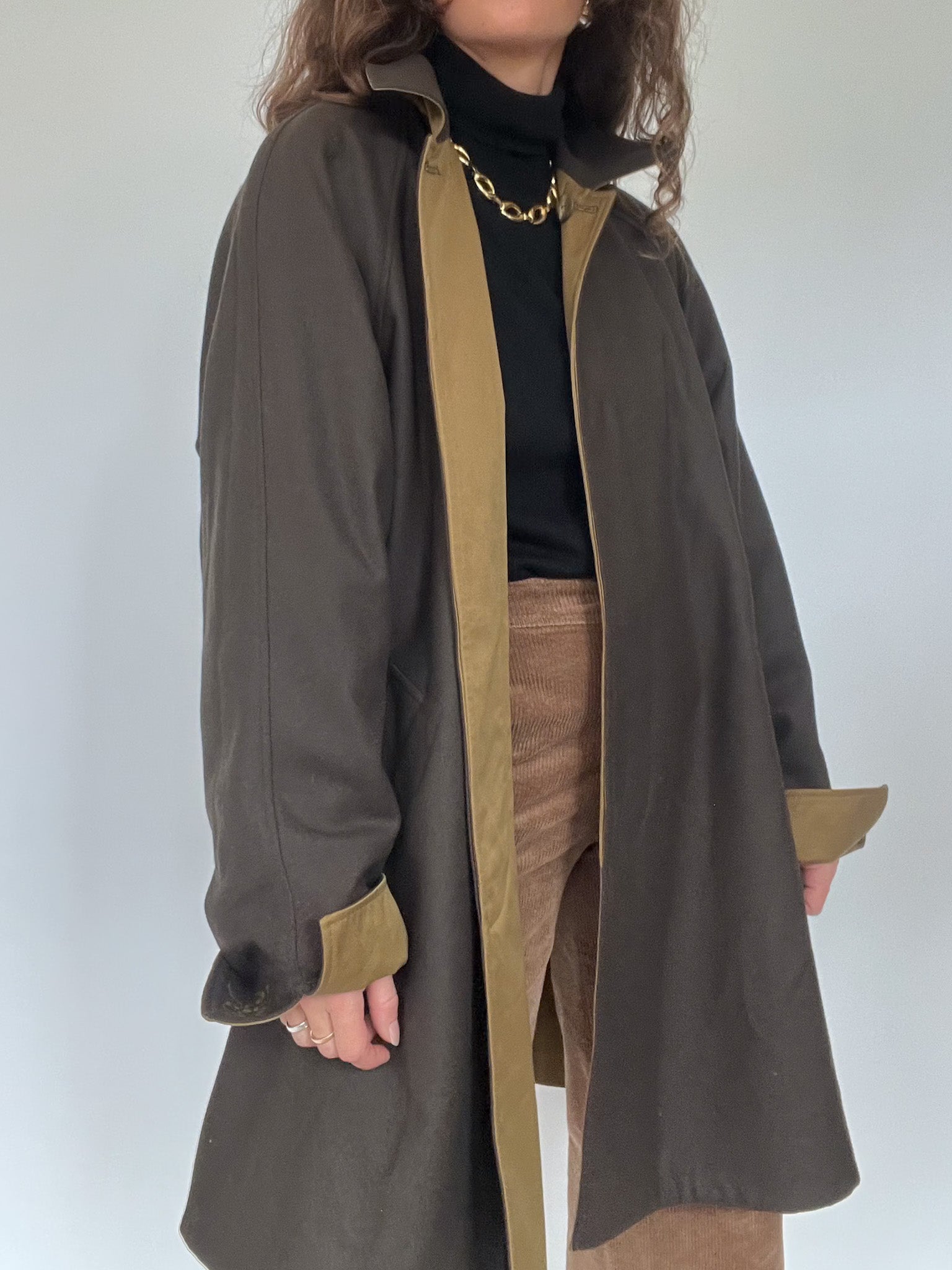 Vintage 80’s Dark Kaki Double-Breasted Wool Coat