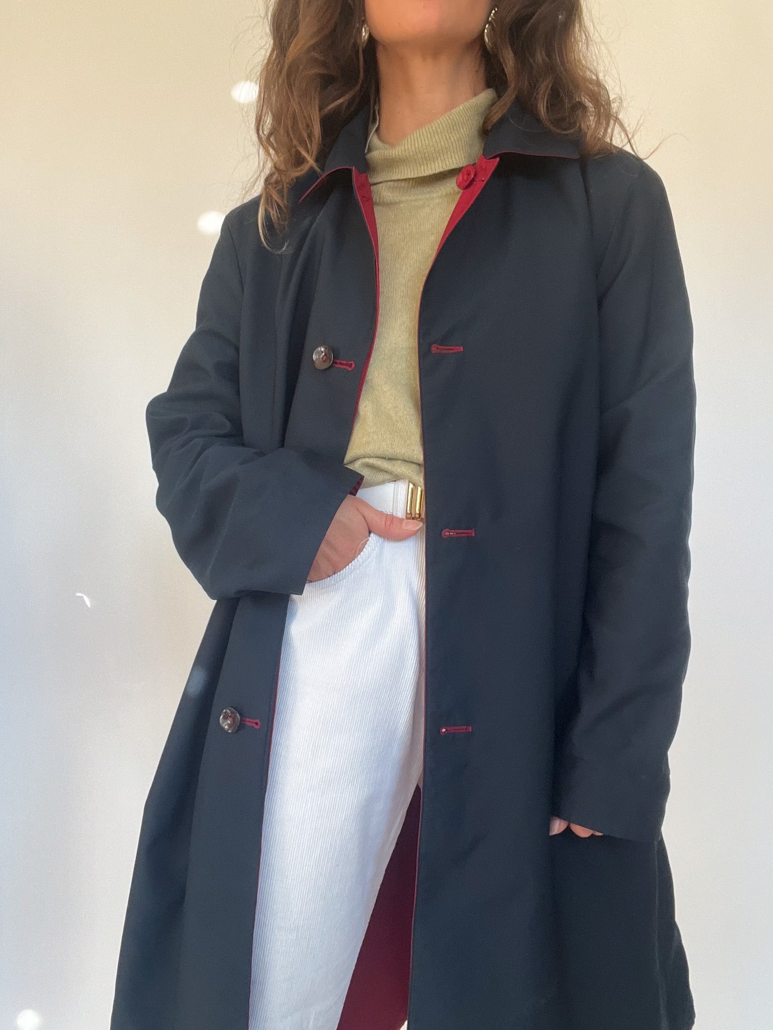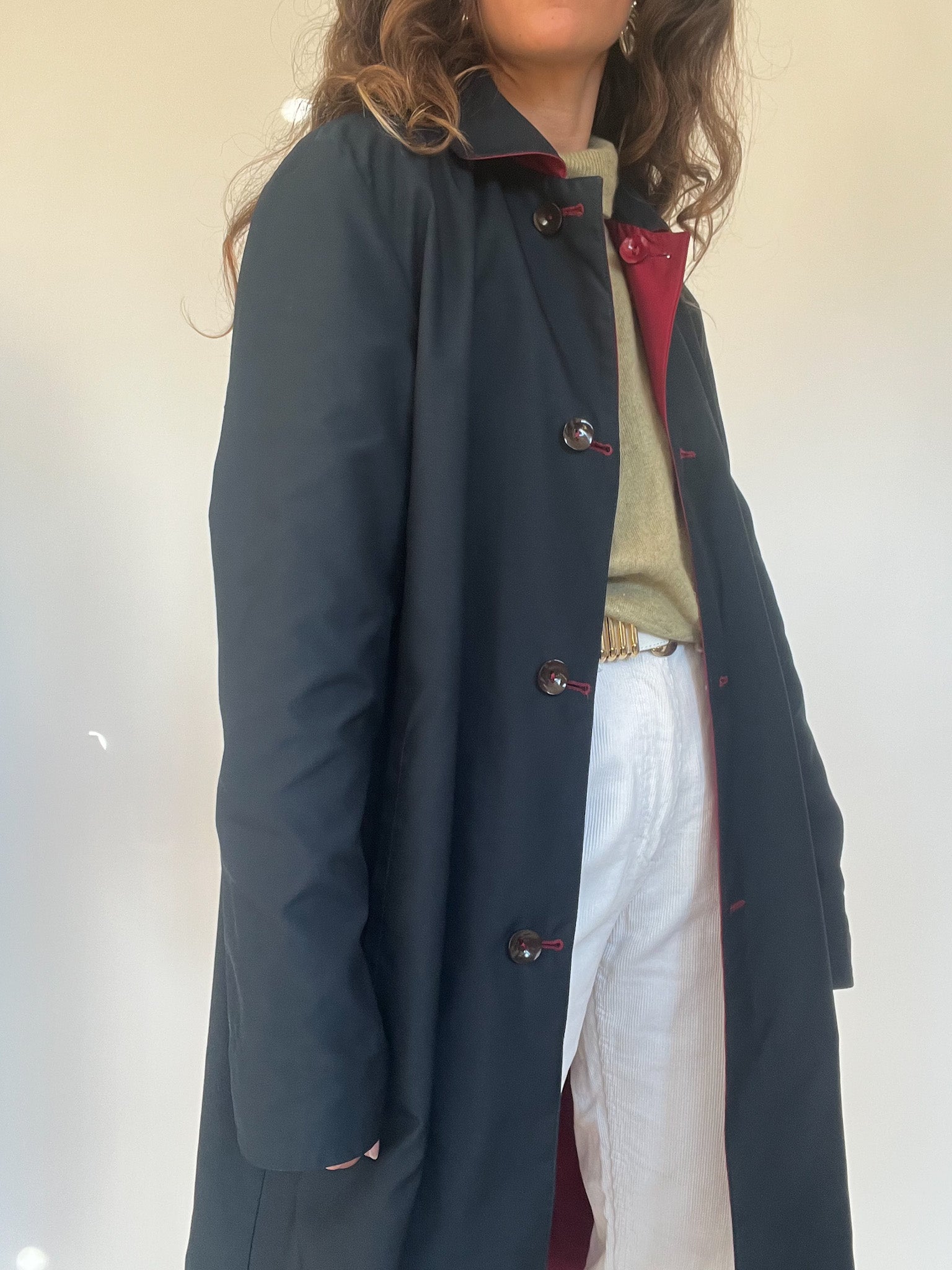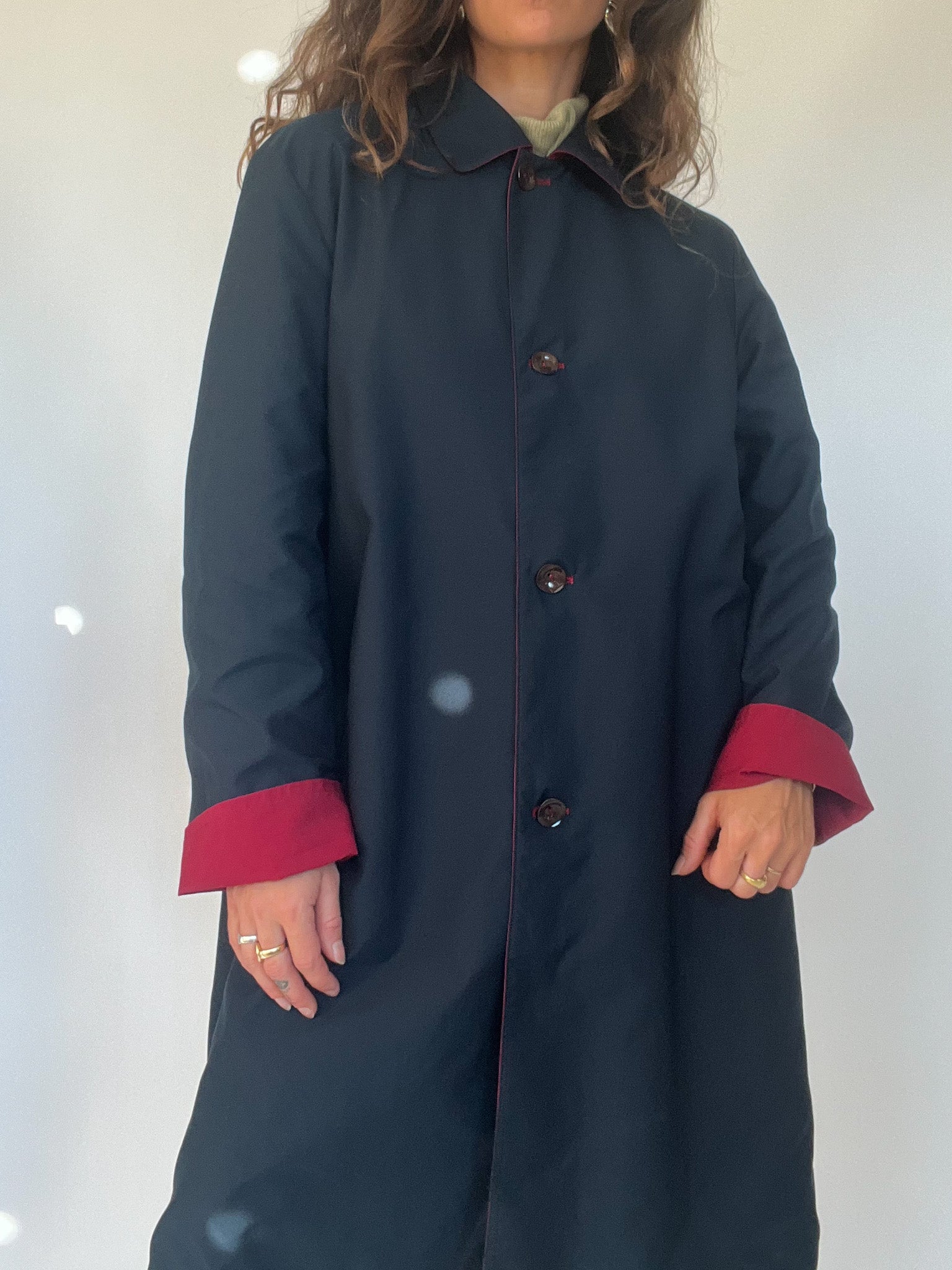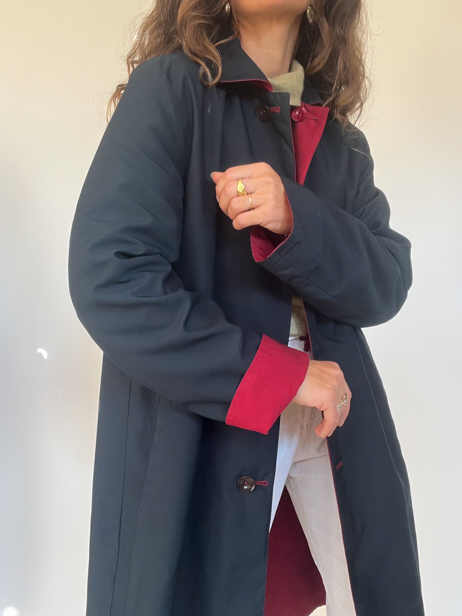 Vintage 80’s Navy & Burgundy Reversible Long Coat
