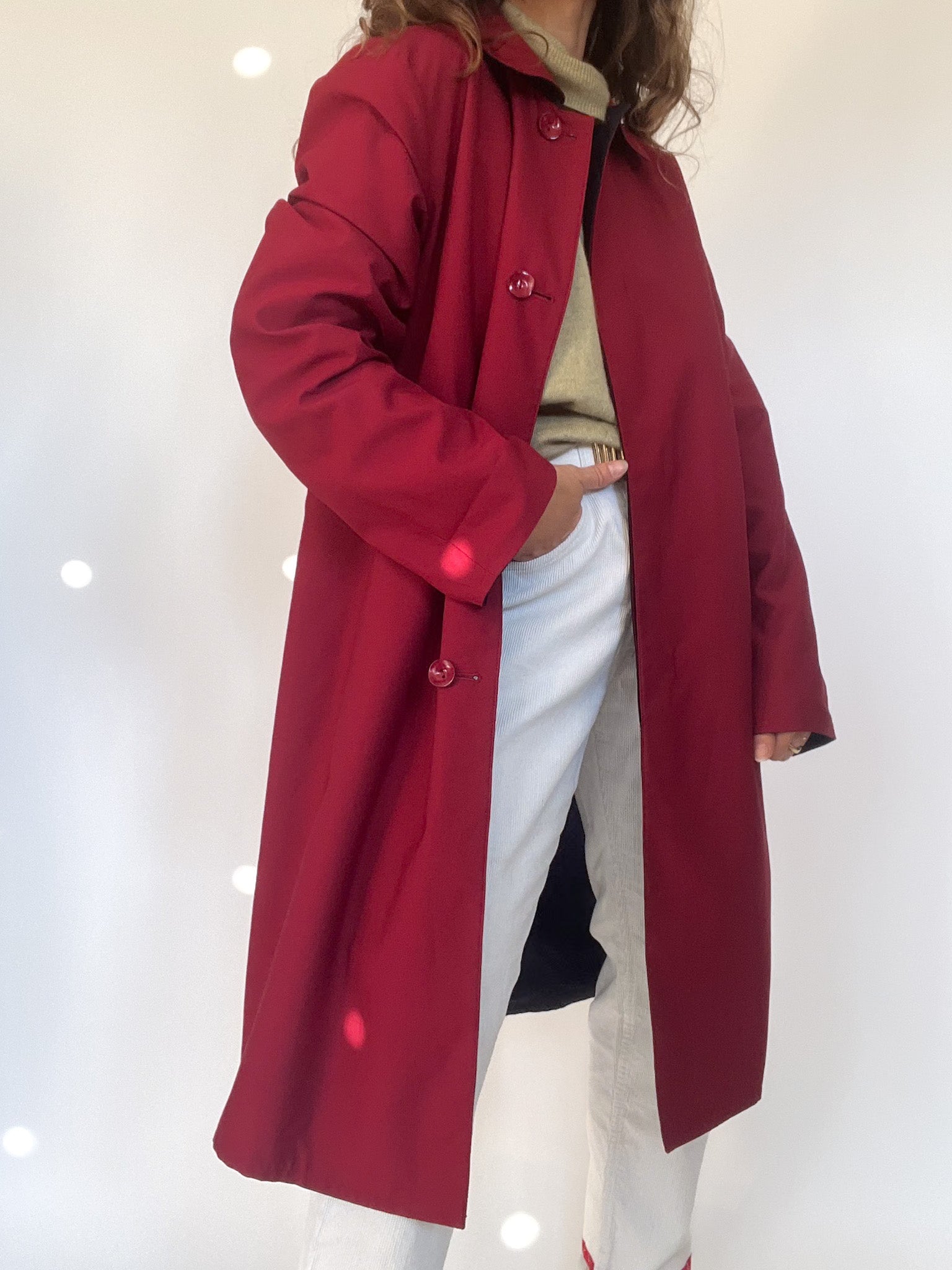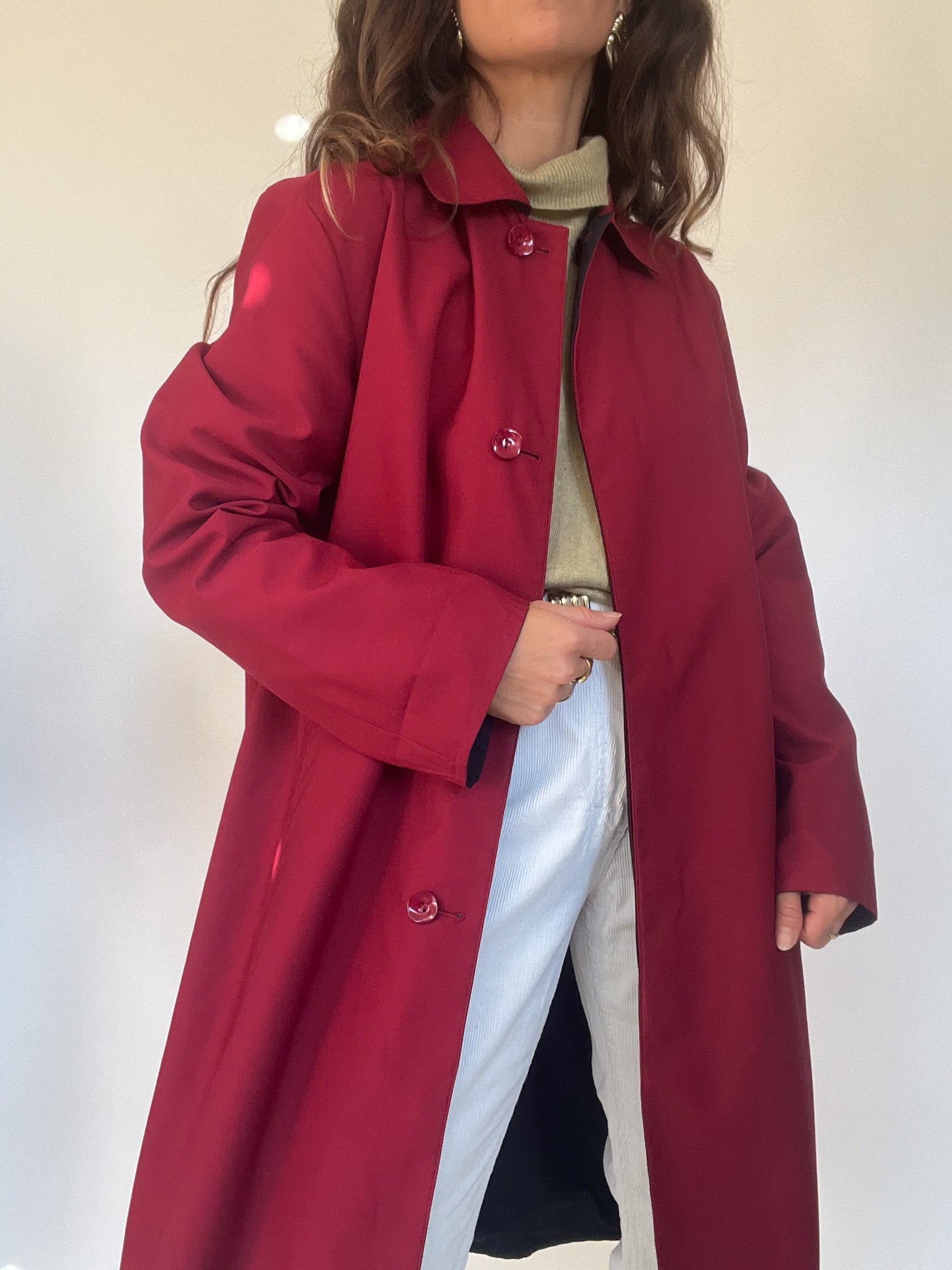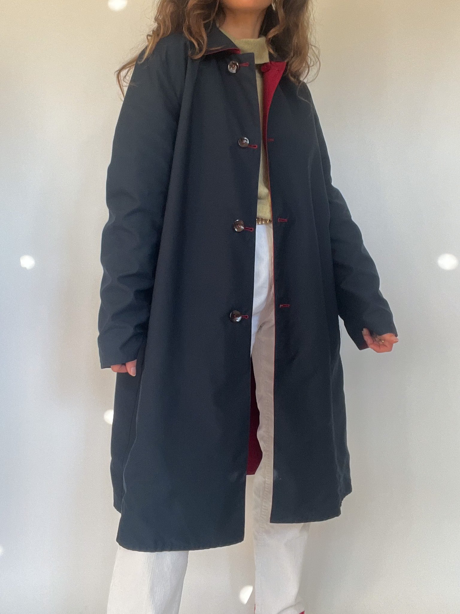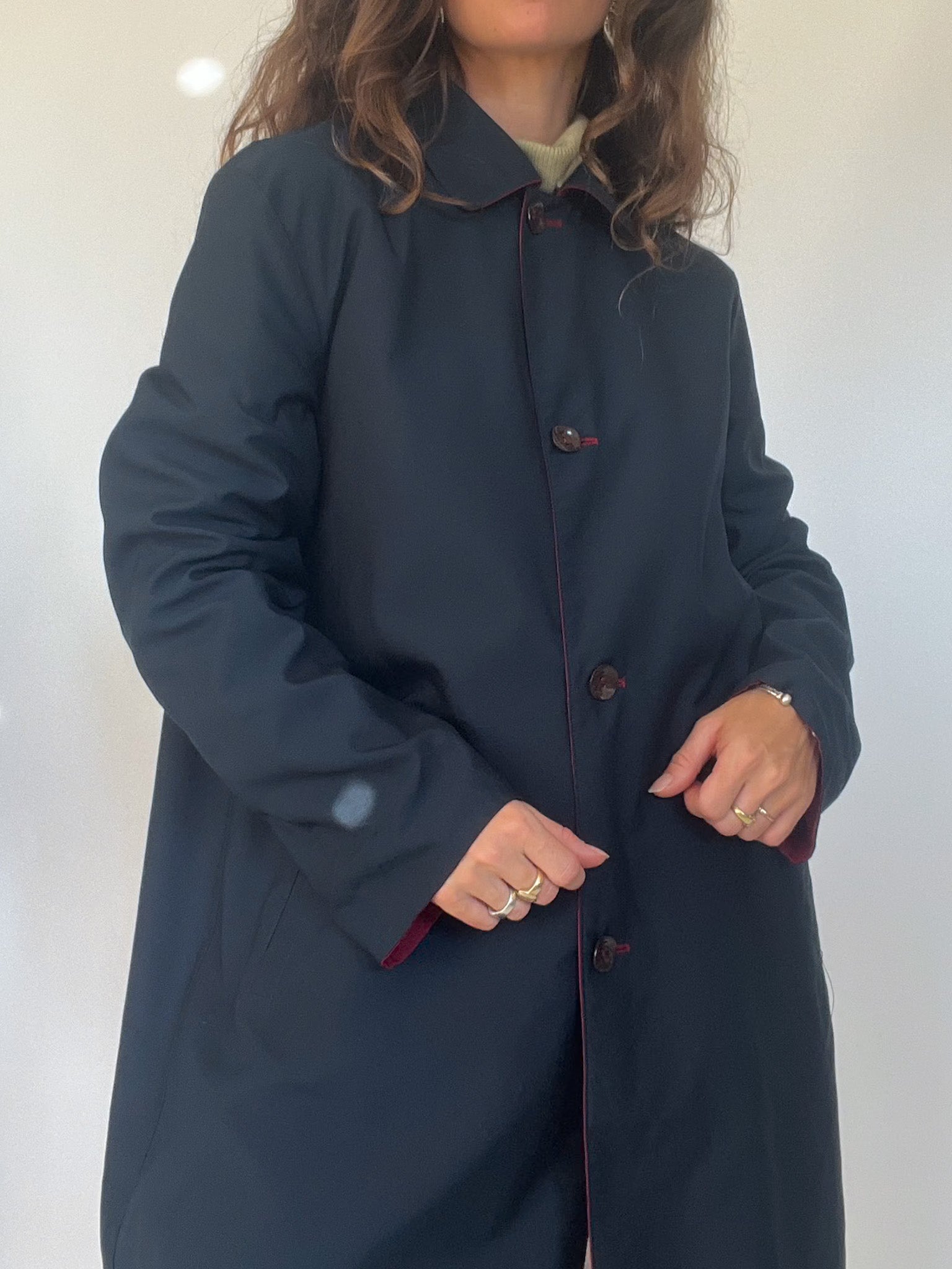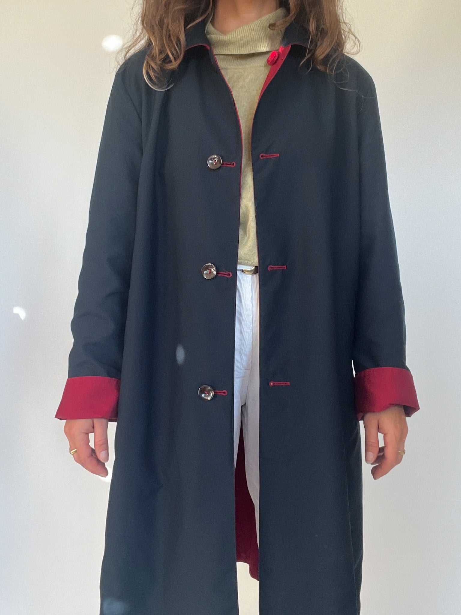 Vintage 80’s Navy & Burgundy Reversible Long Coat
