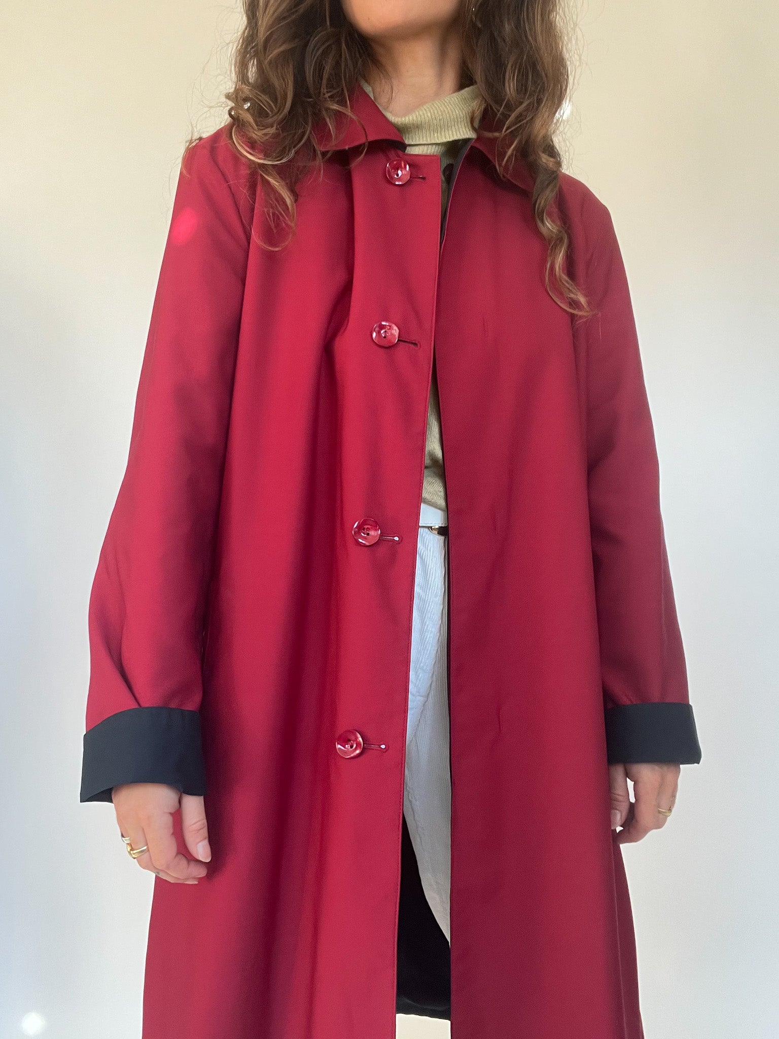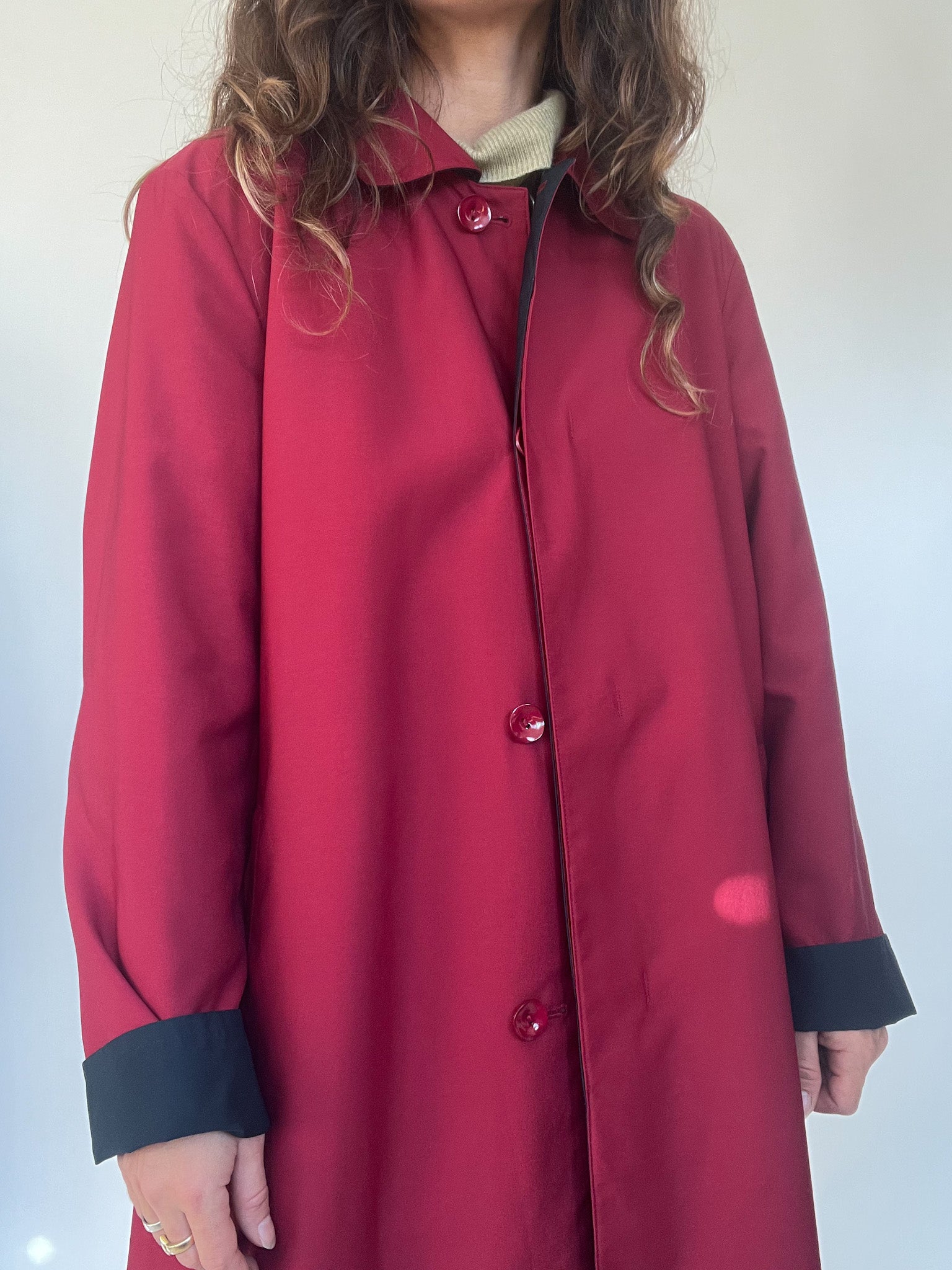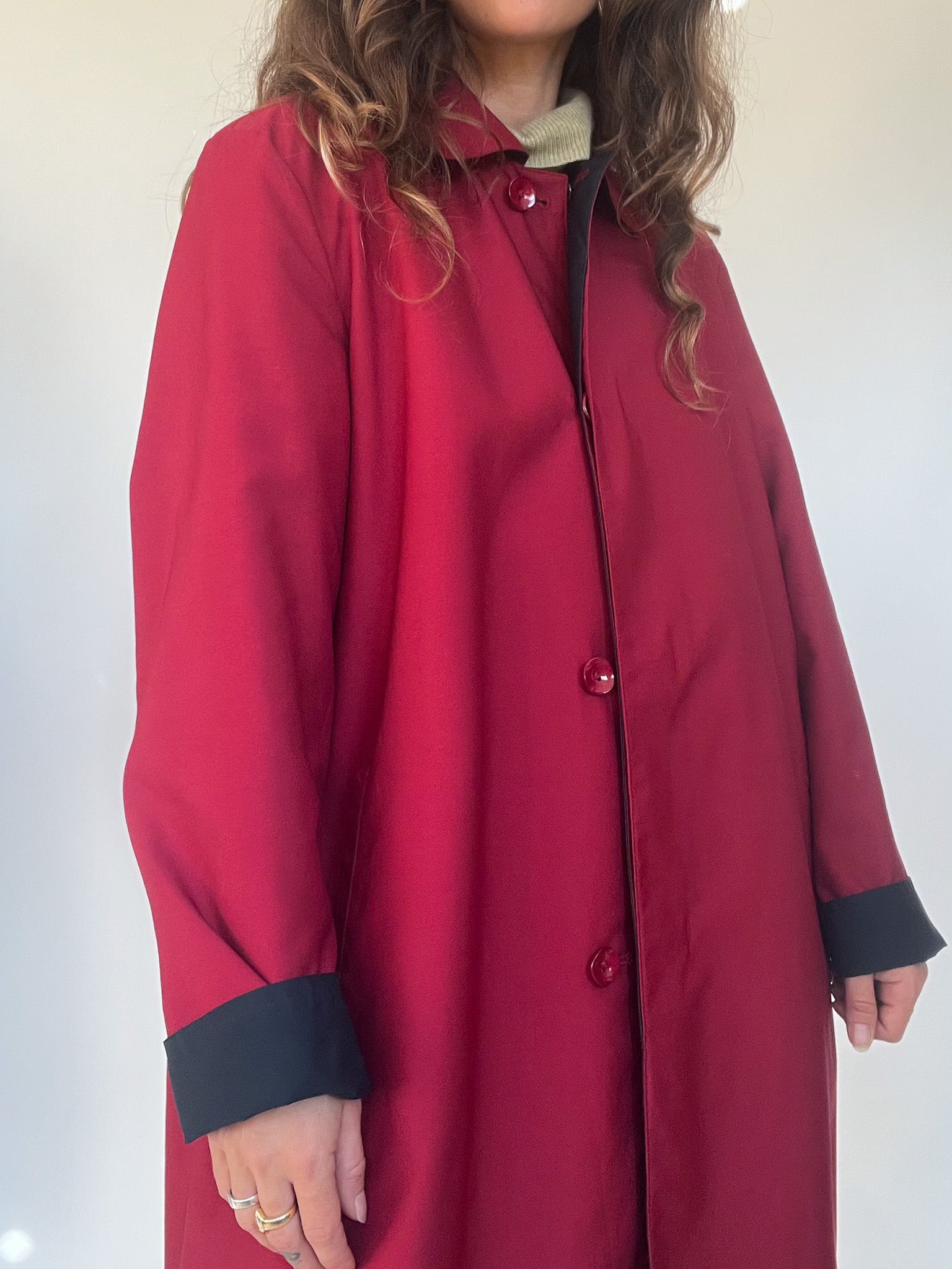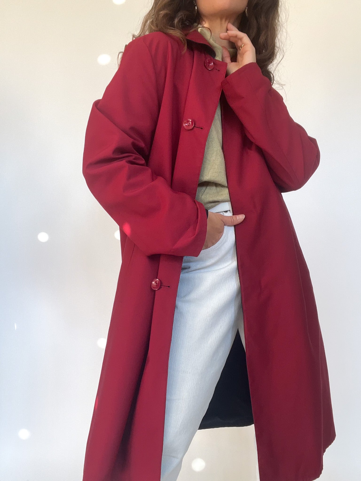 Vintage 80’s Navy & Burgundy Reversible Long Coat