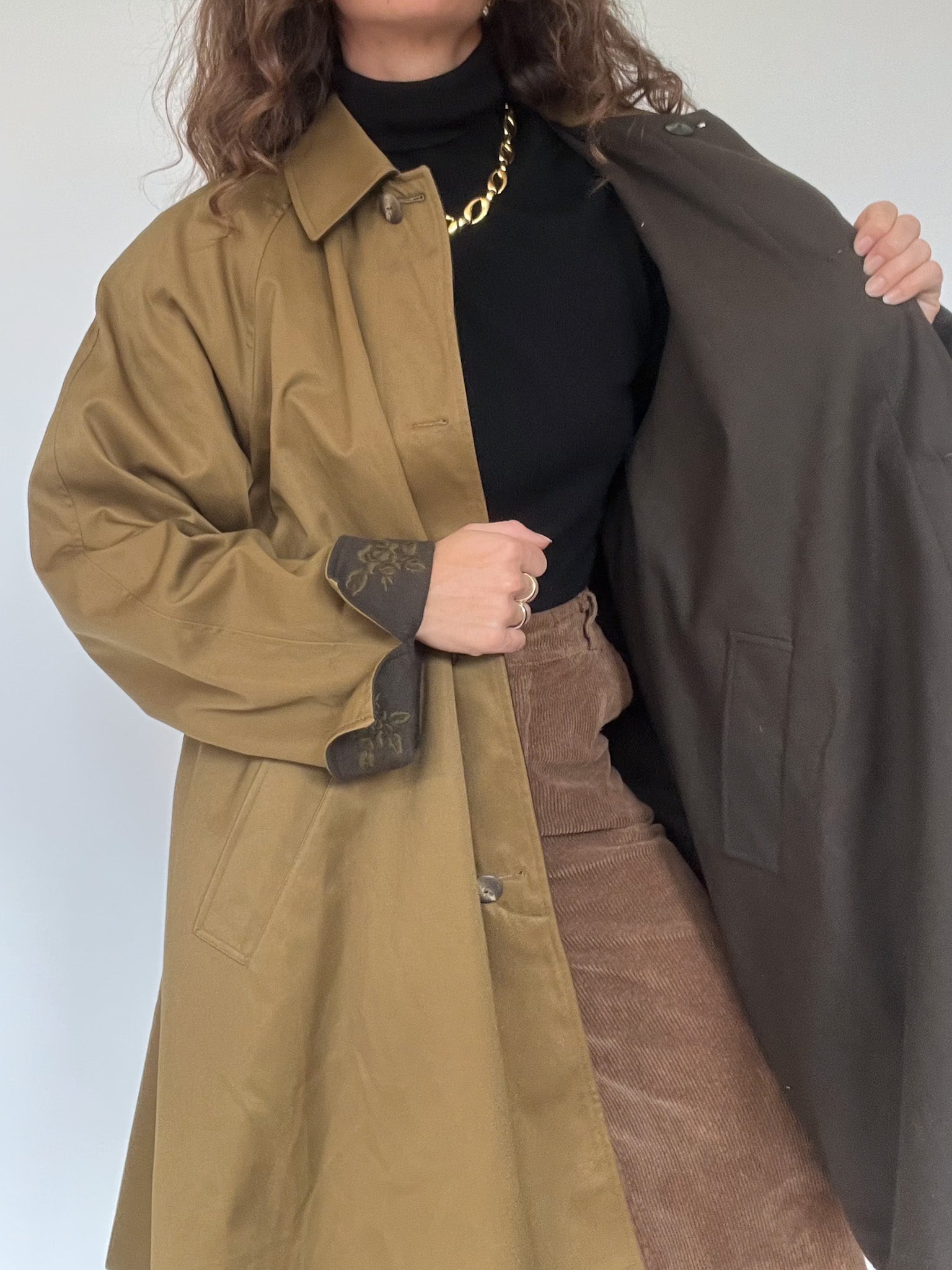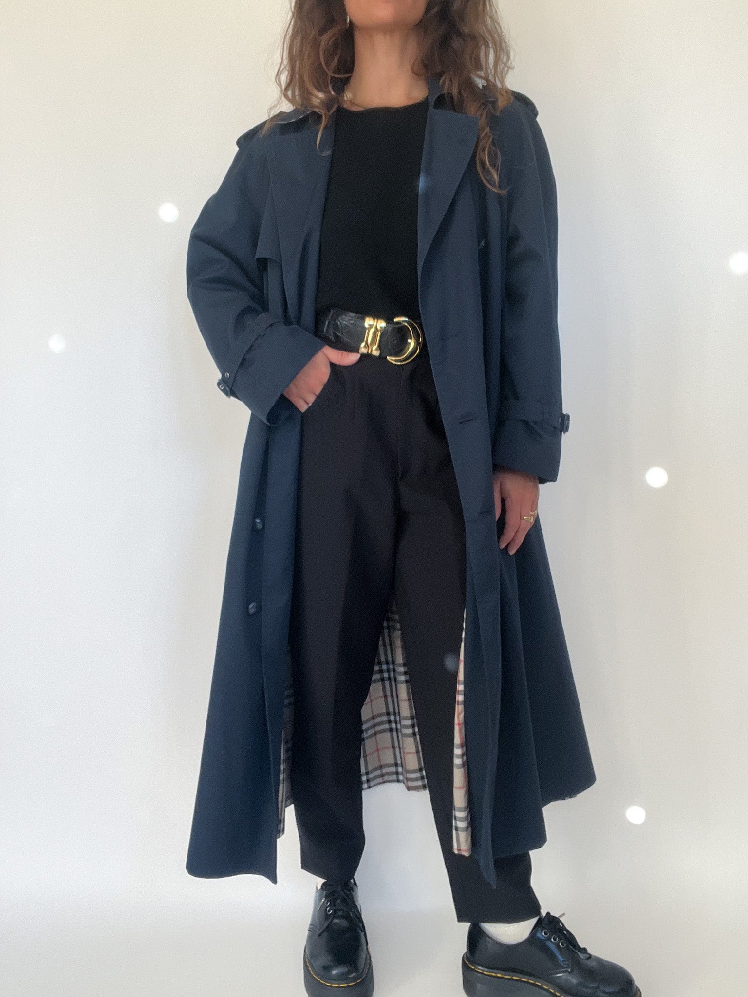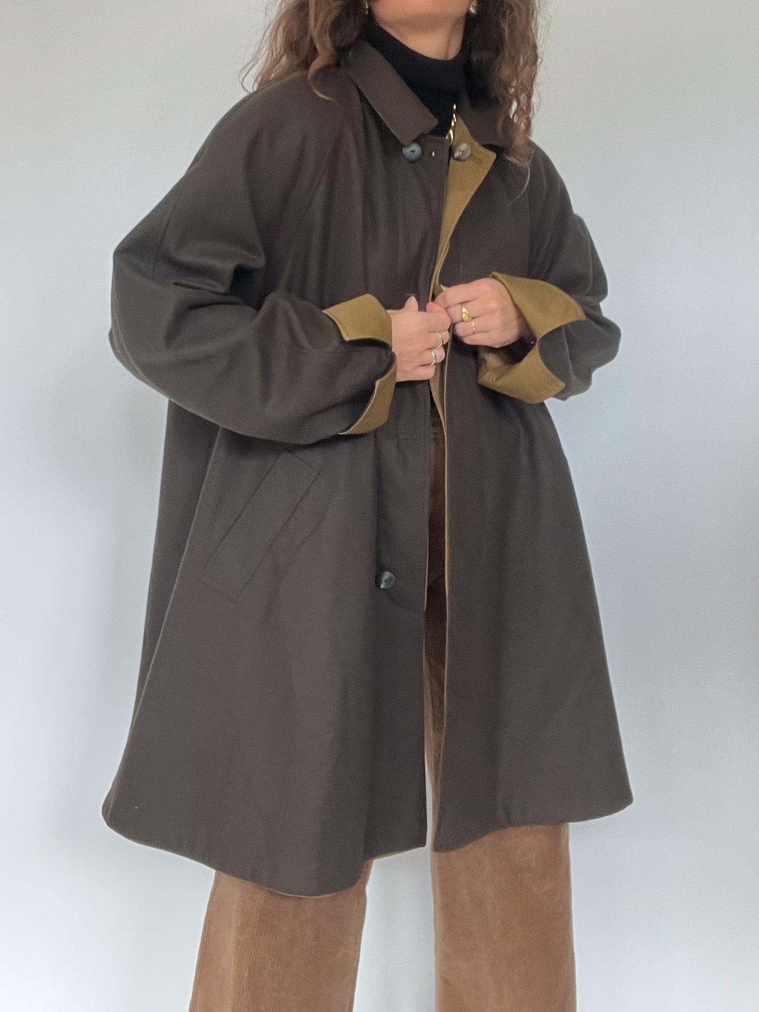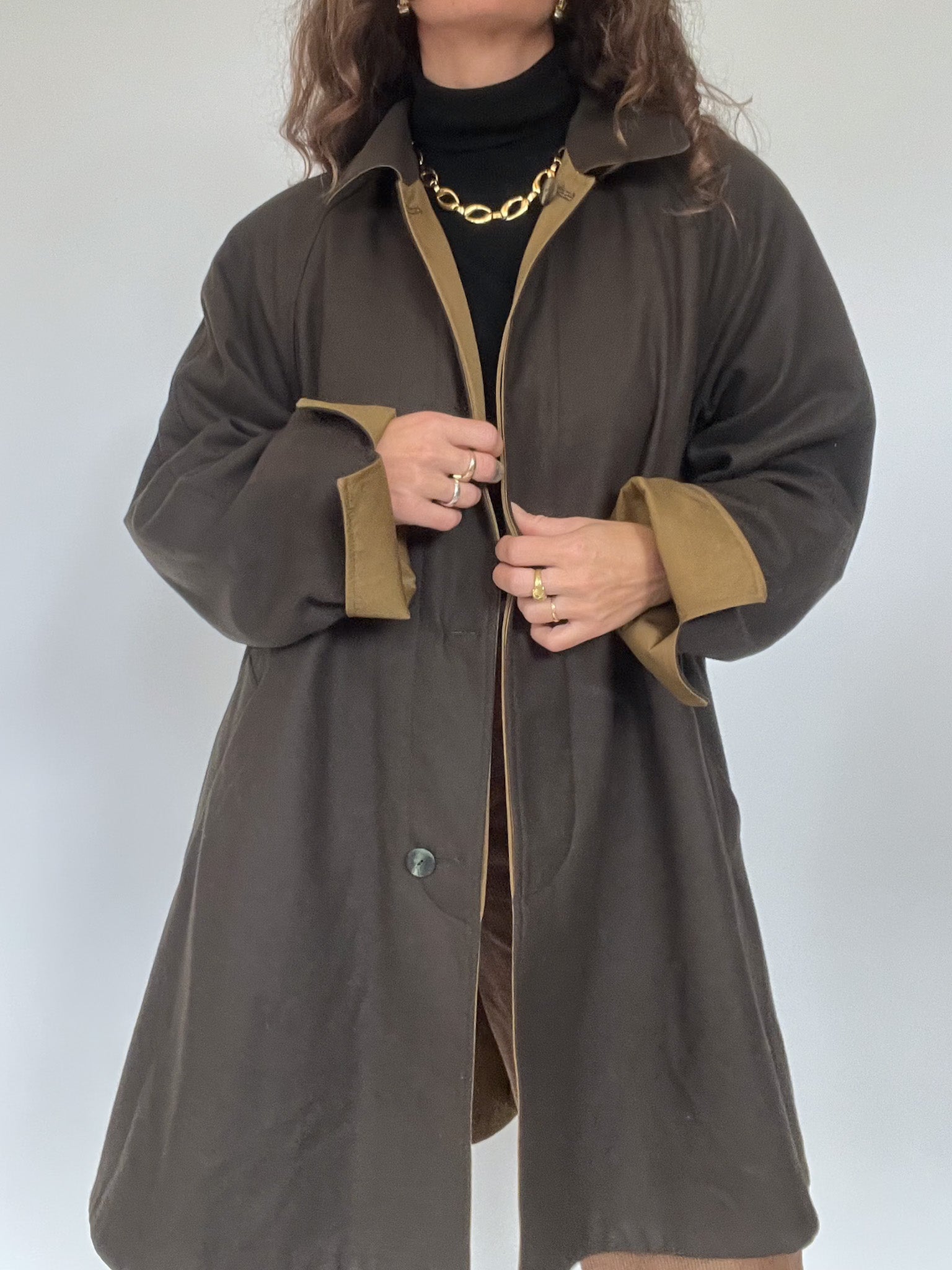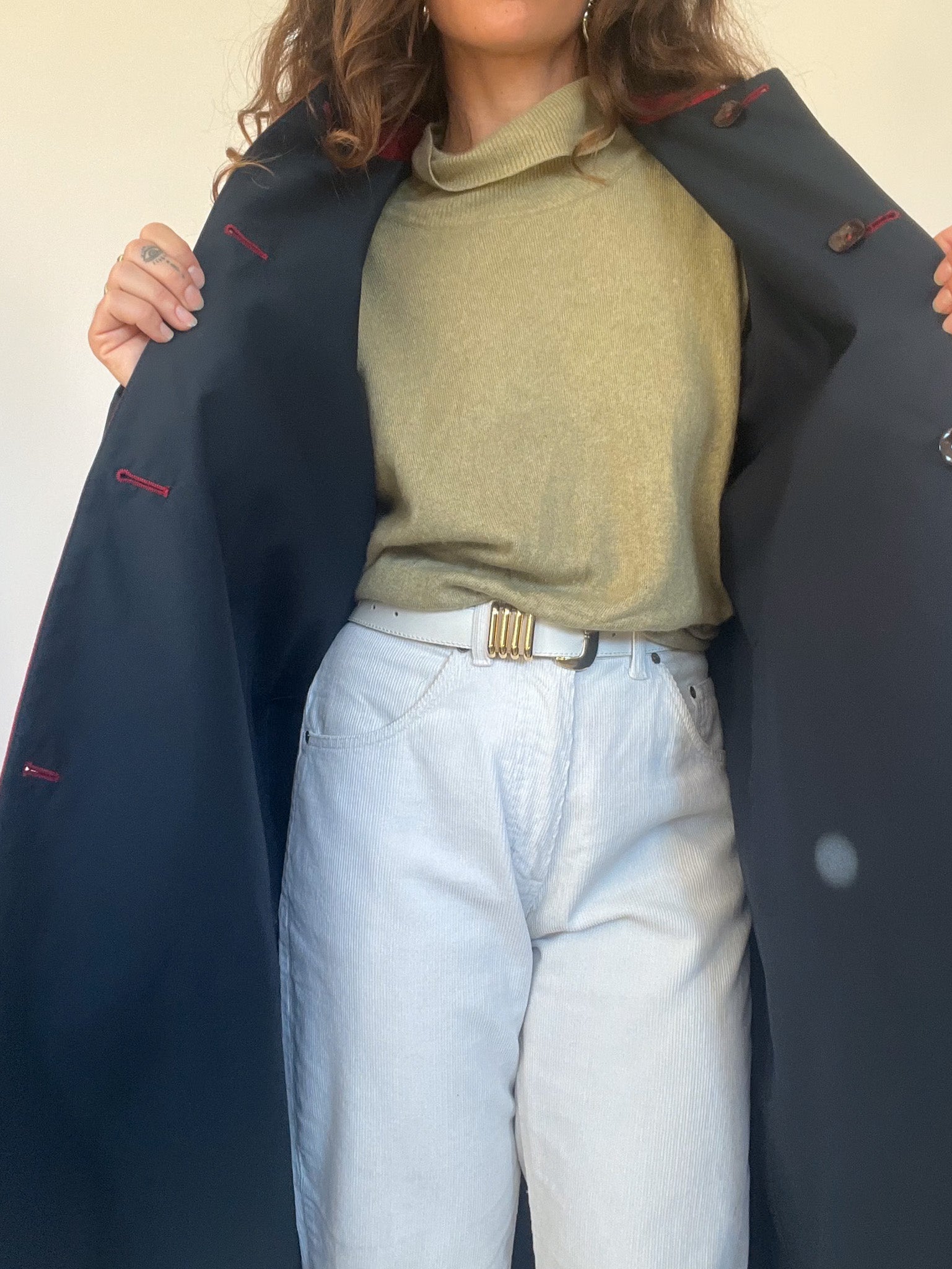 Vintage 80’s Navy & Burgundy Reversible Long Coat