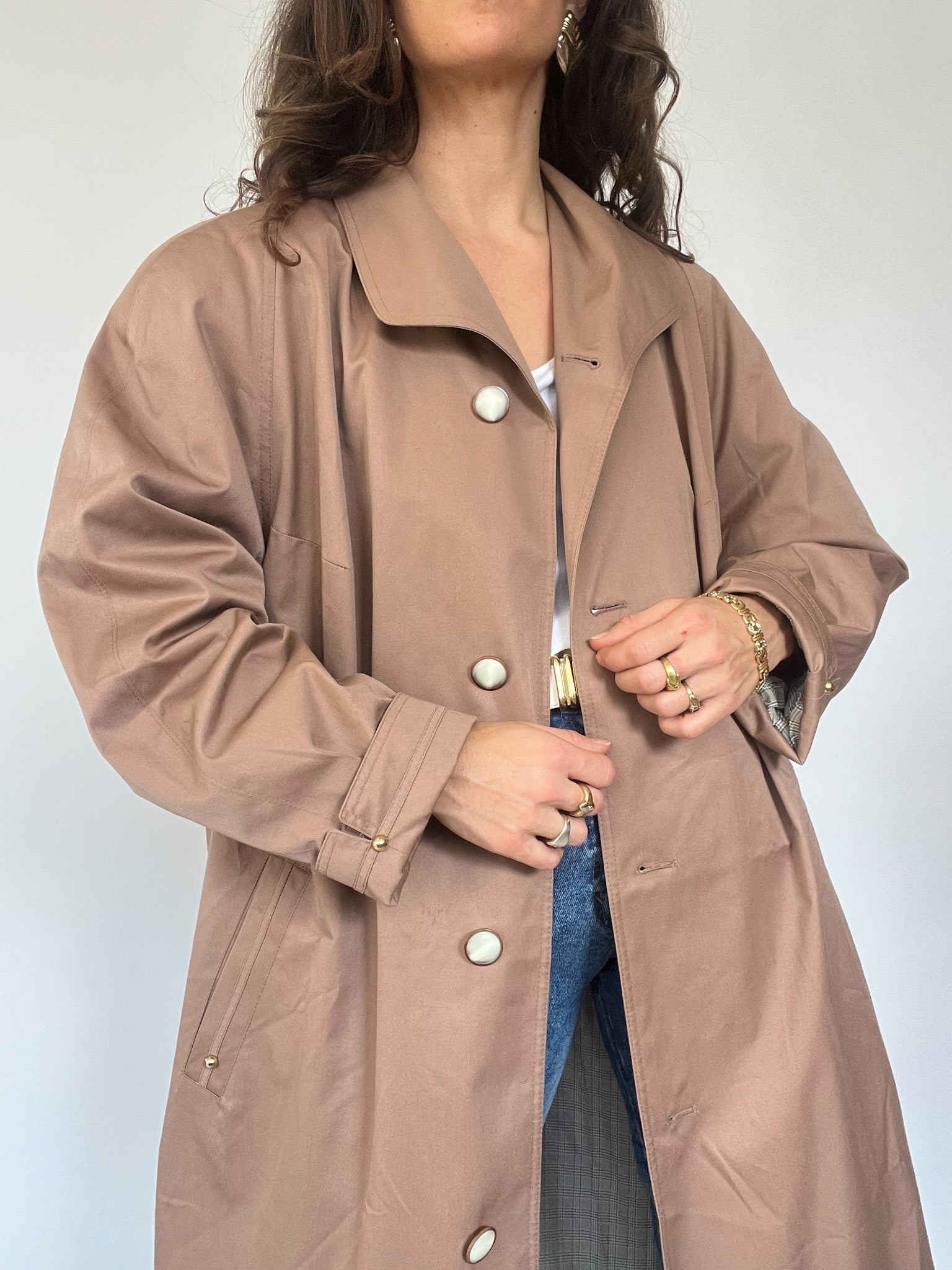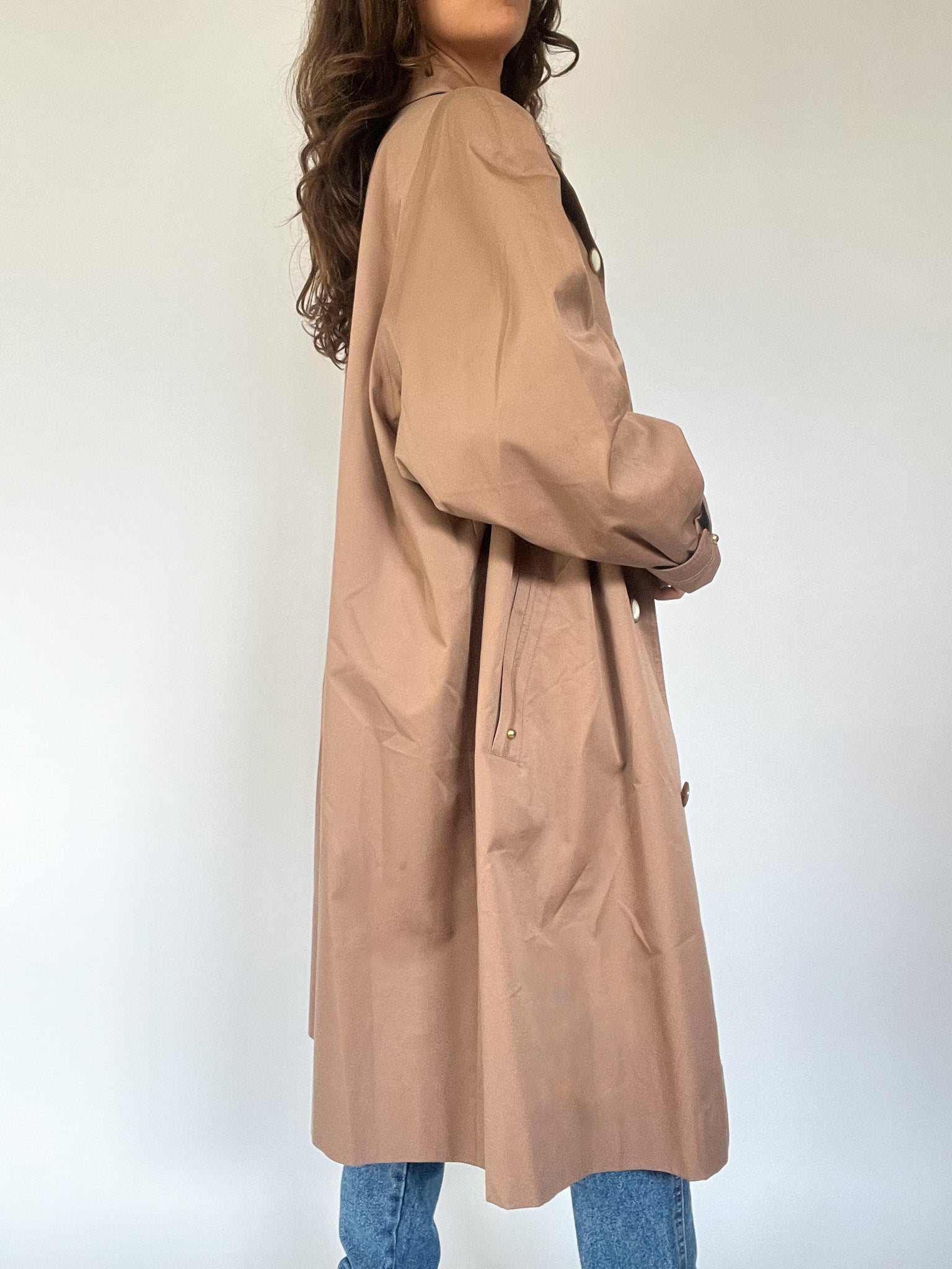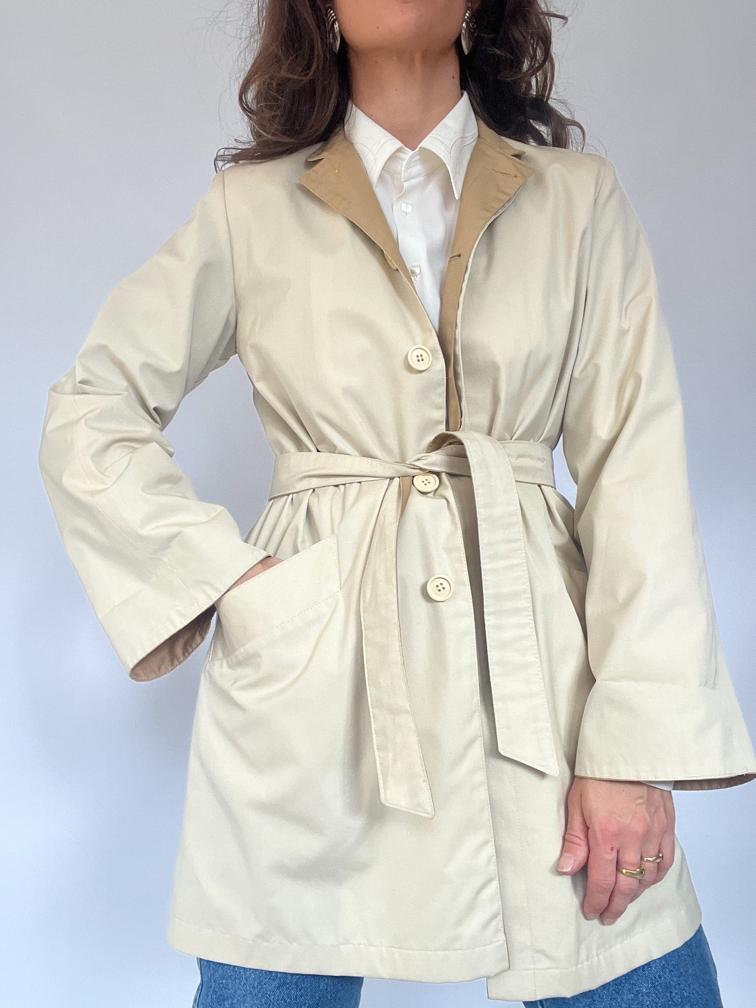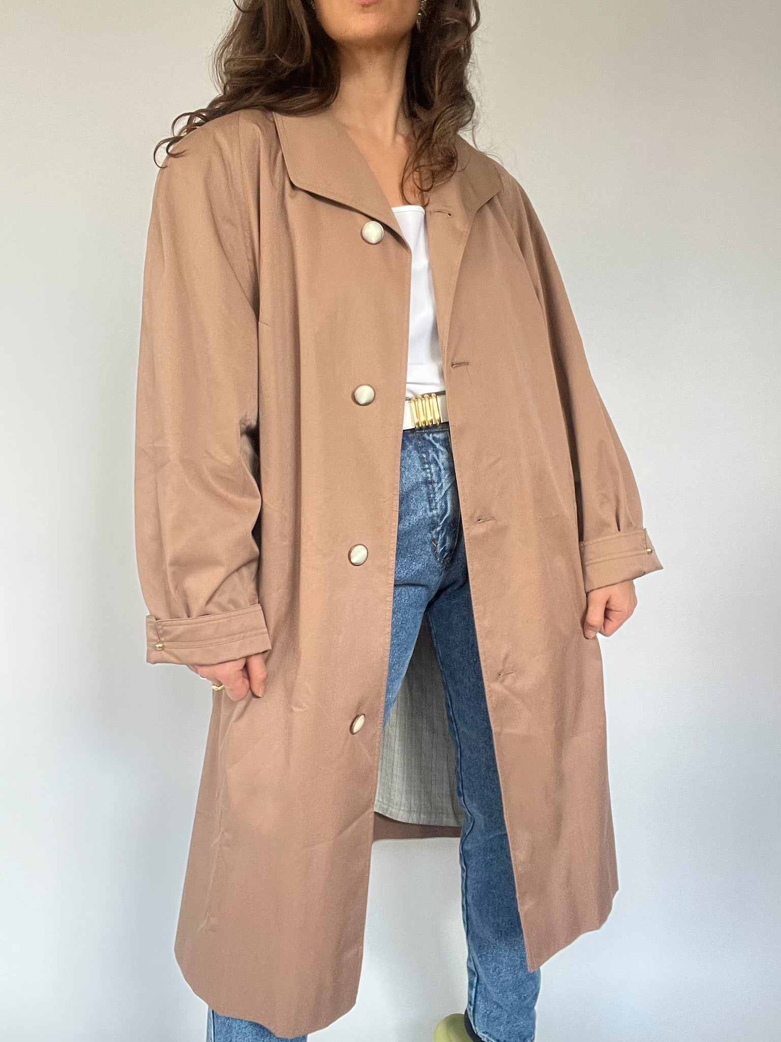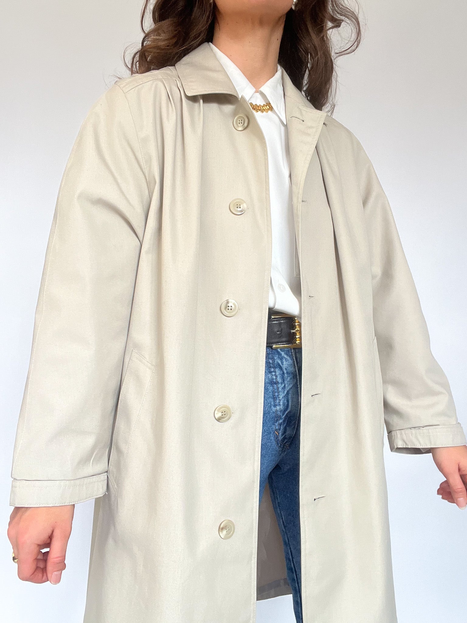 Vintage Taupe Belted Coat with Faux Fur Collar