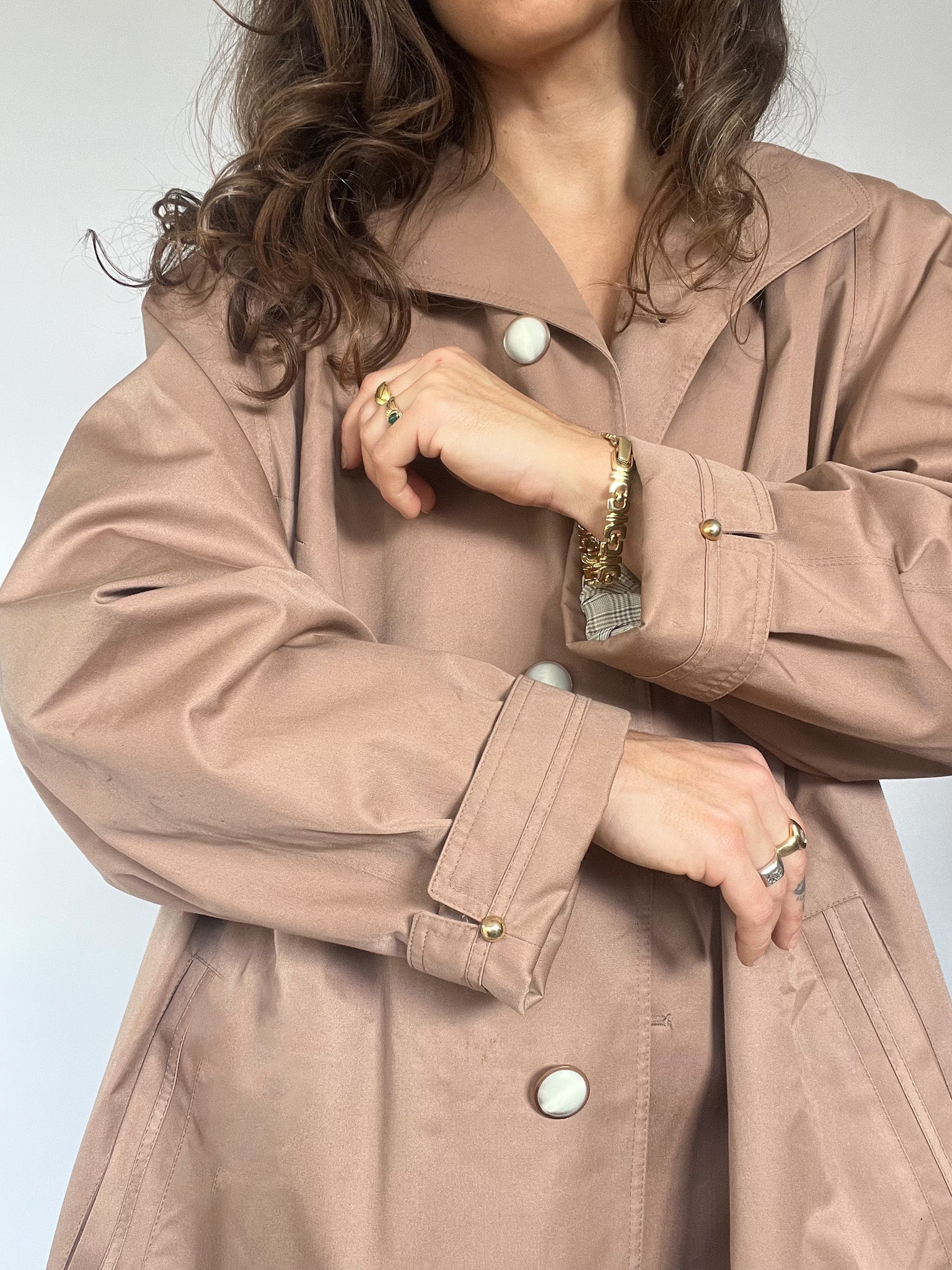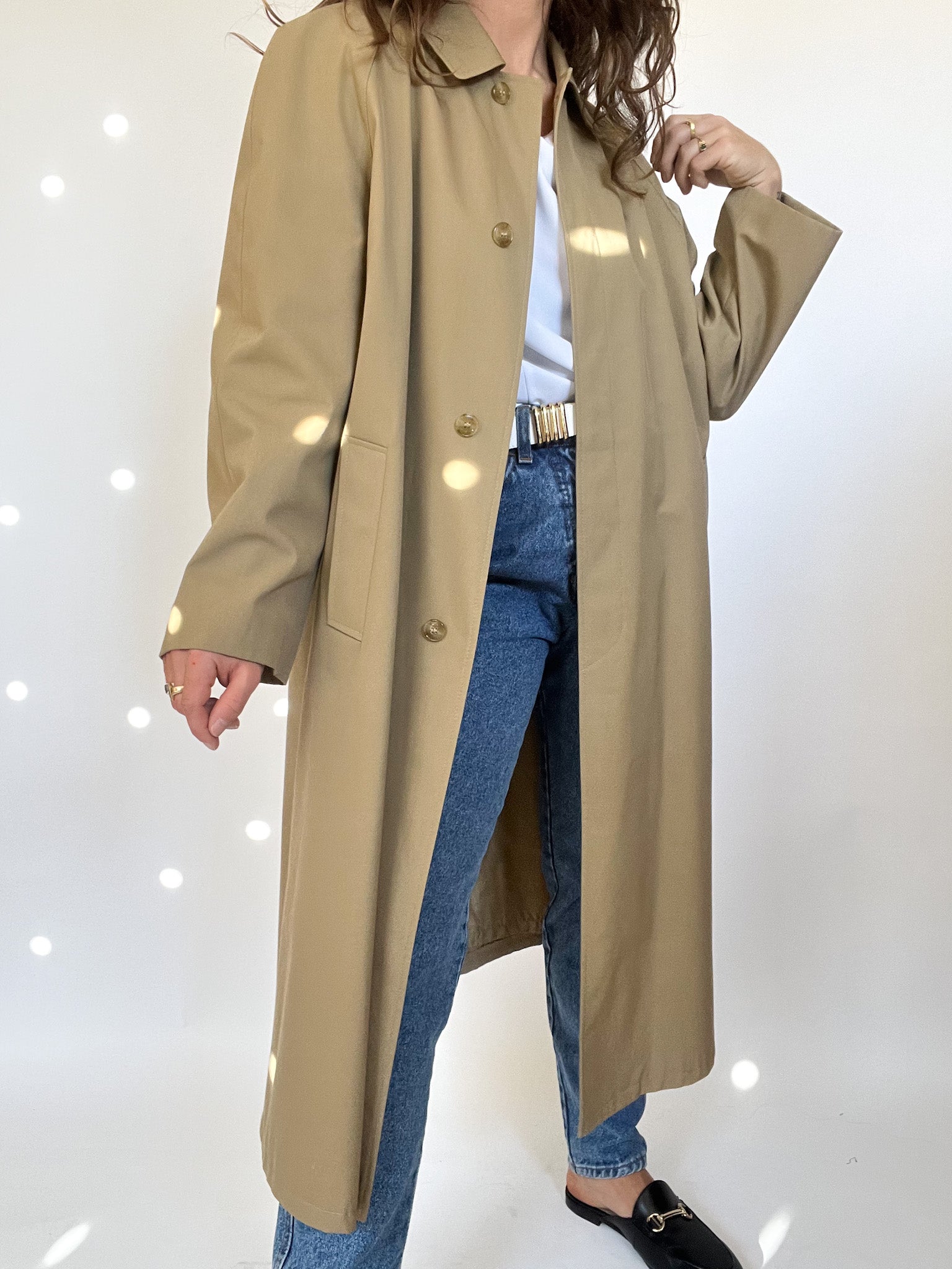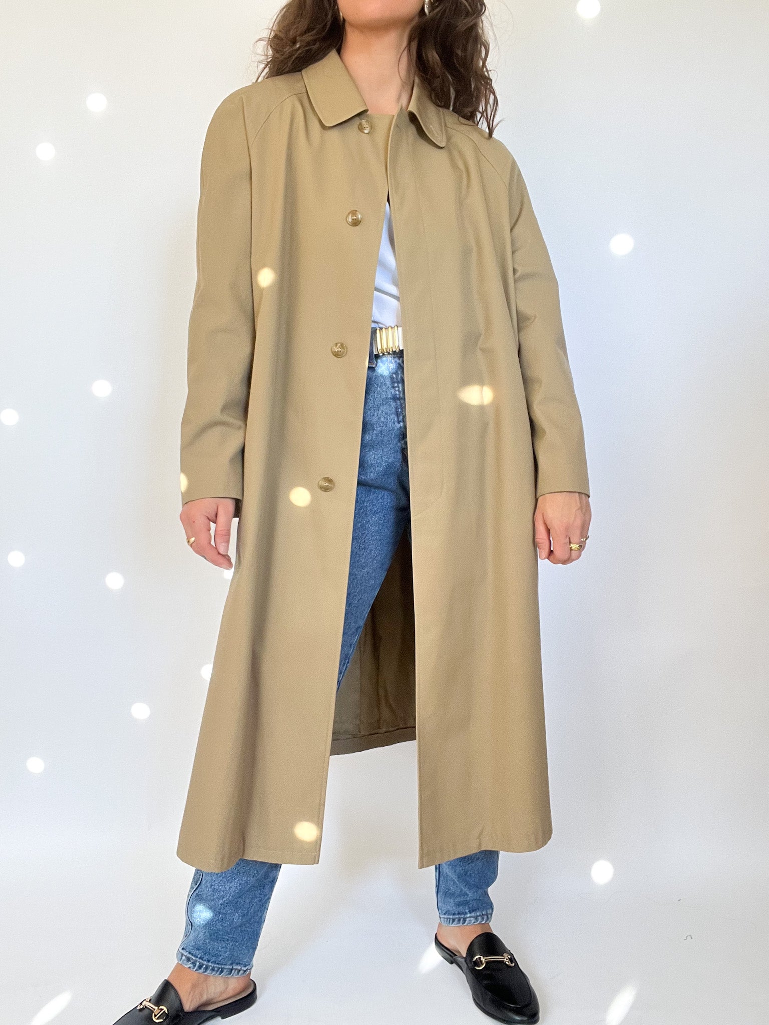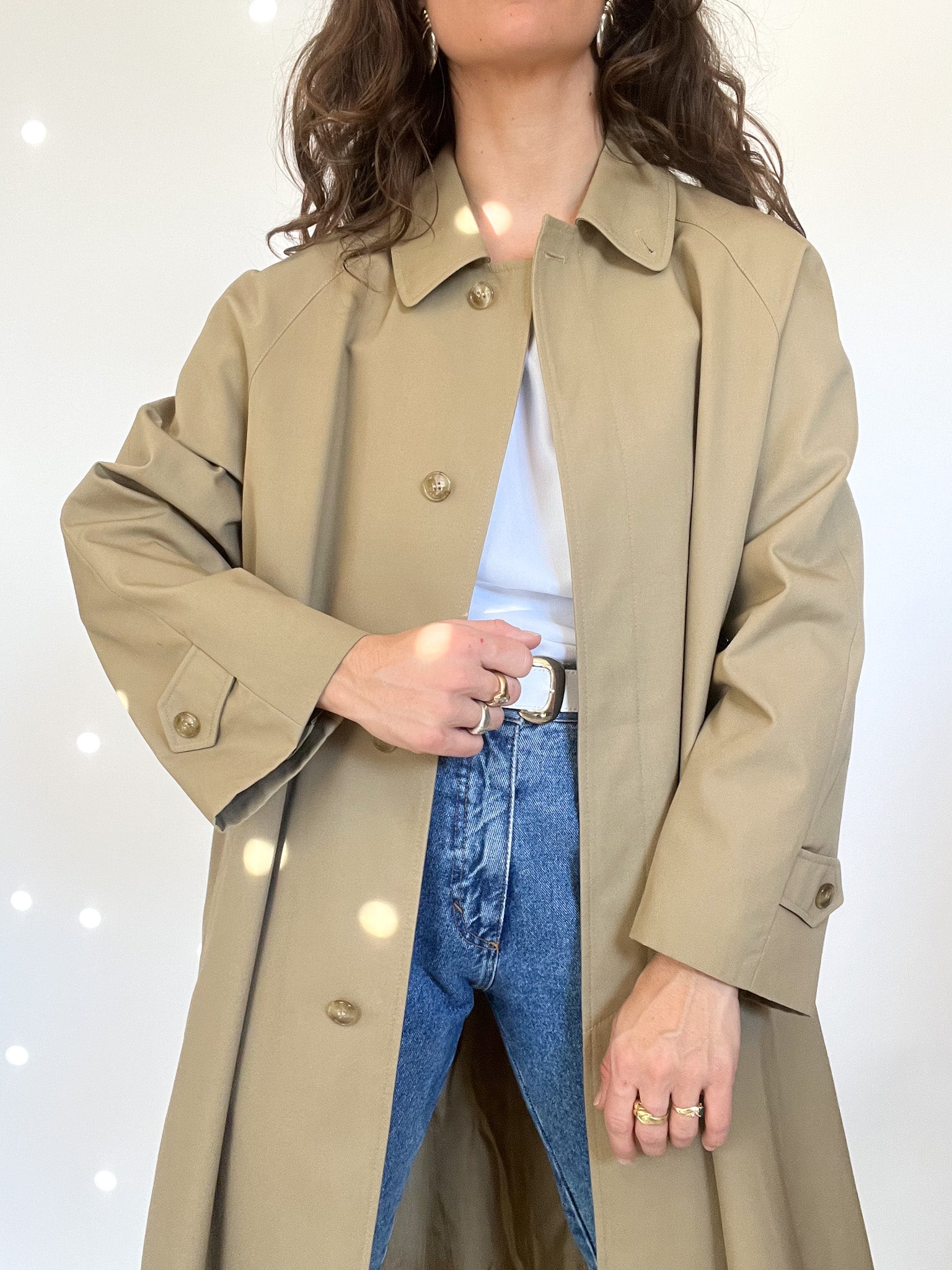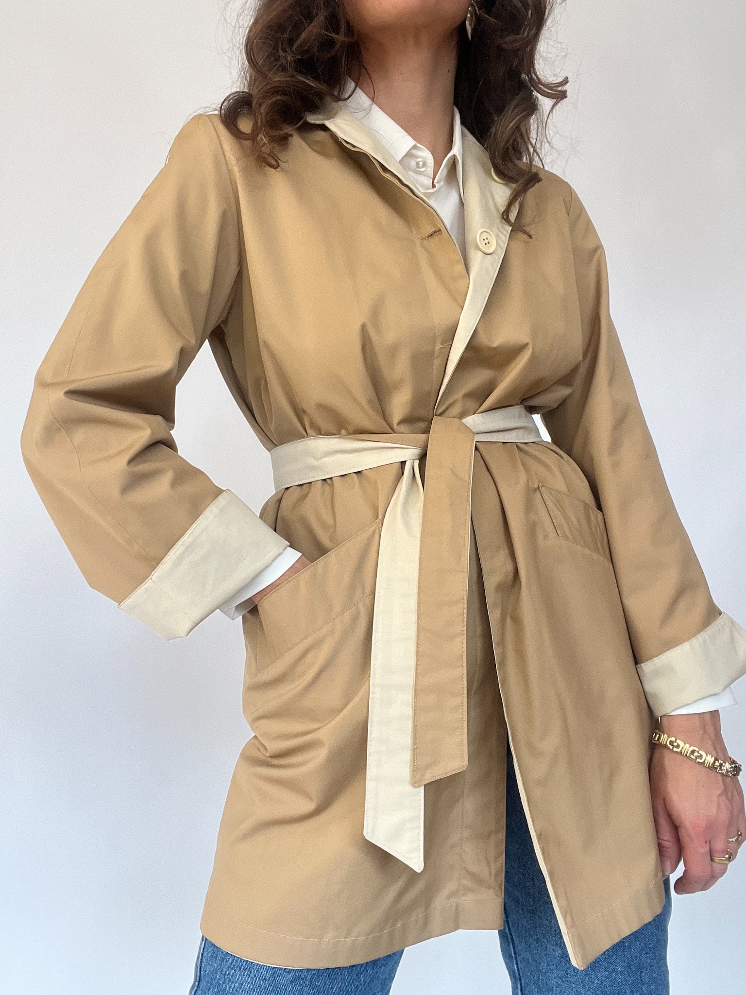 Vintage Taupe Belted Coat with Faux Fur Collar