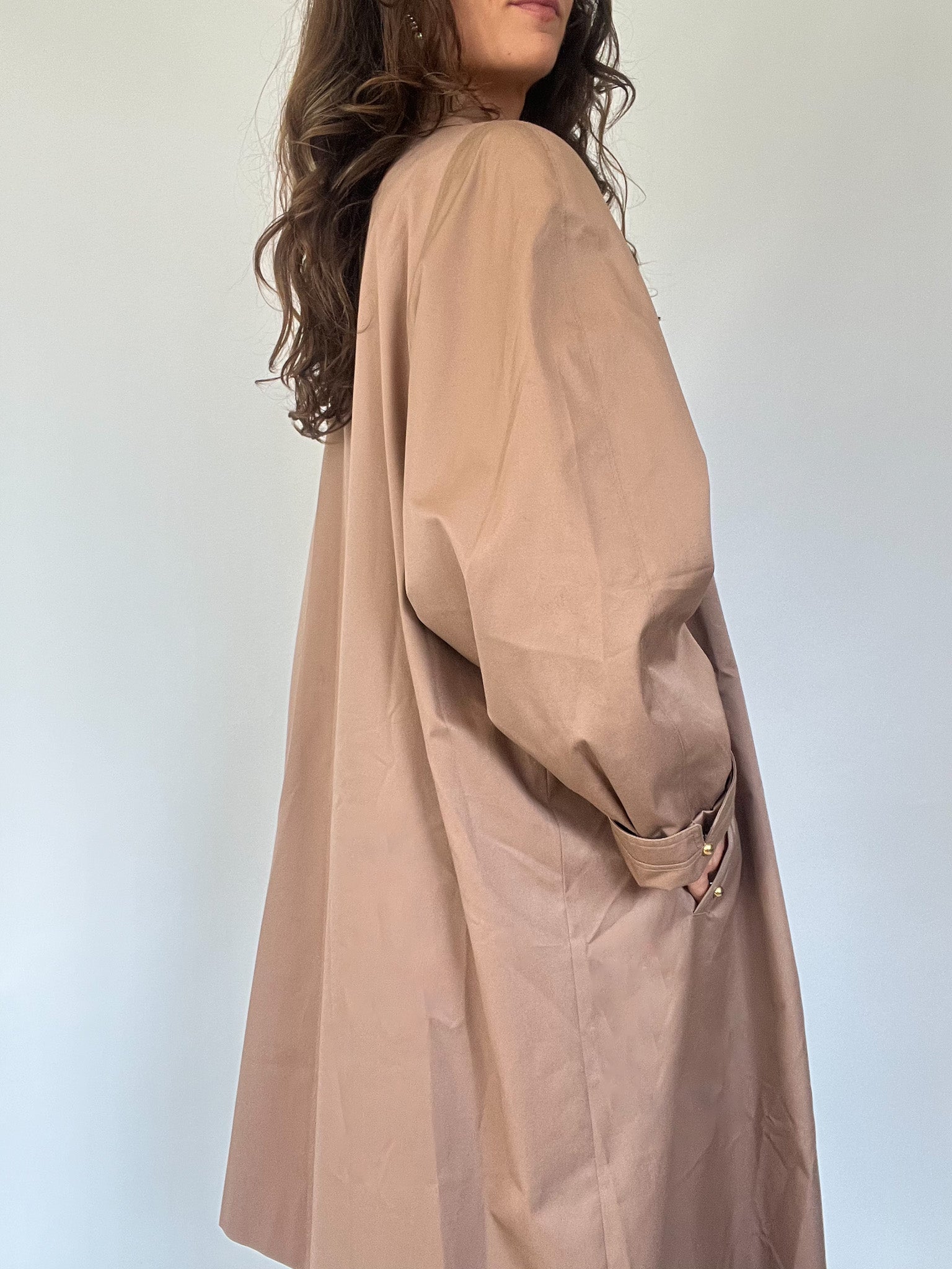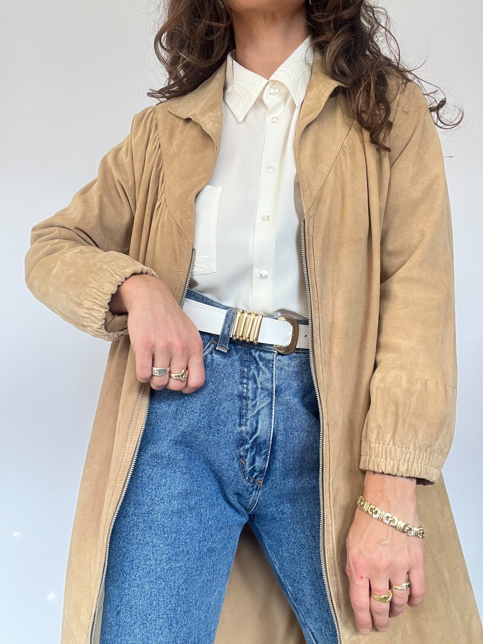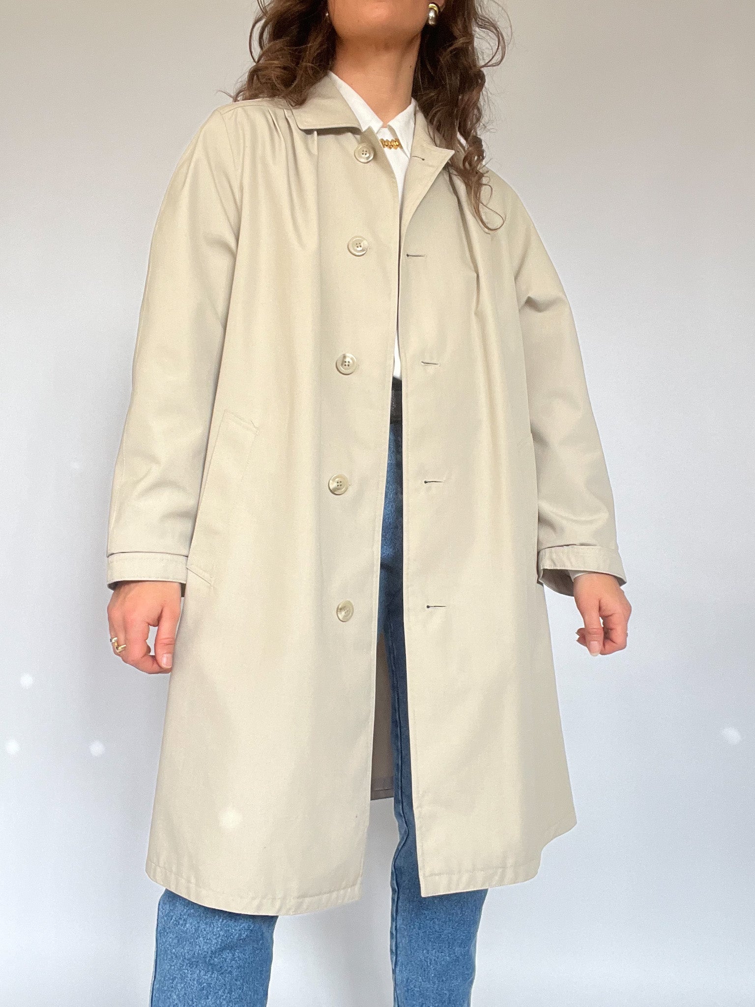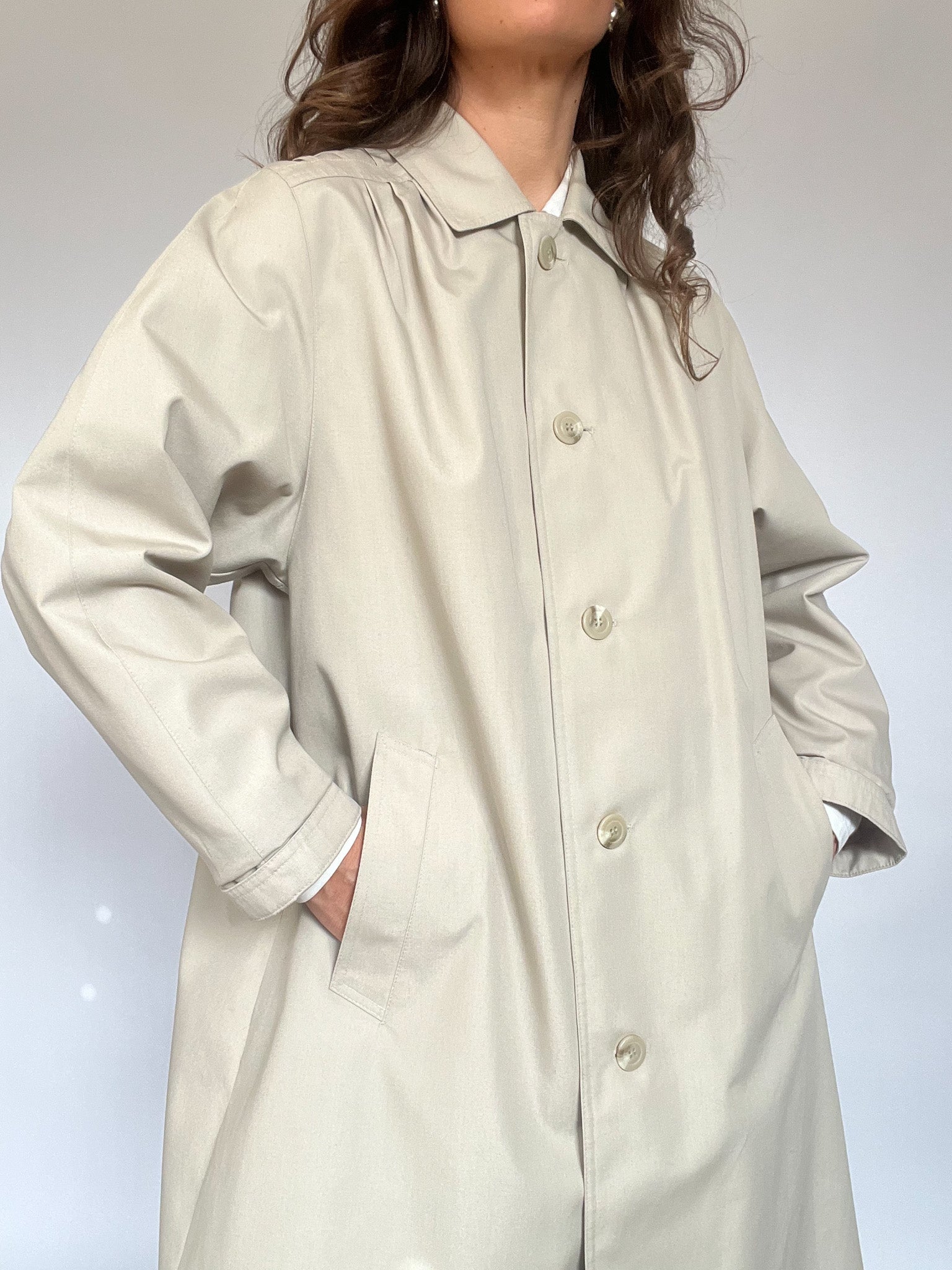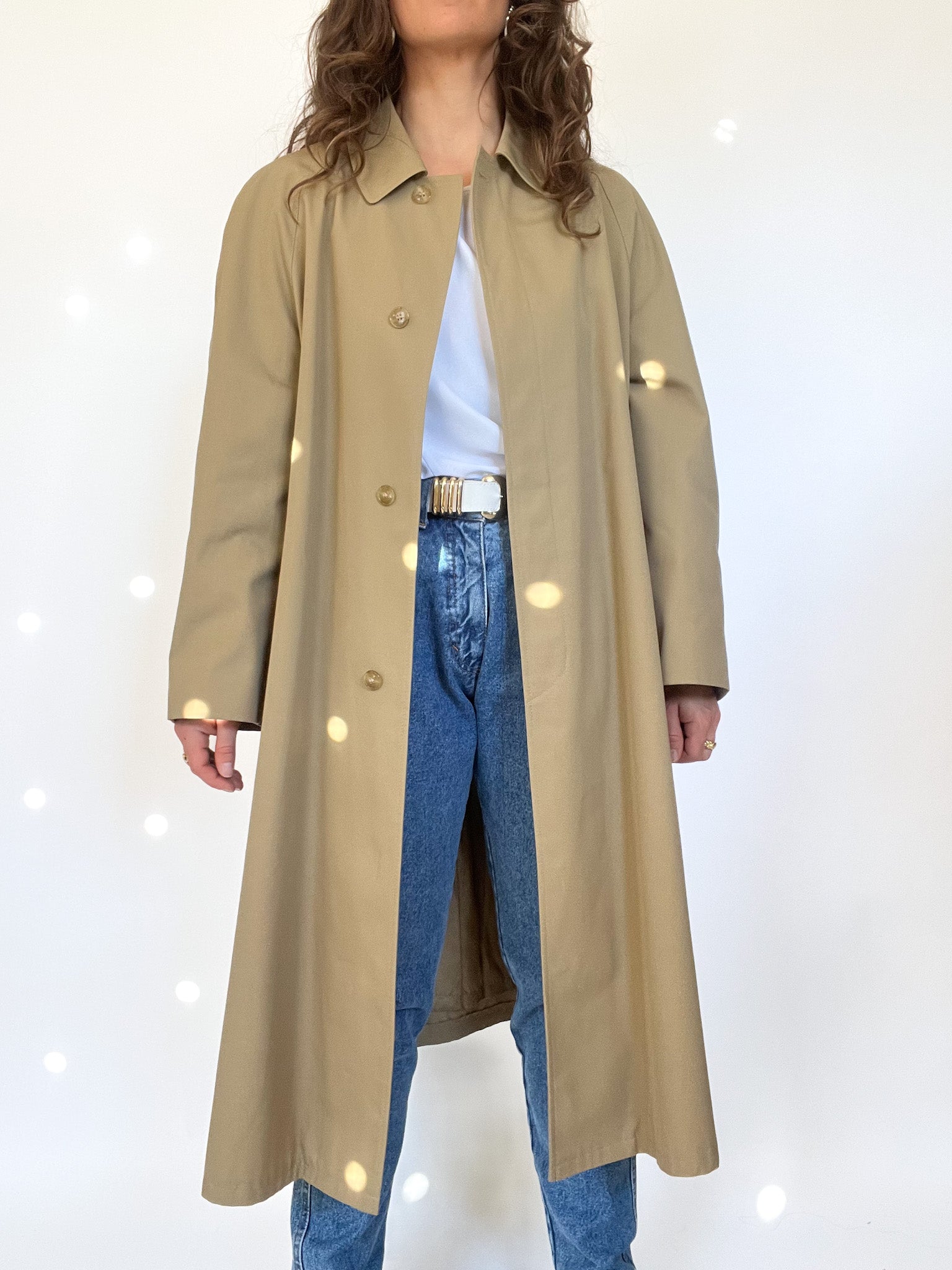Vintage Taupe Belted Coat with Faux Fur Collar