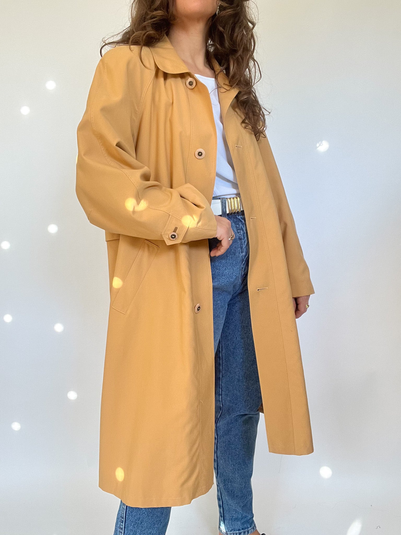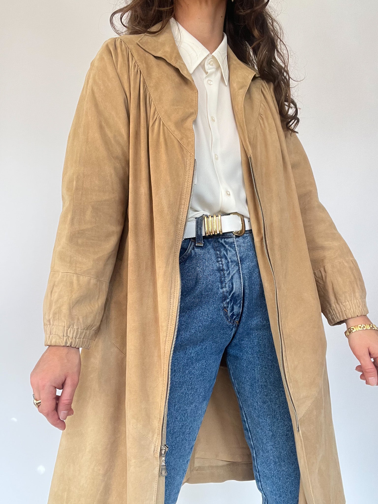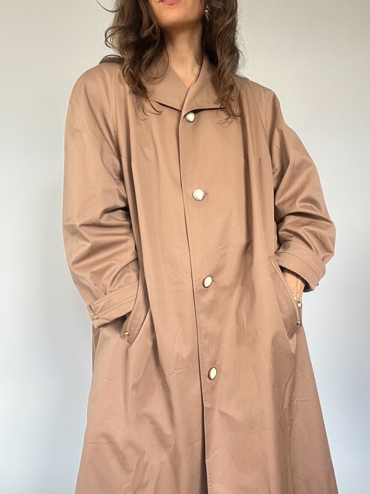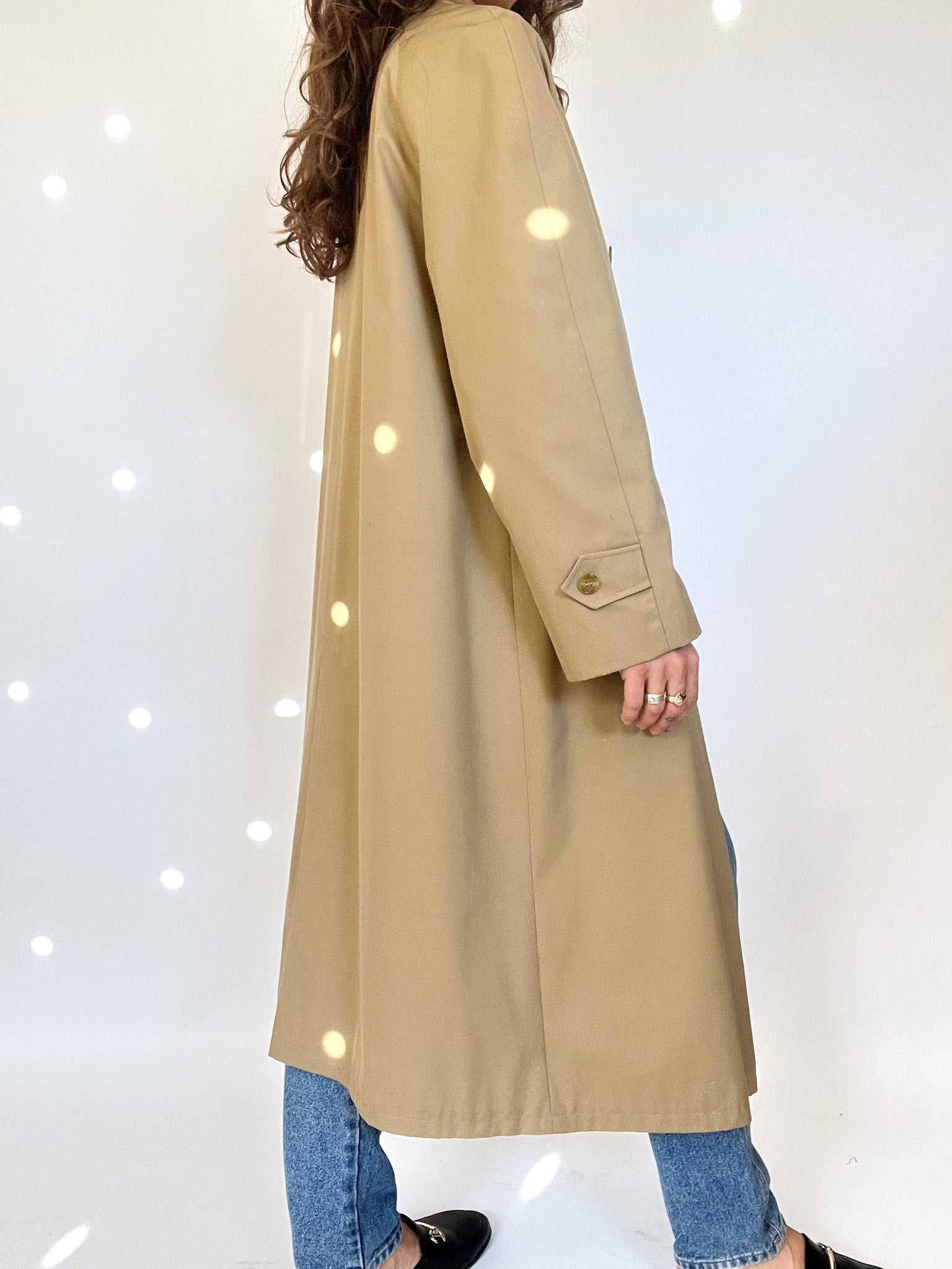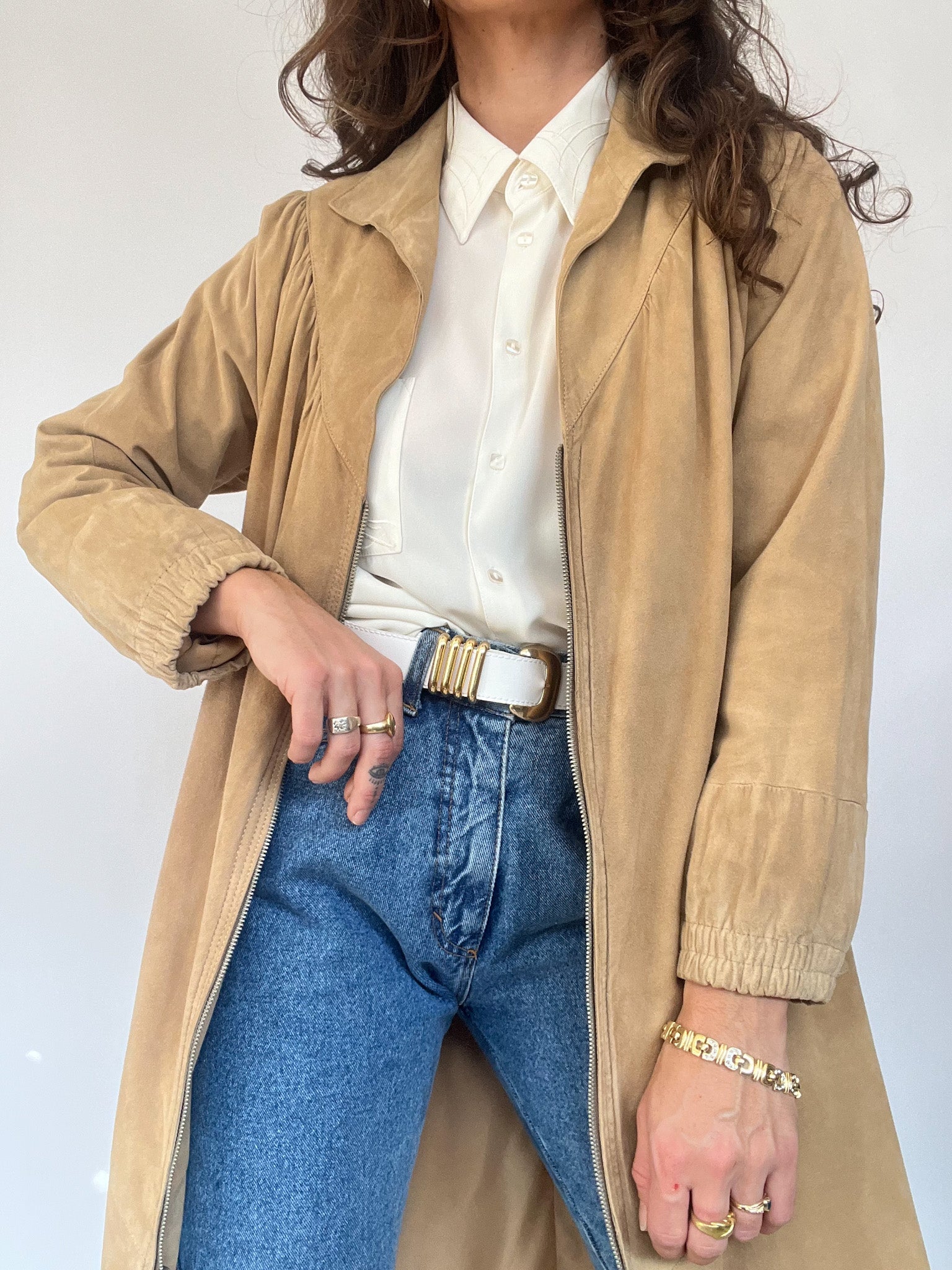 Vintage Taupe Belted Coat with Faux Fur Collar