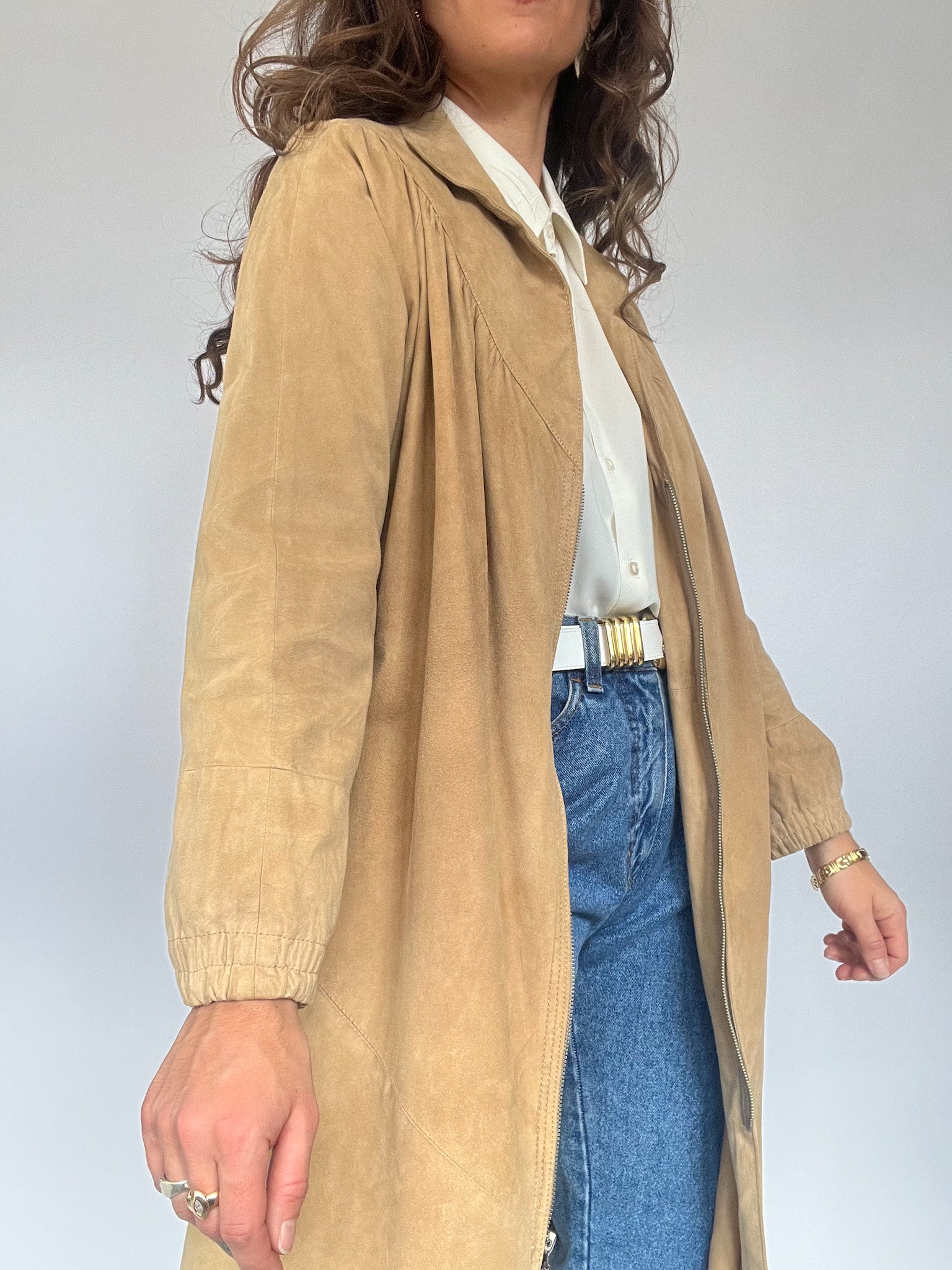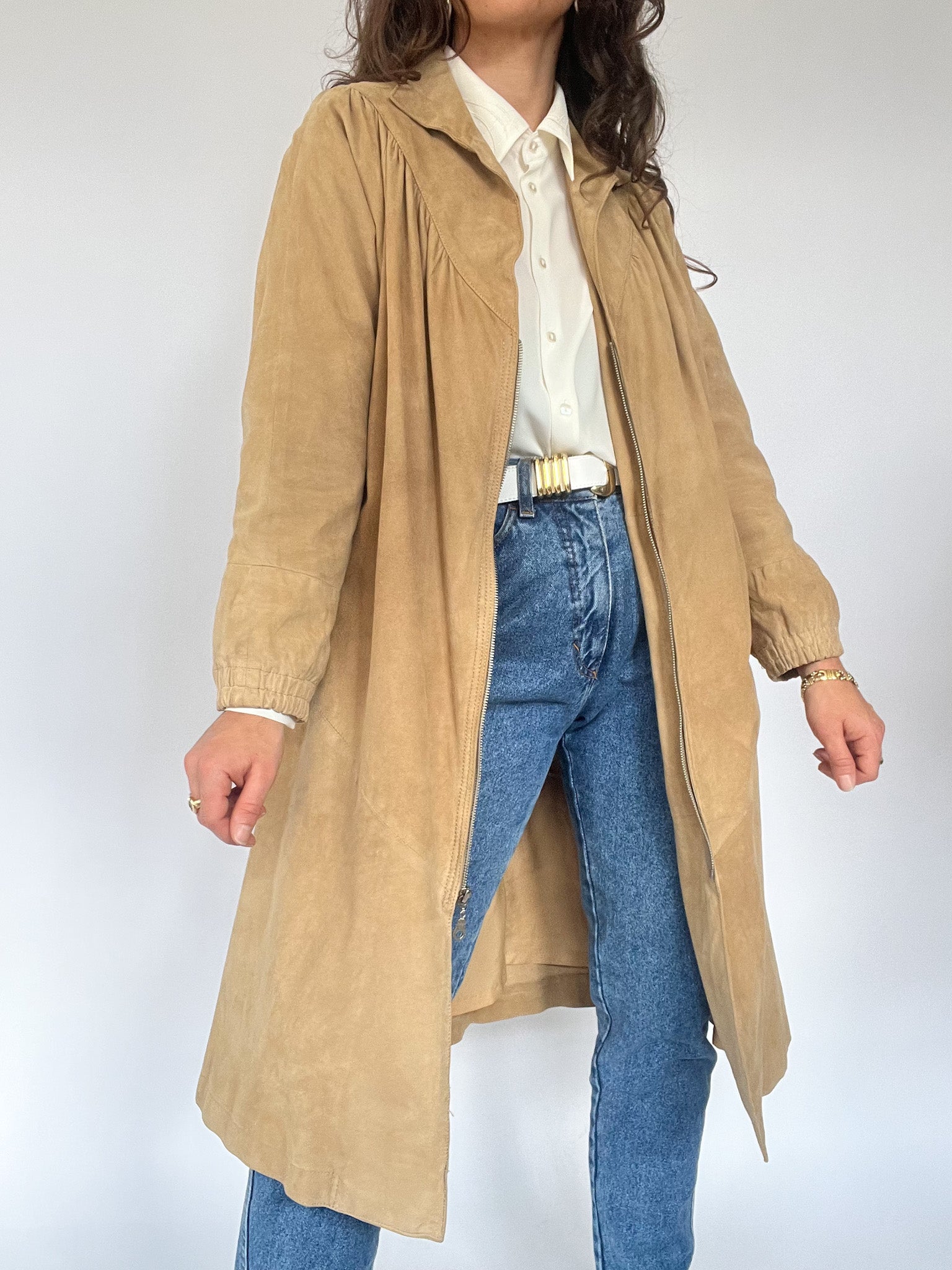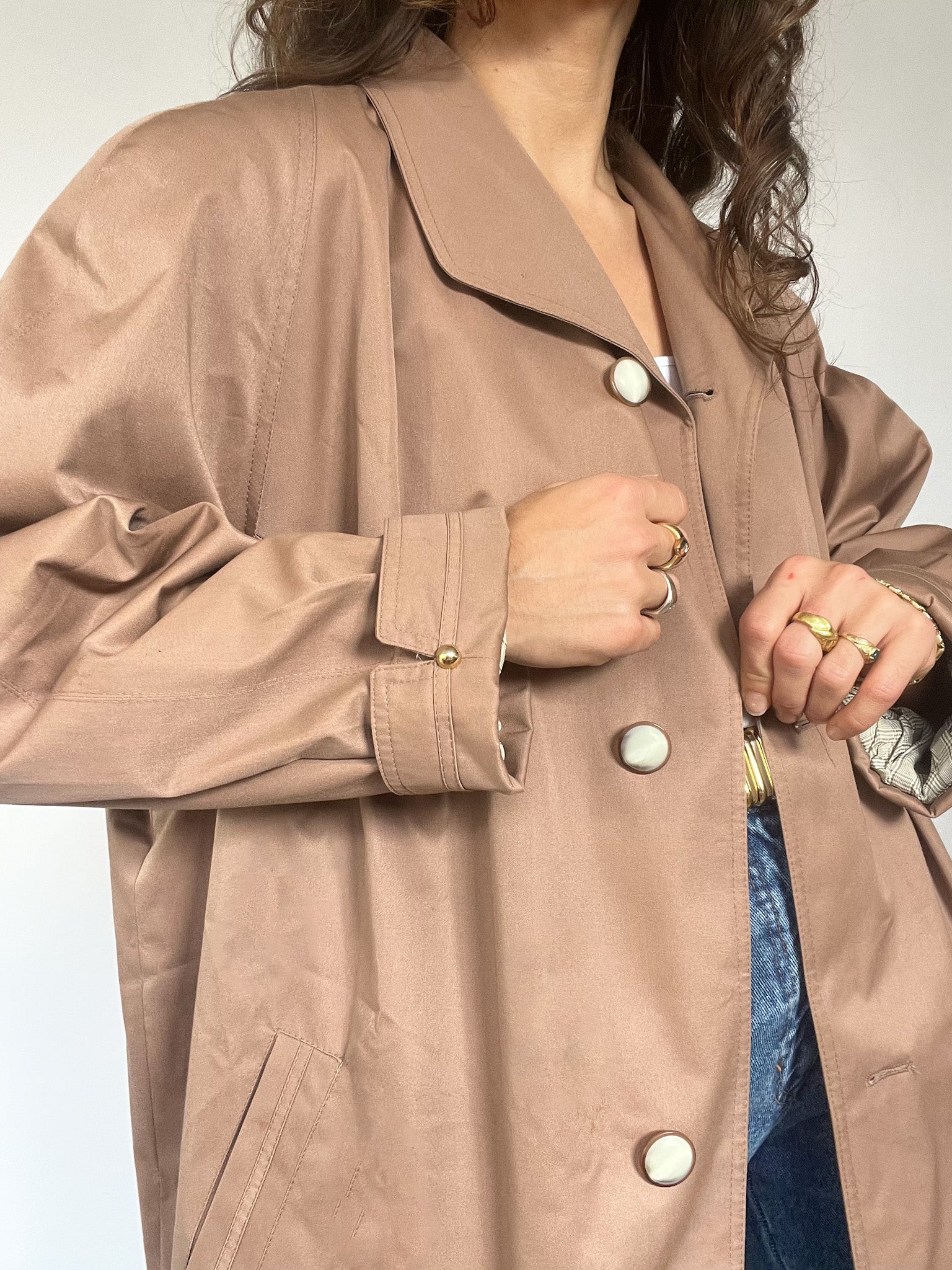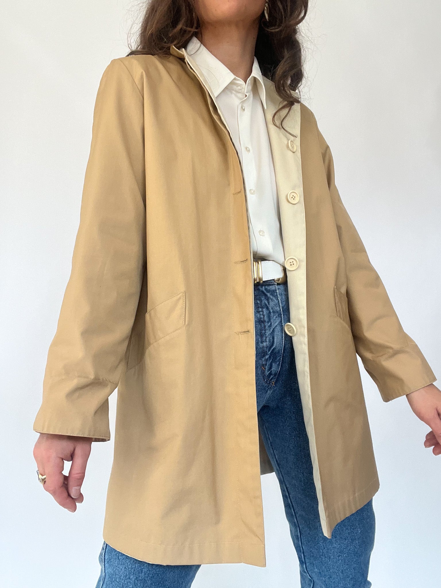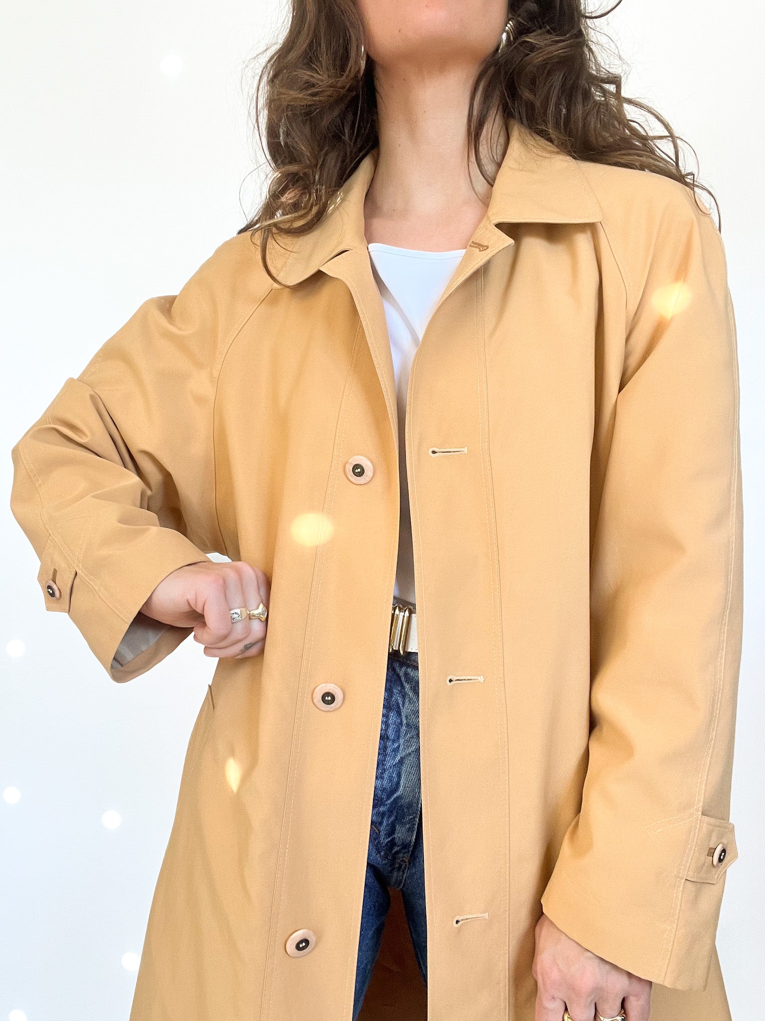 Vintage Taupe Belted Coat with Faux Fur Collar