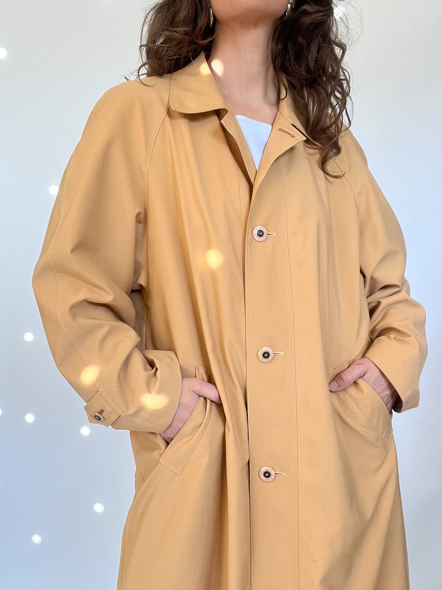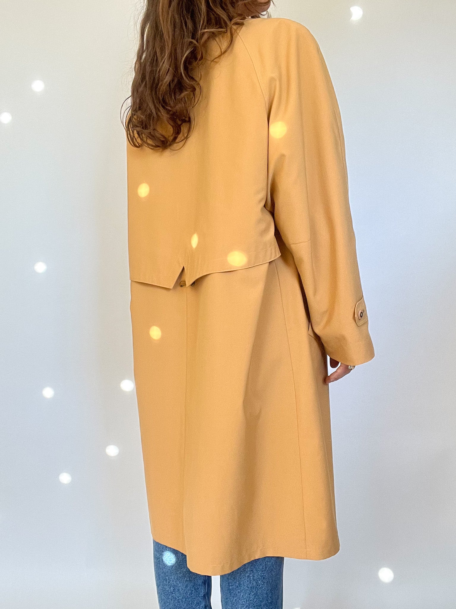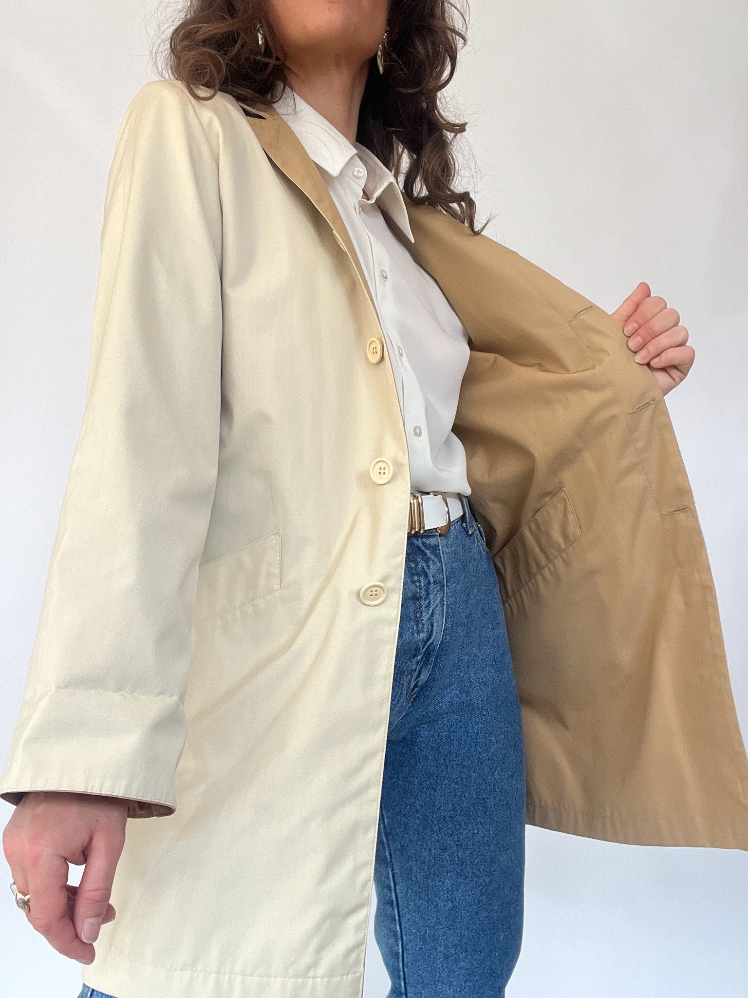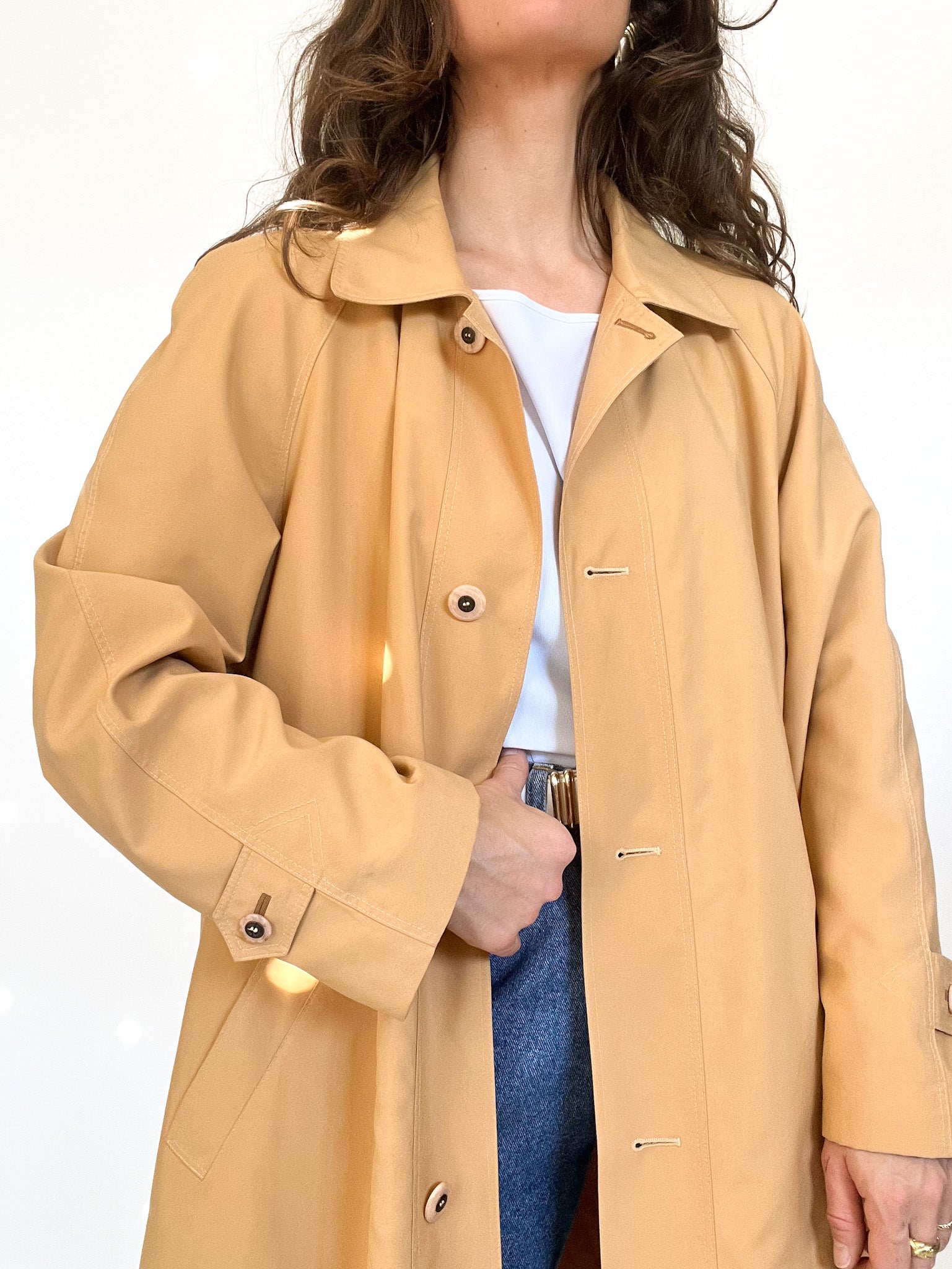 Vintage Taupe Belted Coat with Faux Fur Collar