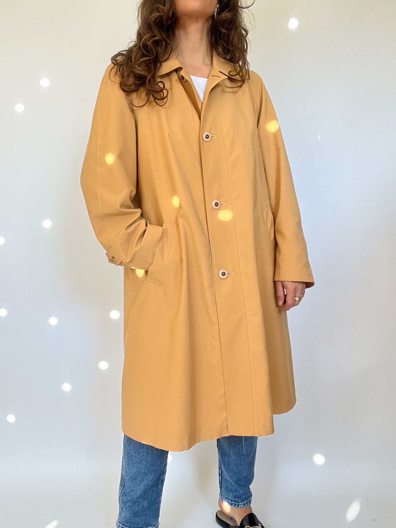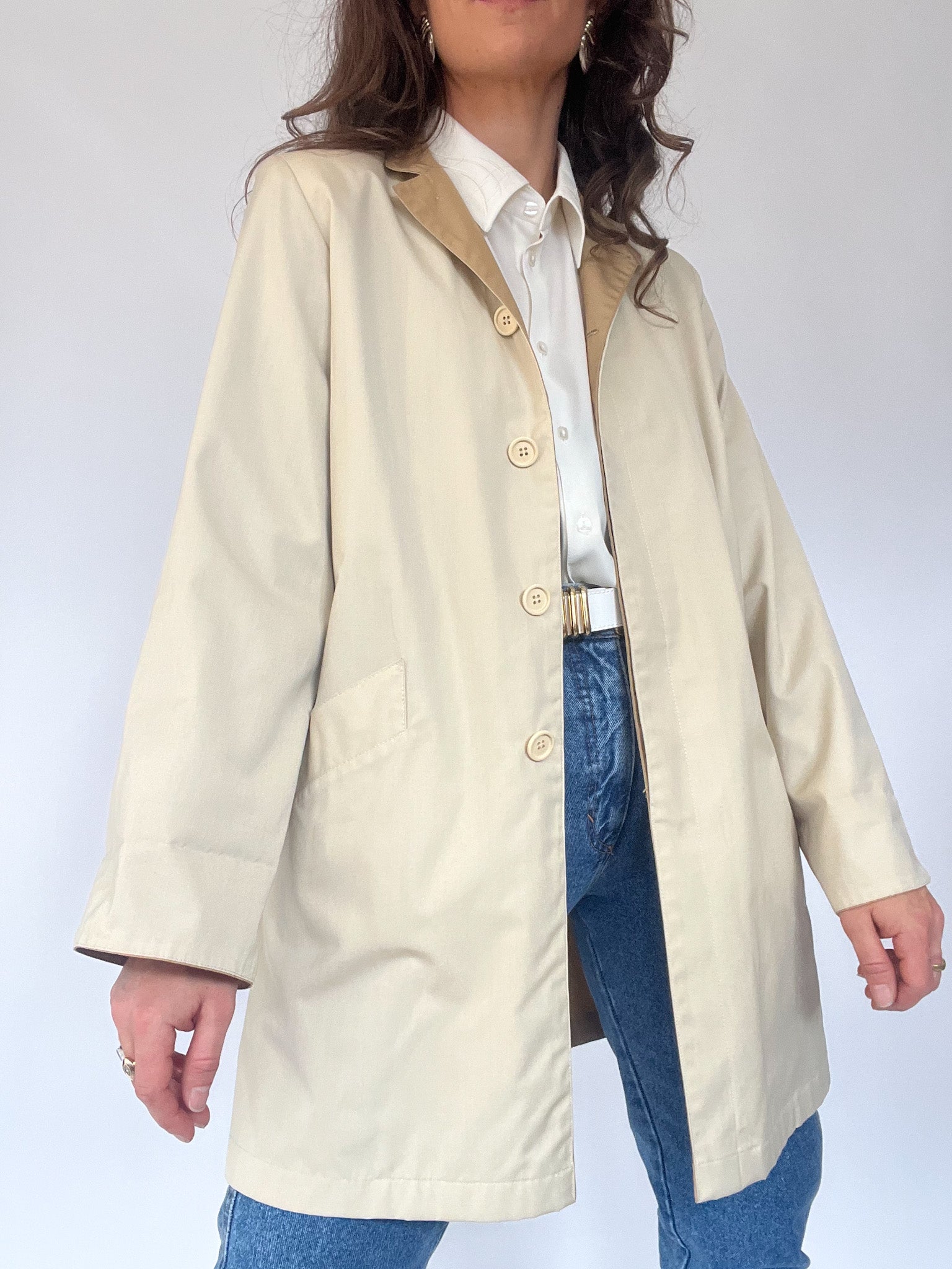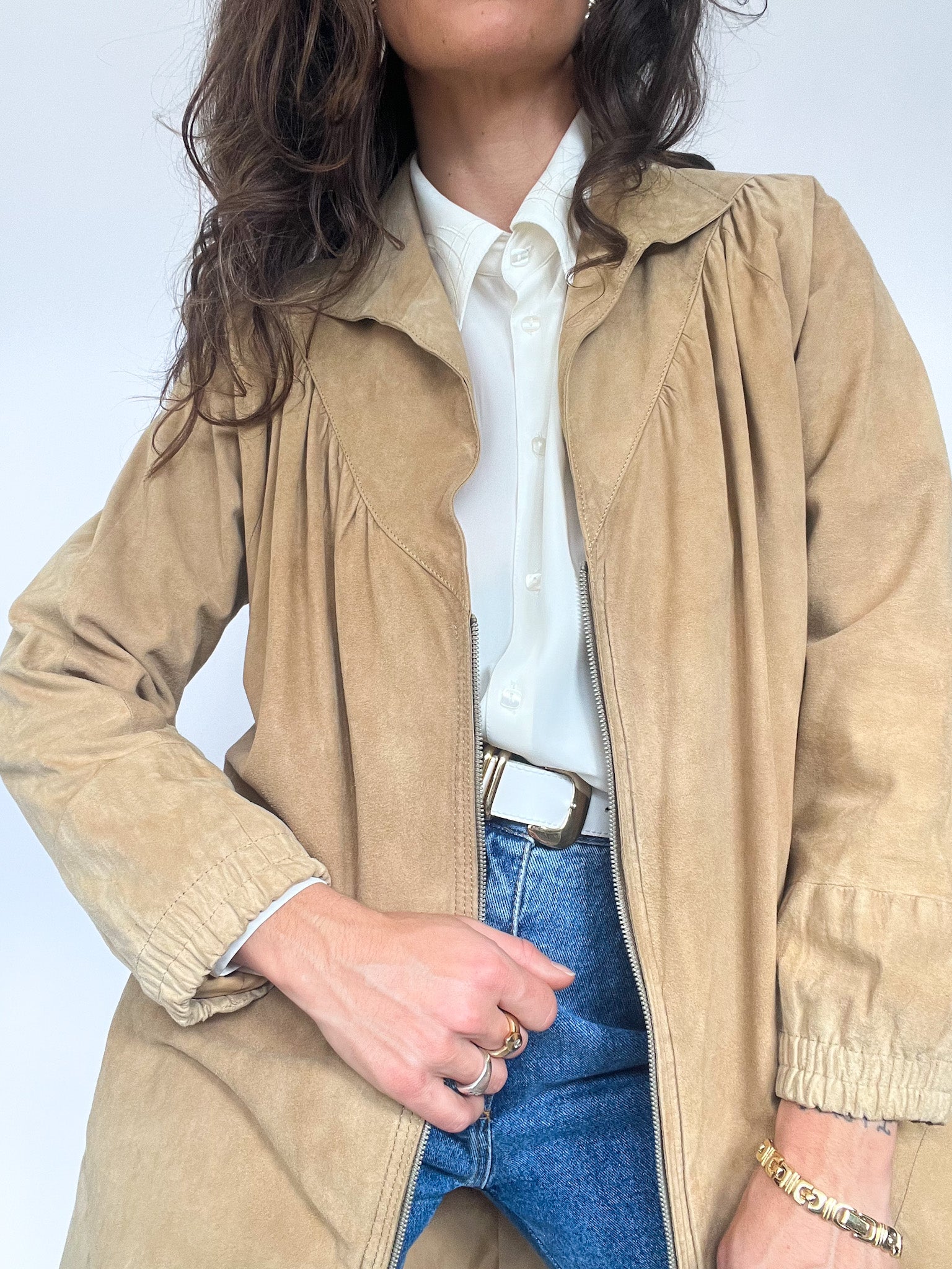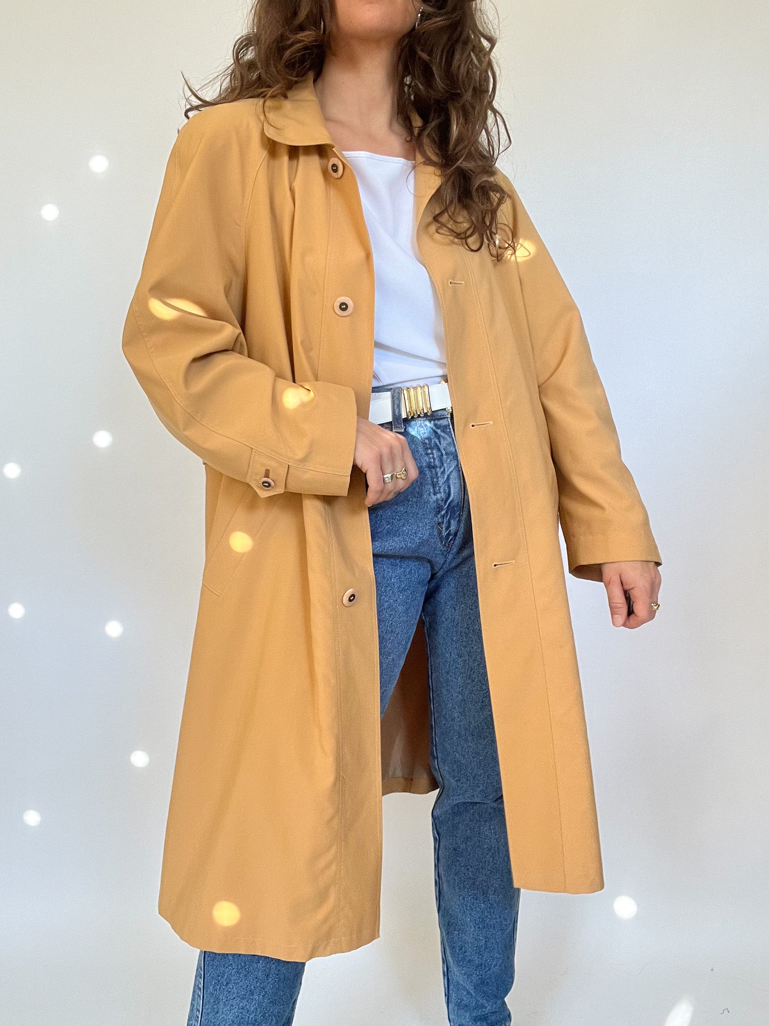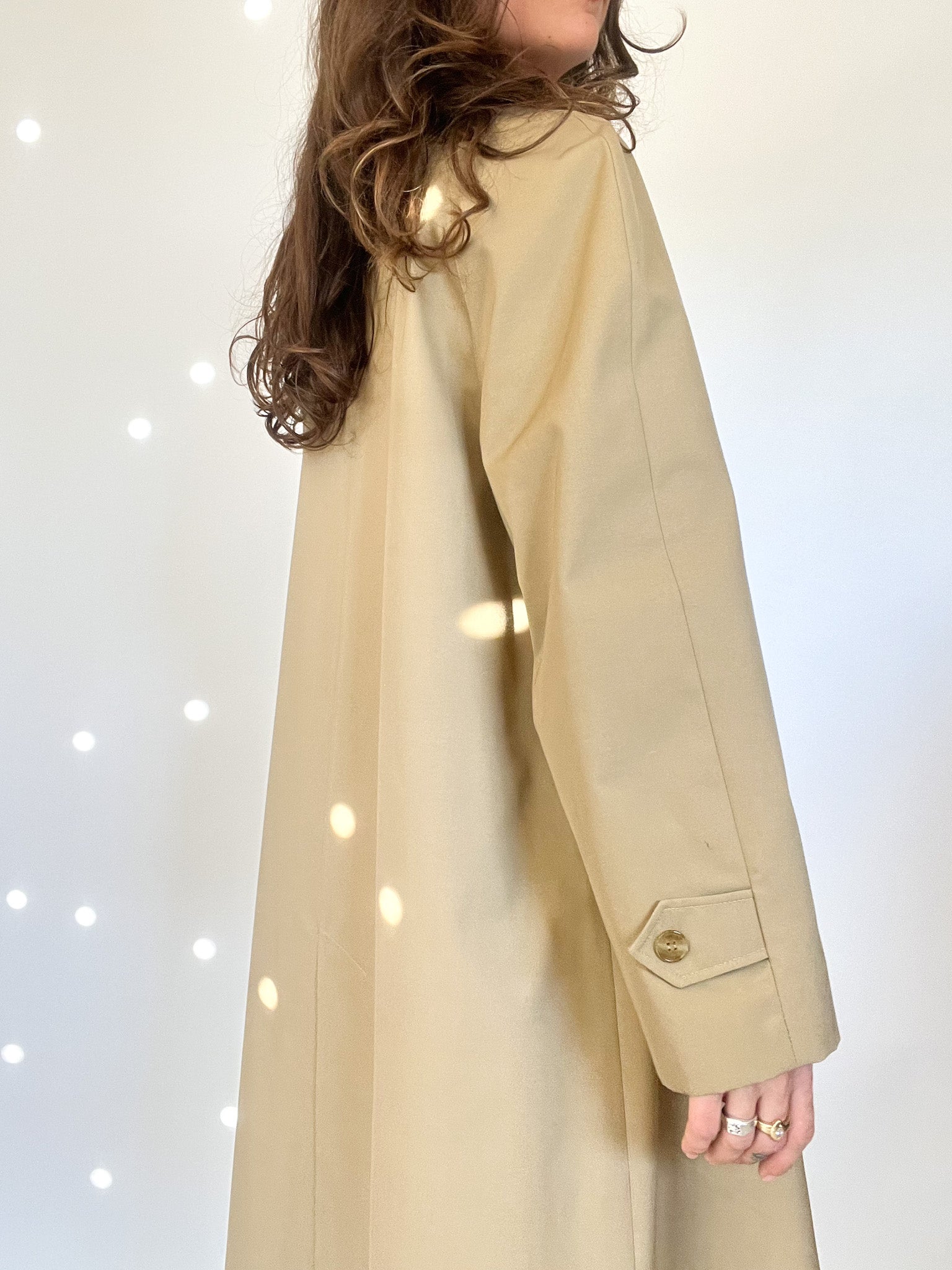 Vintage Taupe Belted Coat with Faux Fur Collar