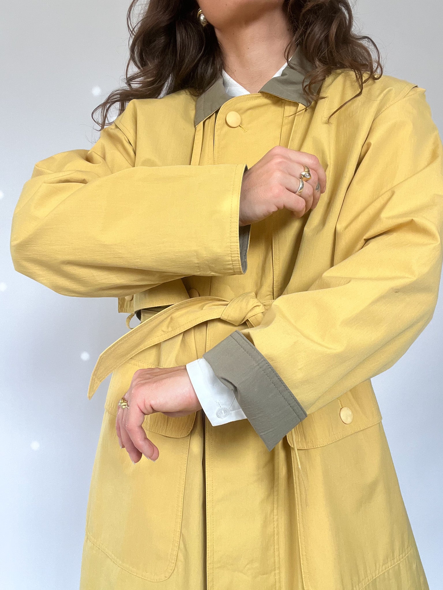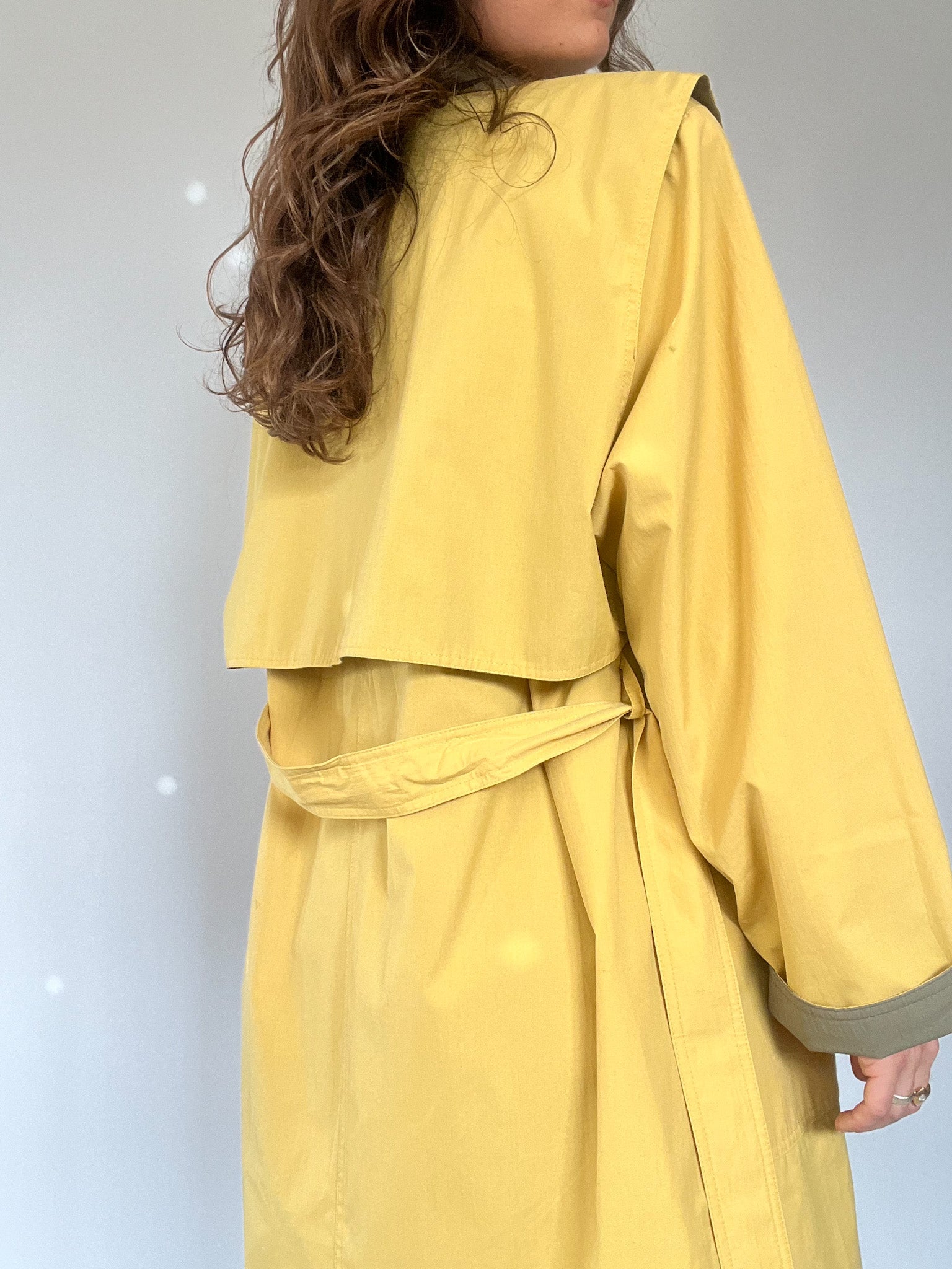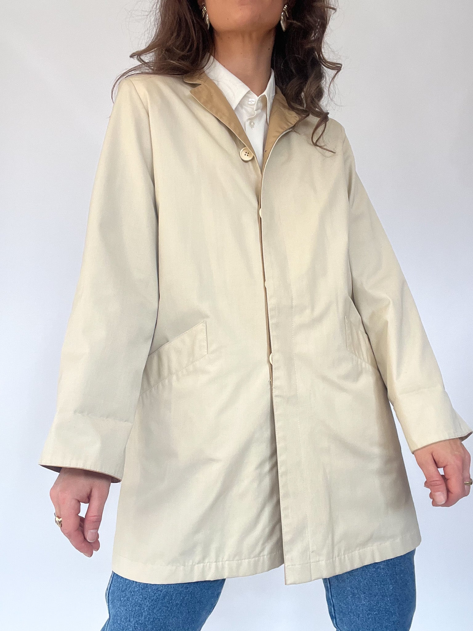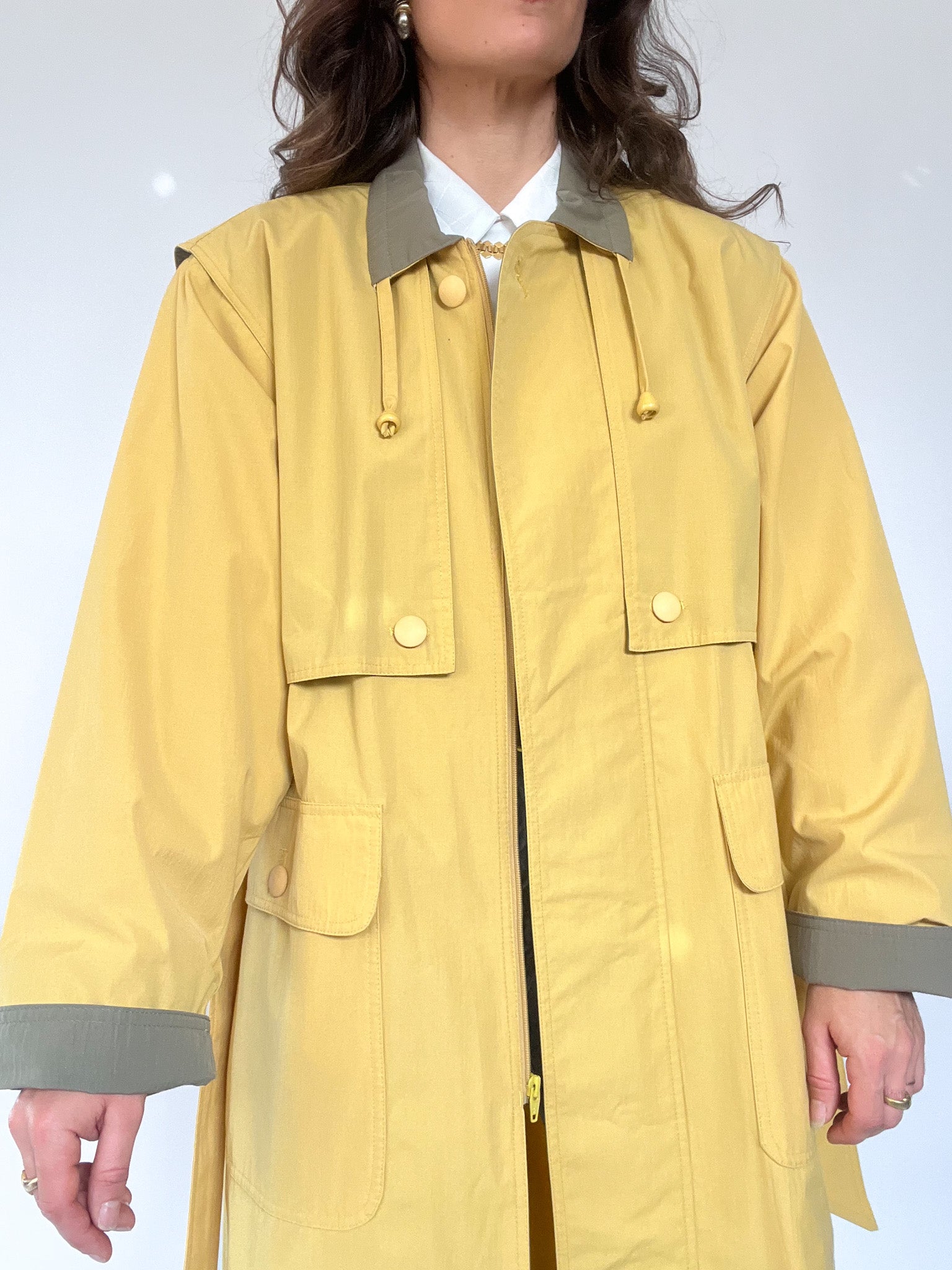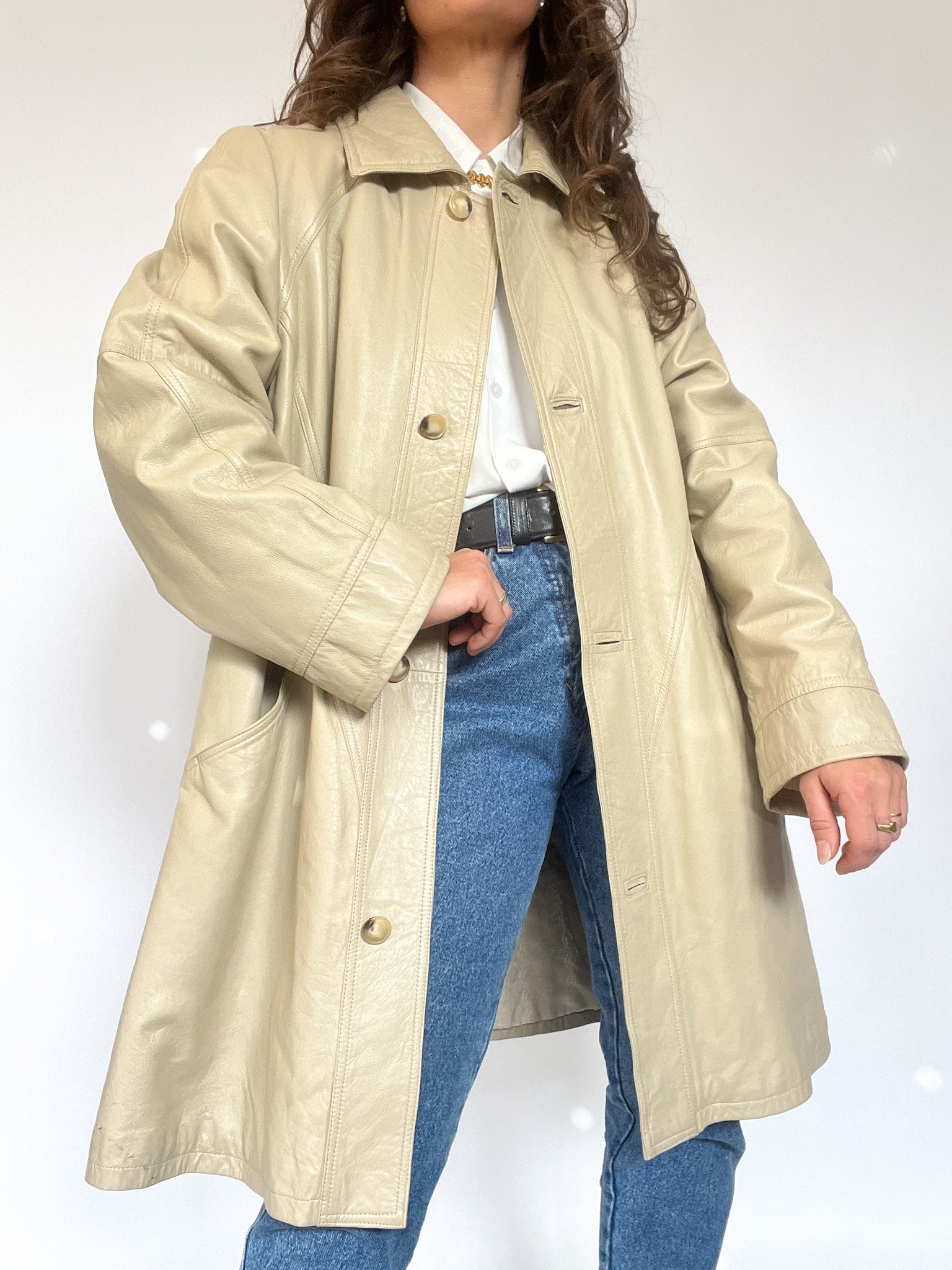 Vintage Taupe Belted Coat with Faux Fur Collar