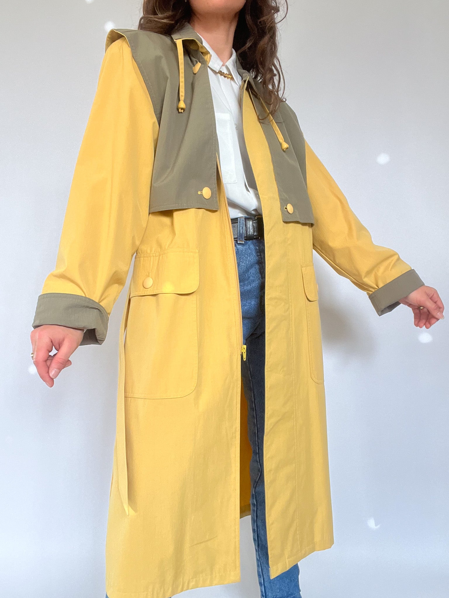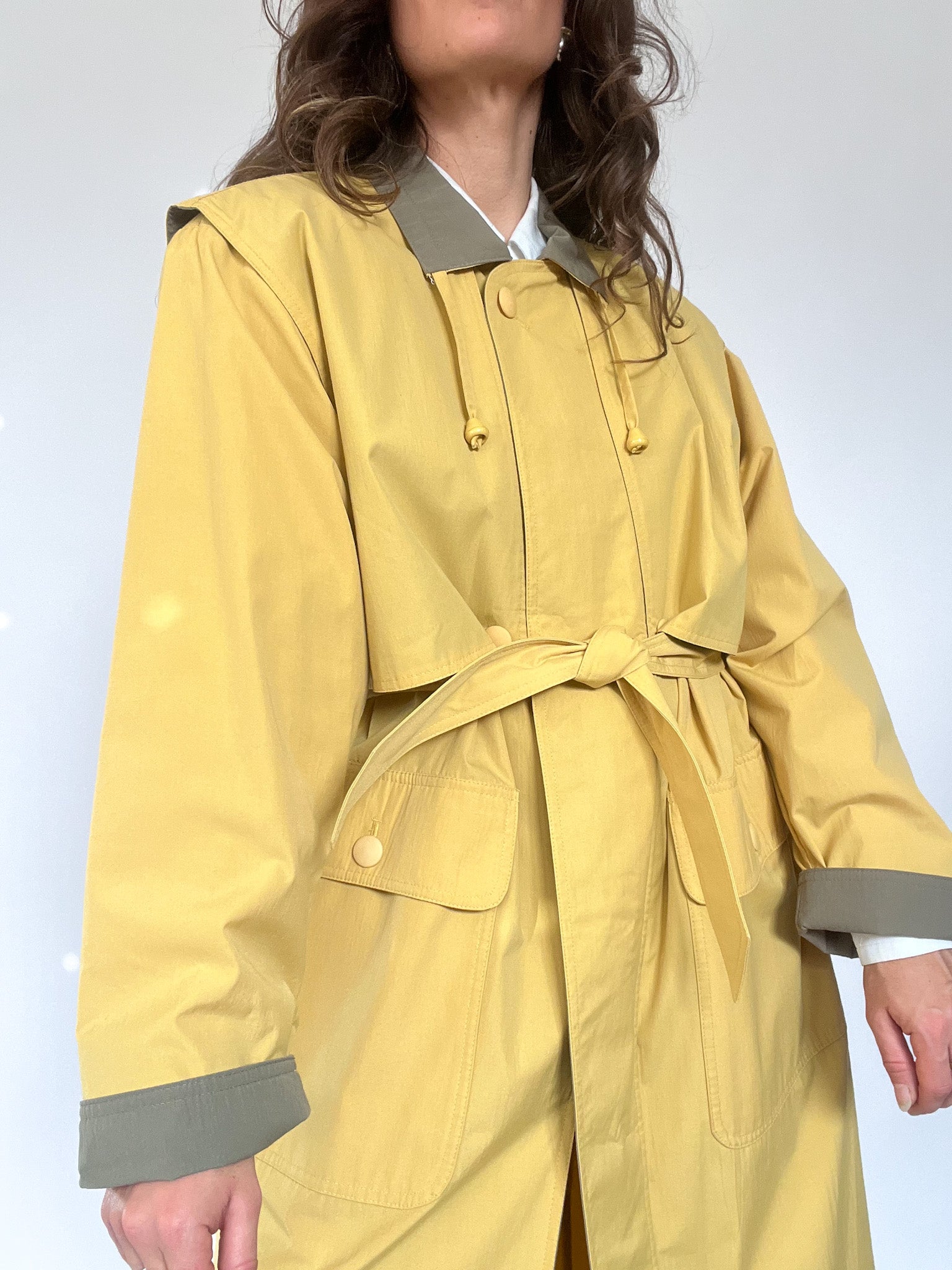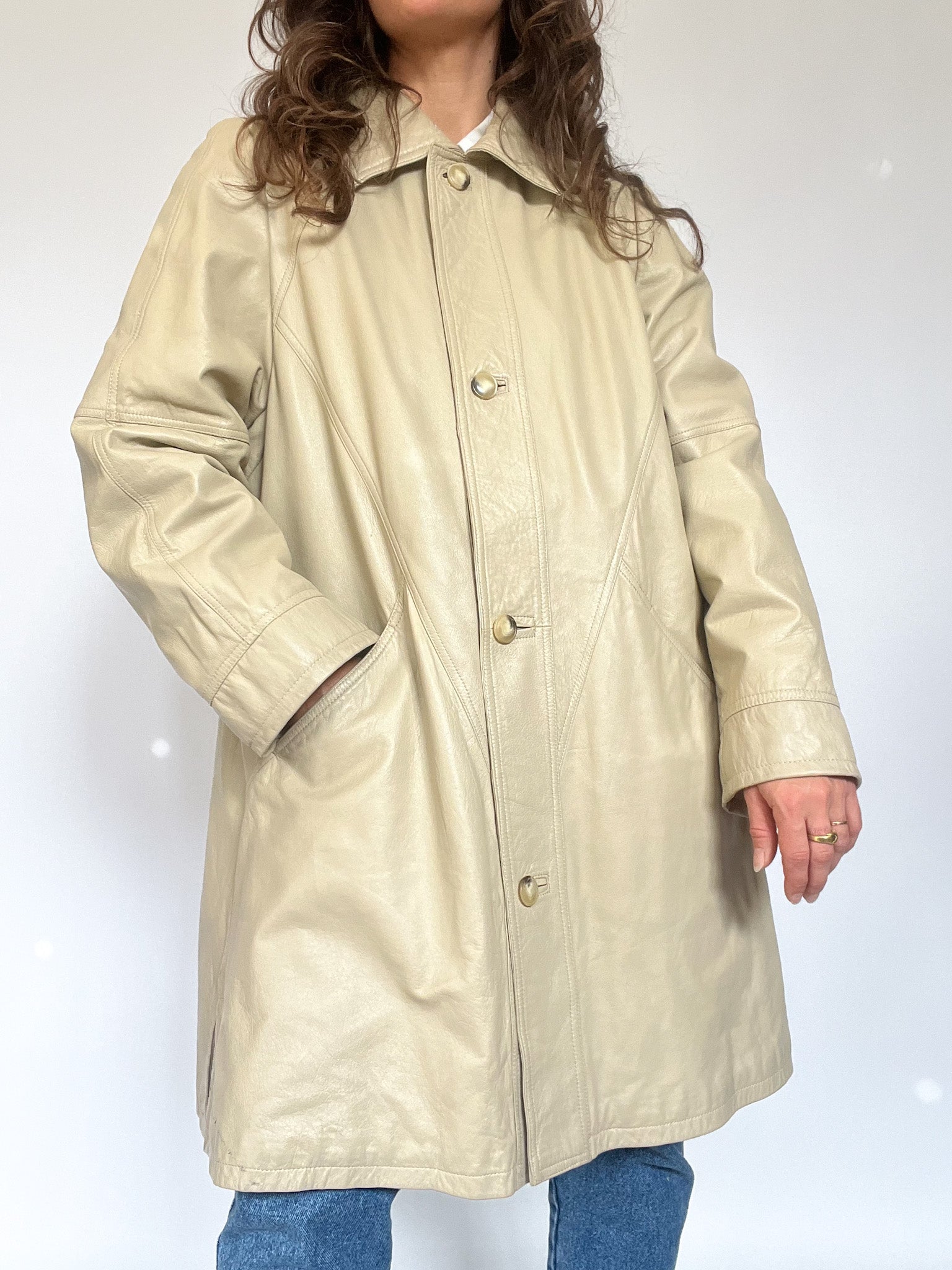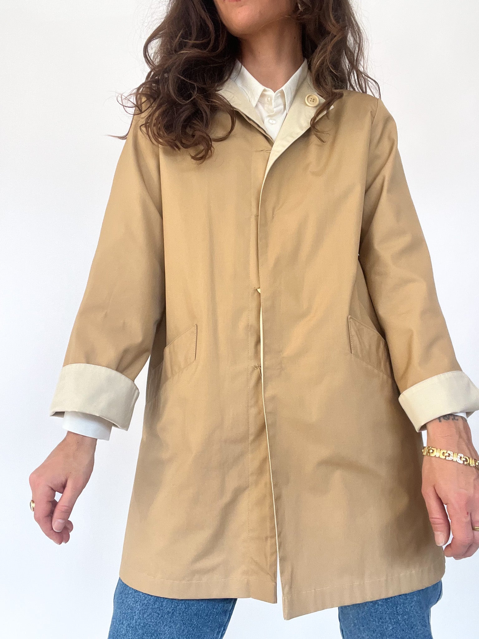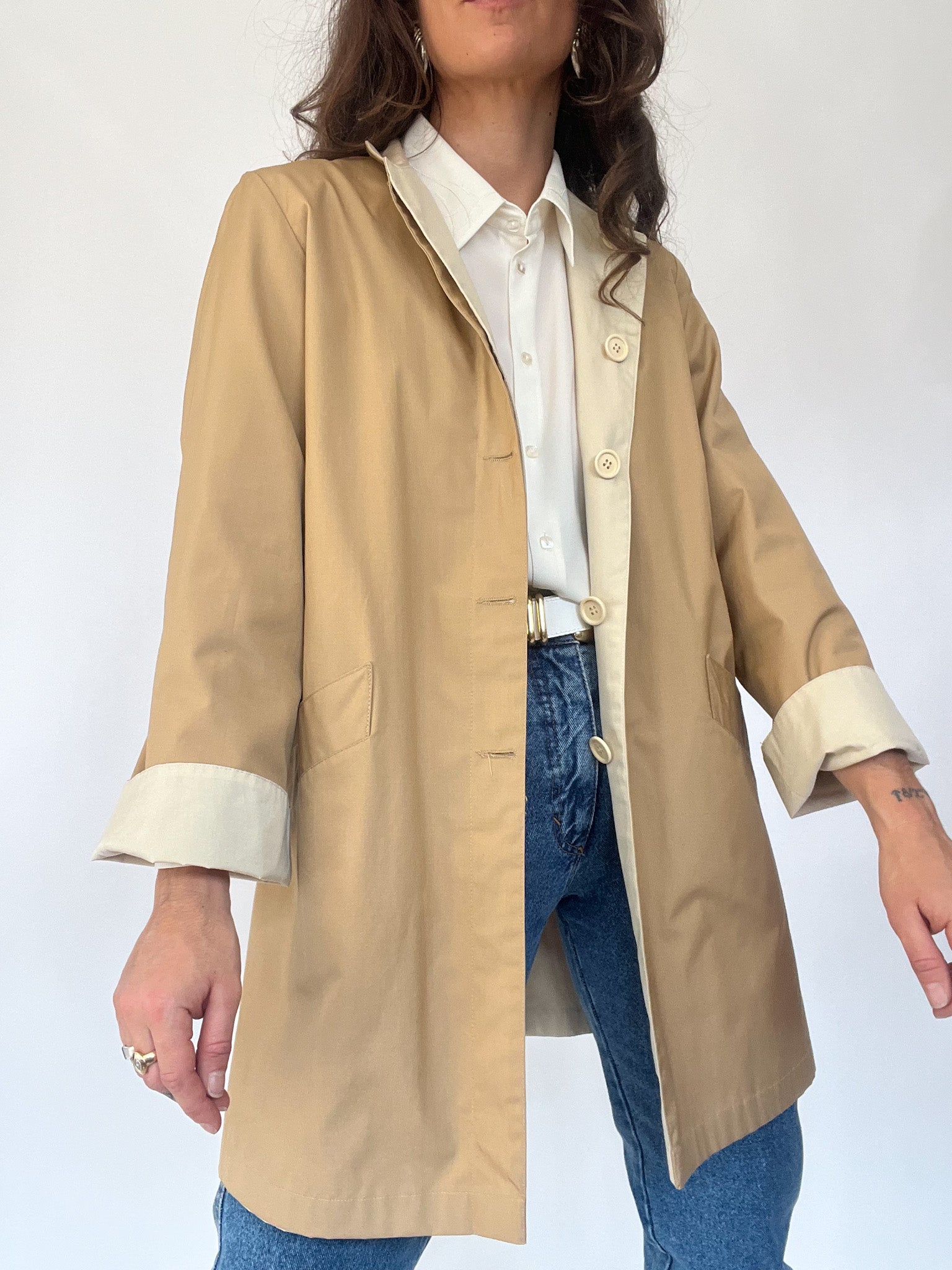 Vintage Taupe Belted Coat with Faux Fur Collar