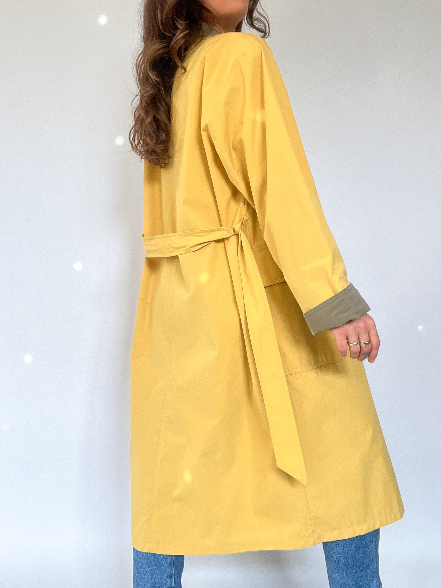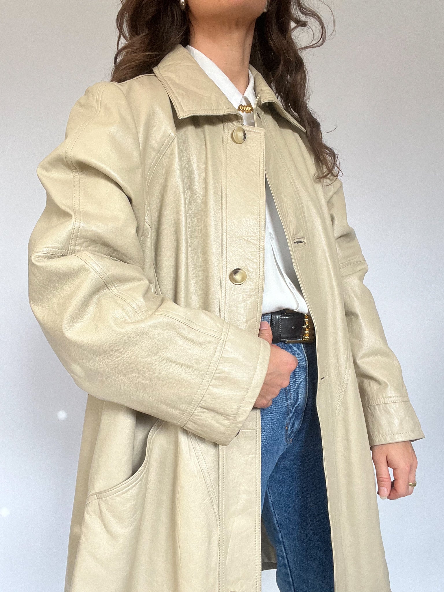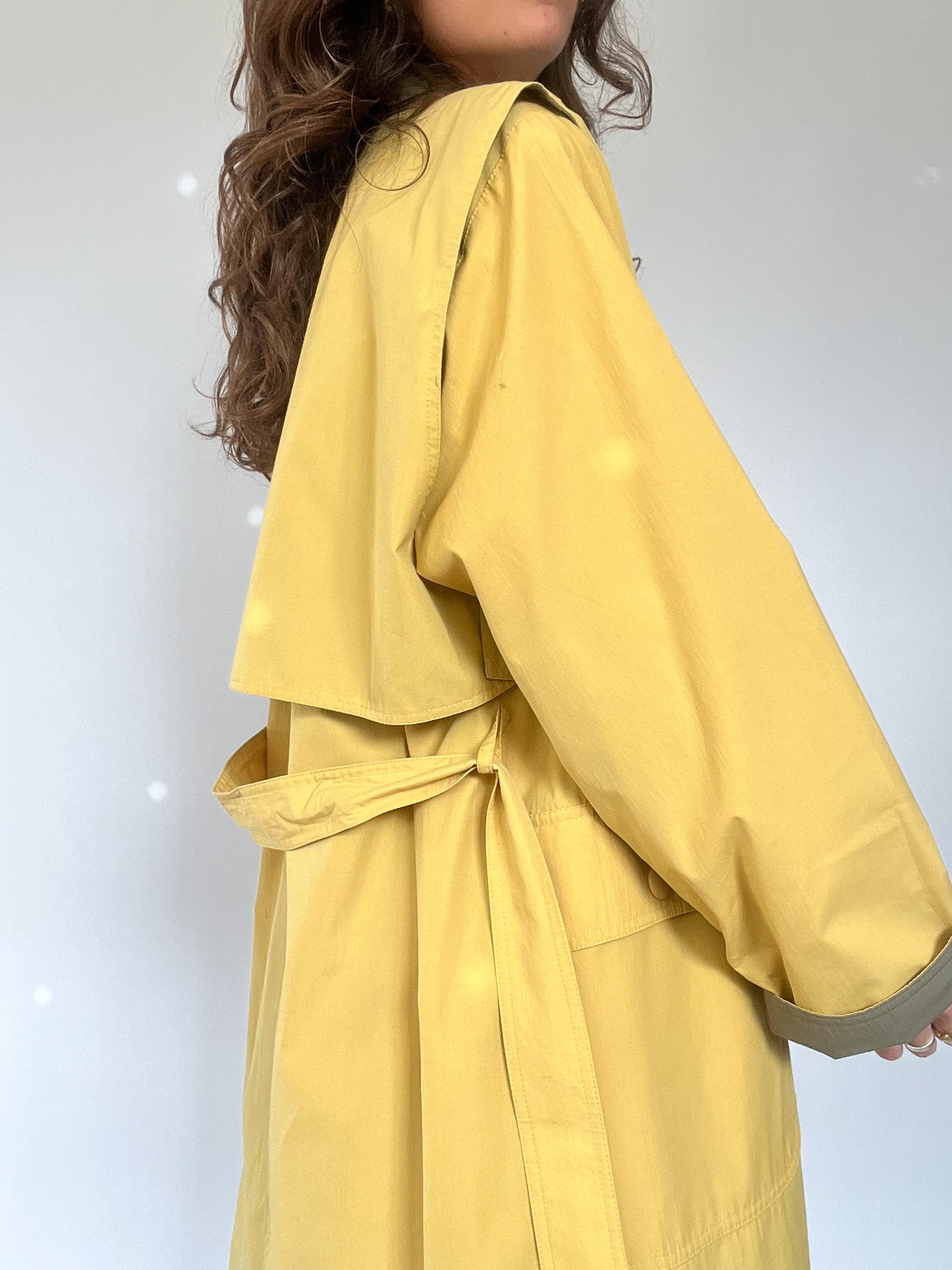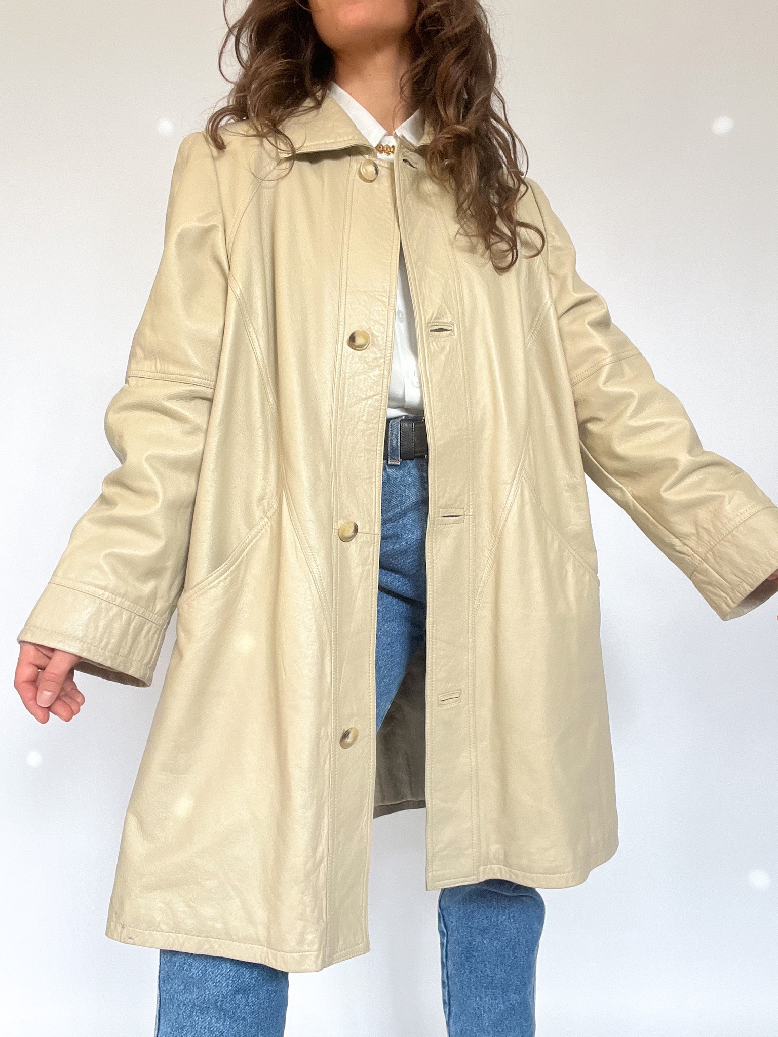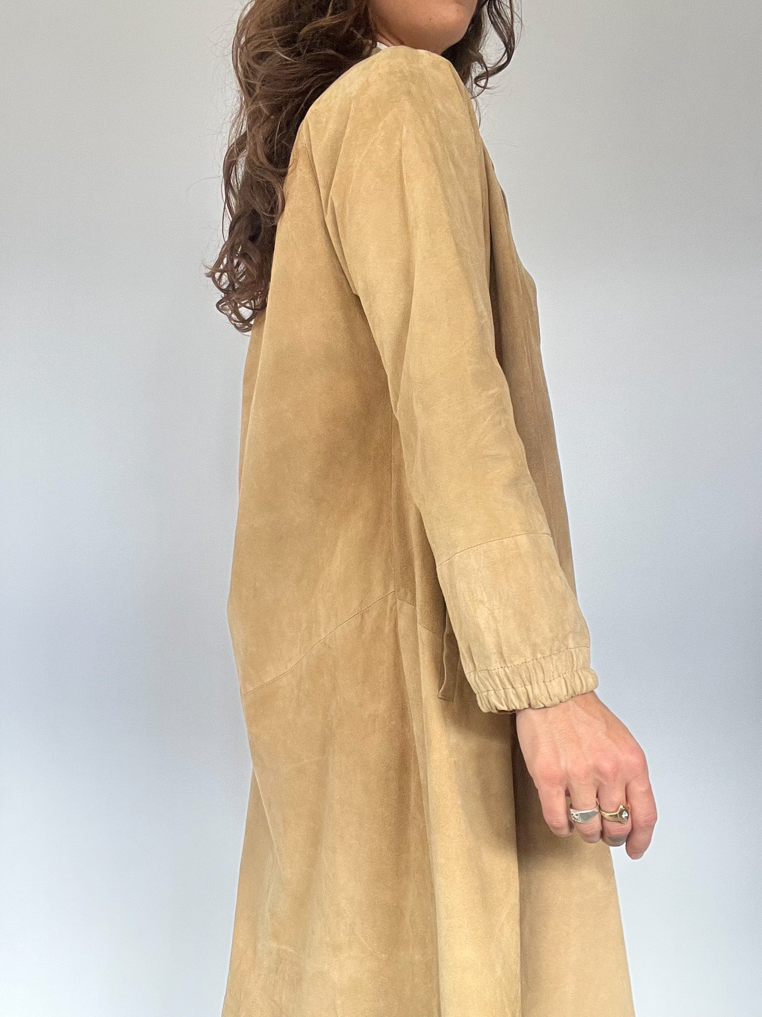 Vintage Taupe Belted Coat with Faux Fur Collar