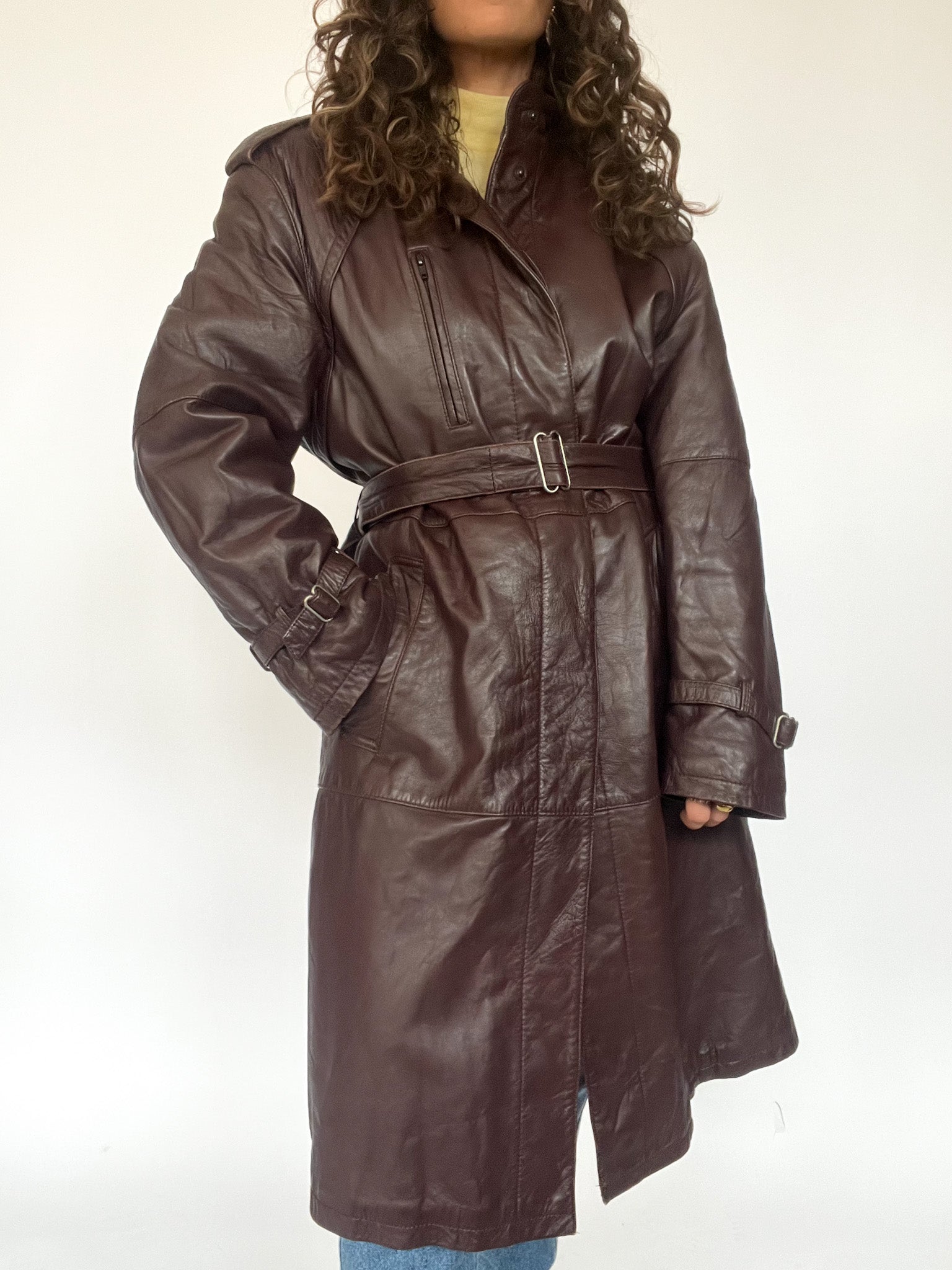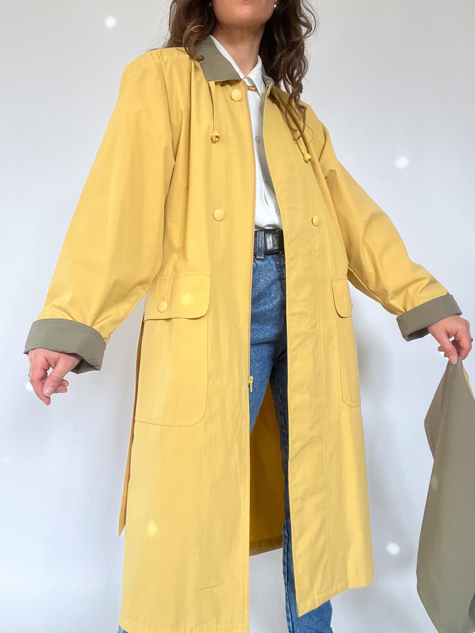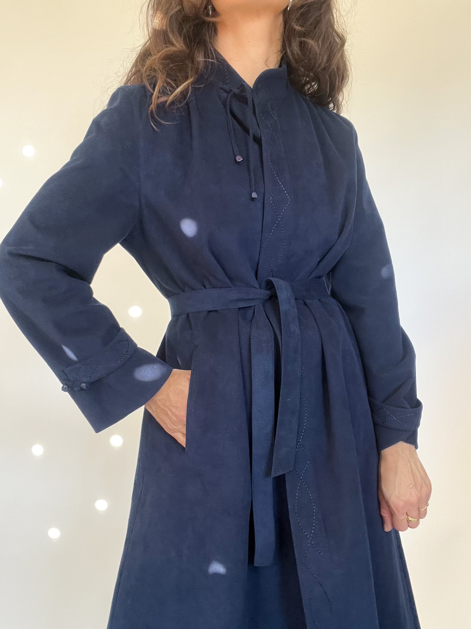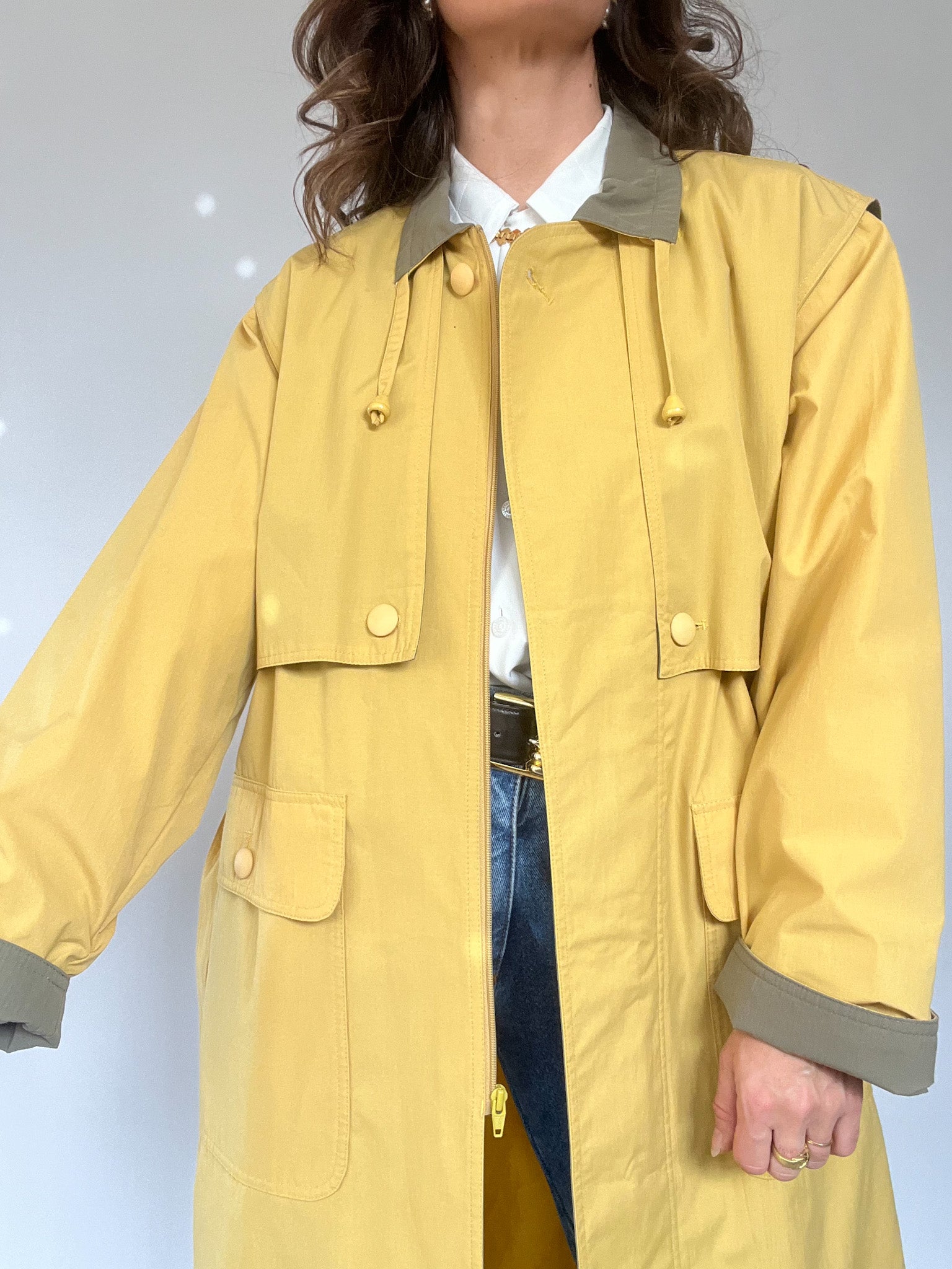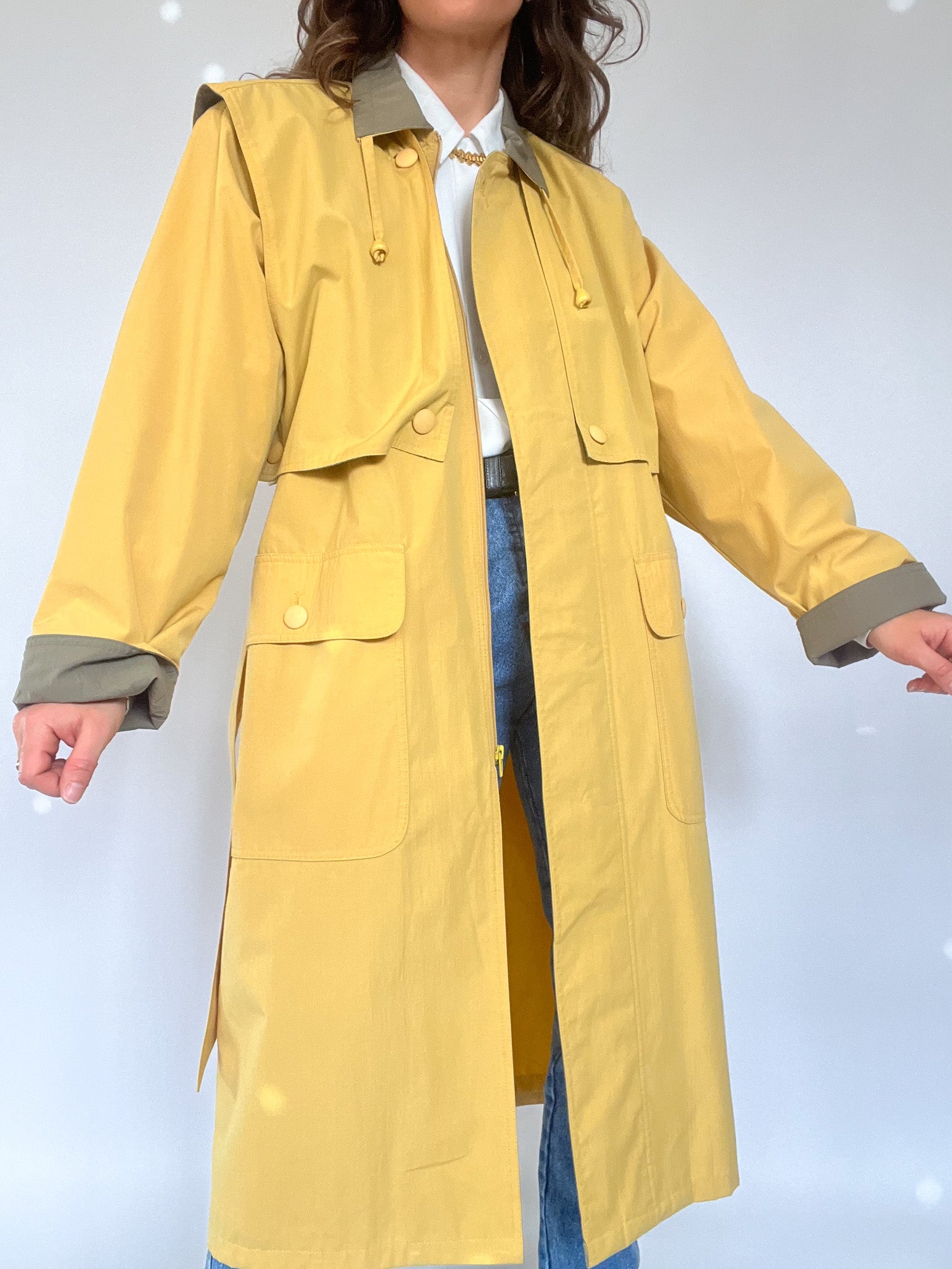 Vintage Taupe Belted Coat with Faux Fur Collar