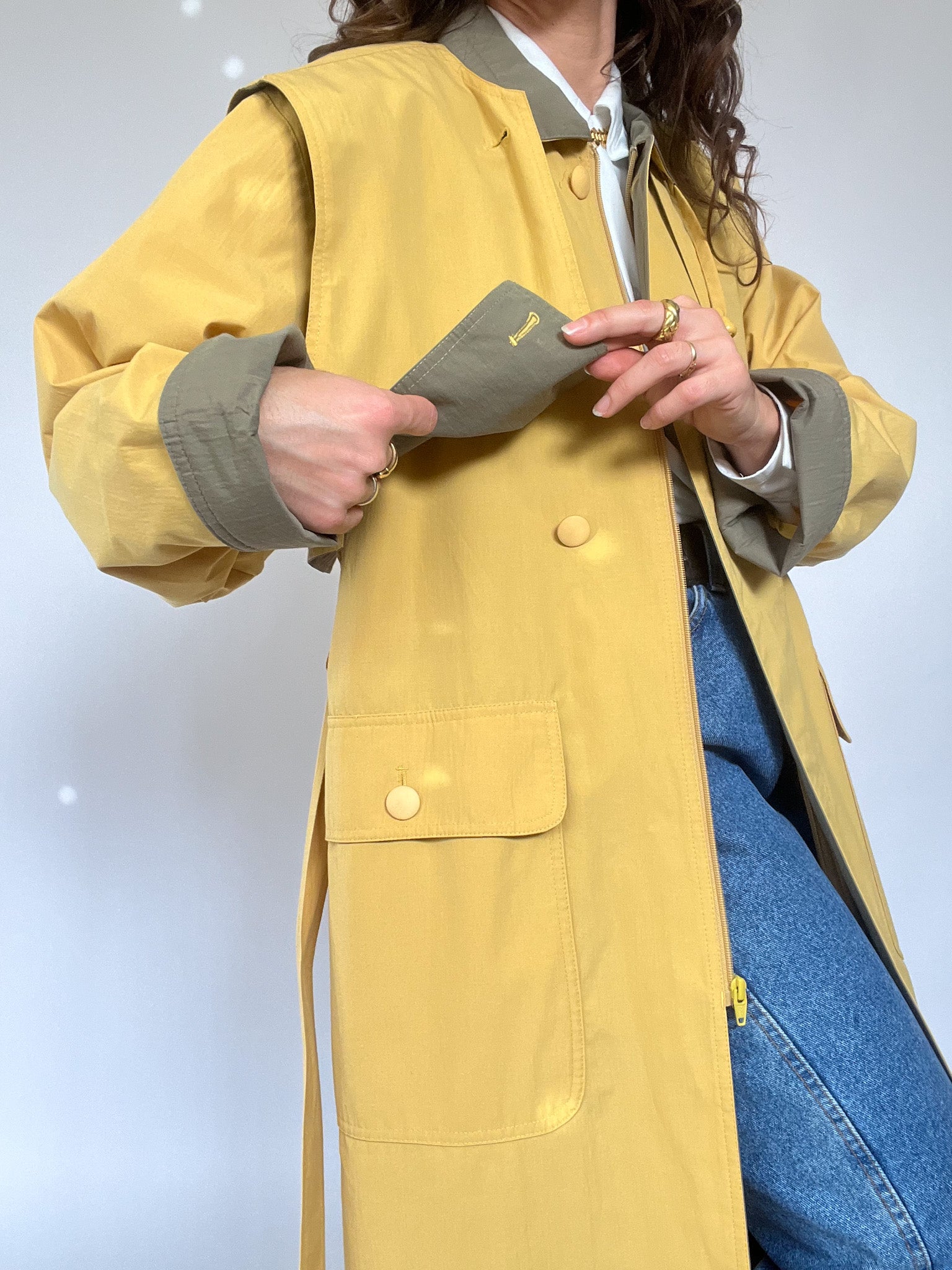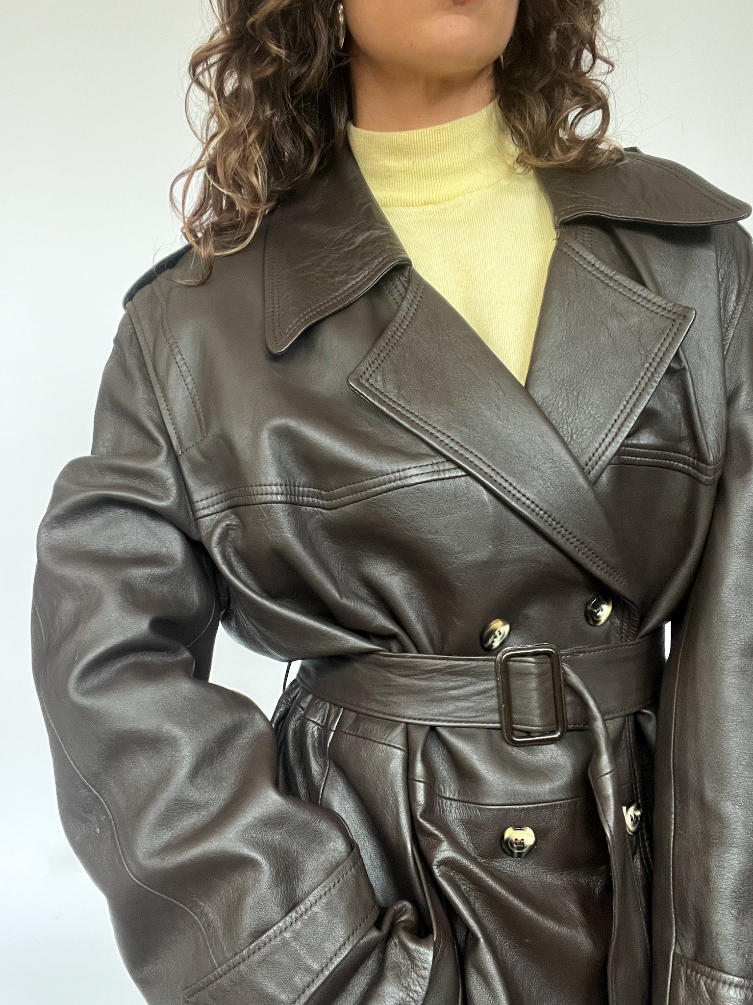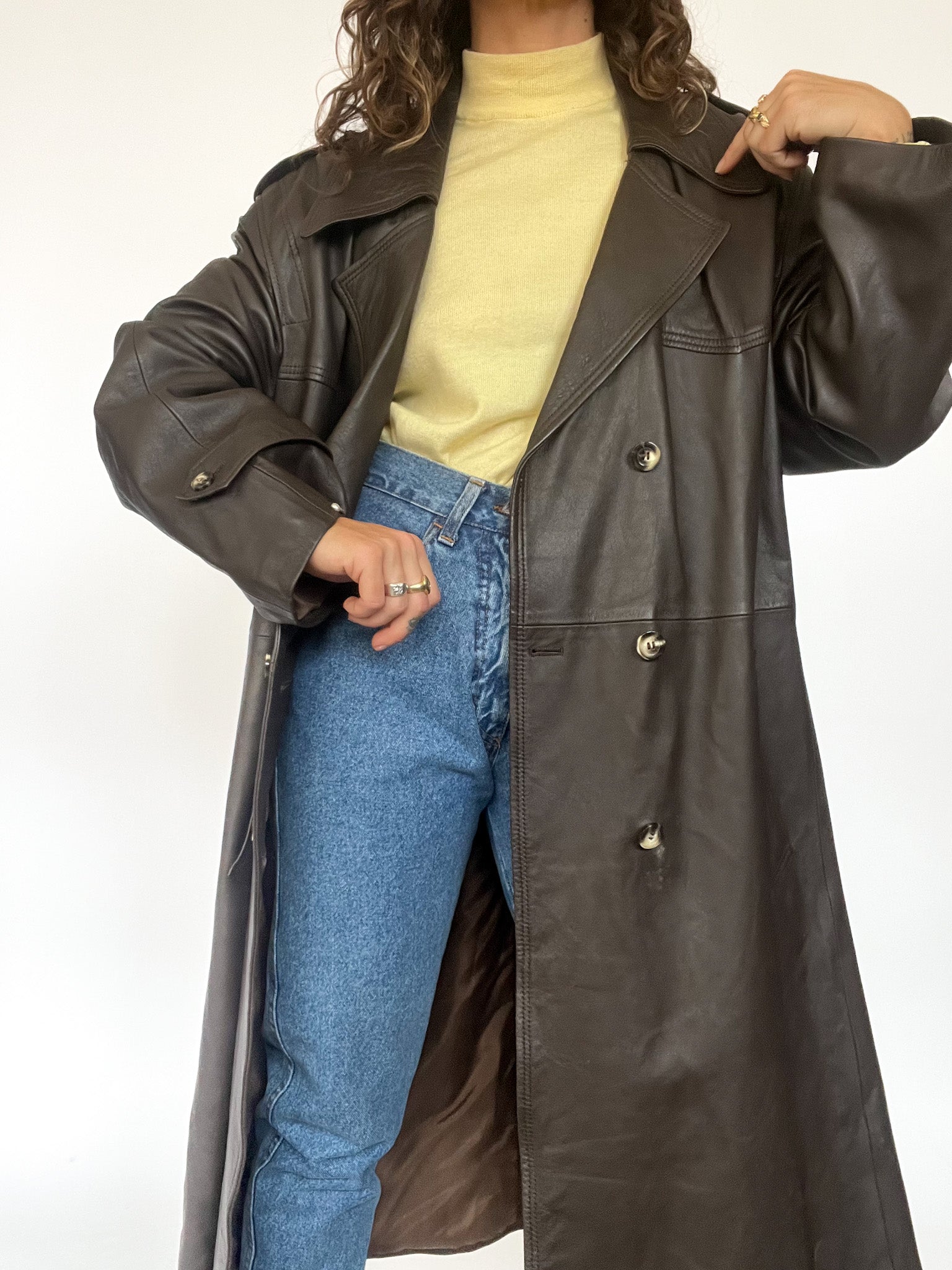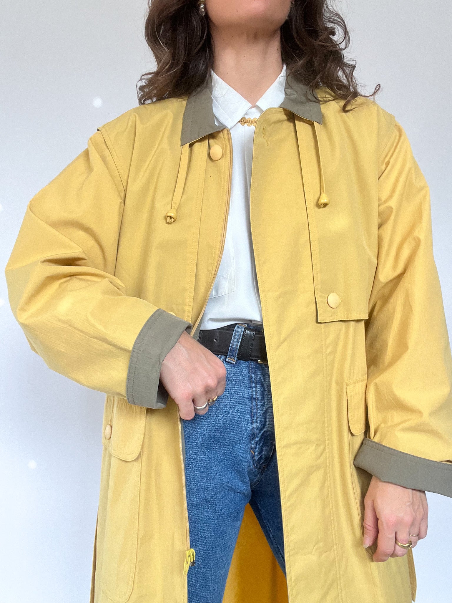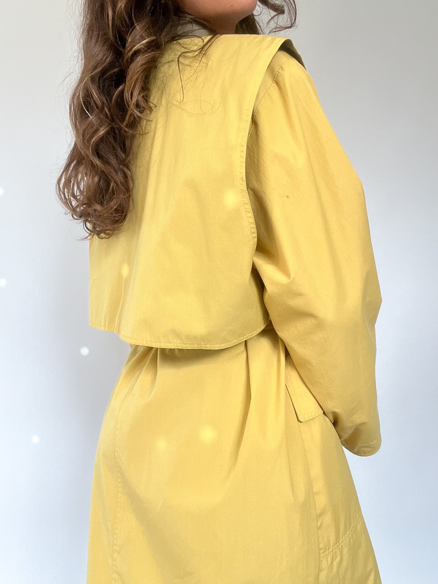 Vintage Taupe Belted Coat with Faux Fur Collar