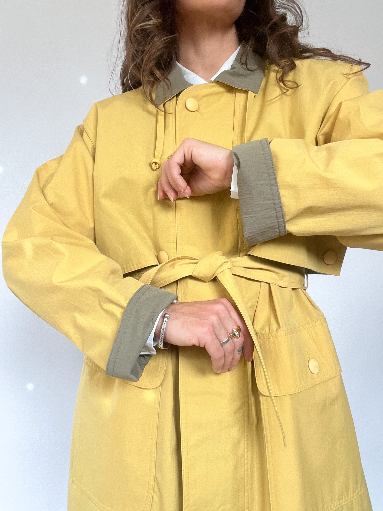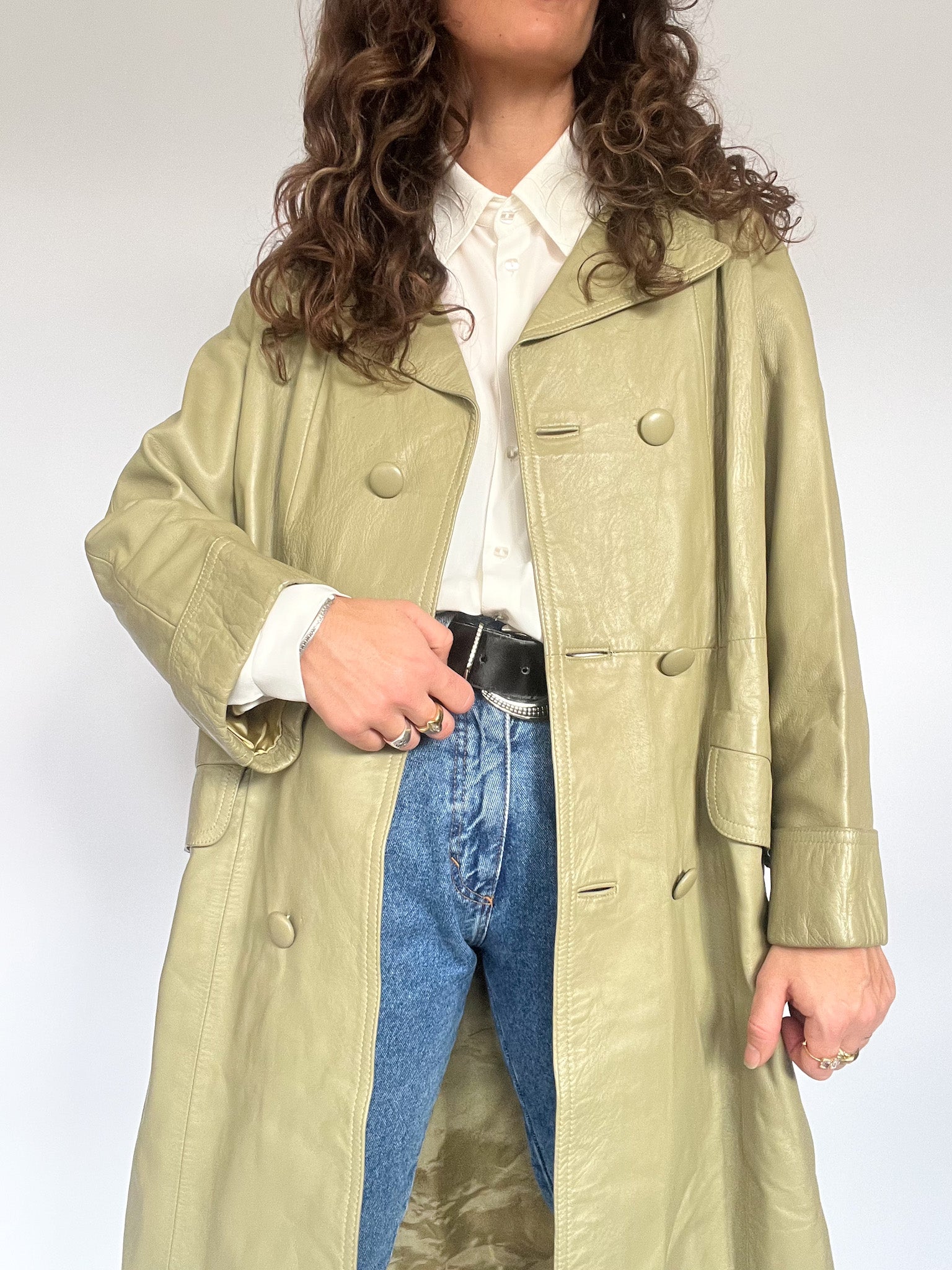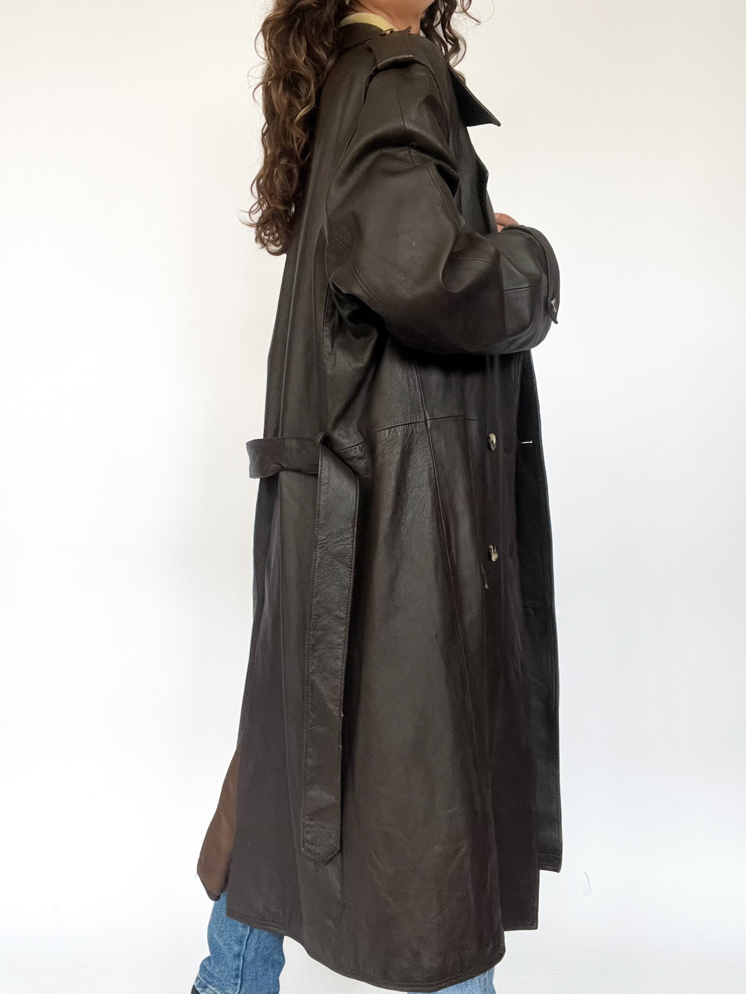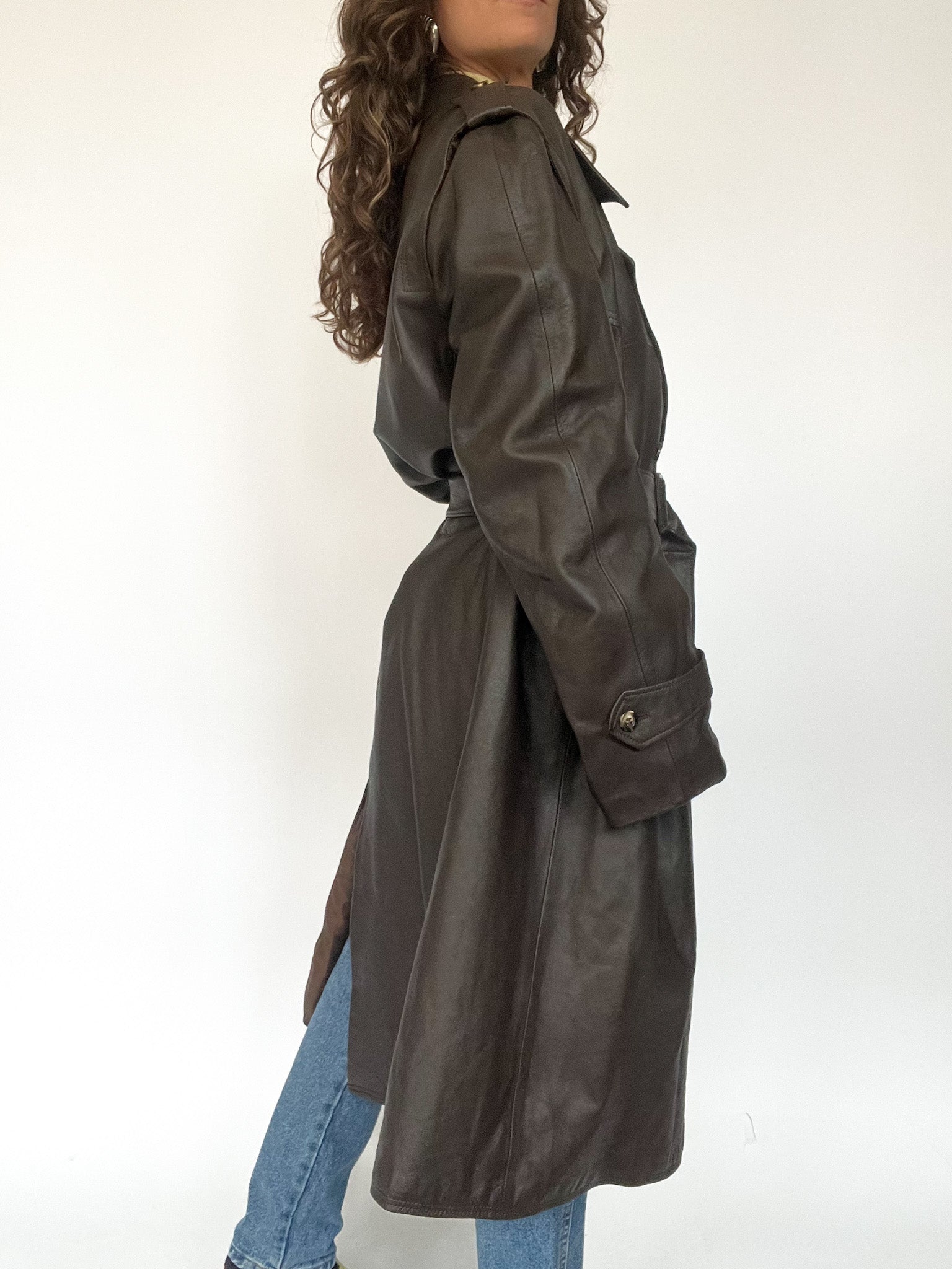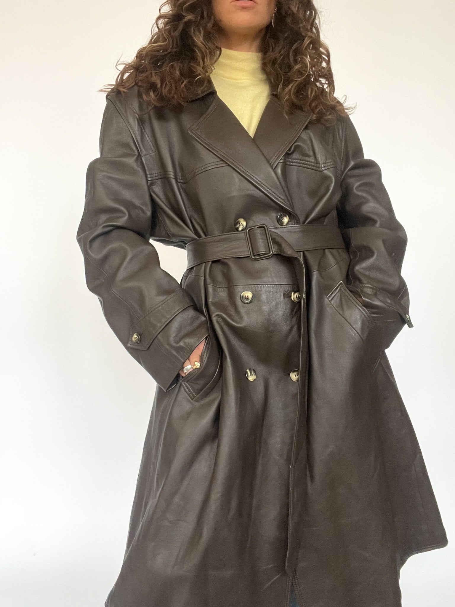 Vintage Taupe Belted Coat with Faux Fur Collar