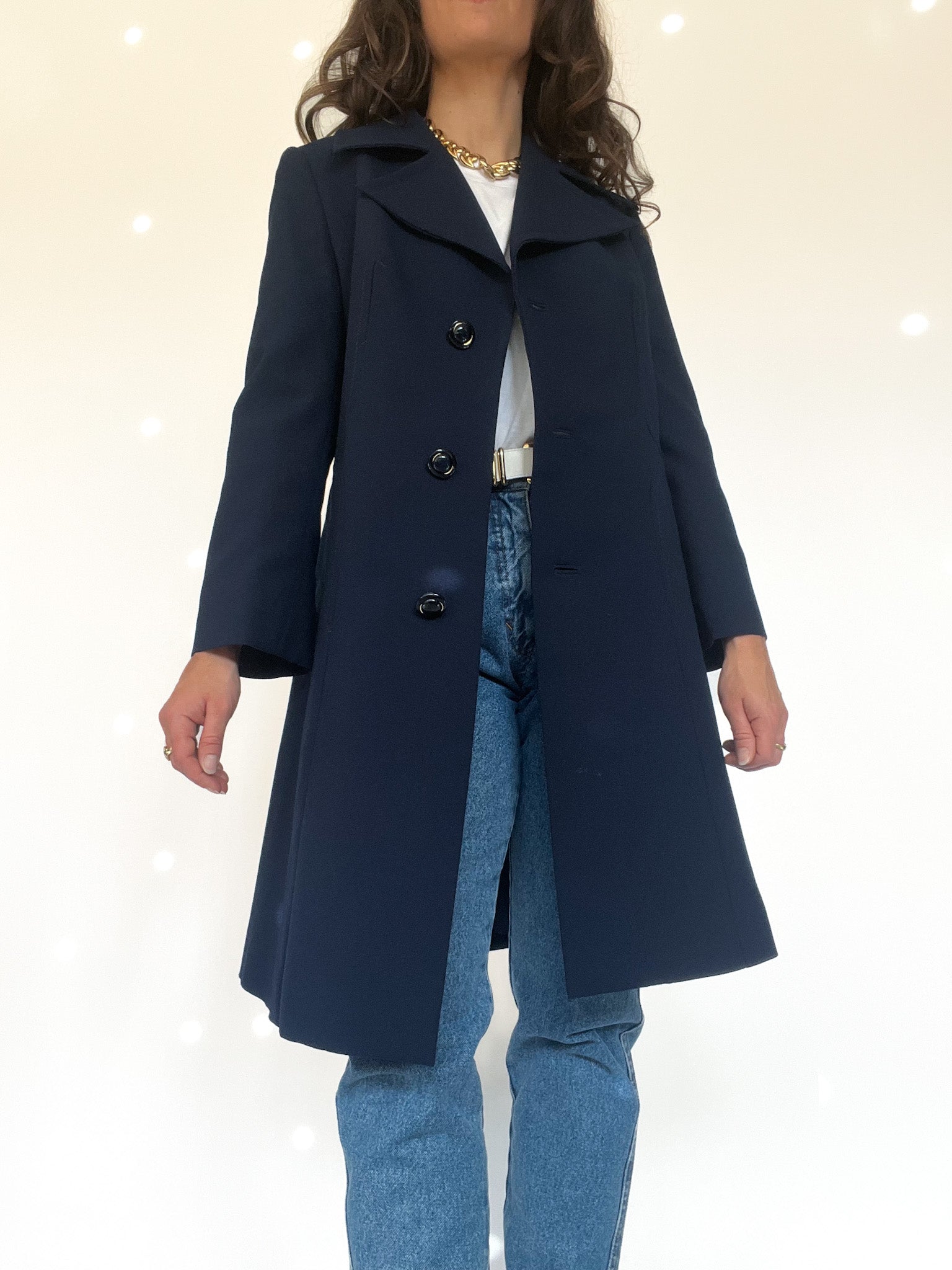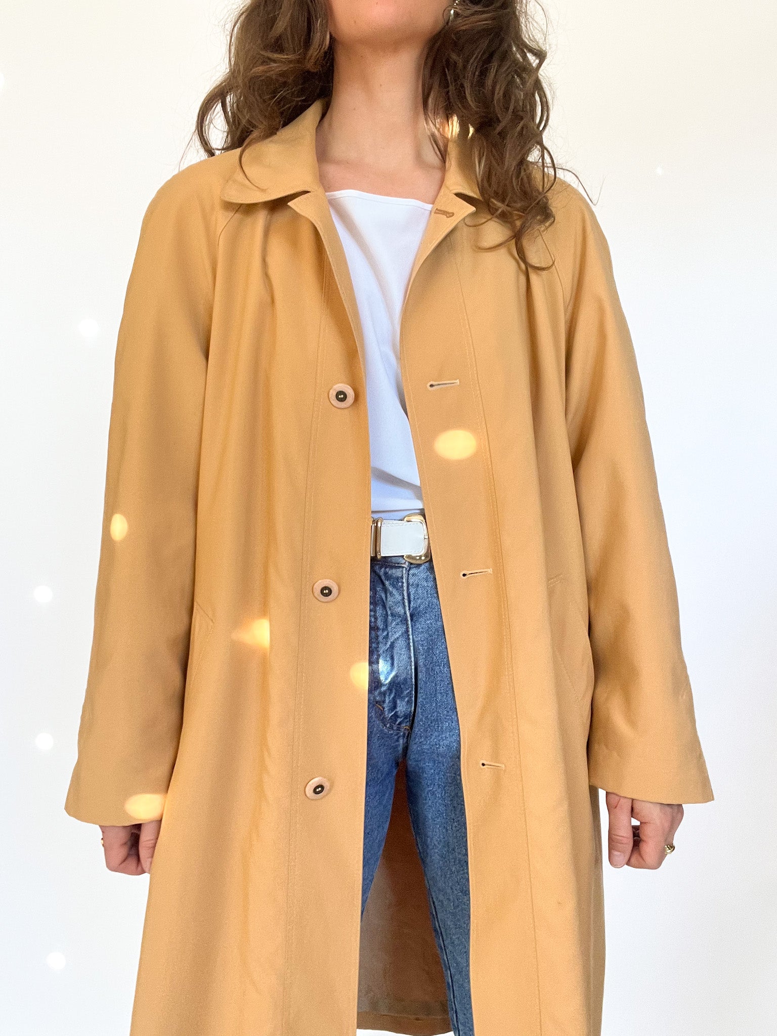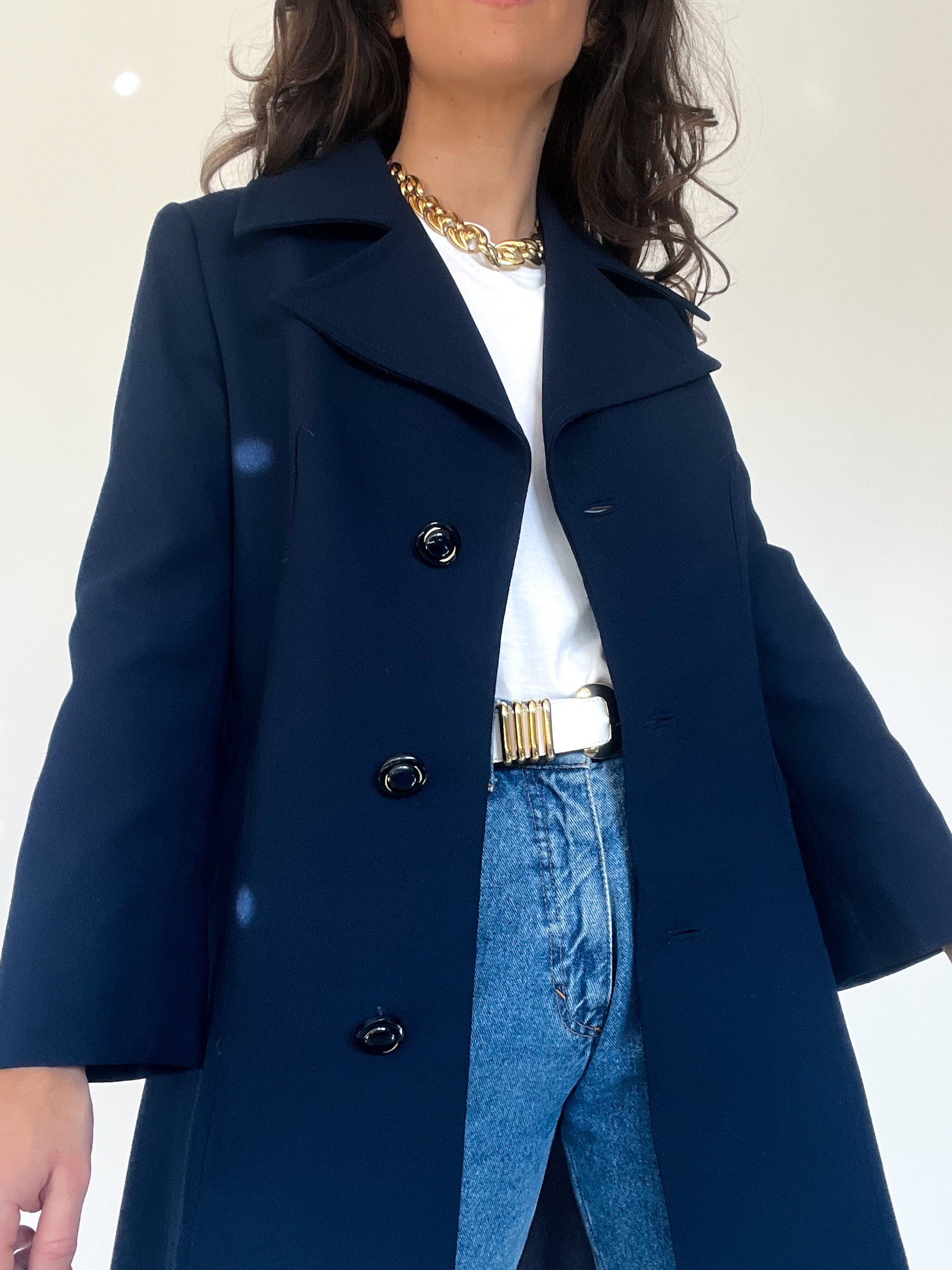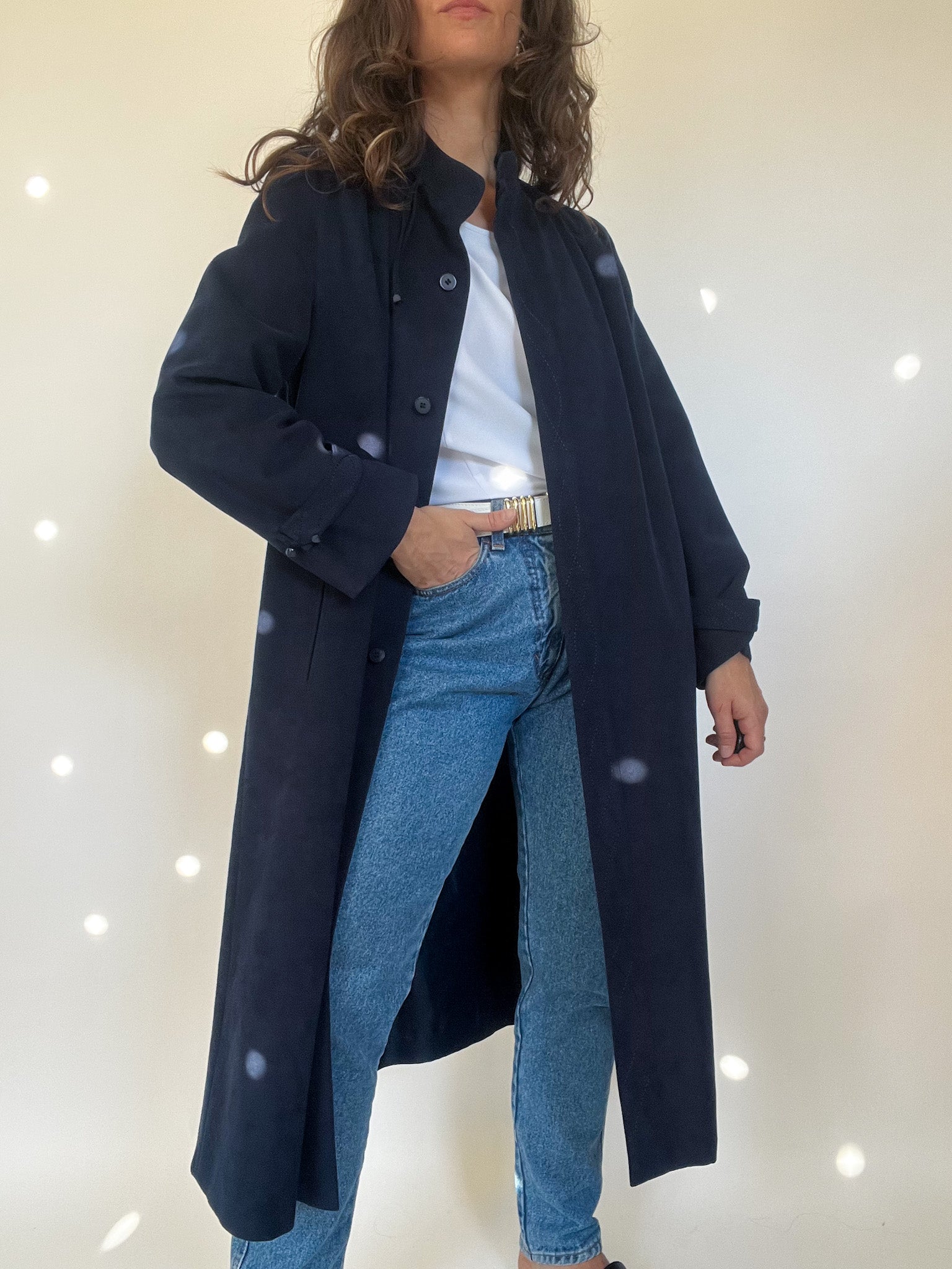 Vintage Oversized Wool Coat with Faux Fur Collar