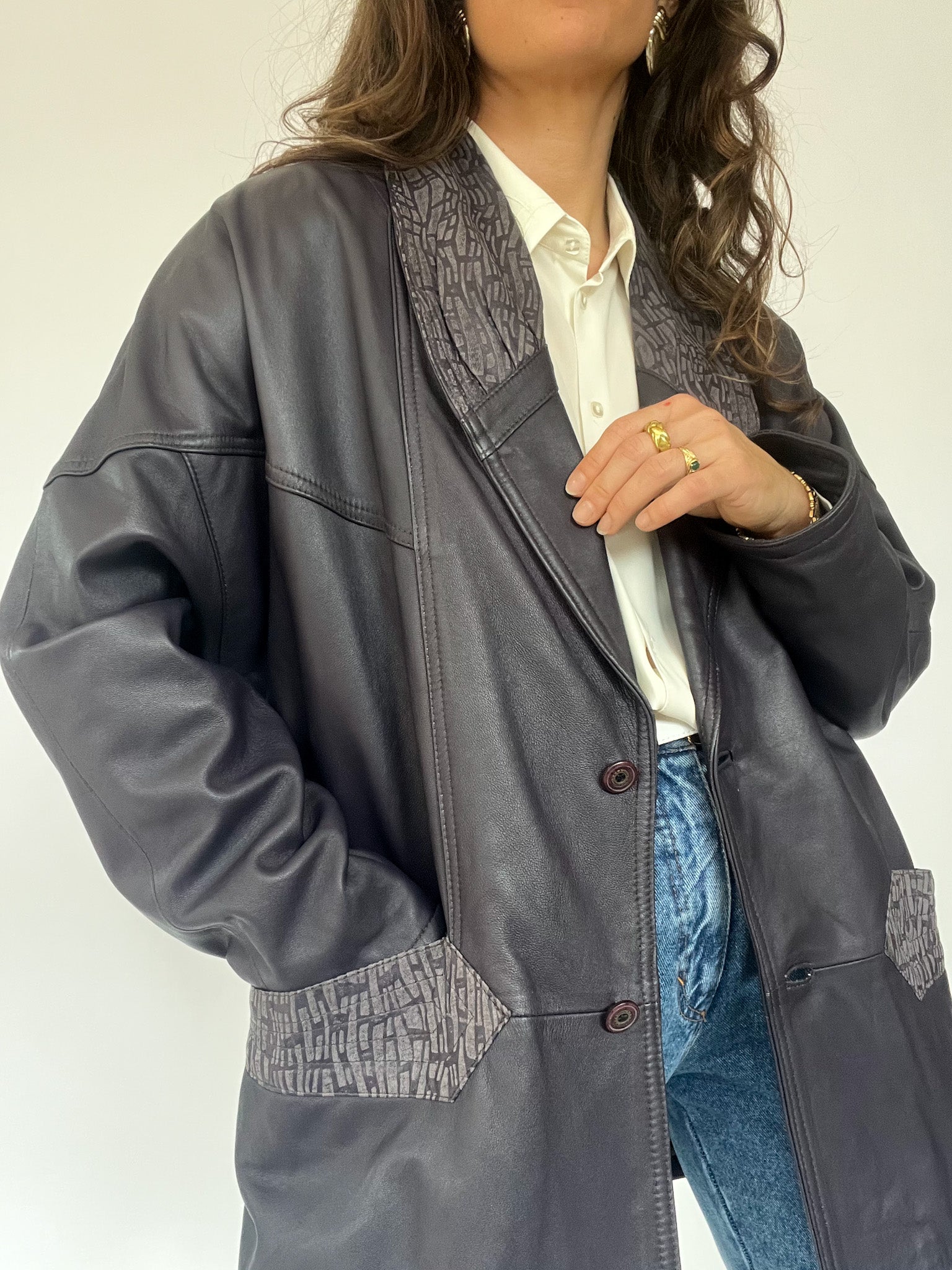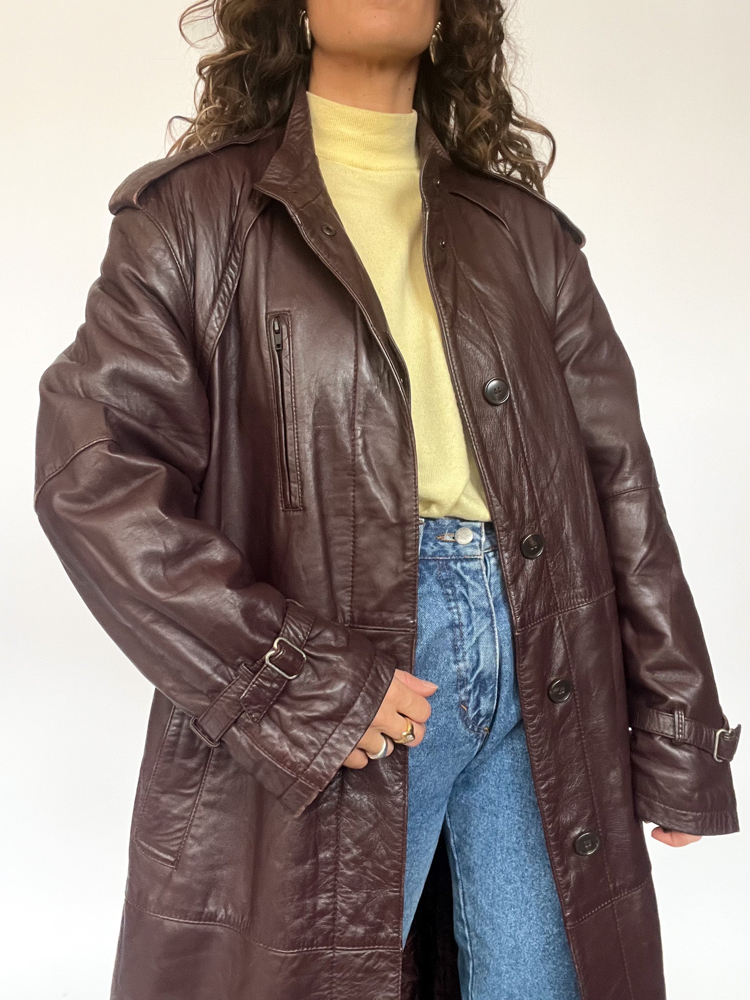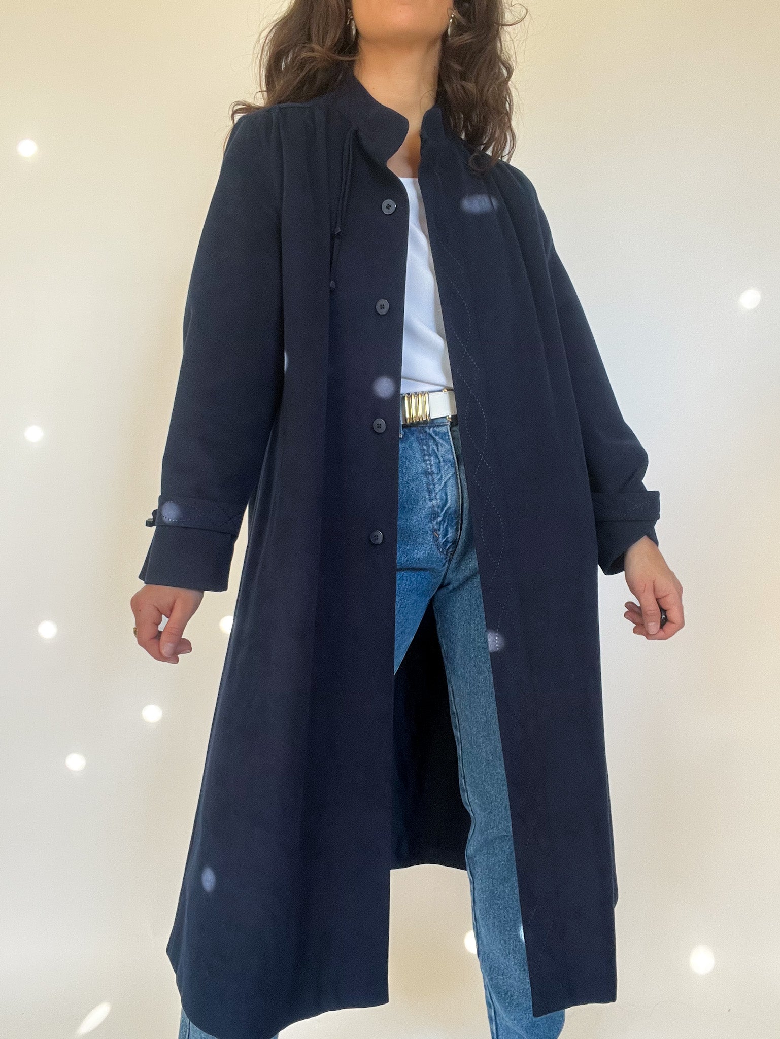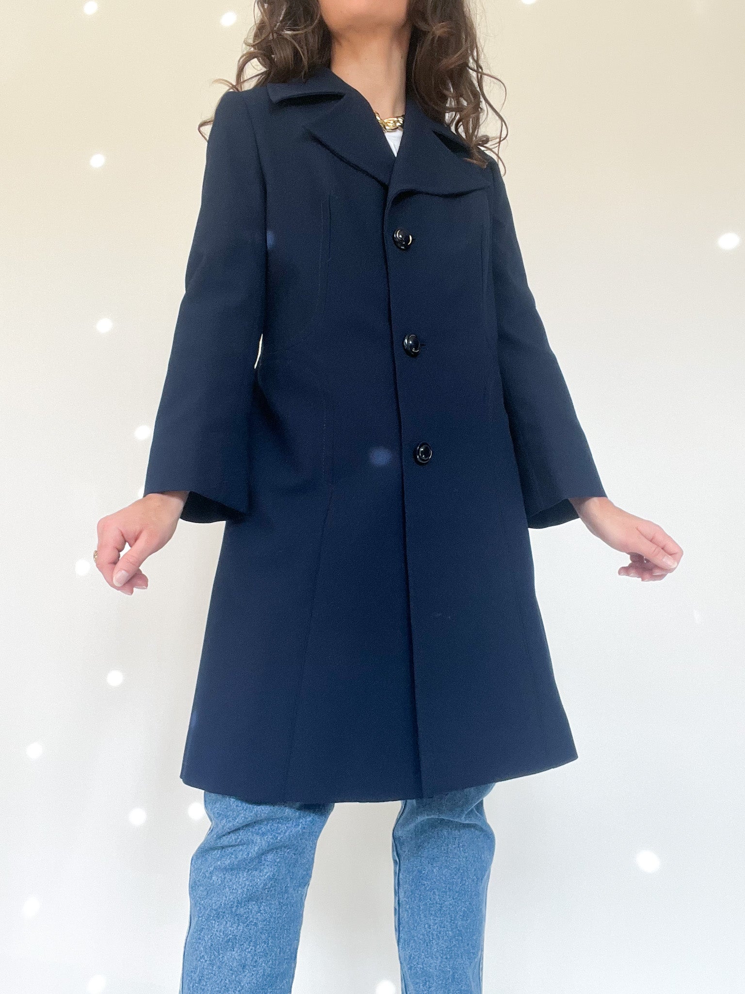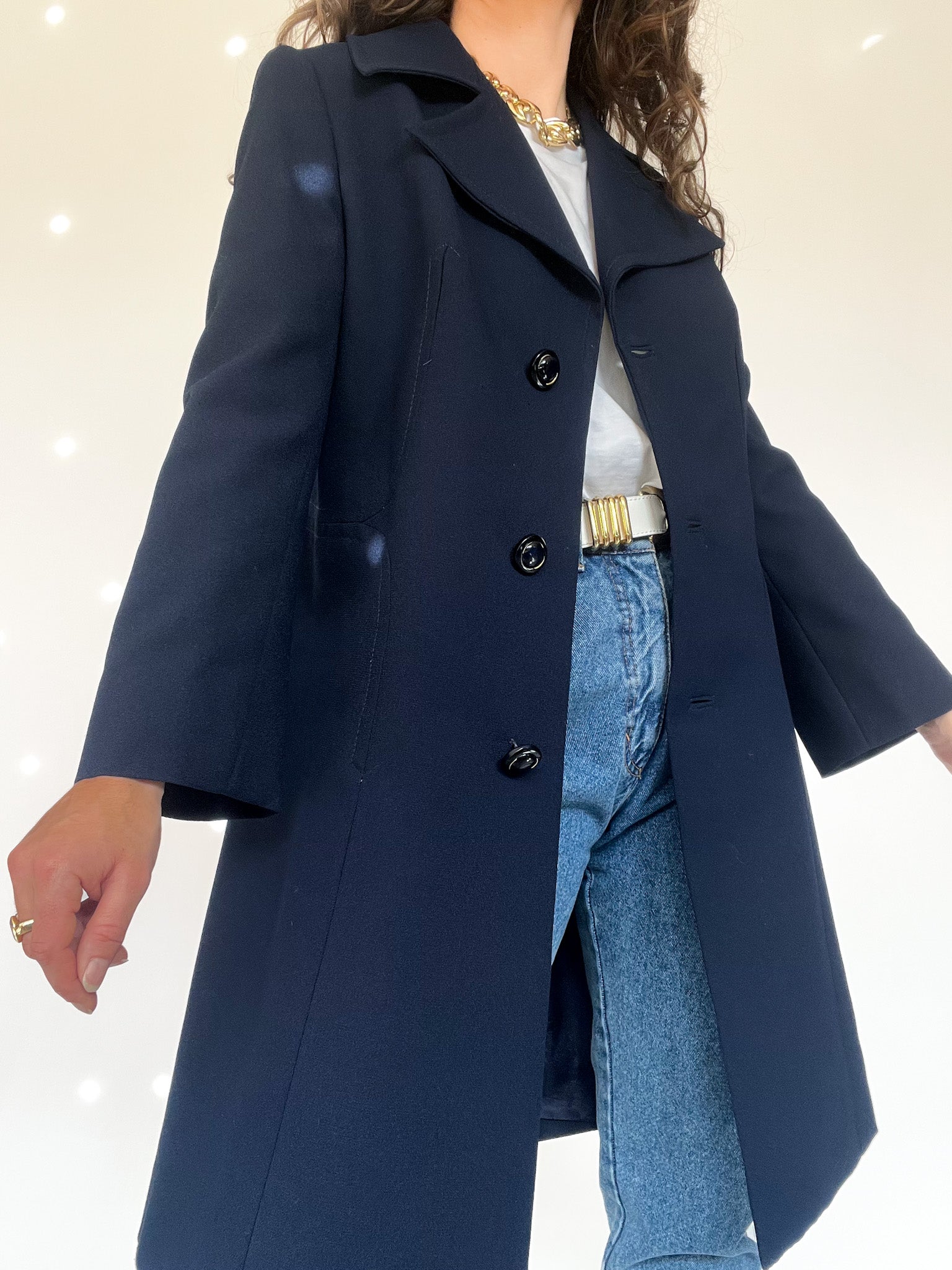 Vintage Oversized Wool Coat with Faux Fur Collar