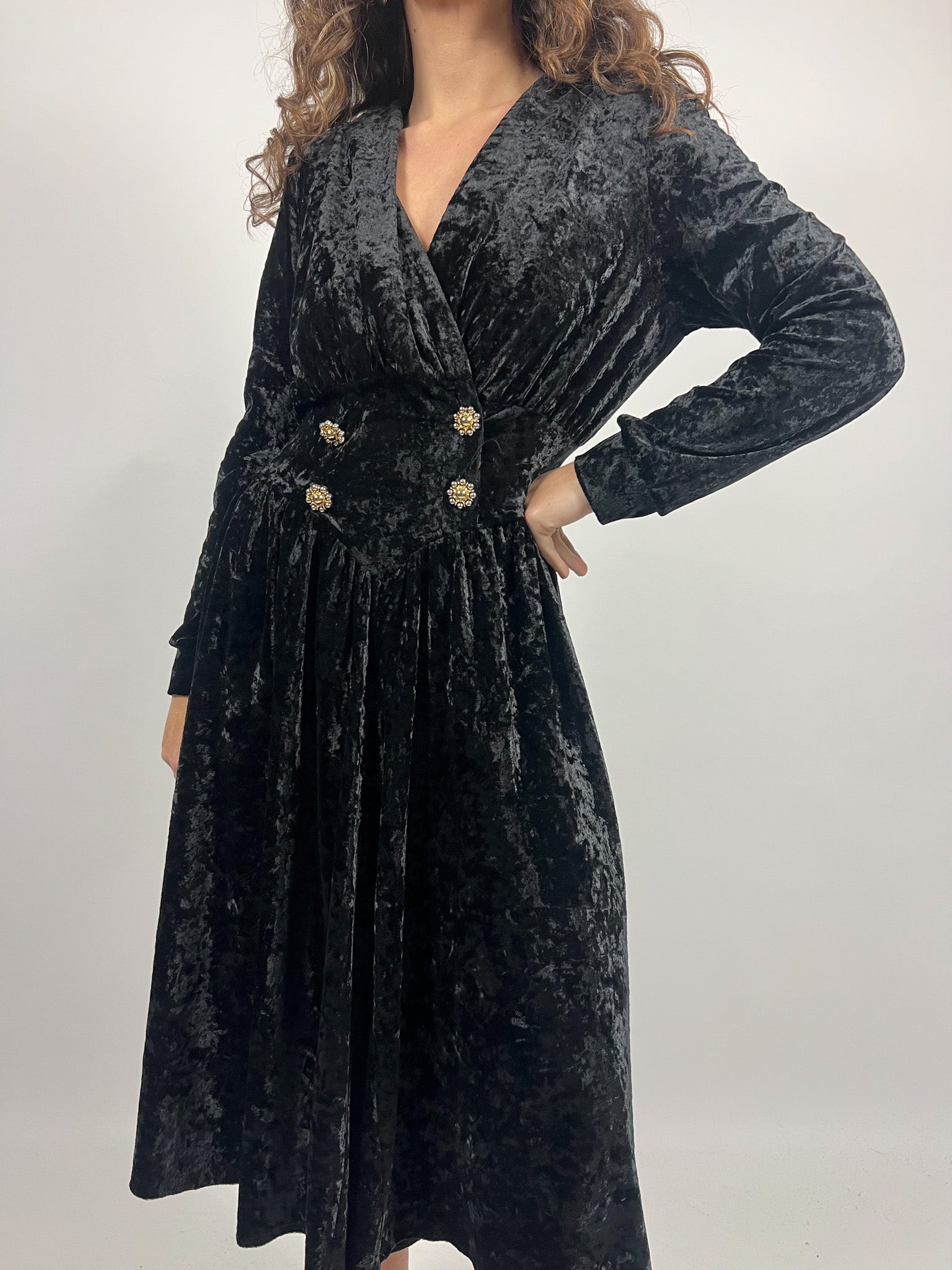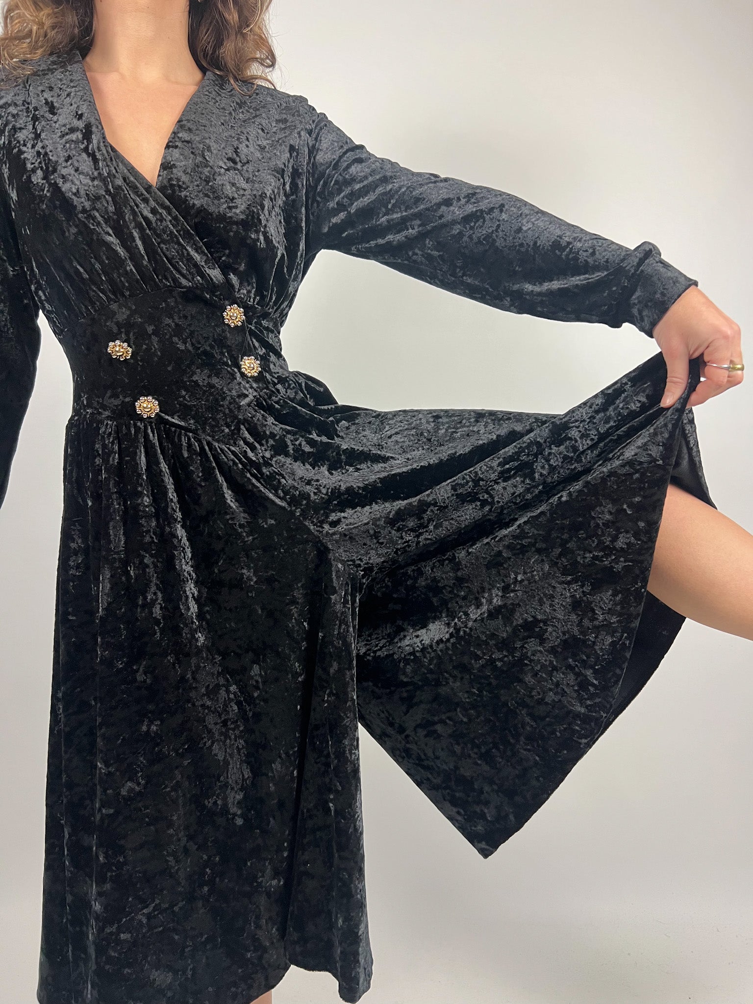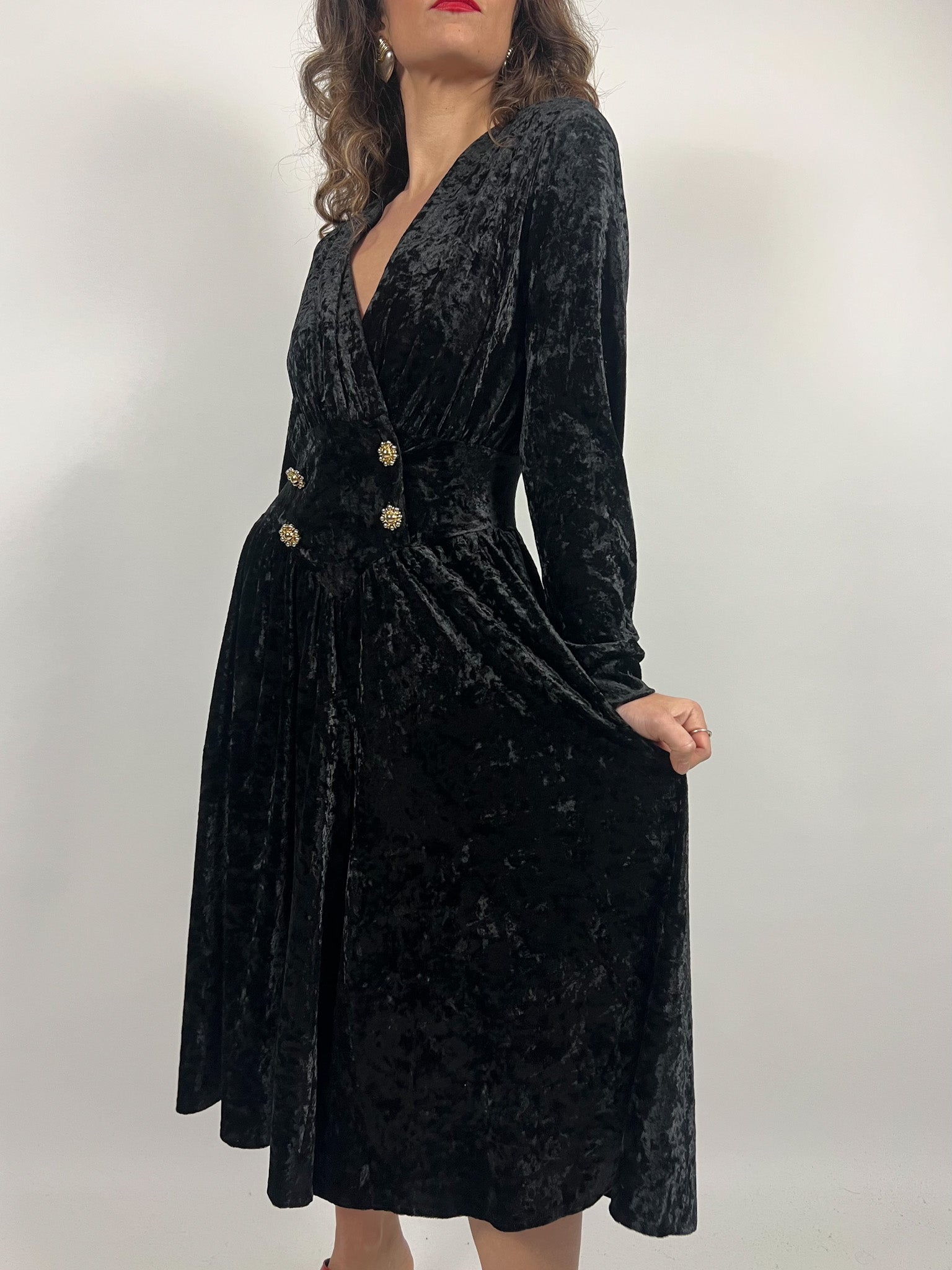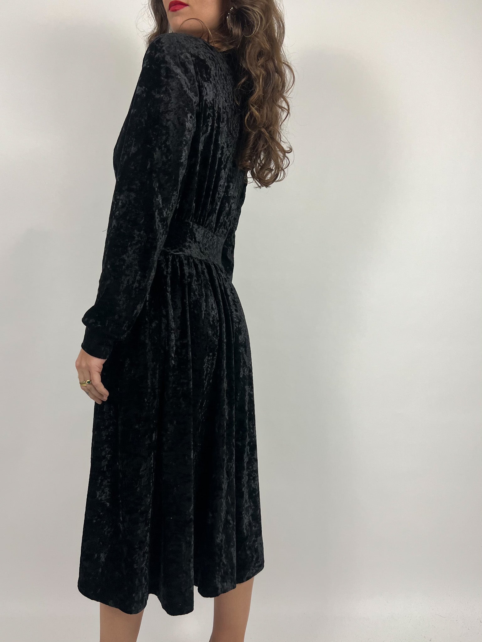 Vintage 90’s Black Crushed Velvet Wrap Dress