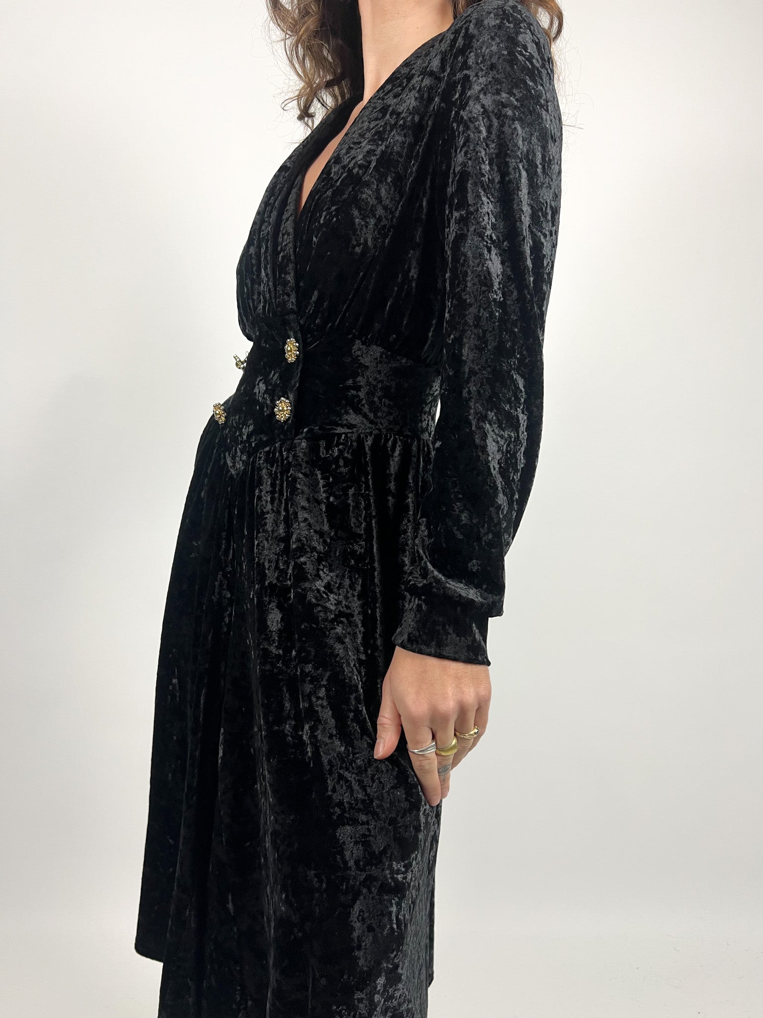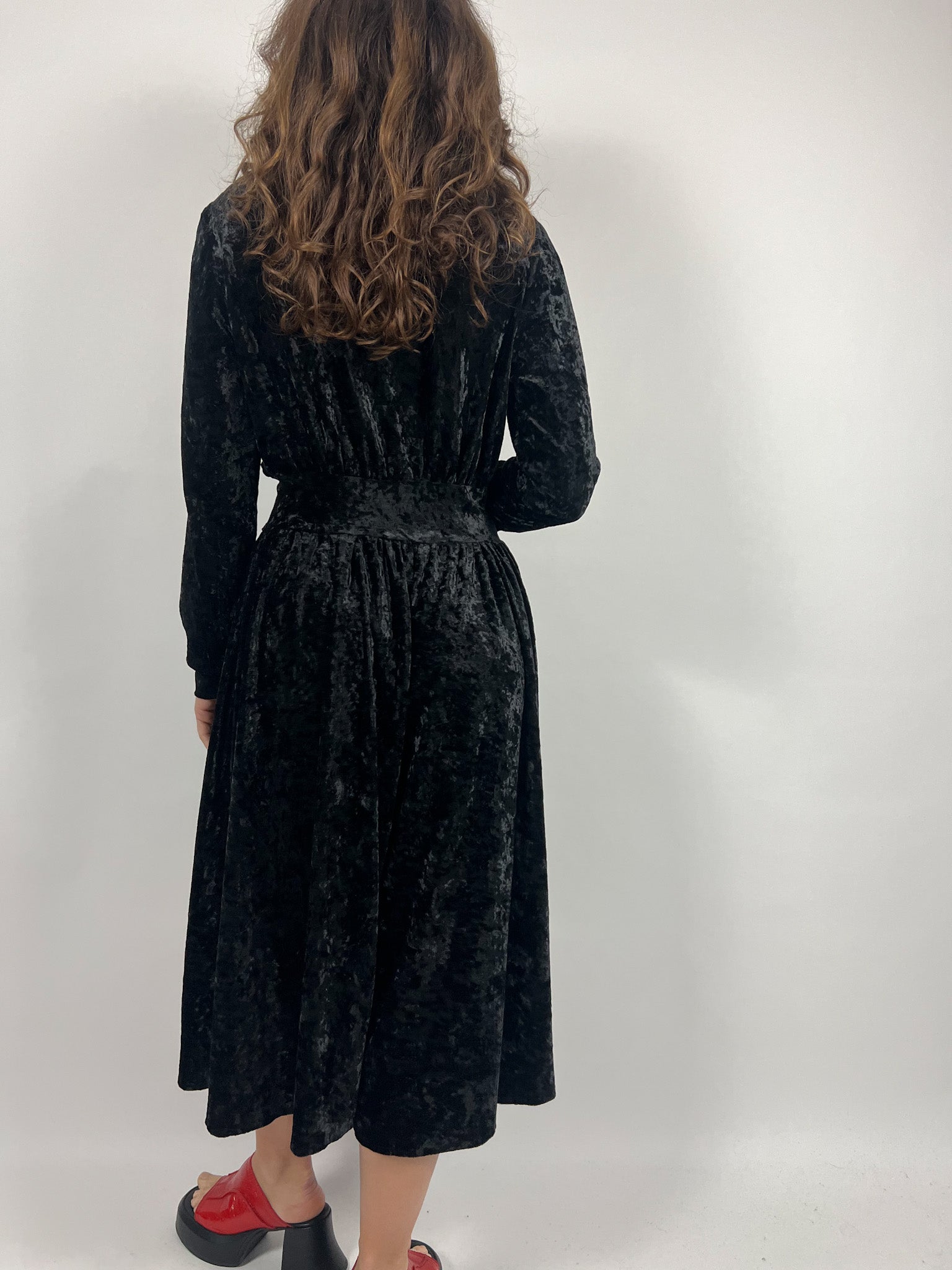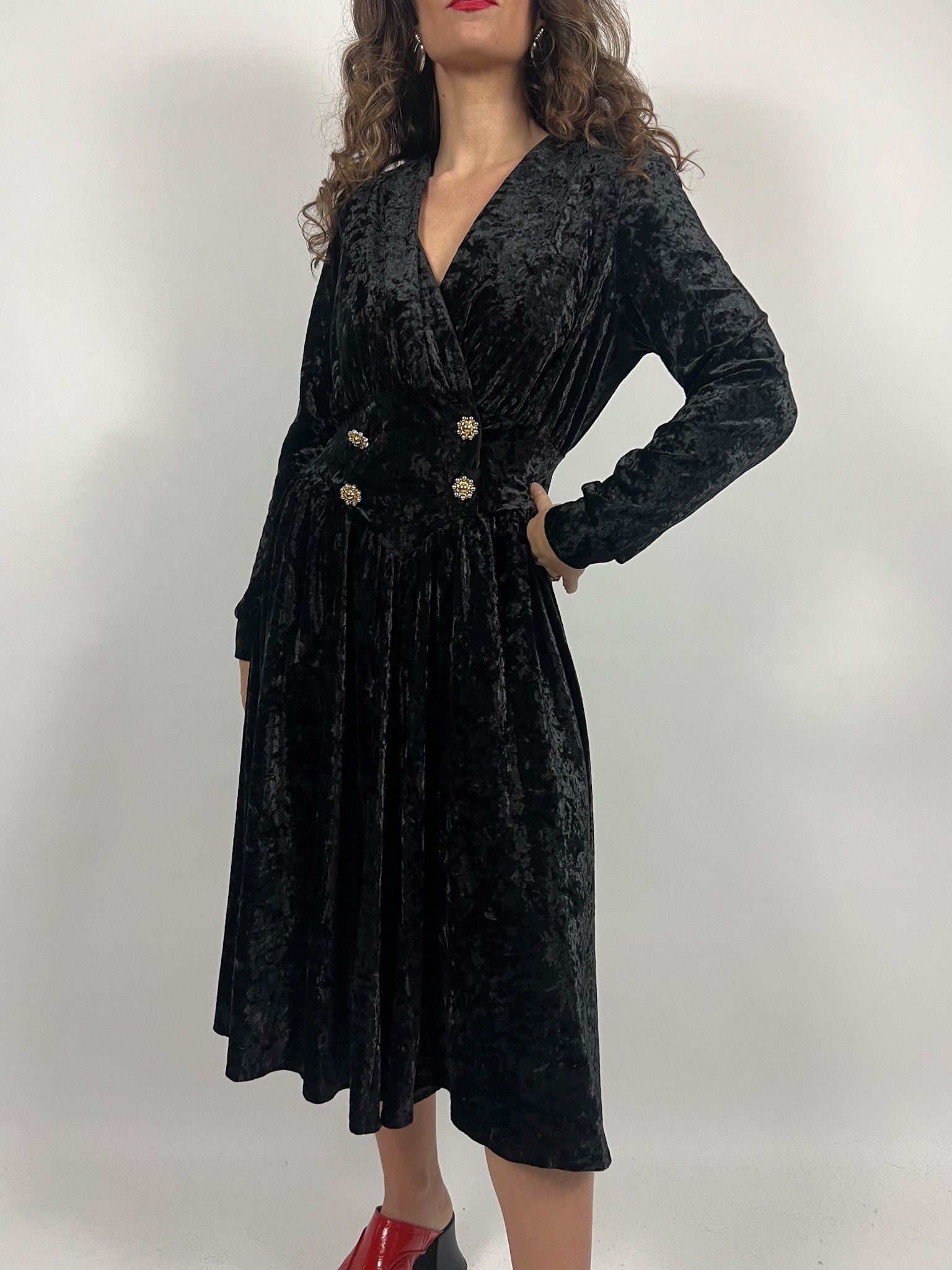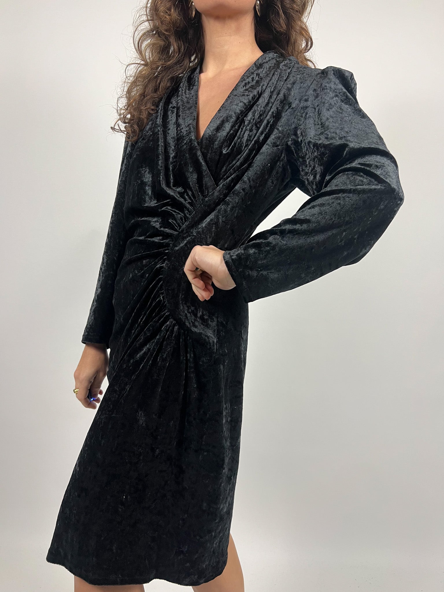 Vintage 90’s Black Crushed Velvet Wrap Dress