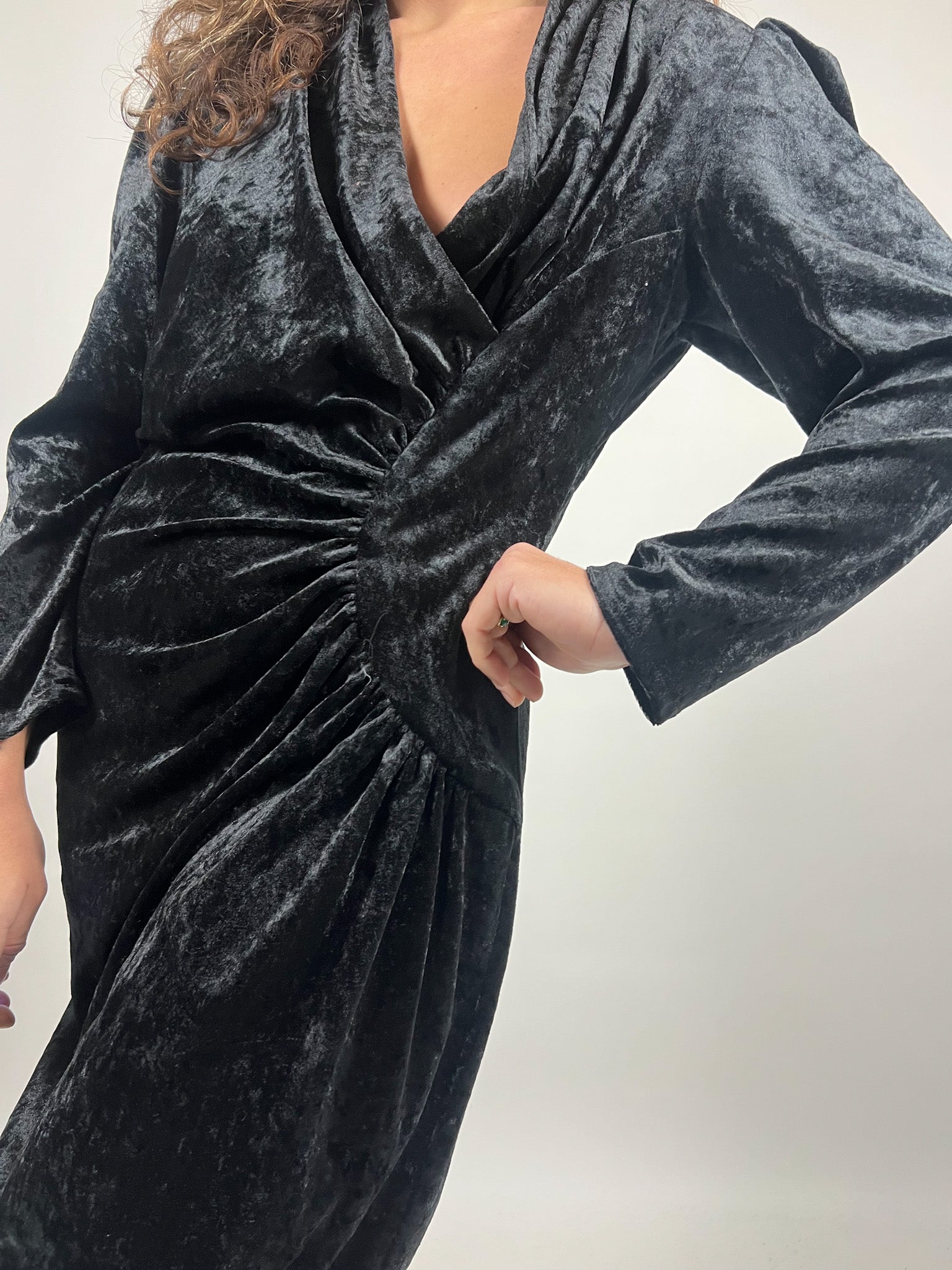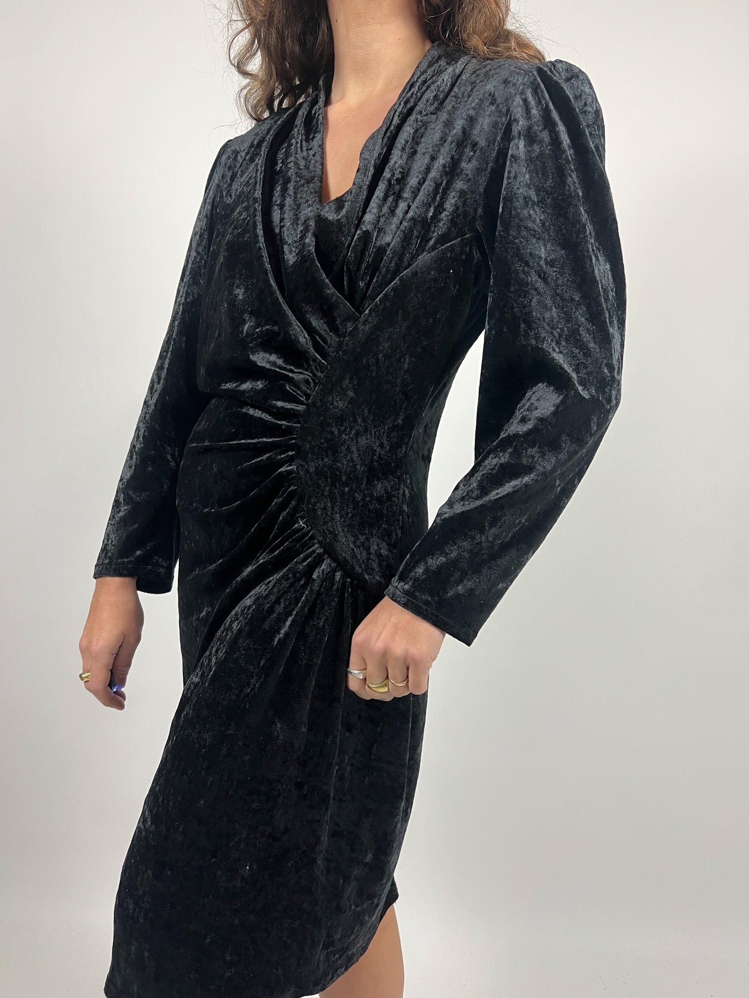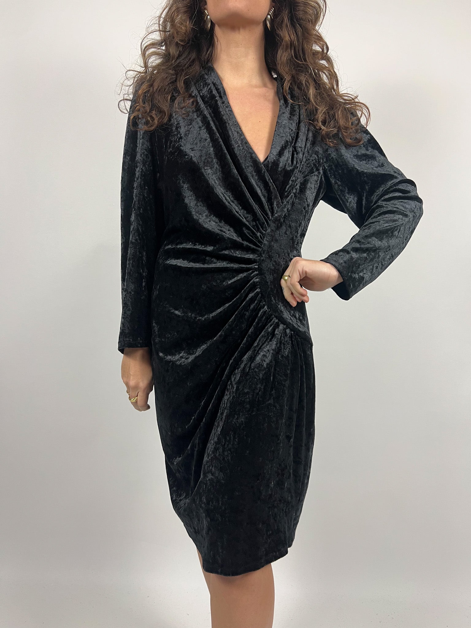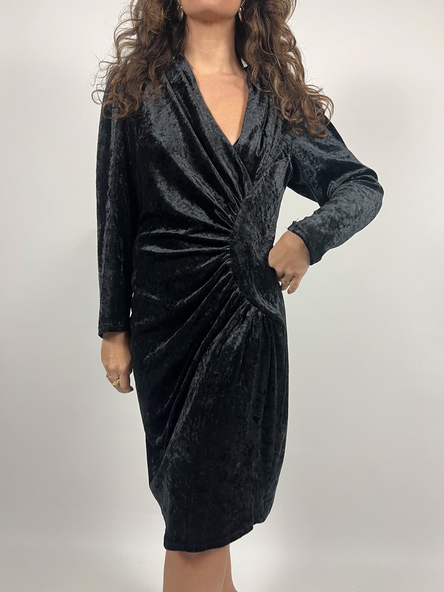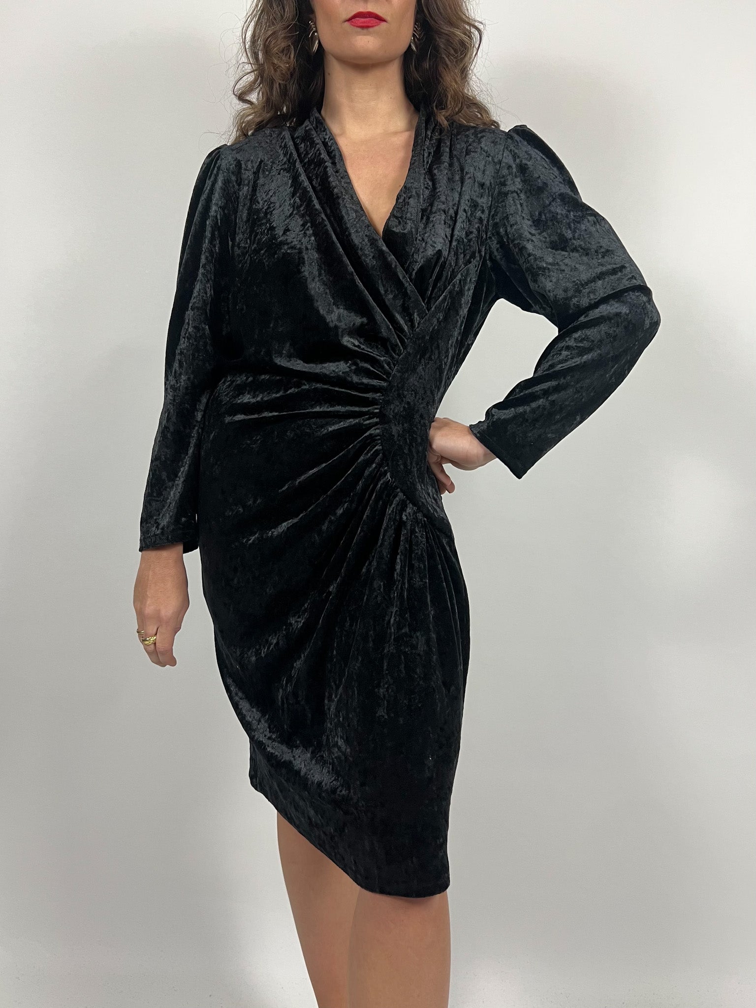 Vintage 90’s Black Velvet Ruched Dress