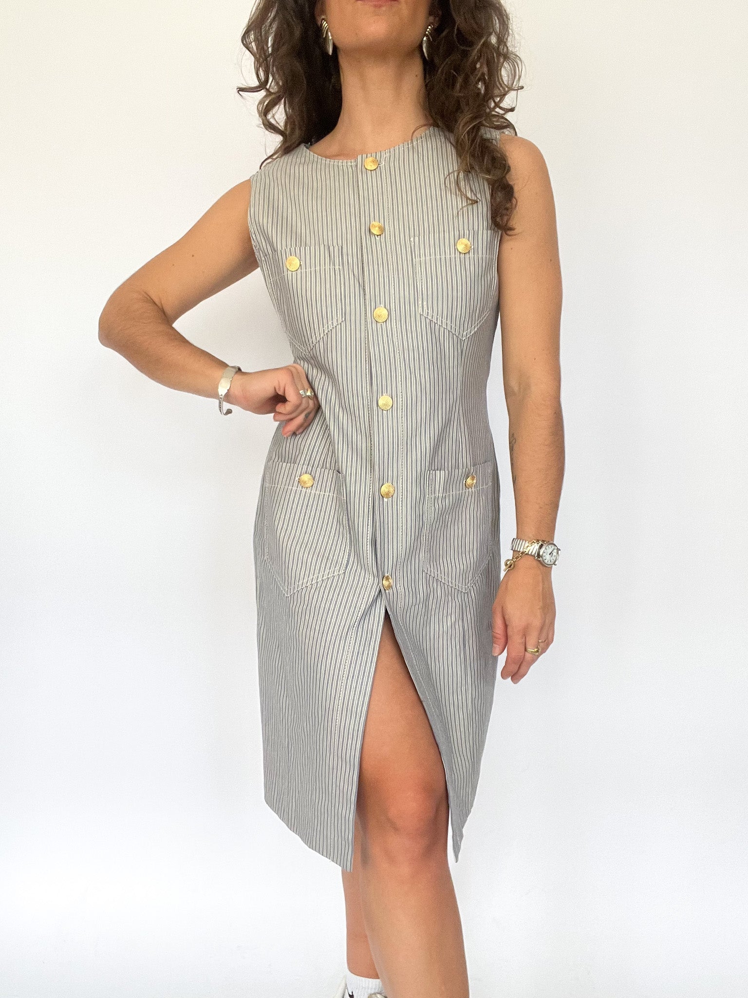 Vintage 90’s Pinstripe Button-Front Dress
