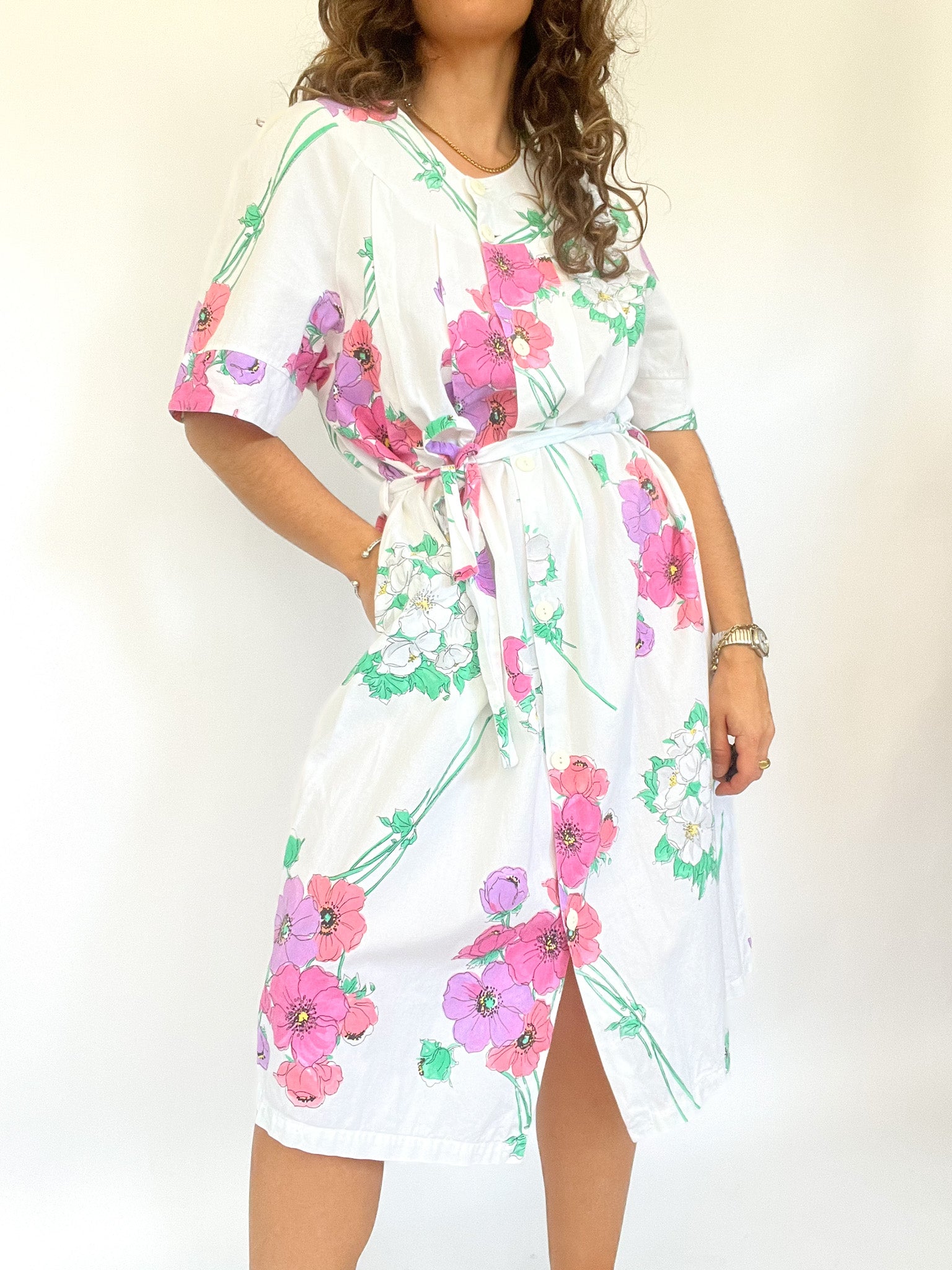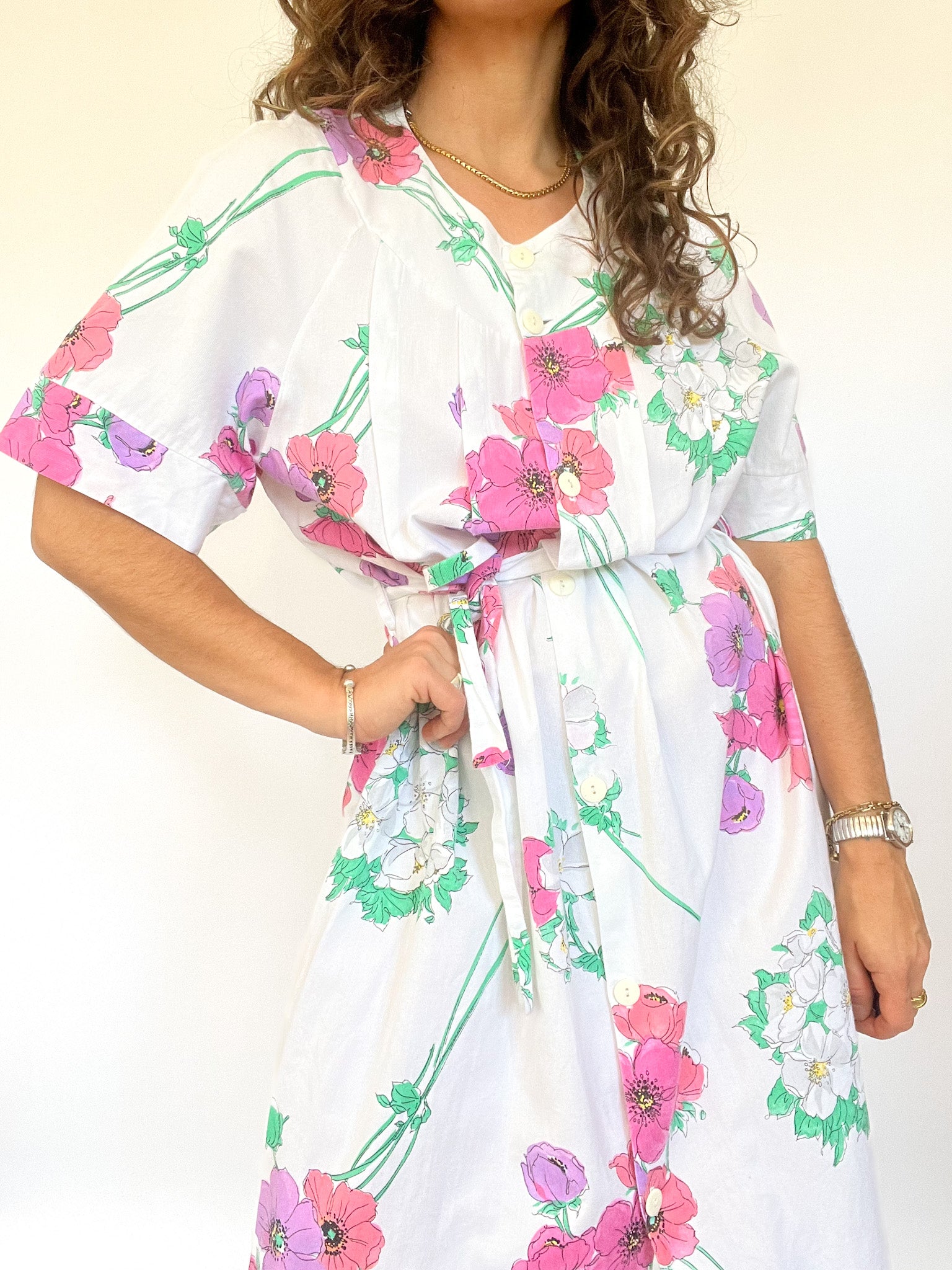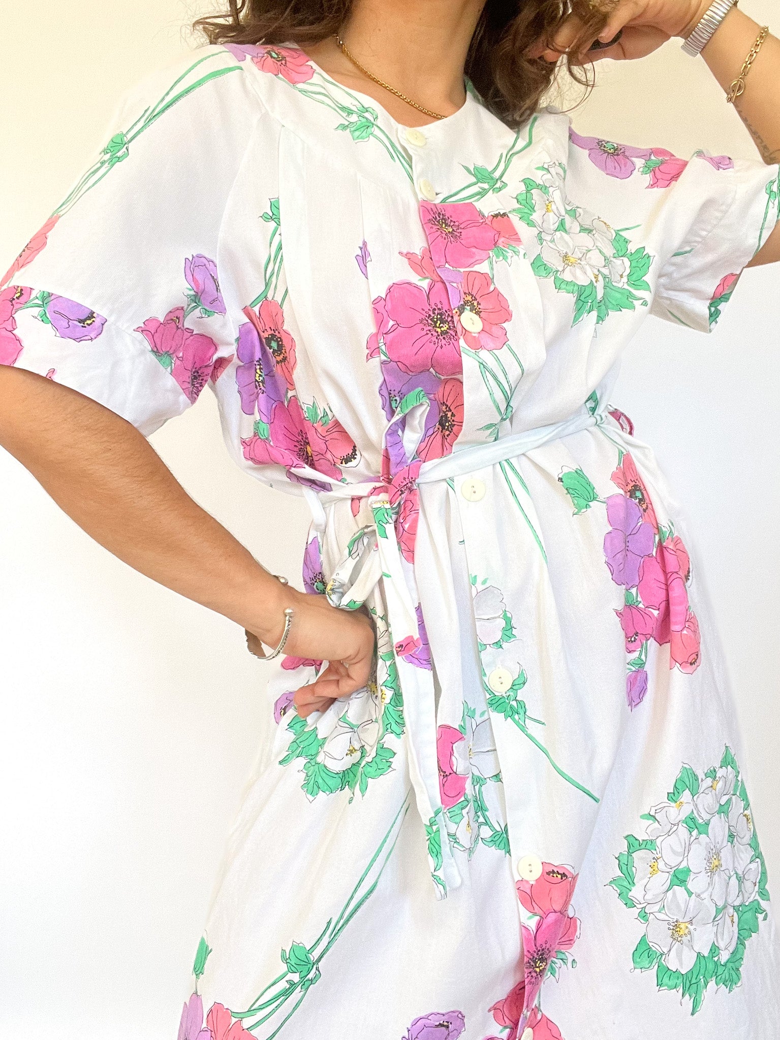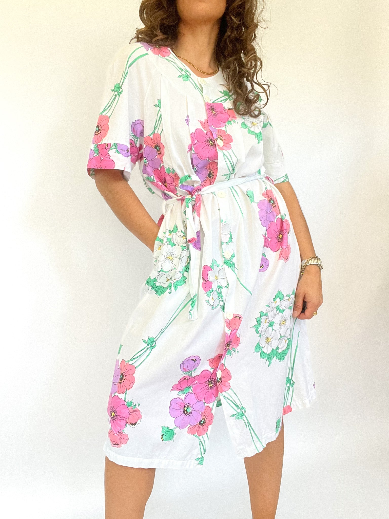Vintage 90’s White Cotton Floral Dress