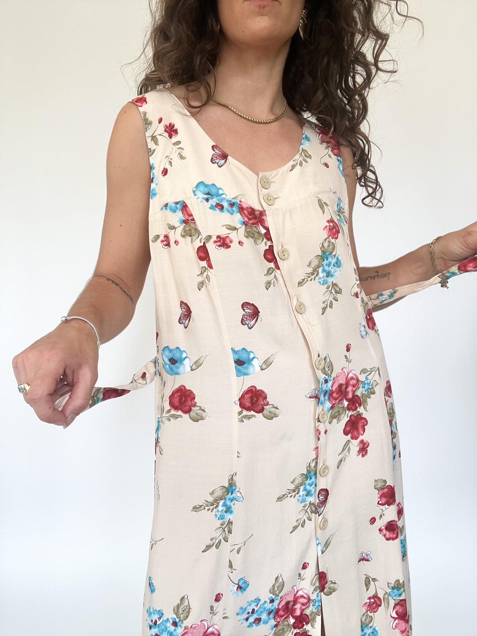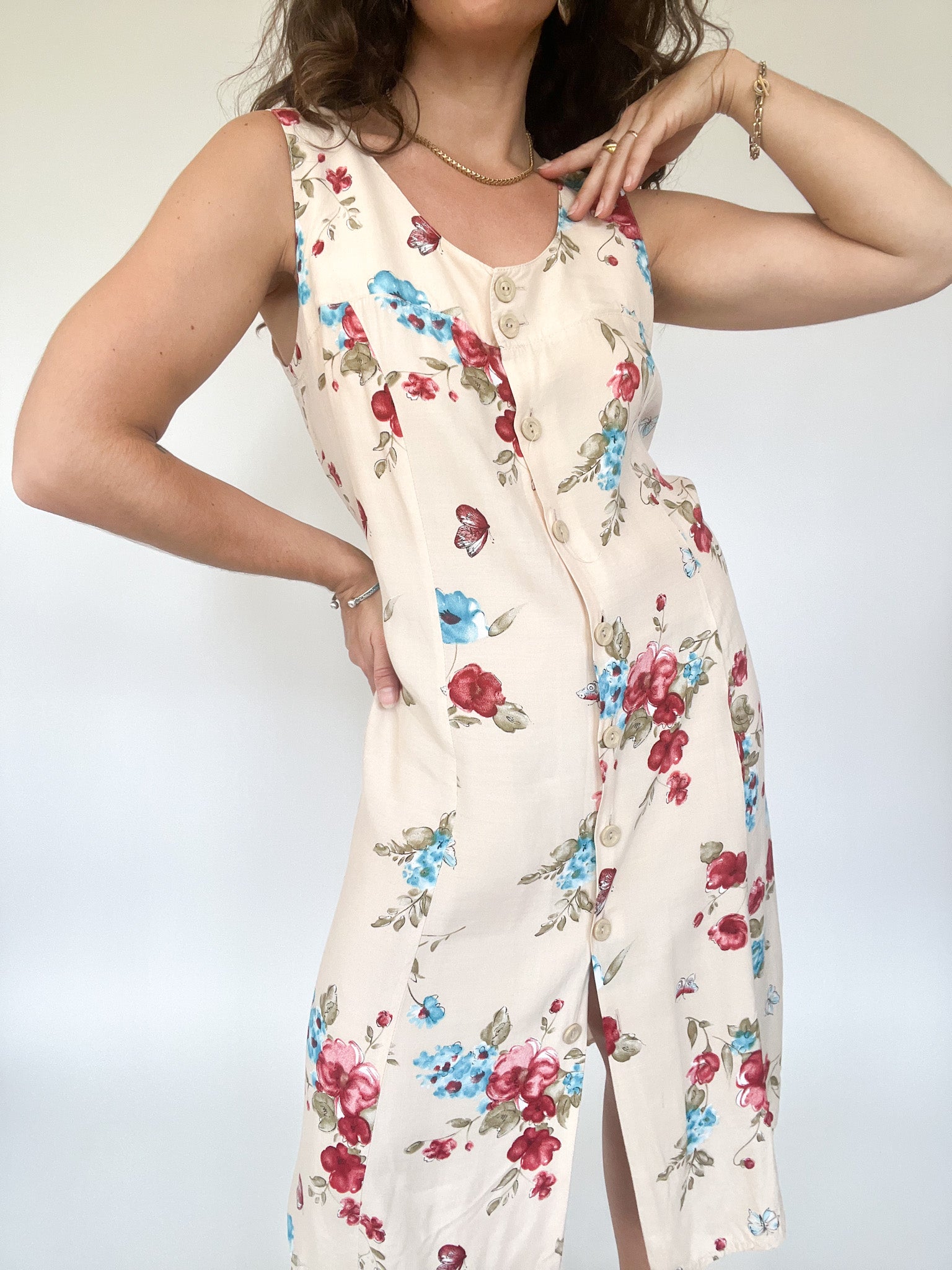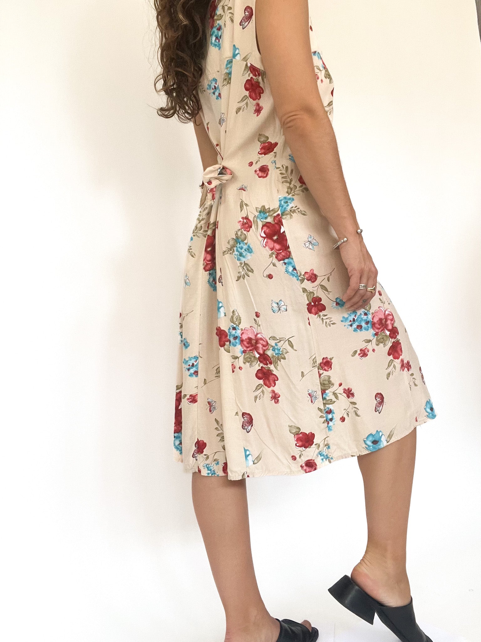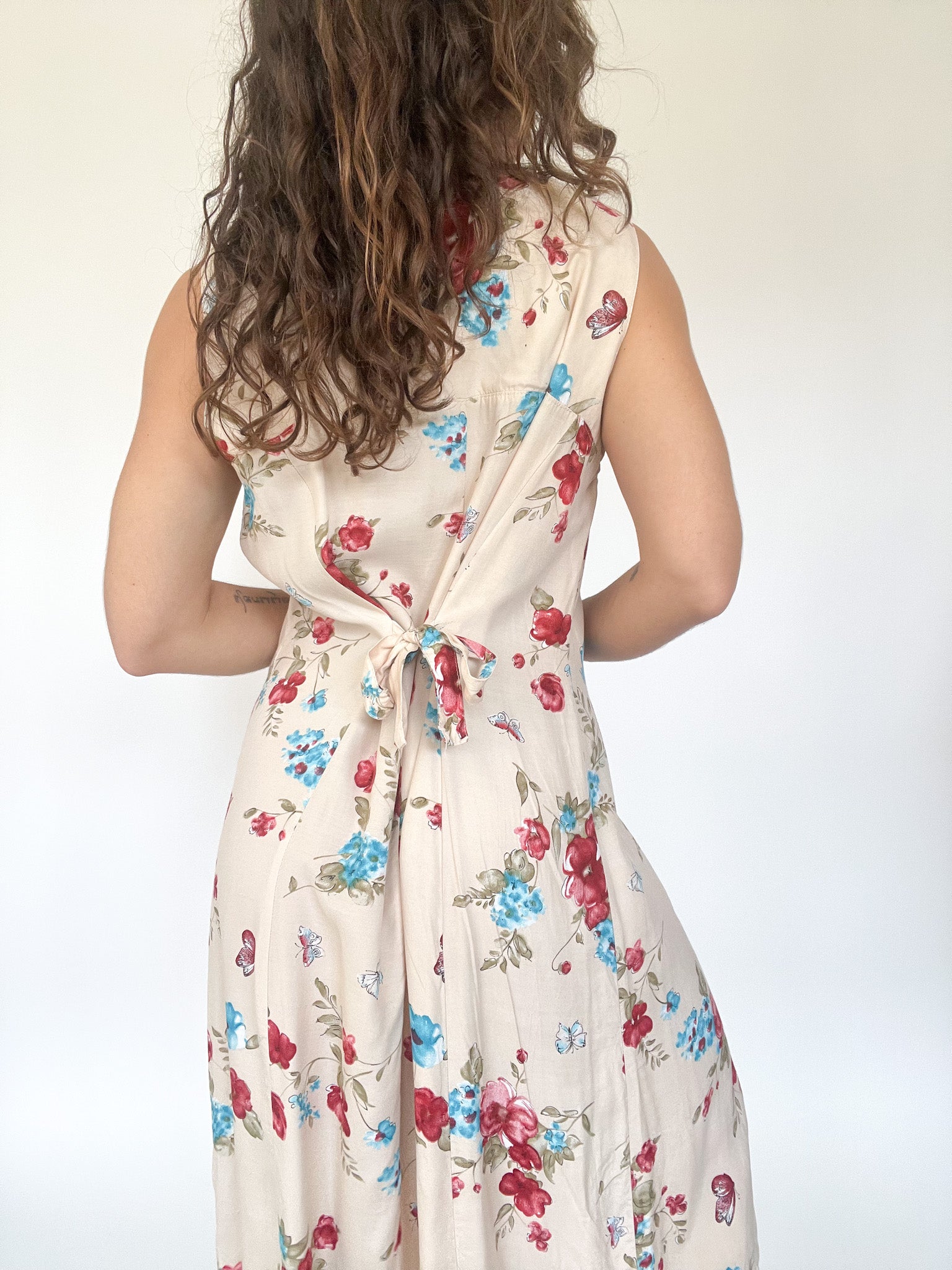 Vintage 90’s Cream Floral Sleeveless Dress
