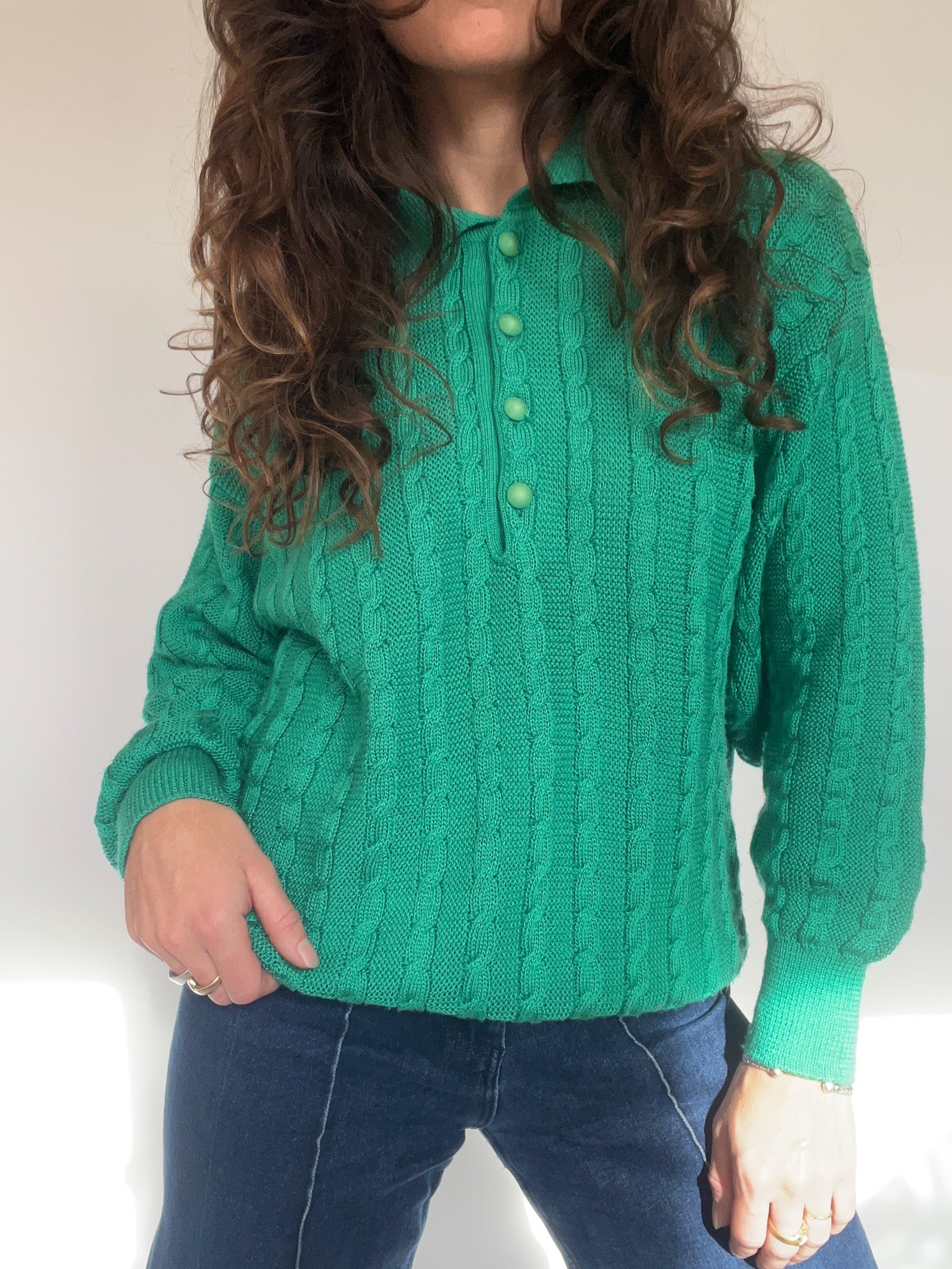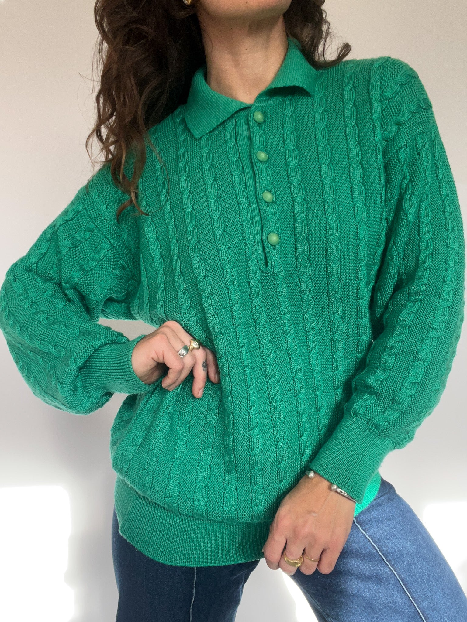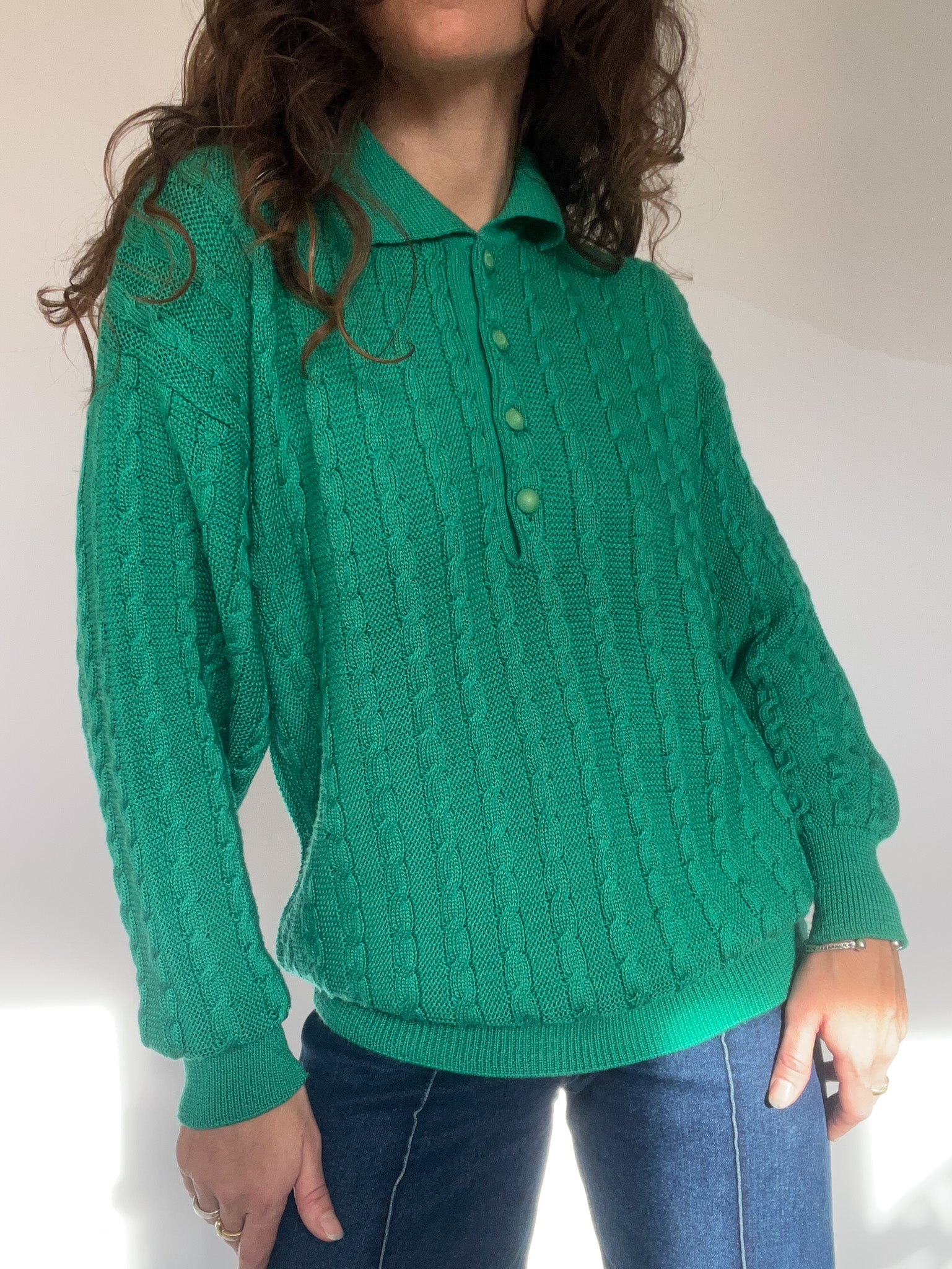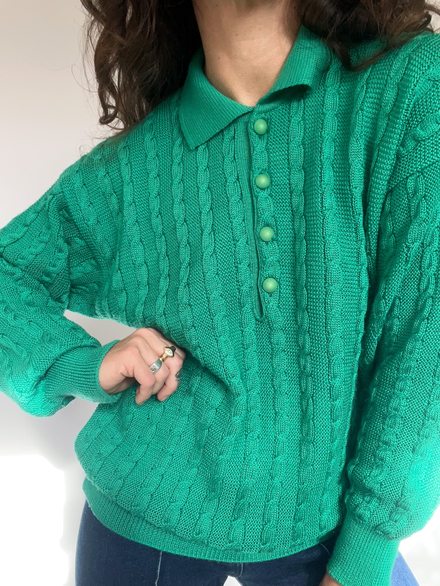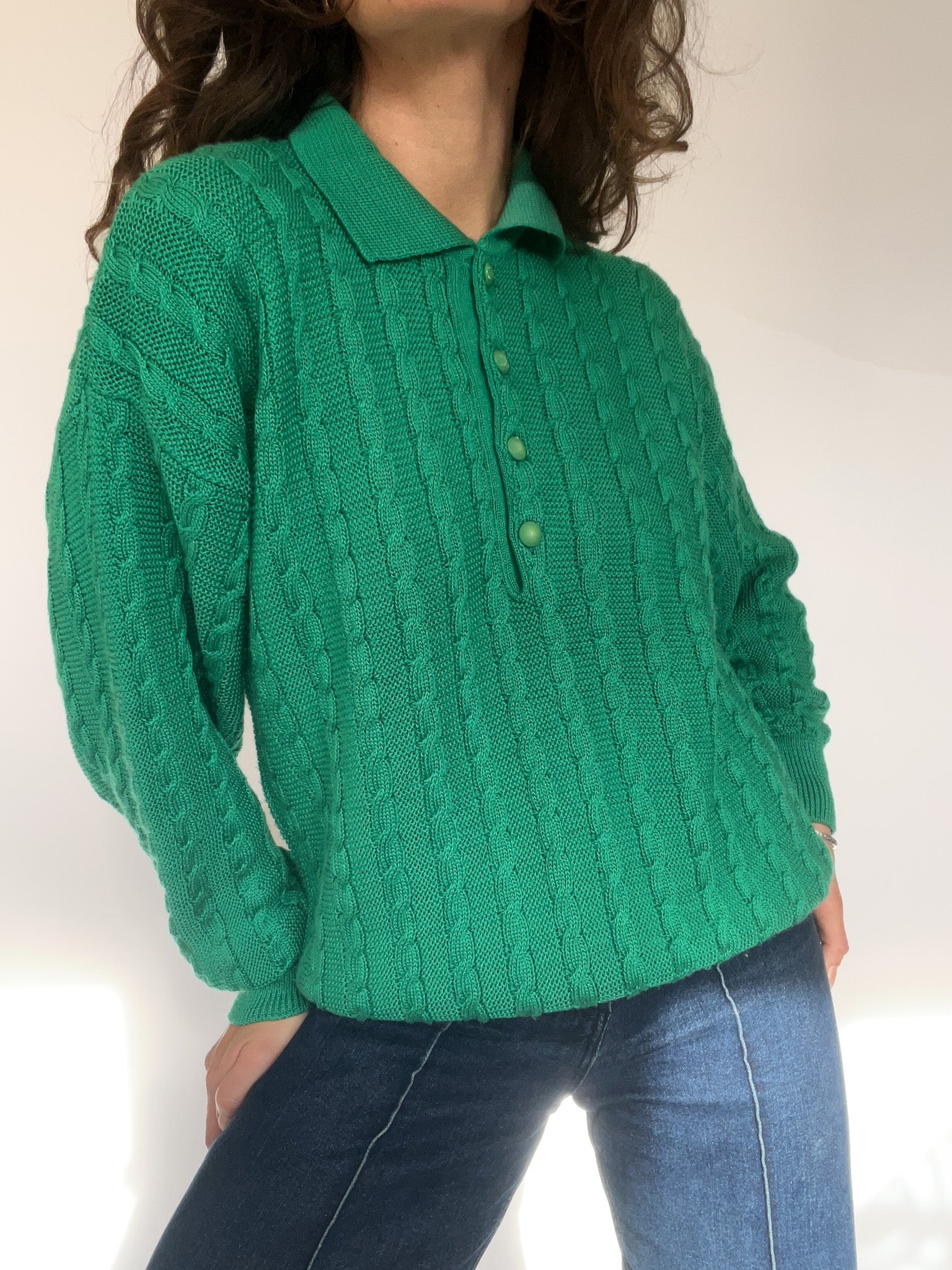 Vintage 90’s Emerald Cable Knit Polo Sweater
