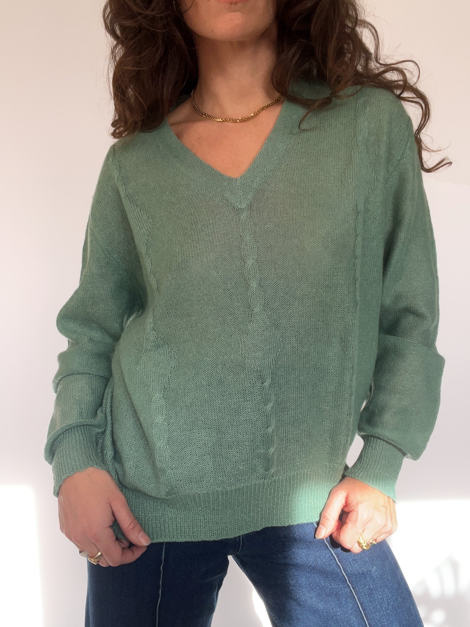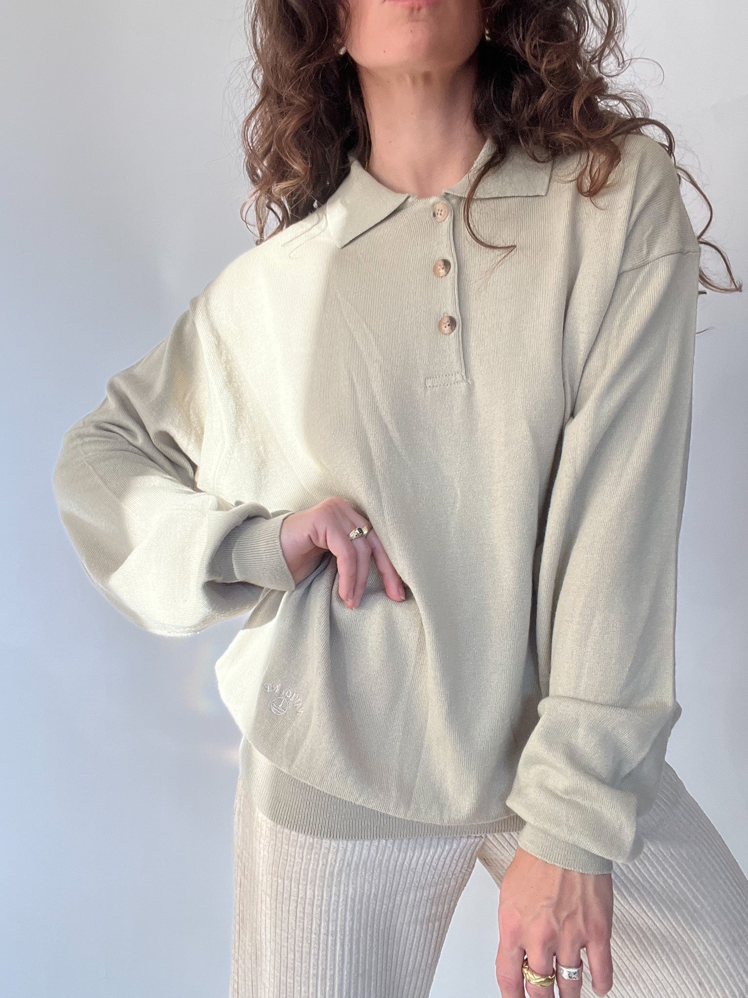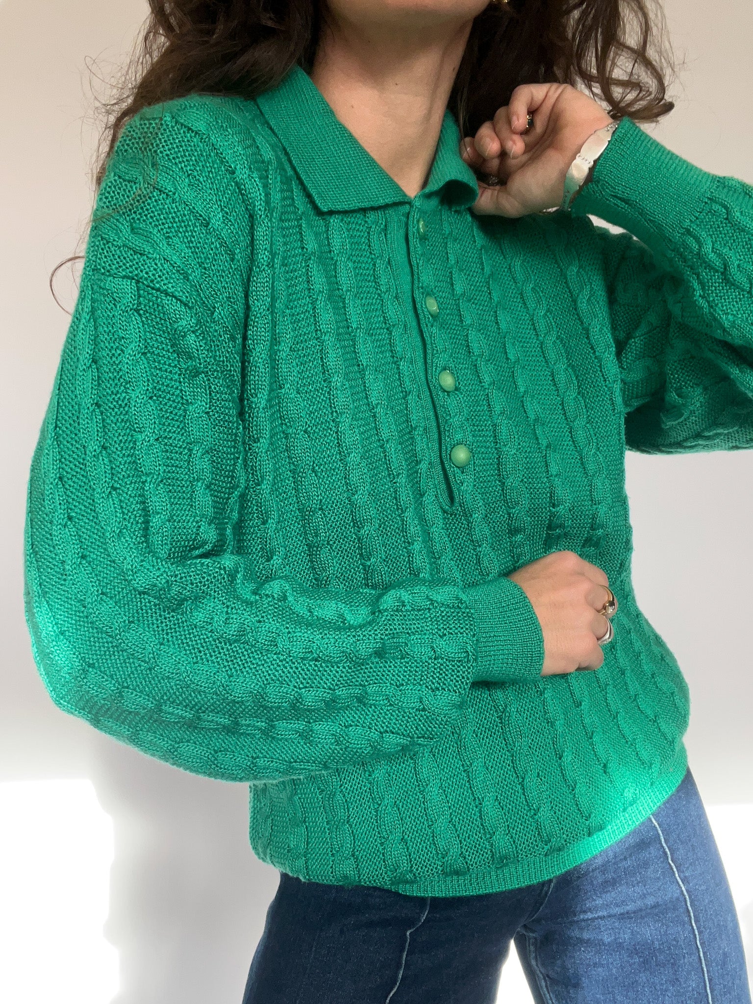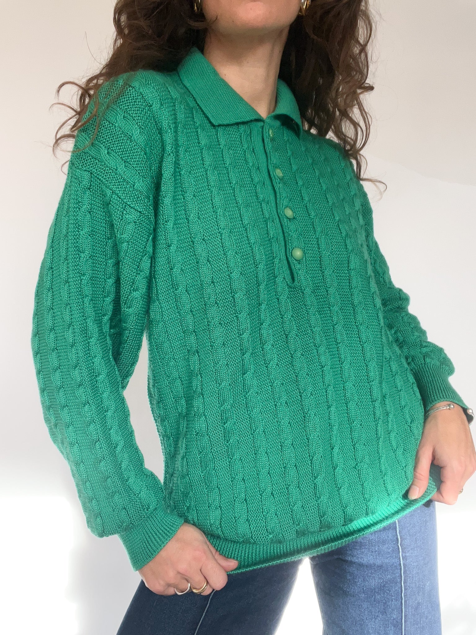 Vintage 90’s Emerald Cable Knit Polo Sweater